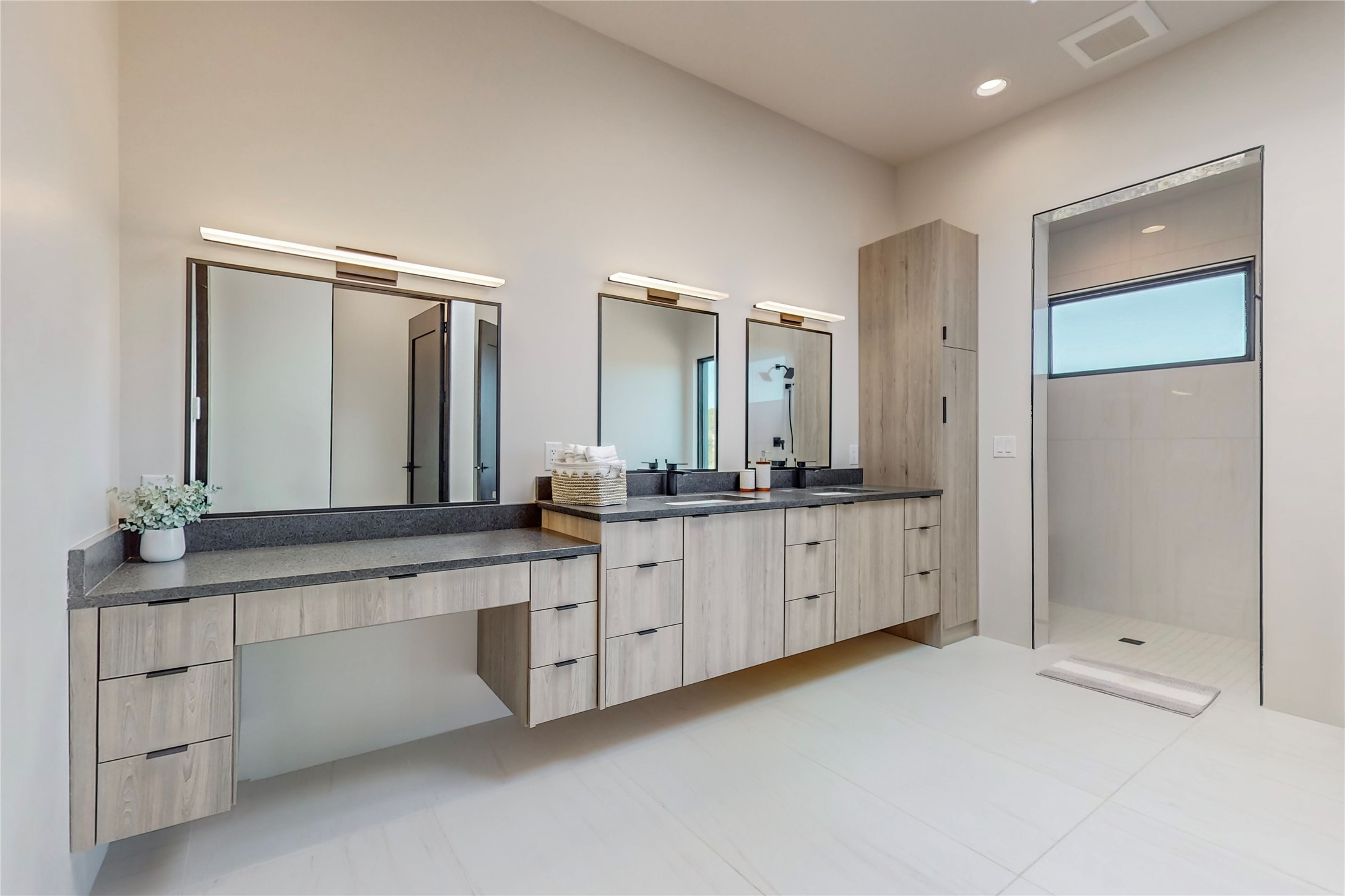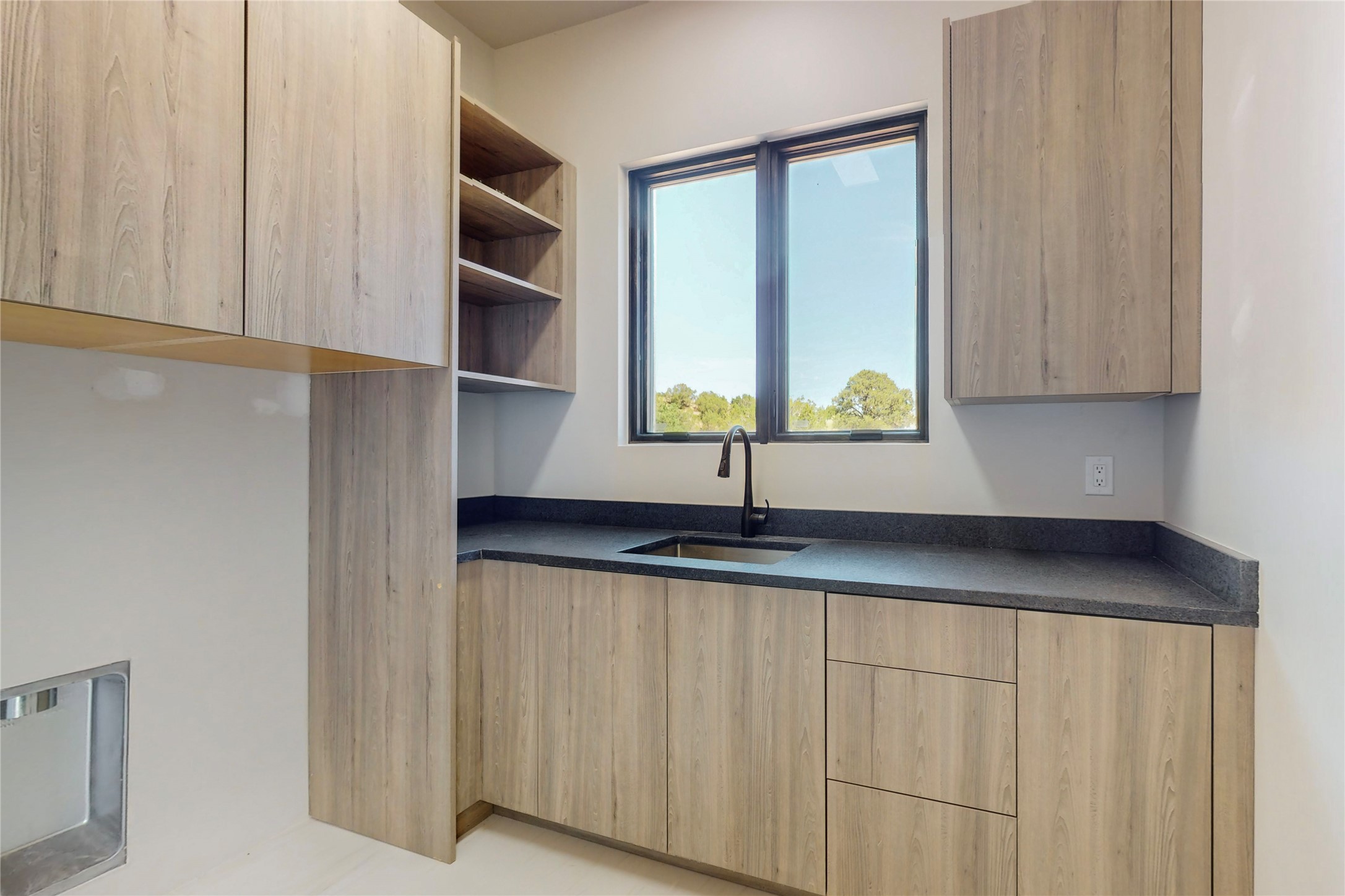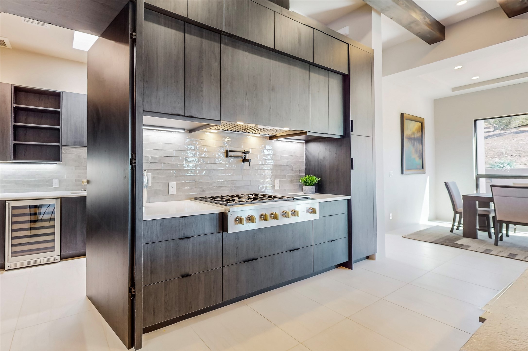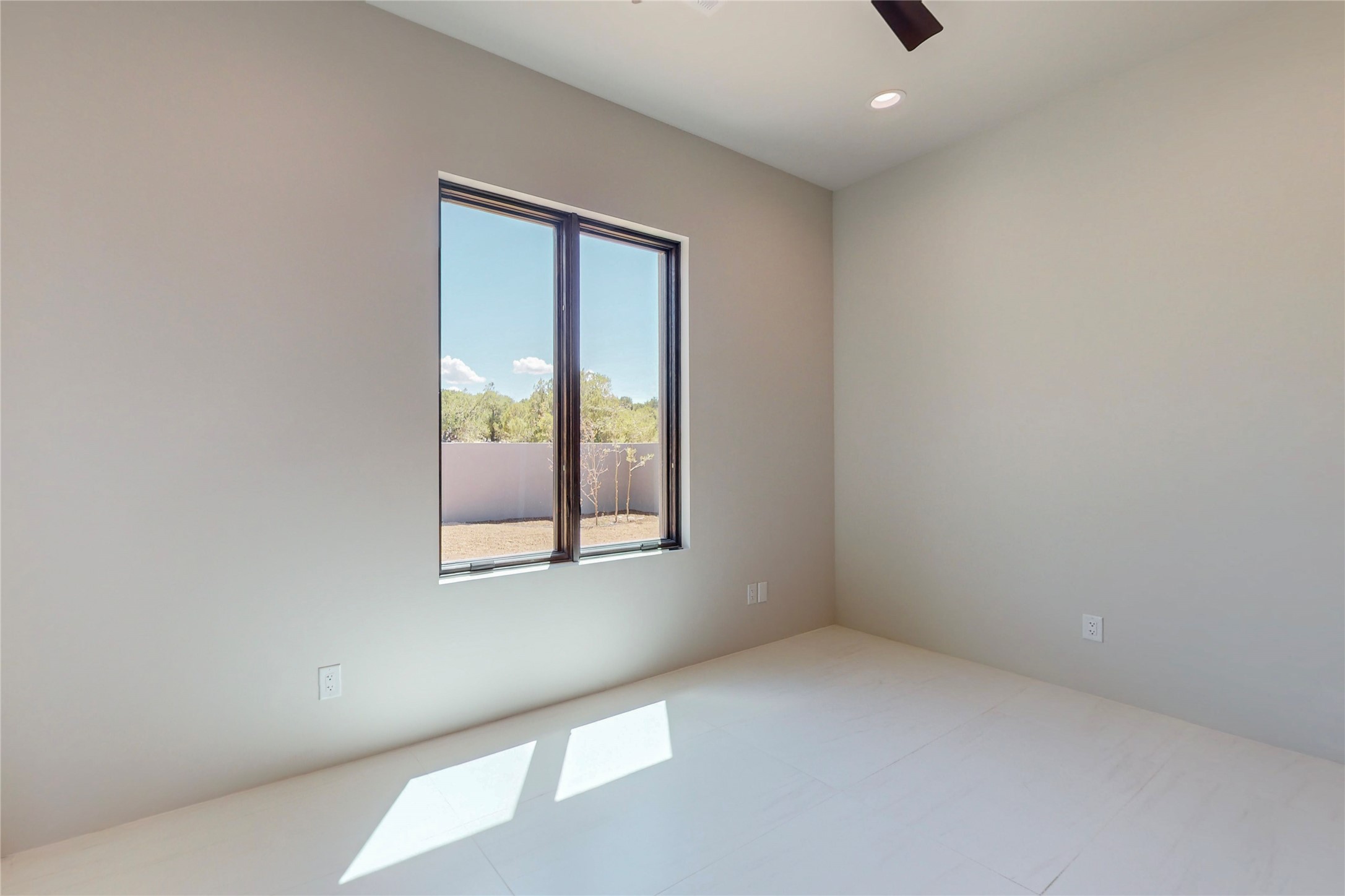 Come experience the latest custom home by Santa Fe Builders Construction, LLC. Set on one of the last remaining lots in the exclusive Sundance Ridge community. This enclave of exceptional custom homes is married to Santa Fe's most sought after land of rolling hills, unparalleled views and privacy. Your new home is at the end of a private cul-de-sac, tucked in on a ridge and overlooking the Jemez mountain range. Delivering stunning sunsets, and starry nights; it feels like you own the west. The soft pueblo contemporary features an open concept floor plan, exquisite kitchen and butler's pantry, luxurious master suite, plus two additional bedrooms, and a heated garage. Glass panel, vanishing pocket doors in the great room blur the lines between indoor and outdoor space, leading you to an expansive, view filled, covered portal with outdoor kitchen and fire pit. Enjoy instant comfort in any season with in-floor radiant heat and refrigerated air. Located just 15 minutes from downtown means quick access to everything Santa Fe while still feeling worlds away.