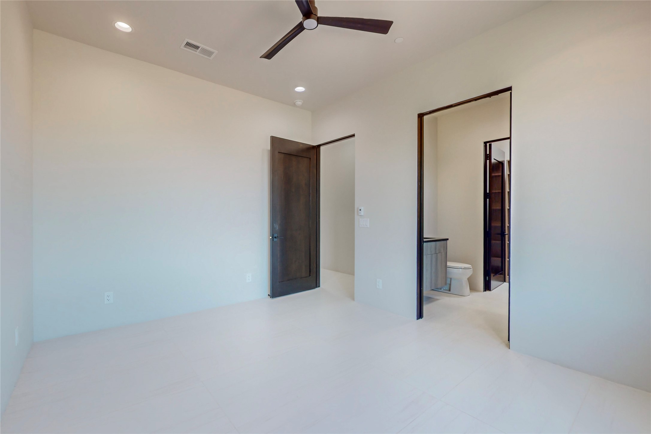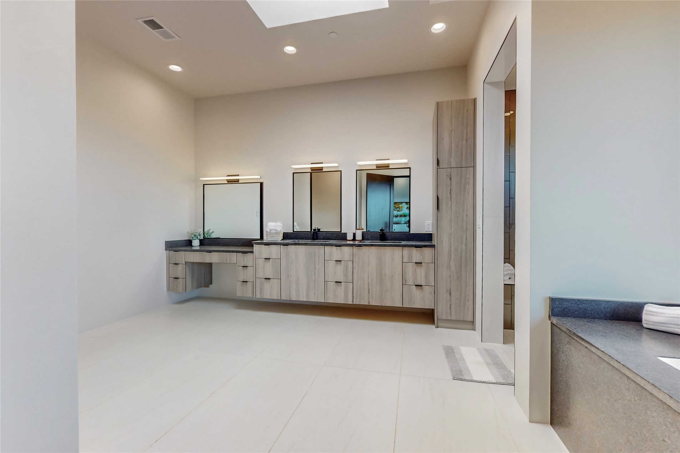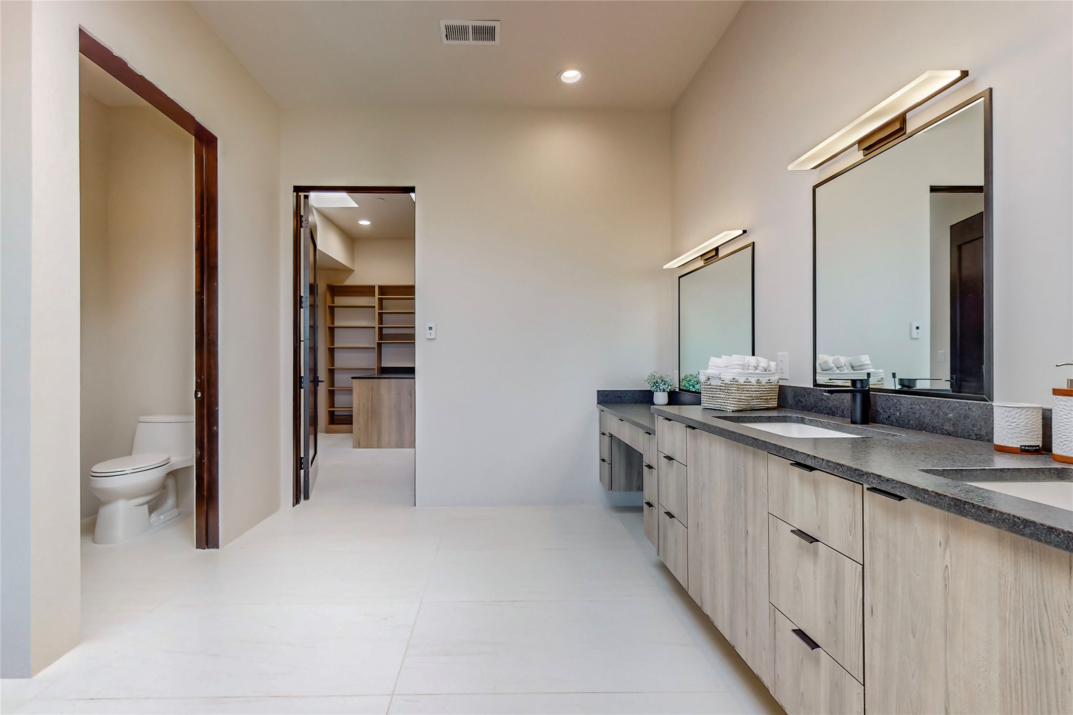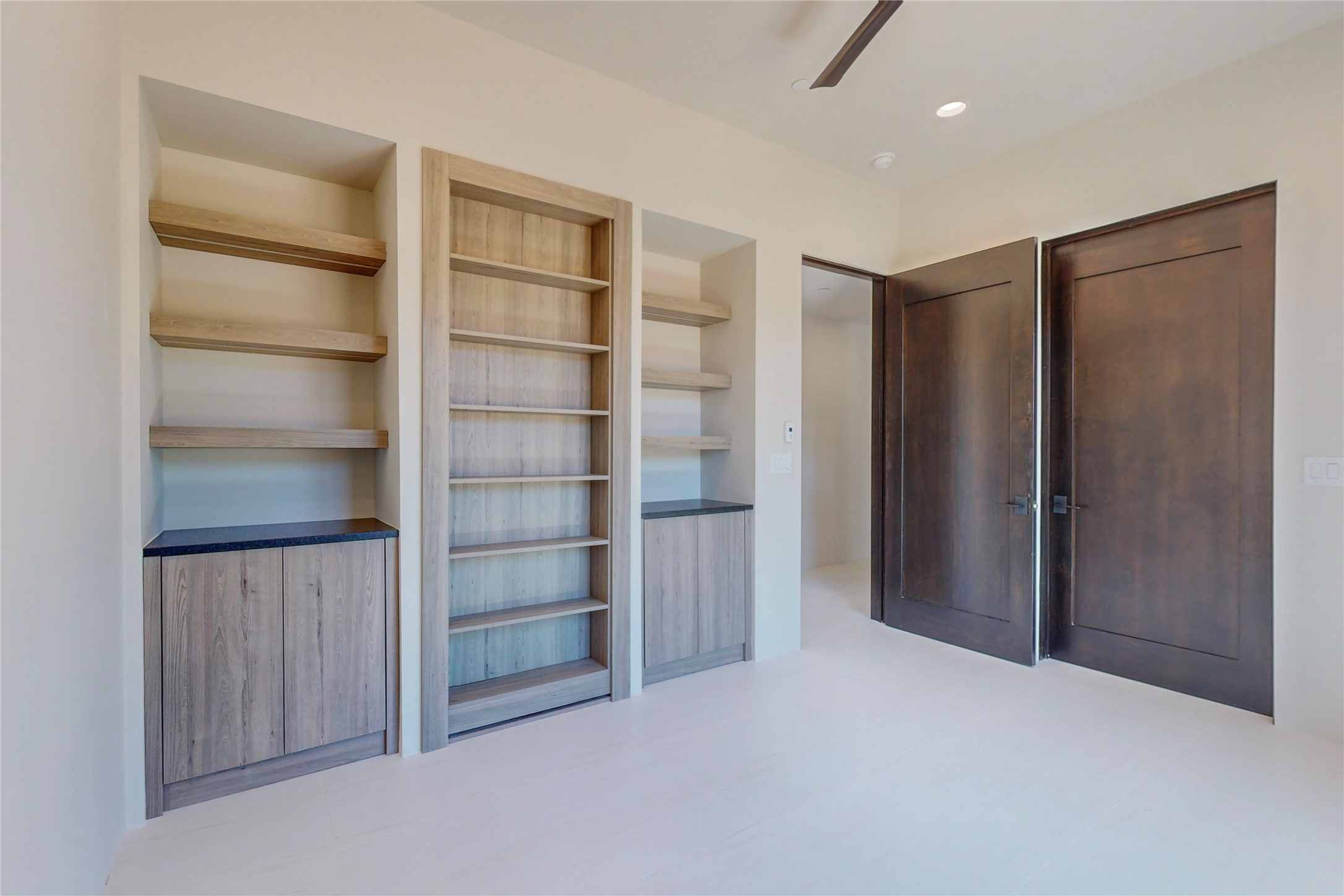 Come experience the latest custom home by Santa Fe Builders Construction, LLC. Set on one of the last remaining lots in the exclusive Sundance Ridge community. This enclave of exceptional custom homes is married to Santa Fe's most sought after land of rolling hills, unparalleled views and privacy. Your new home is at the end of a private cul-de-sac, tucked in on a ridge and overlooking the Jemez mountain range. Delivering stunning sunsets, and starry nights; it feels like you own the west. The soft pueblo contemporary features an open concept floor plan, exquisite kitchen and butler's pantry, luxurious master suite, plus two additional bedrooms, and a heated garage. Glass panel, vanishing pocket doors in the great room blur the lines between indoor and outdoor space, leading you to an expansive, view filled, covered portal with outdoor kitchen and fire pit. Enjoy instant comfort in any season with in-floor radiant heat and refrigerated air. Located just 15 minutes from downtown means quick access to everything Santa Fe while still feeling worlds away.