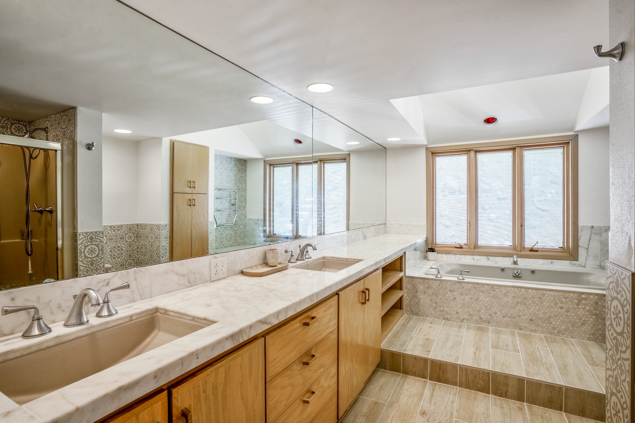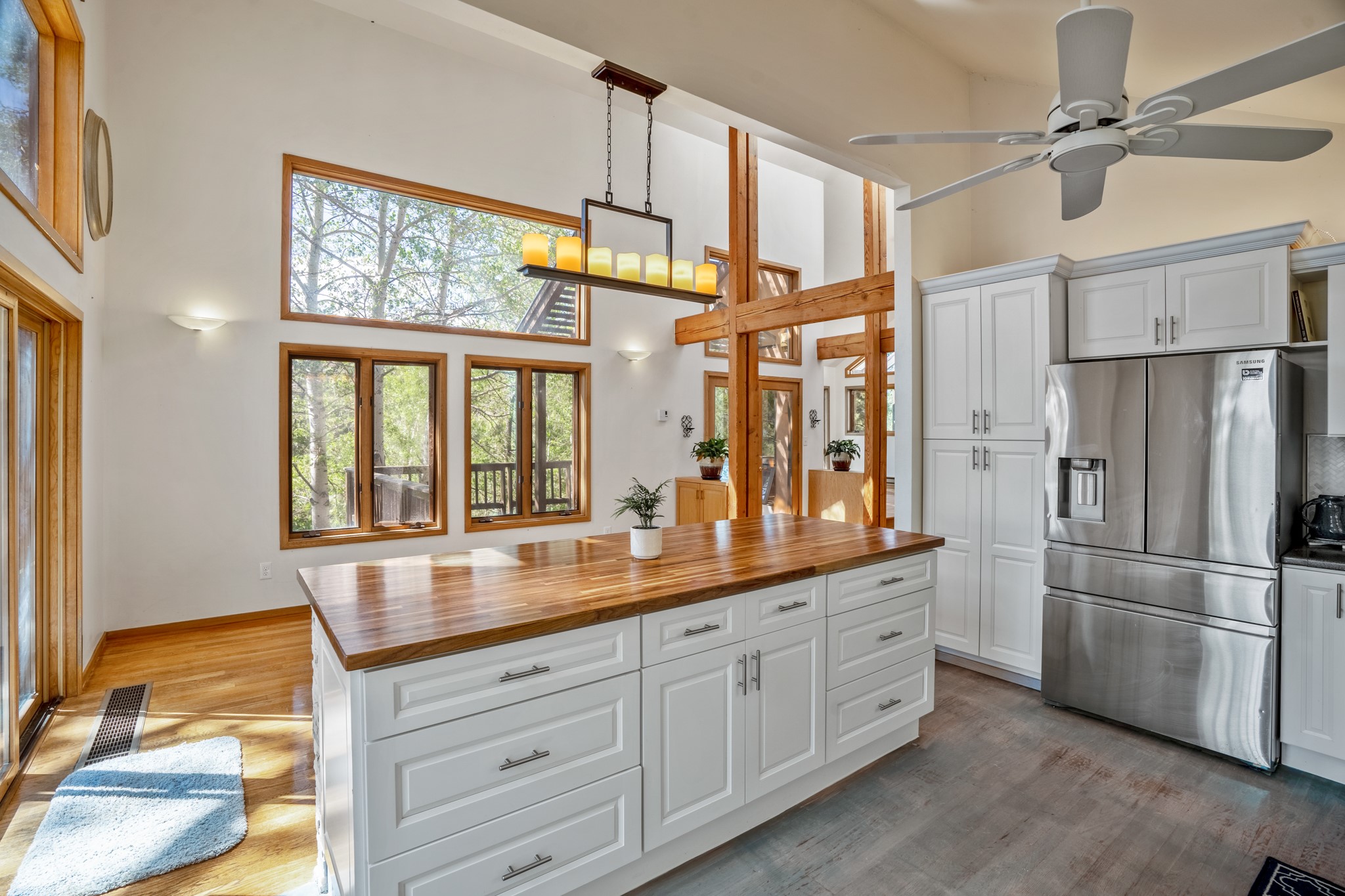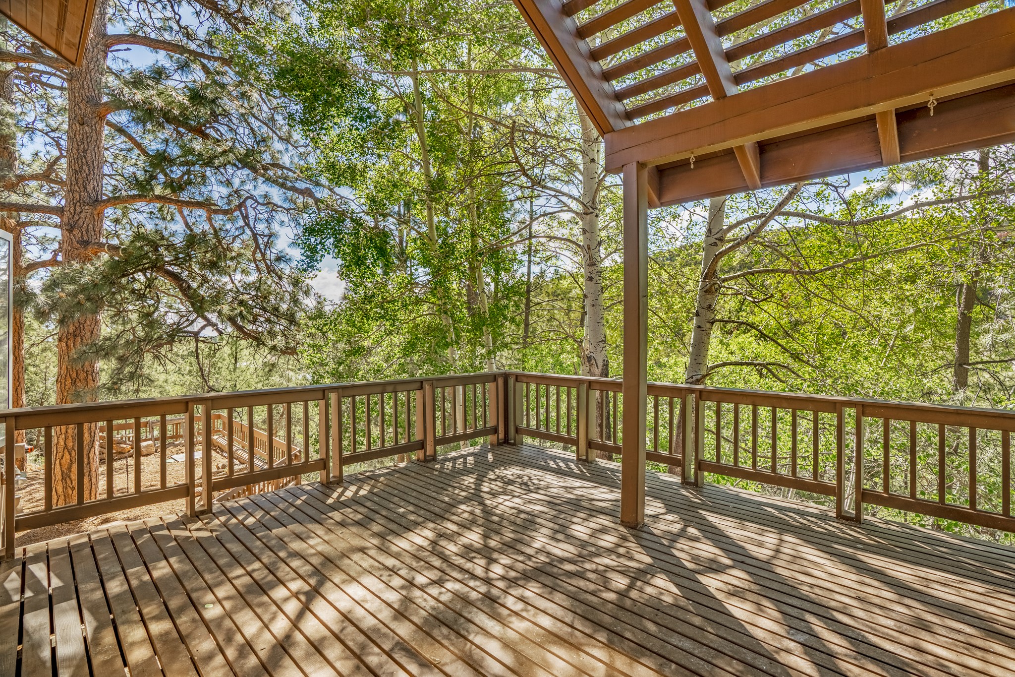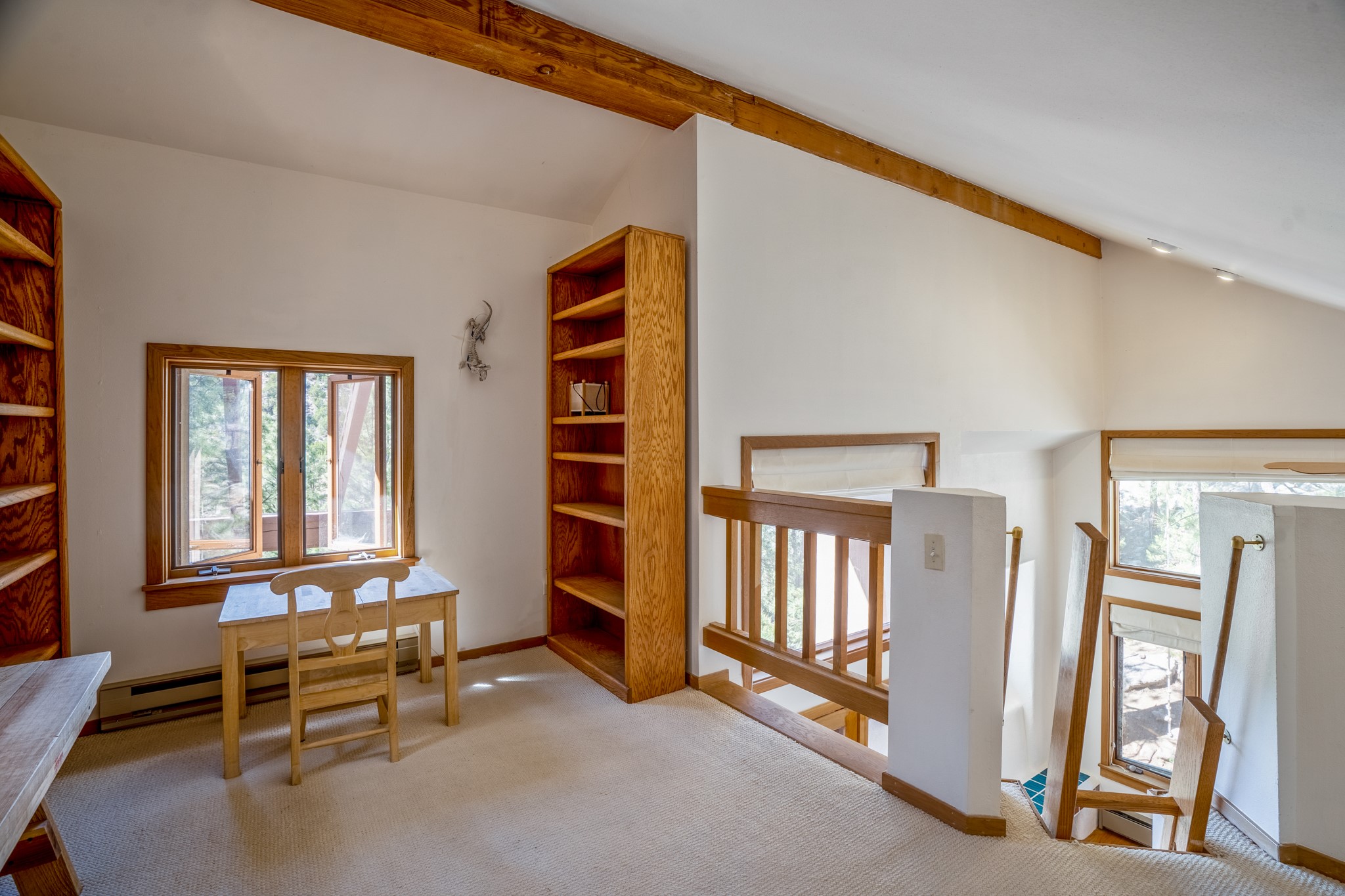 Privacy and serenity set on 10+ acres, just minutes from town! This light & bright residence is about 12 minutes drive to Antalya. Rio Grande, SF Prep & Thrive schools. What an wonderful opportunity for ski and mountain enthusiasts! A truly magical setting, nestled in the trees w/ dramatic rock outcroppings: a nature lover's dream. This home has numerous , wonderful outdoor living areas (3 decks & 3 patios). Thoughtfully designed home w/ a versatile floor plant to accommodate many lifestyles (home office, kids & grandkids, guests or a separate apartment) The public areas are comfortable and functional; consisting of a recently remodeled kitchen, formal dining room, living room w/ fireplace, & a study/media room (can be an additional bedroom), all with beautiful oak floors. The dining room opens to 2 outdoor decks and the kitchen also has access to one of the decks. The charming master suite features a kiva fireplace, well appointed bath, dual closets, library/loft, that leads outside to another deck. The 2nd bedroom is large w/a big storage closet, kiva fireplace; accesses another lively outdoor living area; designed as a den/family room or a guest apartment (a bathroom & pantry/kitchen adjoin it) so it can easily be a self-contained studio apt. The 11 acre site offers privacy and great hiking. No steep mountainous roads & mainly paved; this gated neighborhood off Old Santa Fe Trail is just minutes to the Plaza