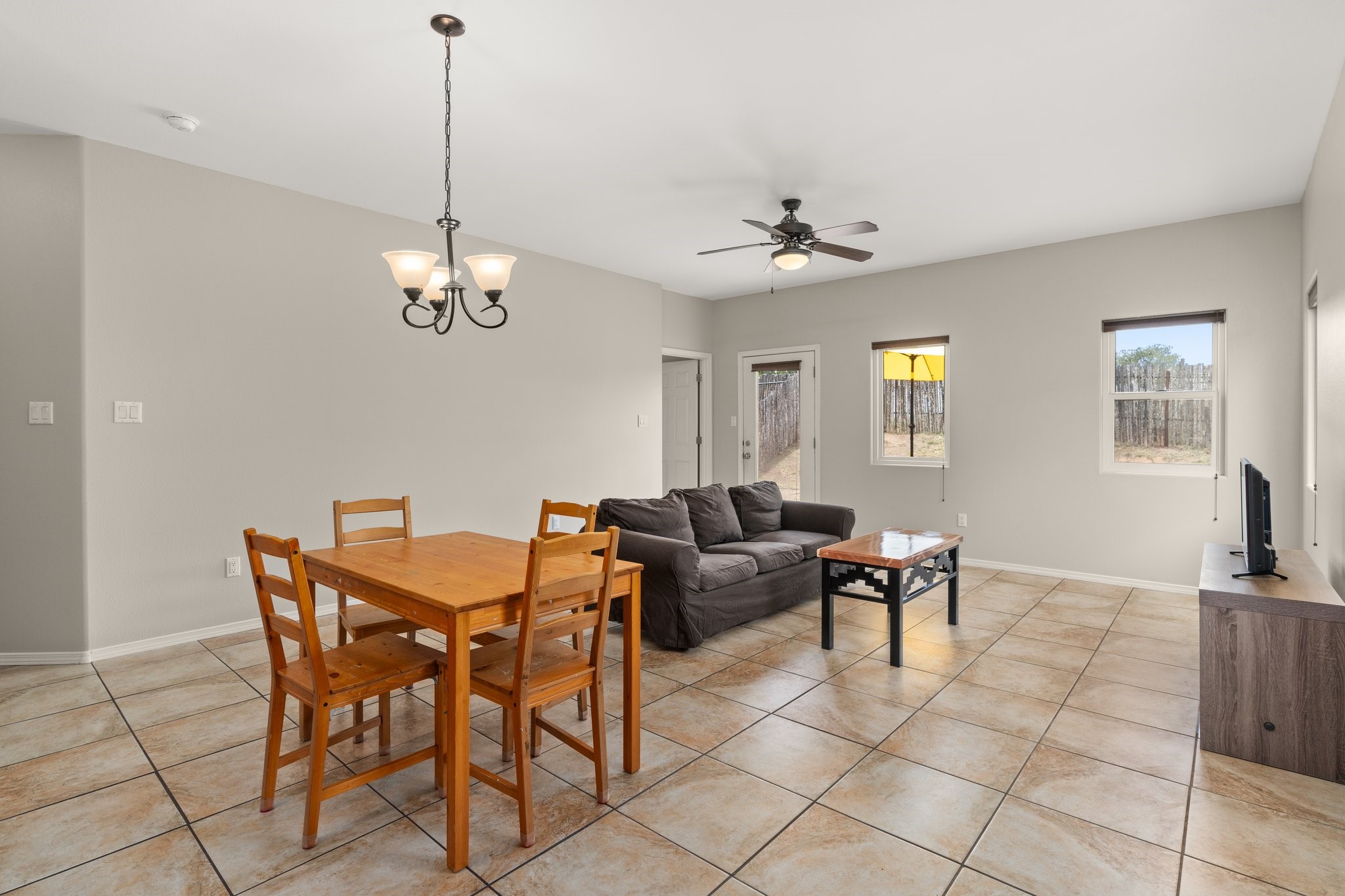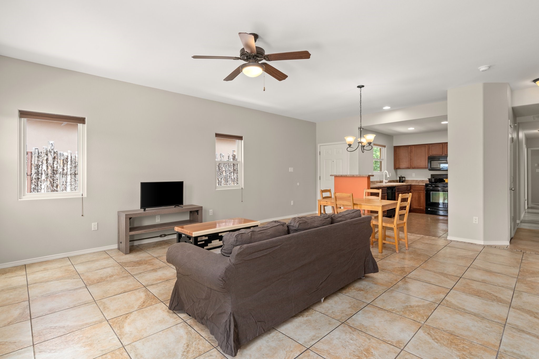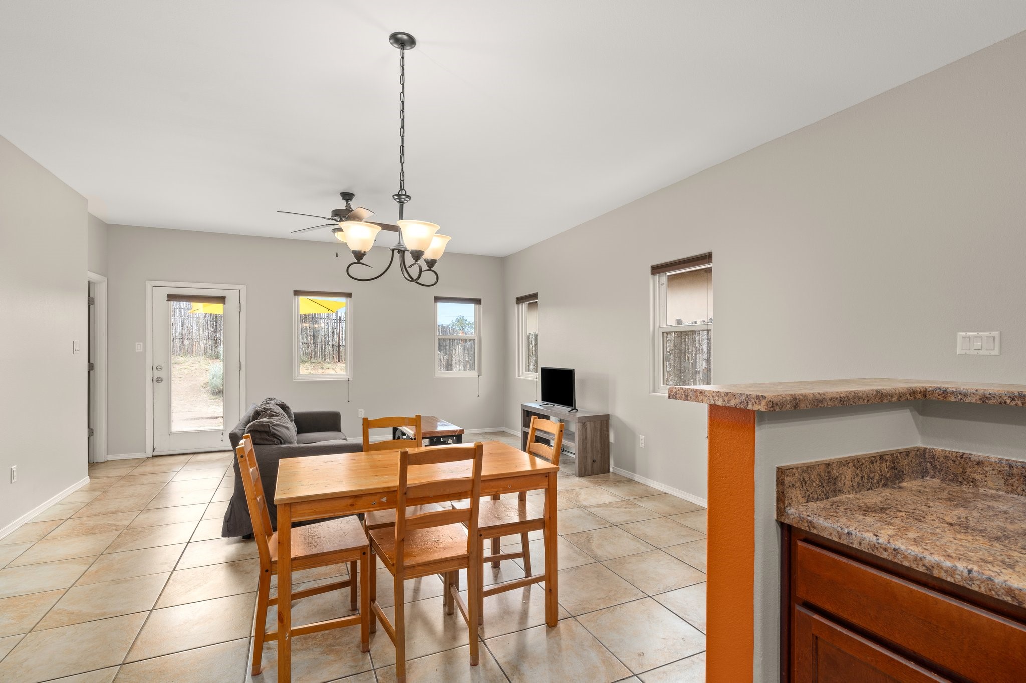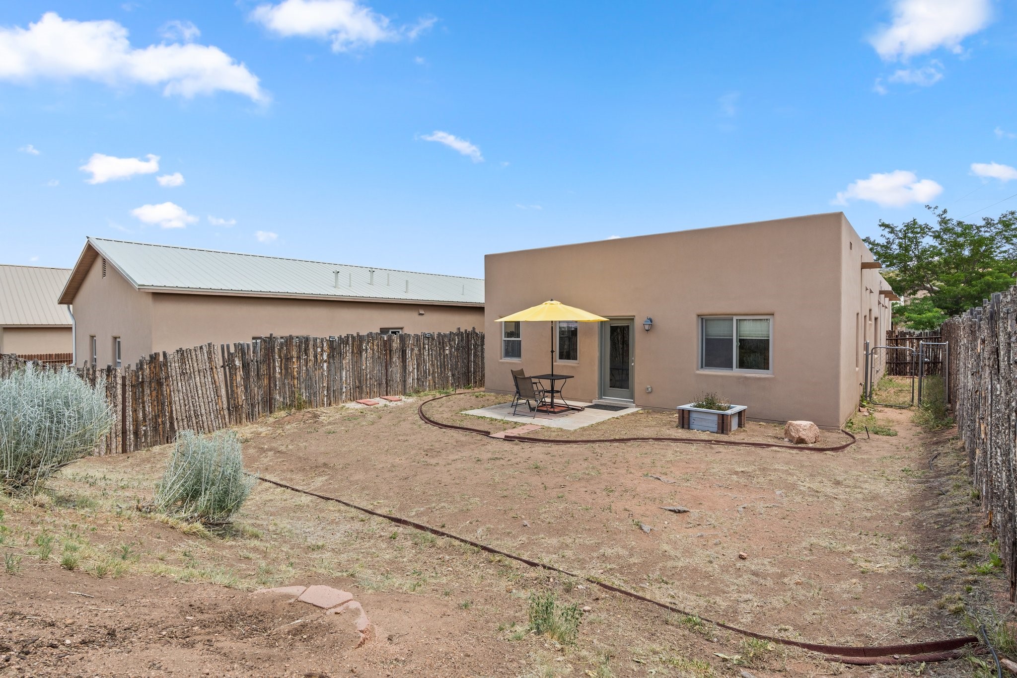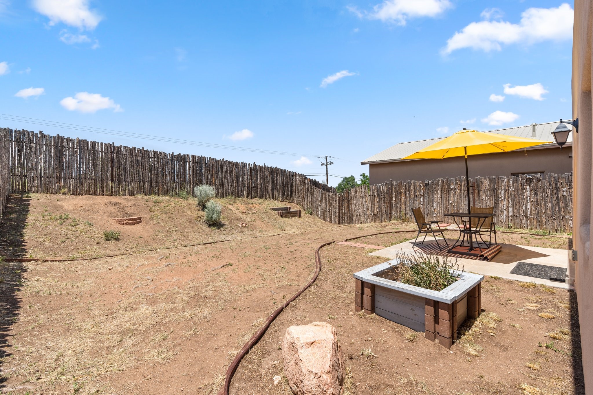 Welcome to the desirable community of Old Las Vegas Place nestled in the Sangre de Cristo foothills and within the highly sought-after Wood Gormley School district. Home built in 2011 offers 4 bedrooms and 2baths, split primary bedroom with walk in closet. Open floorplan concept with living, kitchen and dining all flow seamlessly. Ample cabinets and countertops. All appliance convey, including washer/dryer. Radiant heat and a whole-house fan cooling. Tankless water heater provides instant hot water. Good size back yard provides privacy, raised beds for gardening. Location is ideal for commuters, easy access to I25. Near El Gancho pool, hiking, biking and nature trails. 5-minutes to the Santa Fe Plaza, shopping, art galleries and wonderful dining options. Near Harrys Roadhouse and Rodeo Rd. Welcome Home!