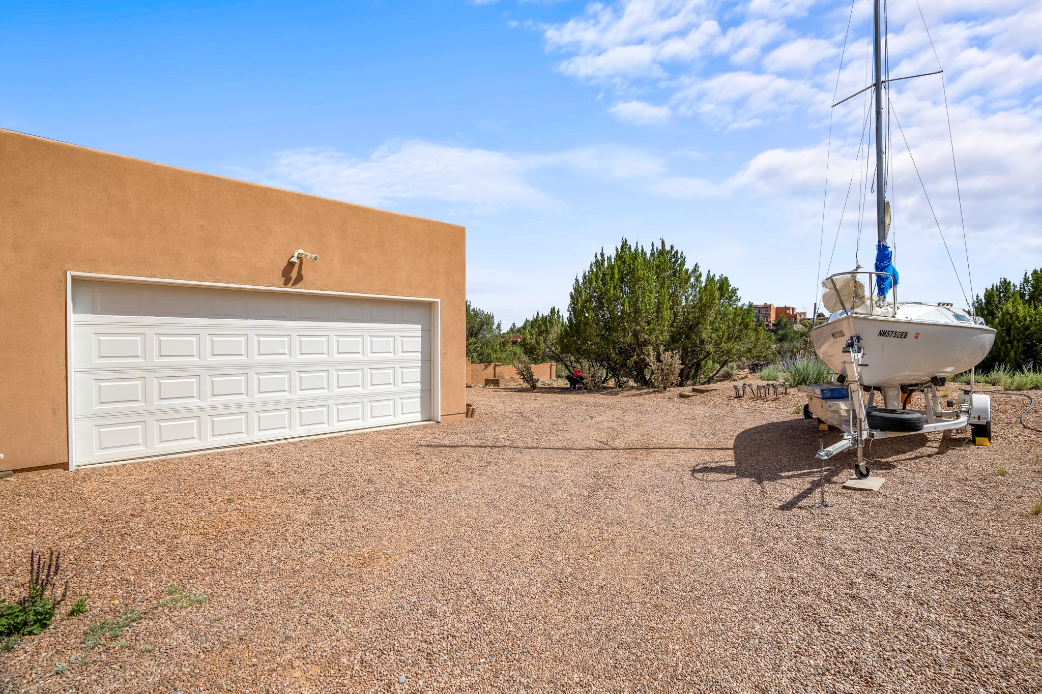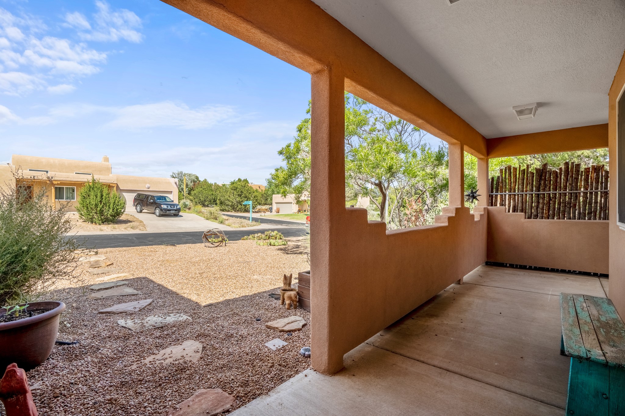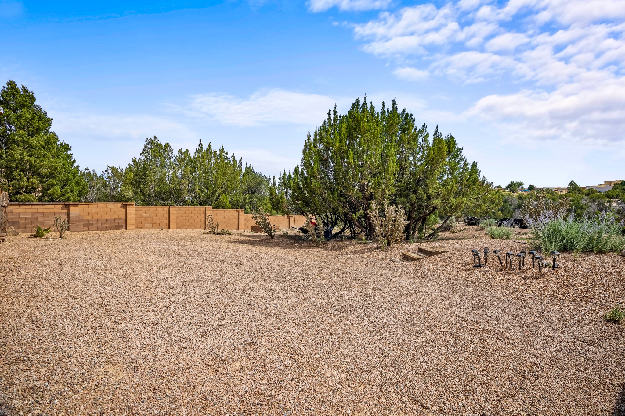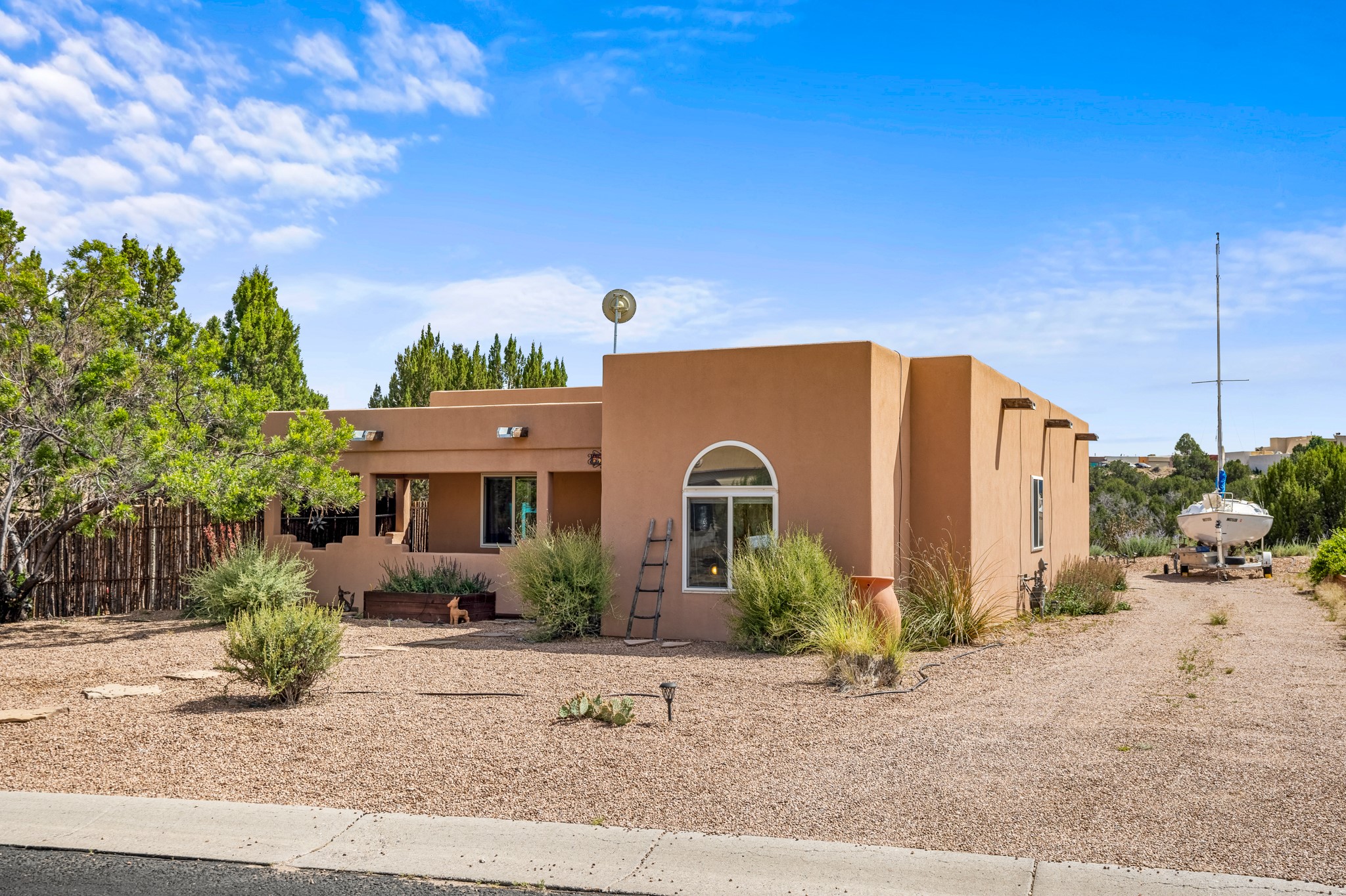 Very sweet, comfortable and well-cared for home between Santa Fe and ABQ. This community is known for its dramatic views, Cochiti Lake and golfing. Home was custom-built for the previous owner. Located on a 0.37 acre lot with a good sense of privacy. New coyote fence off the side of the home recently built for additional privacy and for pets. Minutes from the lake. Beautiful area for evening and morning walks. Open concept kitchen, dining and living area are comfortable and cozy. Garage is located behind the home which gives the home a nice look and entrance. Easy to care for property with an open, clean and natural area at the back of the home for additional outdoor living space. Really a sweet opportunity.