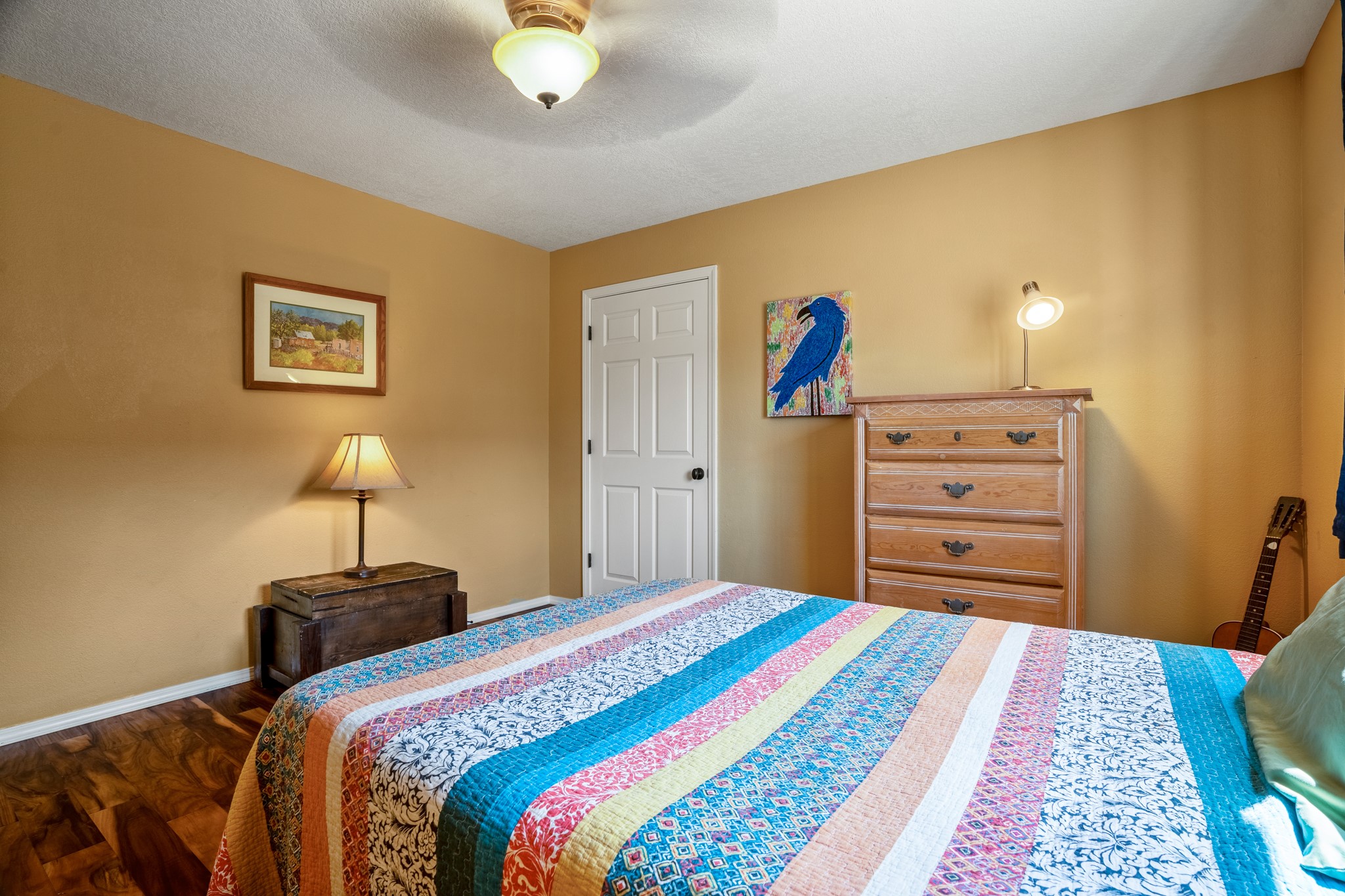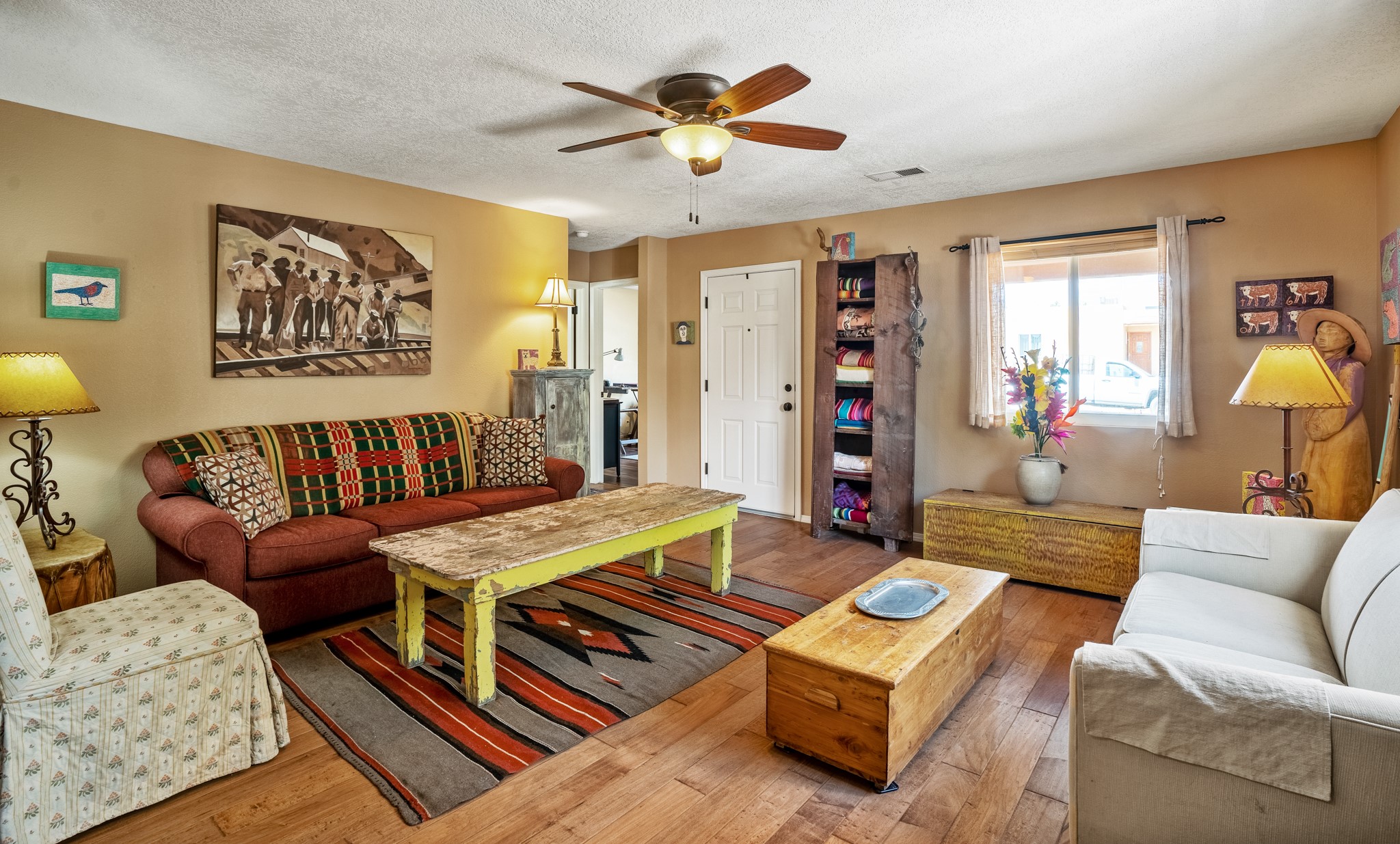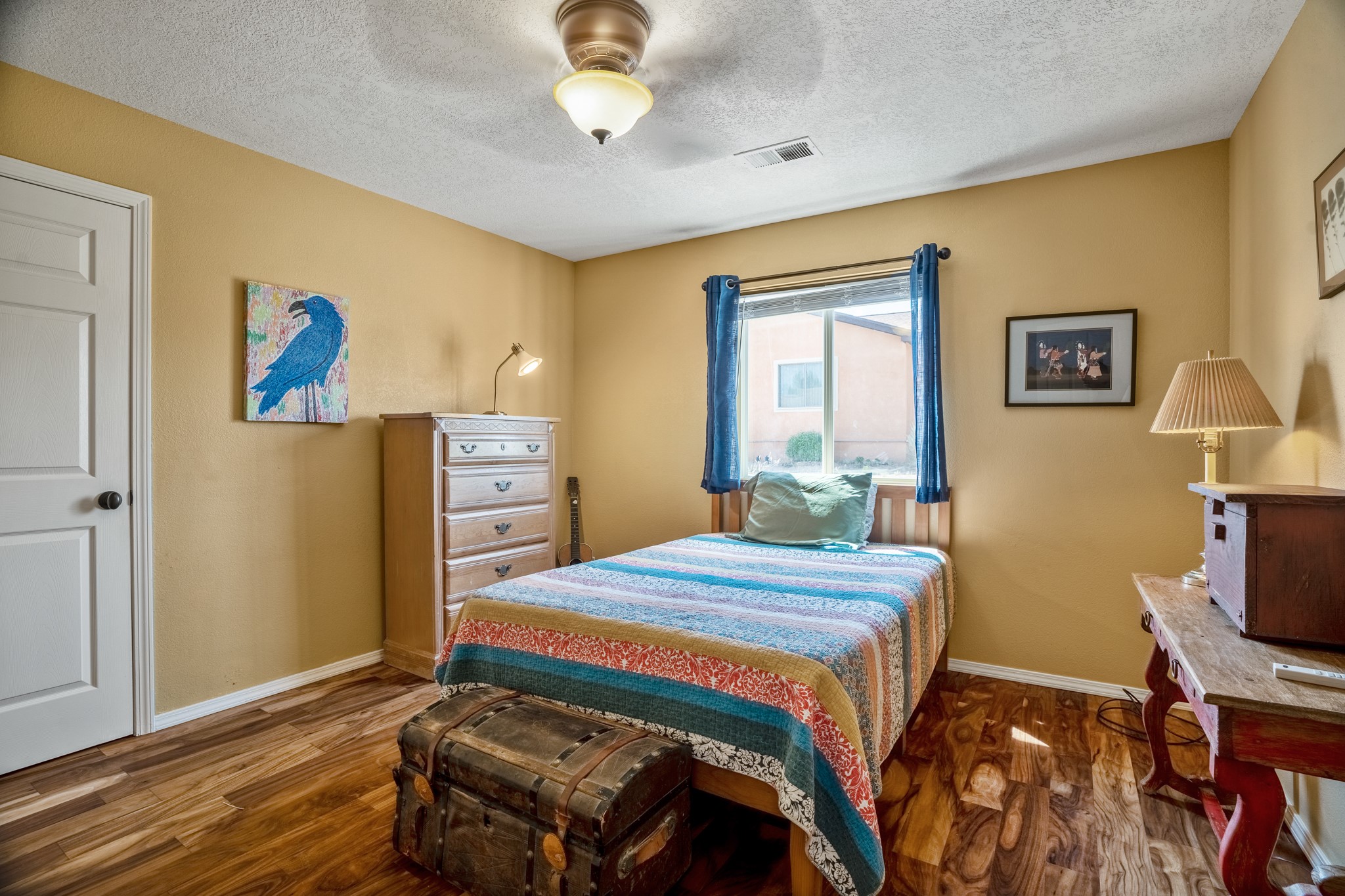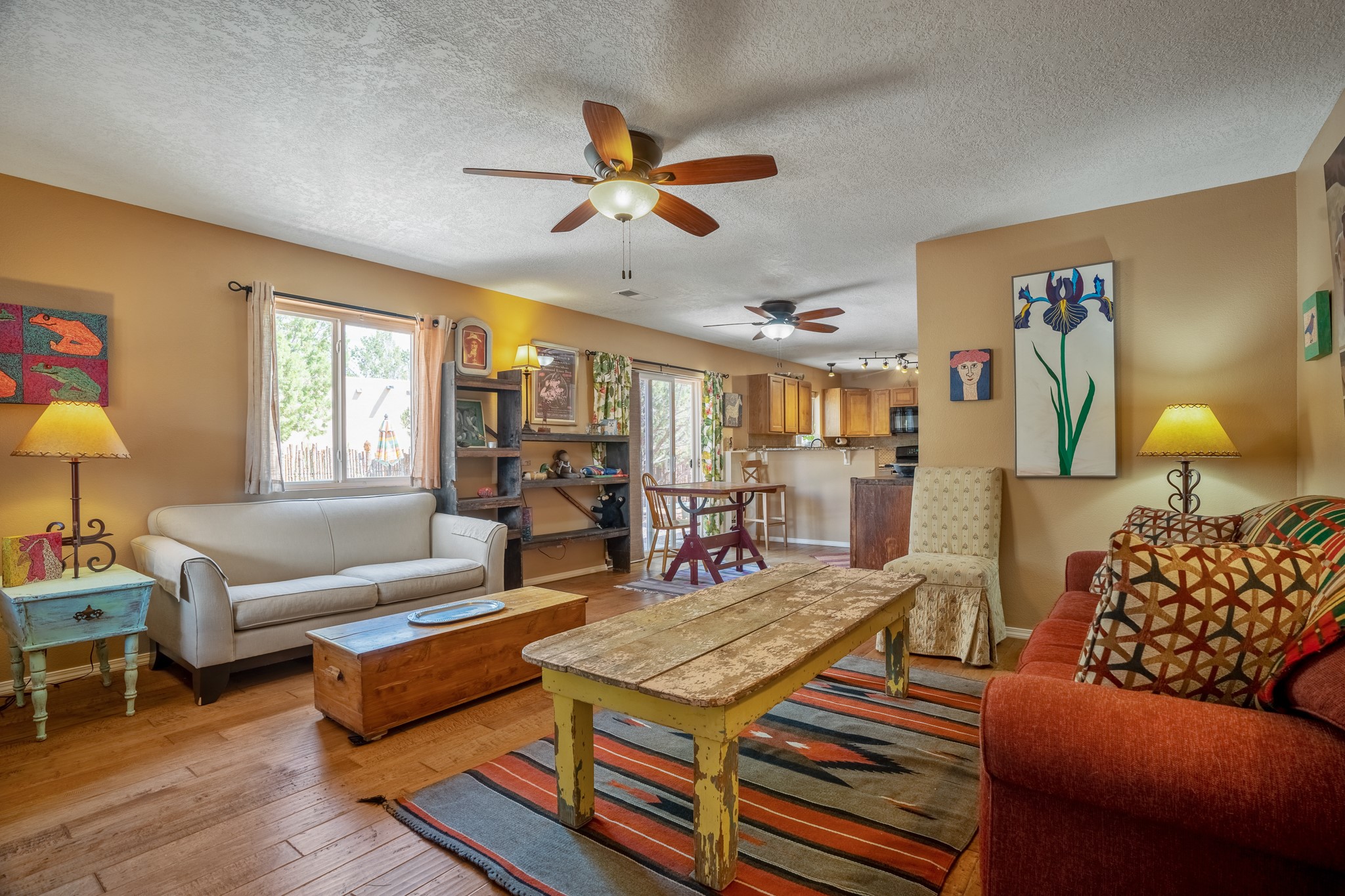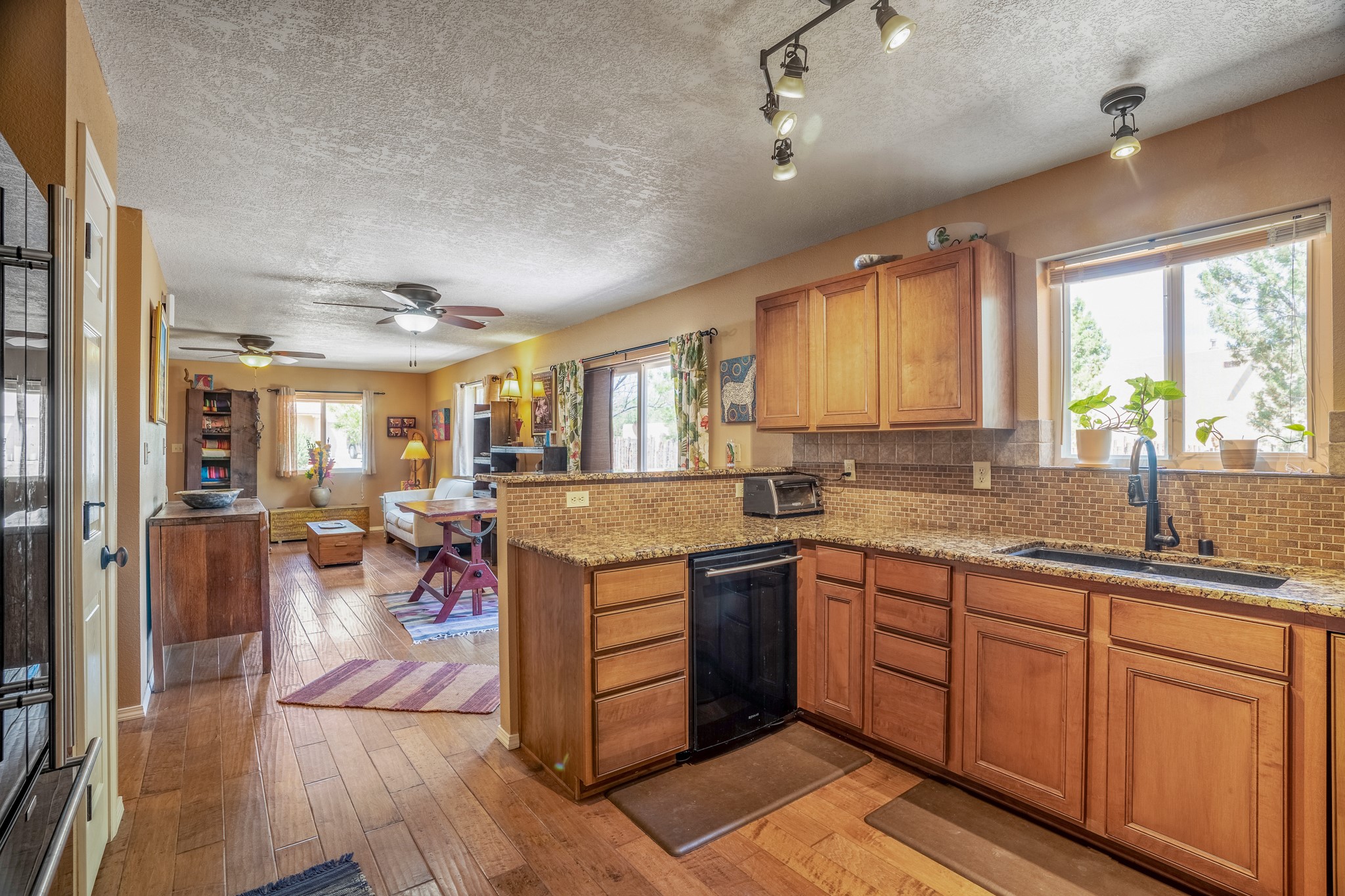 Very sweet, comfortable and well-cared for home between Santa Fe and ABQ. This community is known for its dramatic views, Cochiti Lake and golfing. Home was custom-built for the previous owner. Located on a 0.37 acre lot with a good sense of privacy. New coyote fence off the side of the home recently built for additional privacy and for pets. Minutes from the lake. Beautiful area for evening and morning walks. Open concept kitchen, dining and living area are comfortable and cozy. Garage is located behind the home which gives the home a nice look and entrance. Easy to care for property with an open, clean and natural area at the back of the home for additional outdoor living space. Really a sweet opportunity.