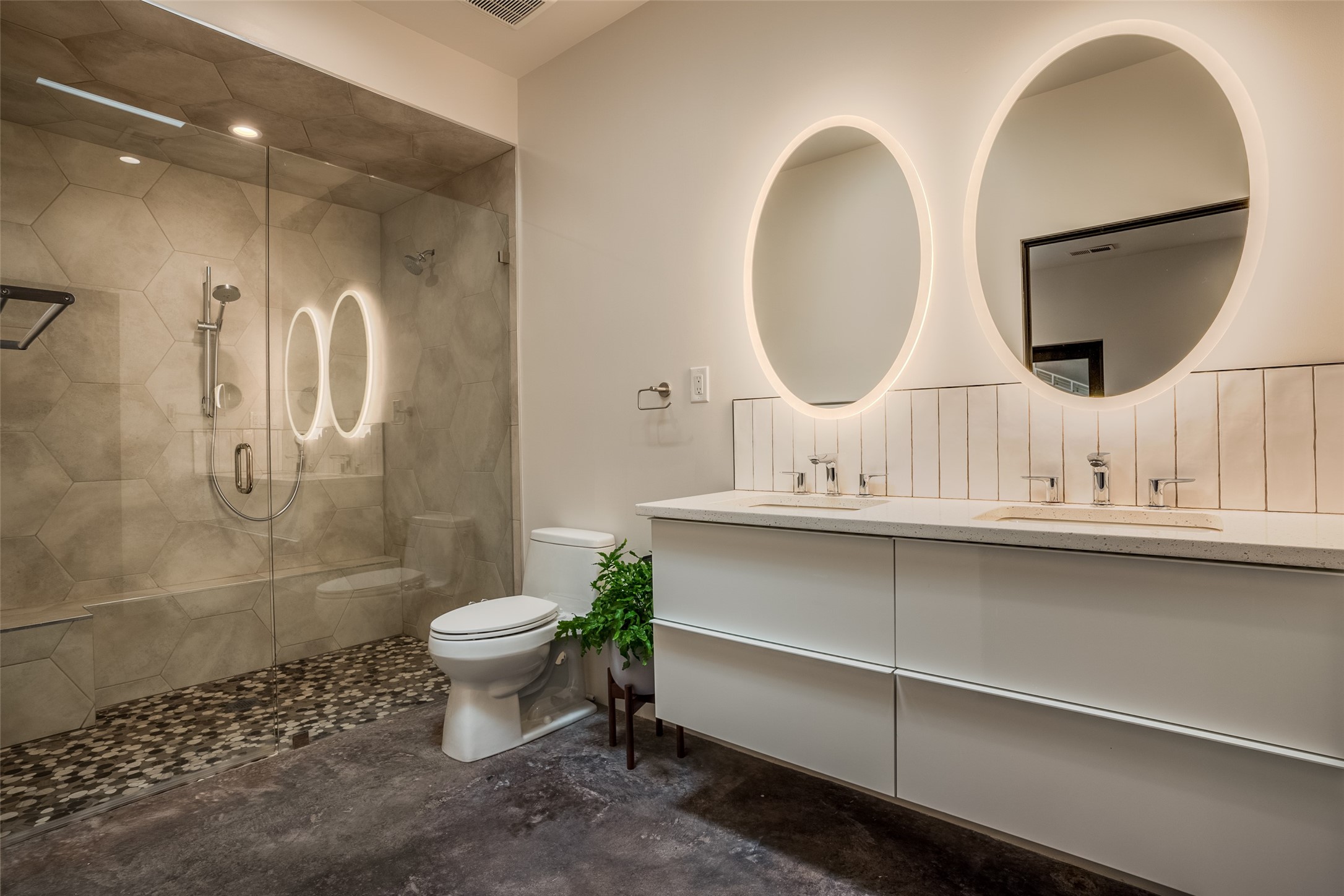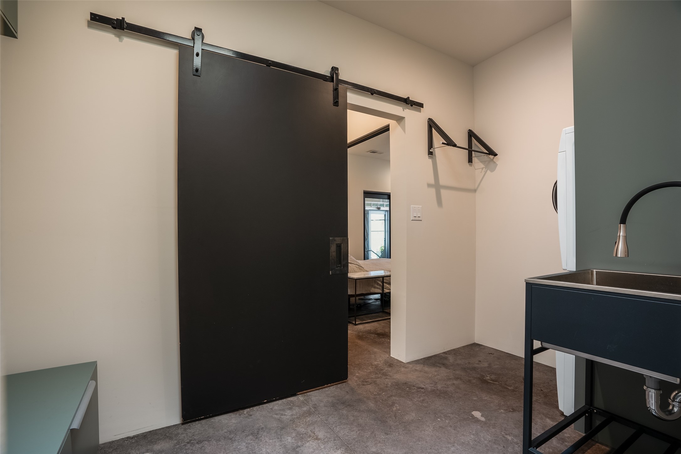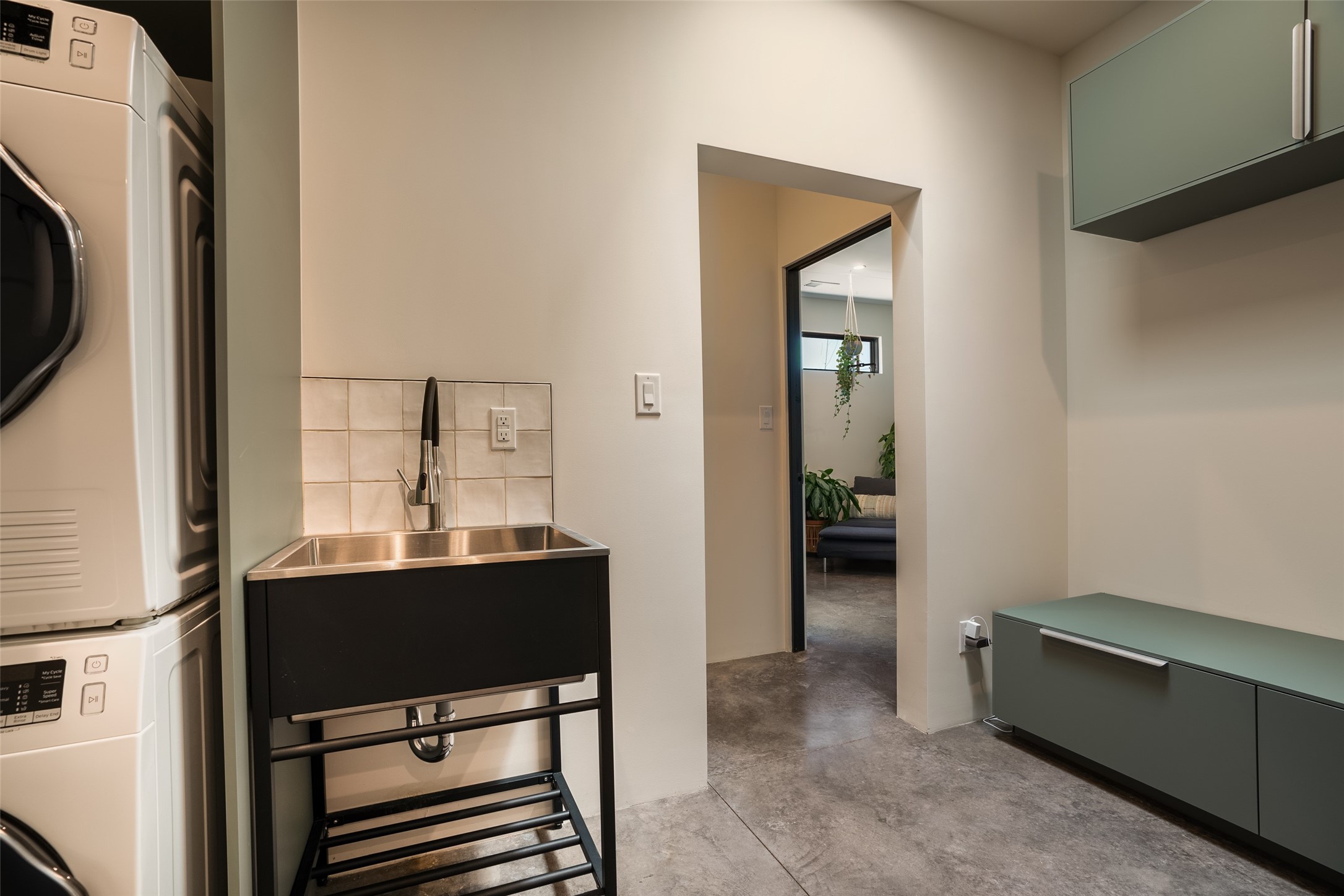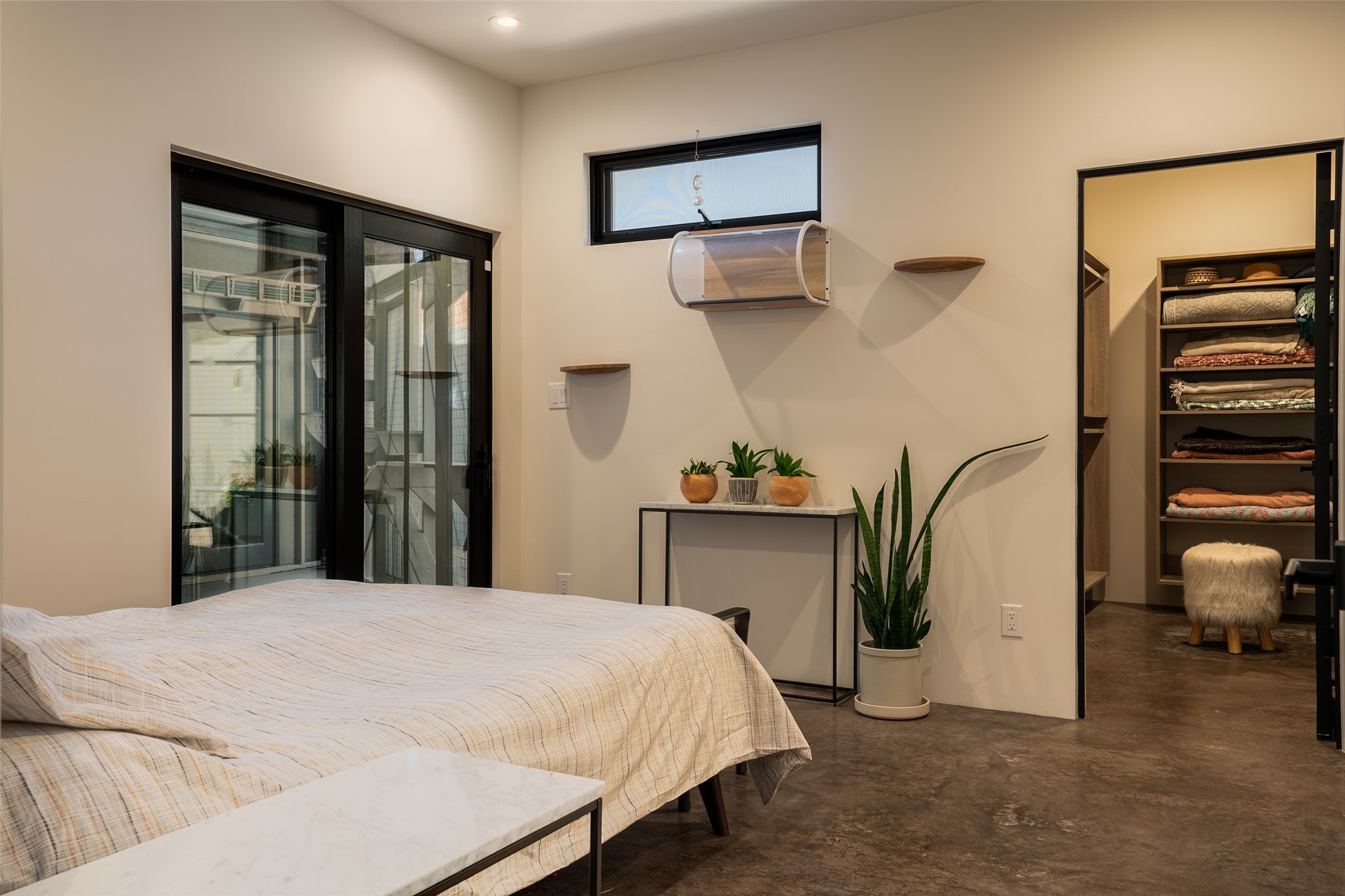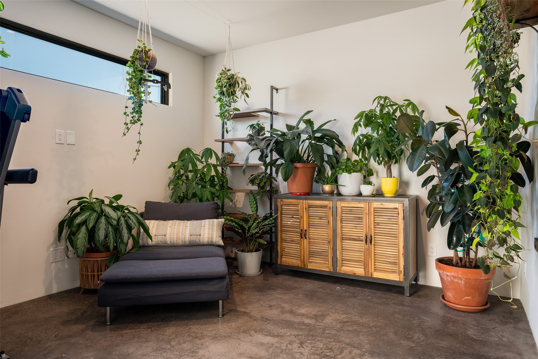 Built in 2021 by local builders, Acacia Builders, this home offers eye-catching contemporary, high-end finishes and amenities. Enter through an enclosed front yard to discover a gorgeous chef's kitchen / living area with gas insert fireplace (fireplace is hand built by a local artist and features ceramic glass doors), three bedrooms (2 ensuite), plus a dedicated office/bonus room with private entrance. The home is single level throughout, wired for high speed internet cat5 cables (in the office and one guest bedroom), has central heat & AC, energy efficient lighting and dimmers in hallways/all rooms, large windows that allow in abundant natural light, skylights throughout the house and garage, sleek bathroom and kitchen touches - including concrete & steel accents and gleaming white Quartz countertops. The open concept kitchen has an oversized Quartz island for food prep and hosting gatherings, there is warm colored concrete flooring throughout (no carpet), spacious laundry room, a secluded portal off of the primary suite & kitchen, extra high coyote and finished wall fencing, and an attached, spacious two car garage with an upgraded concrete parking apron. All of this in Oshara, a green built community convenient to the Community College district, Rodeo/Cerrillos Road area businesses and shopping. *Showings Available 7 days a week, 10am to 5pm, 3 hour notice. See remarks.*