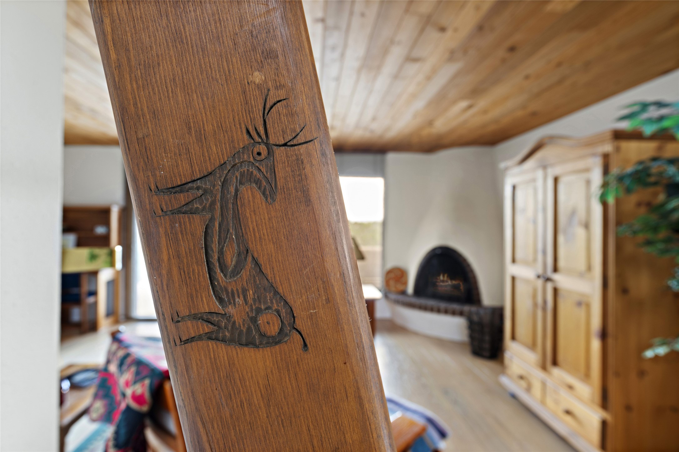 This architecturally stunning home is perfectly perched on a private 10+ acre La Tierra lot in a manner to accentuate the 360 views. Relish the captivating Sangre De Cristo mountains to the east, relax in the evening to the spectacular New Mexico sunsets over the Jemez Mountains to the west. This home was designed by Ted Luna to be both organic and time-less with interiors and exteriors in balanced harmony. The use of glass and materials brings the outside in. The floors are a combination of limestone and hardwood. Upon entering the home through a glorious front courtyard garden, you will note the magnificent front door which sets the stage for the soaring octagonal ceiling and huge windows framing the awesome views. The main home has 3 bedrooms, with the 2nd ensuite bedroom potentially a wonderful office with big windows and views. Except for the library loft, this home is one level with no interior steps. The primary bedroom suite also maximizes the huge views and features an oversized wood burning kiva fireplace. The private, attached casita has its own entry. The air-conditioned home has a 3 car oversized garage that is heated and also air conditioned. There is also a 24 X 12 outbuilding that serves as a garage space for a 4th vehicle. The totally electric home, has solar installed, that causes the utility cost to be a fraction of what a similar sized home would be. And one can have this private setting, with the magnificent views, yet be less than 15 minutes to town.
