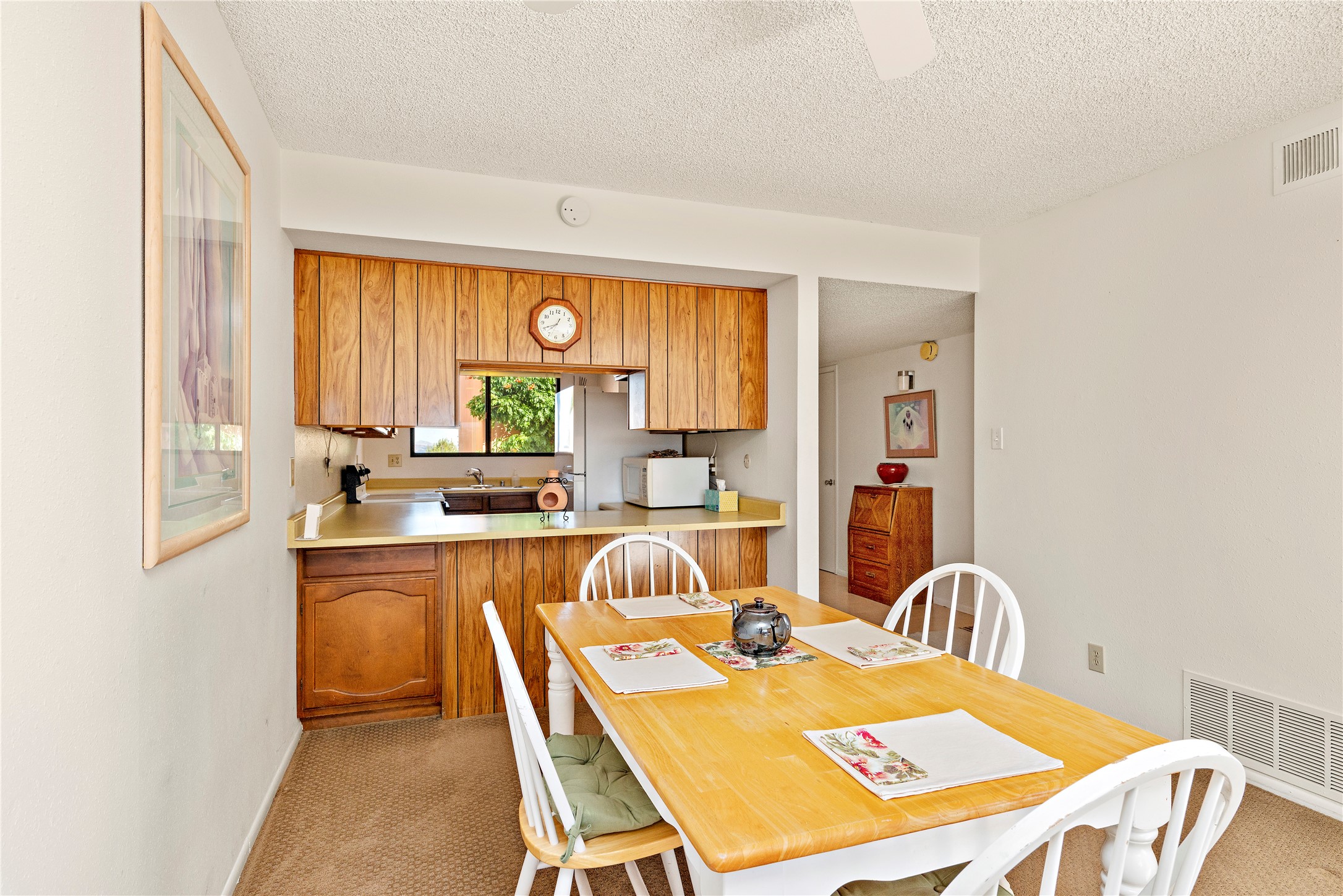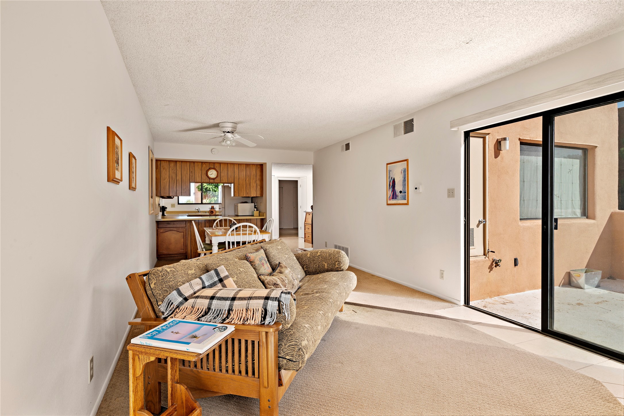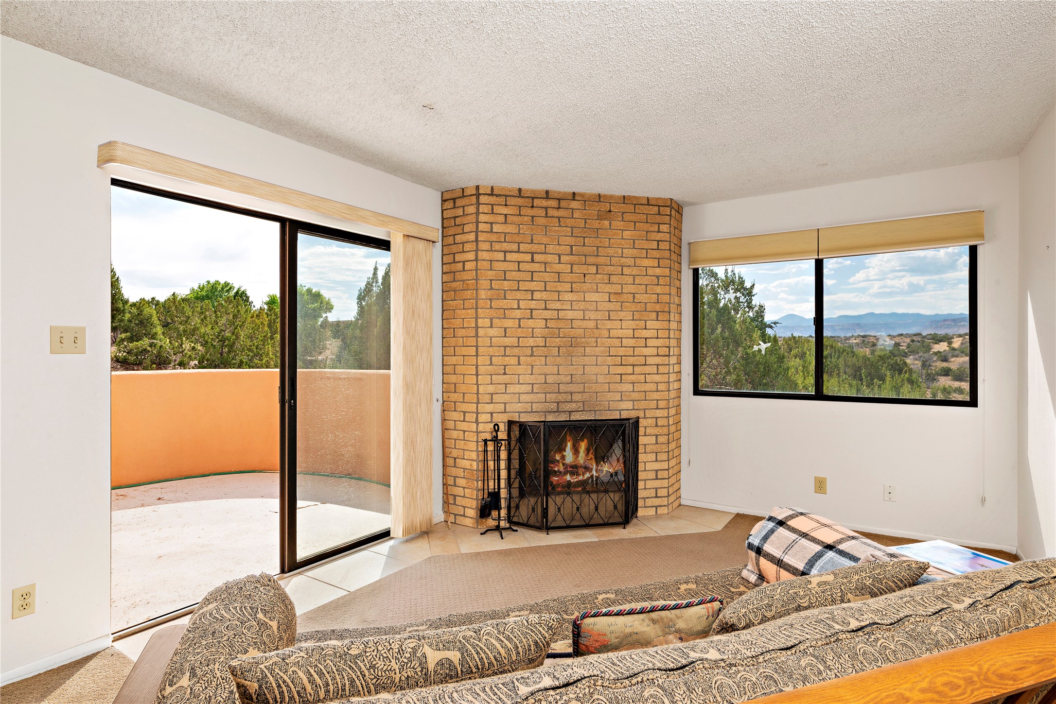 Affordable Cochiti Lake townhome with outstanding views. Here's a perfect 2 bed, 2 bath starter home, pied-a-terre, or manageable footprint to downsize into. Perched high in the 99-year lease community, it captures fantastic southwestern views toward the Jemez mountains and St. Peter's Dome. A detached 2-car garage provides a welcoming and private courtyard entrance. The smartly designed floor-plan includes a spacious front entrance, open kitchen pass-through, brick fireplace in the living room, and enclosed, walk-out patio. Located close to the lake and nearby, award-winning golf course. Schedule your showing before it's gone!