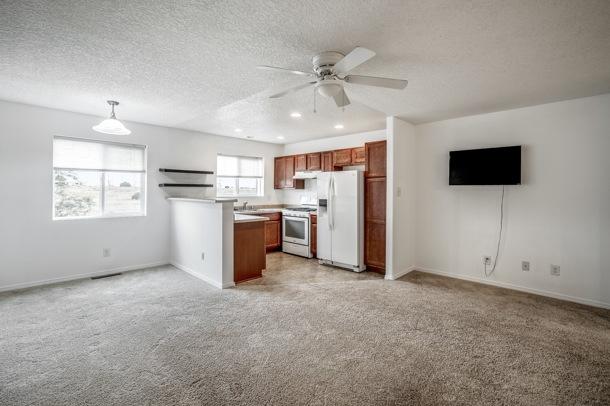Ideal spot, great investment in Turquoise Trail offers Views, a flexible layout & features Kitchen-Living Room, Bedroom, Bathroom, Laundry room, TV, New Dishwasher, on the top floor. Lower level offers Flex Room, Bathroom, a cozy covered patio, a generous fully landscaped backyard, ample storage, annual roof maintenance, & a 1 car garage.Home design makes living easy & unbeatable location to Santa Fe, I-25, 599, Albuquerque, Rail Runner Station, Hospitals, Schools, Restaurants, Parks/Trails, Hiking/Biking, & Airport. APPRAISED @ $335,000.