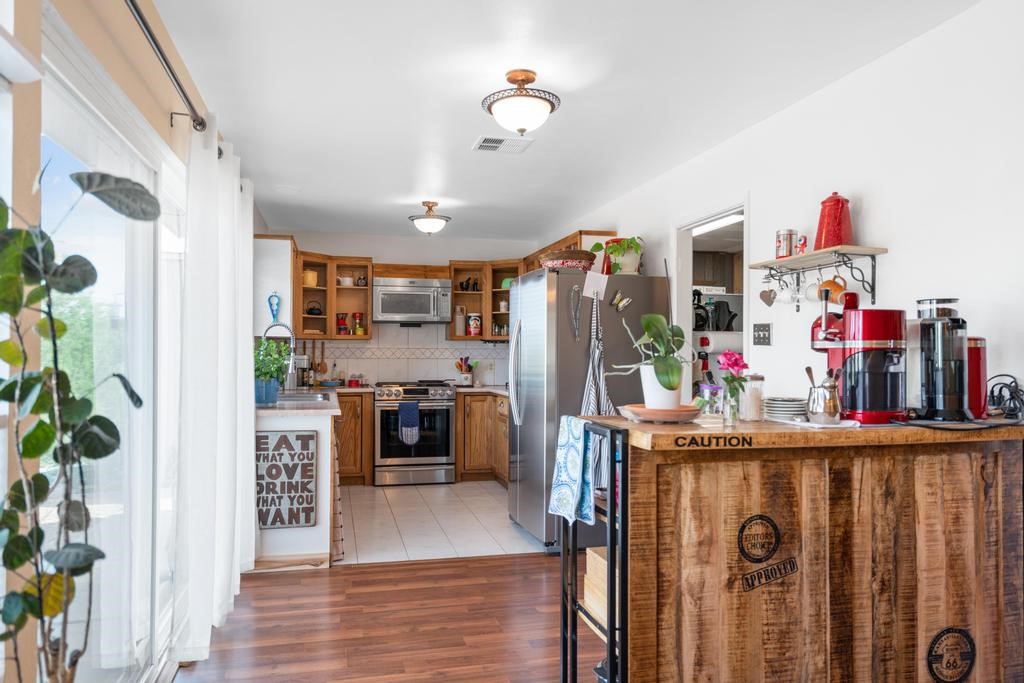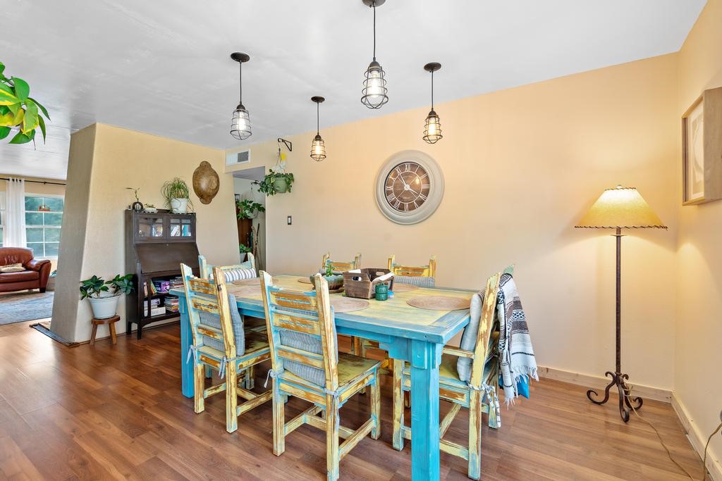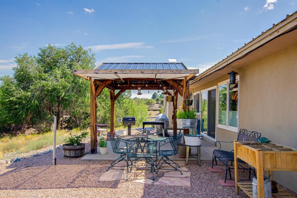 Welcome to this beautifully updated gem of a home in peaceful Cochiti Lake, NM! This three bedroom, two bath, about 1600 square foot home resides on a large, corner .26 acre lot. The many upgrades to this home include a new roof with a transferable warranty, new stucco, a new Lennox furnace and A/C, new laminate flooring (with extra available), new fridge and gas stove, new farm doors, fresh paint and the list goes one. The garage has been converted into an amazing large and light- filled studio space that can be used as an art studio, den, or office with beautiful French doors for easy access. Enjoy the local fishing hot spot of Cochiti Lake and one of New Mexico's top golfing destinations: the Pueblo de Cochiti Golf Course. This home is ready to go and is located near Santa Fe or an easy drive to Albuquerque. Schedule your showing today.