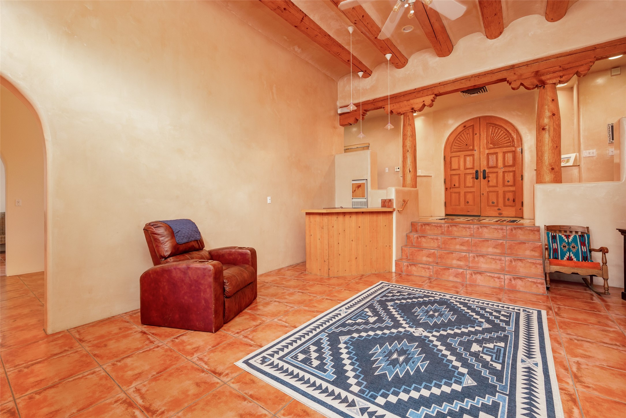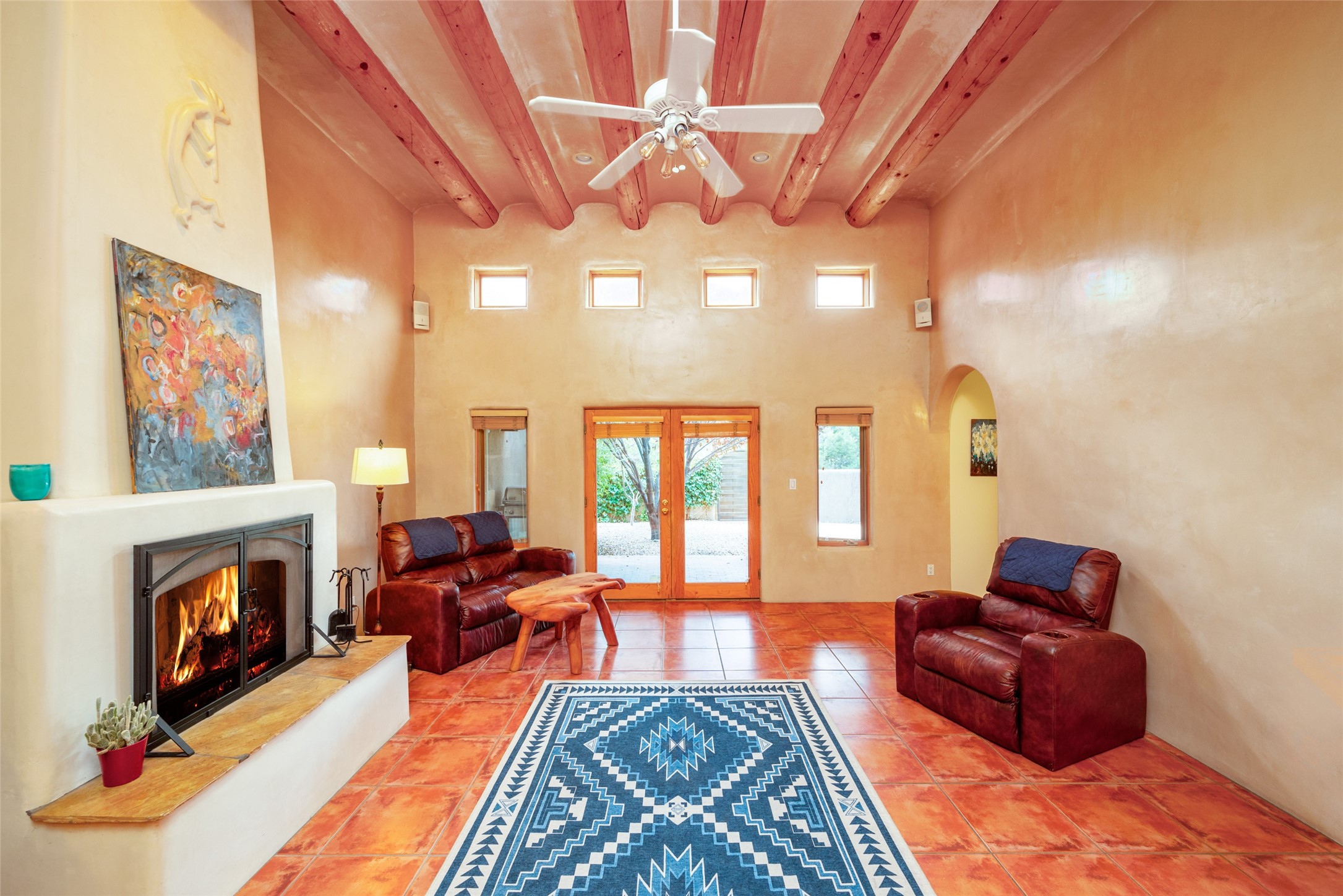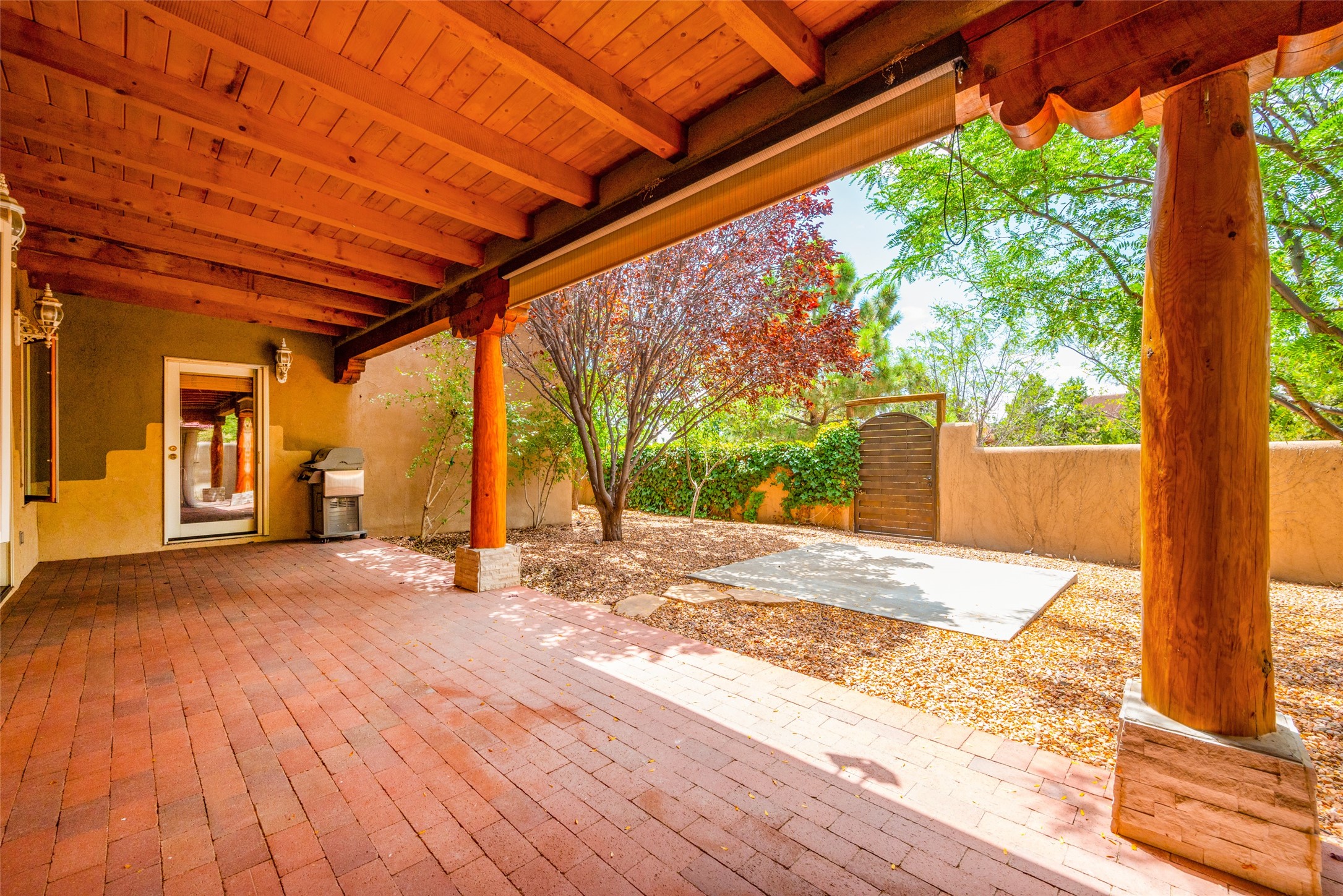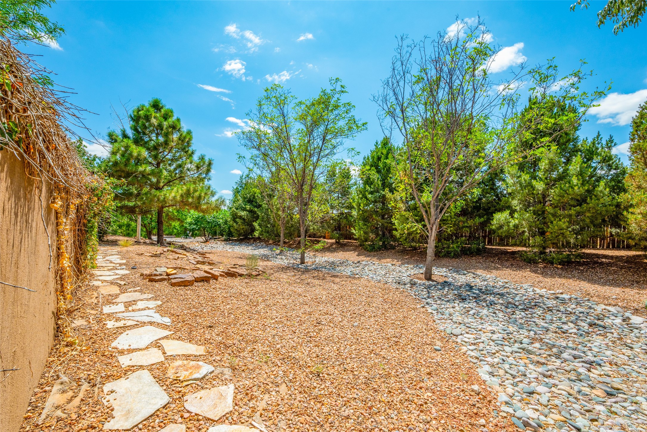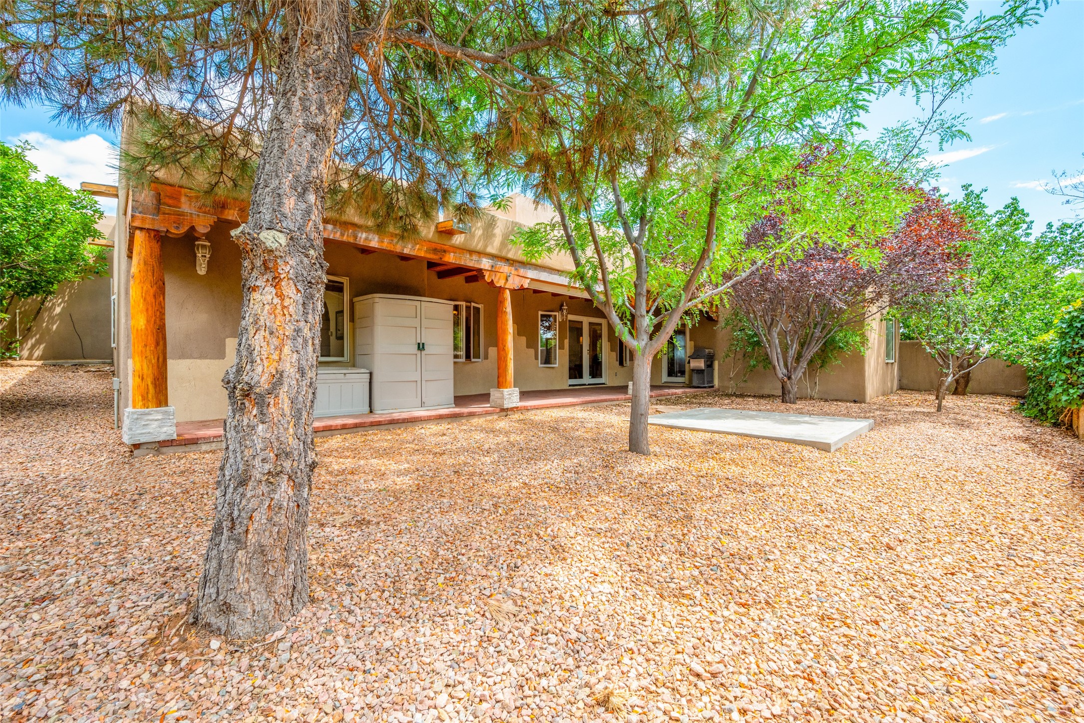 Nestled on a 1/3 acre lot, this charming pueblo-style residence boasts 3 bedrooms and 2 1/2 baths. Inside, enjoy the elegance of plaster-finished interiors, accented by coved vigas. The living area features a convenient wet bar, while the ample formal dining room, breakfast nook, and spacious kitchen make living easy. A few steps lead to the serene primary bedroom suite, adorned with a kiva fireplace, generous bath, and walk-in closet. The guest wing, situated on the entry level, ensures privacy. Outside, mature landscaping, fruit trees, and a vast back portal create a peaceful haven. With radiant heat, evaporative cooling, and a double garage, this well-maintained home is ready to welcome you. County Assessor shows the square footage at 2738 which differs from the floor plan provided. Neither Listing Brokers nor Sellers warrant the square footage of the home or lot. If size of the home or lot are of material consideration to the Buyer, then the Buyer should have them measured. Tax Levy is from the Assessor website. All fires depicted are photo-shopped. Buyer to verify functionality of the fireplaces.