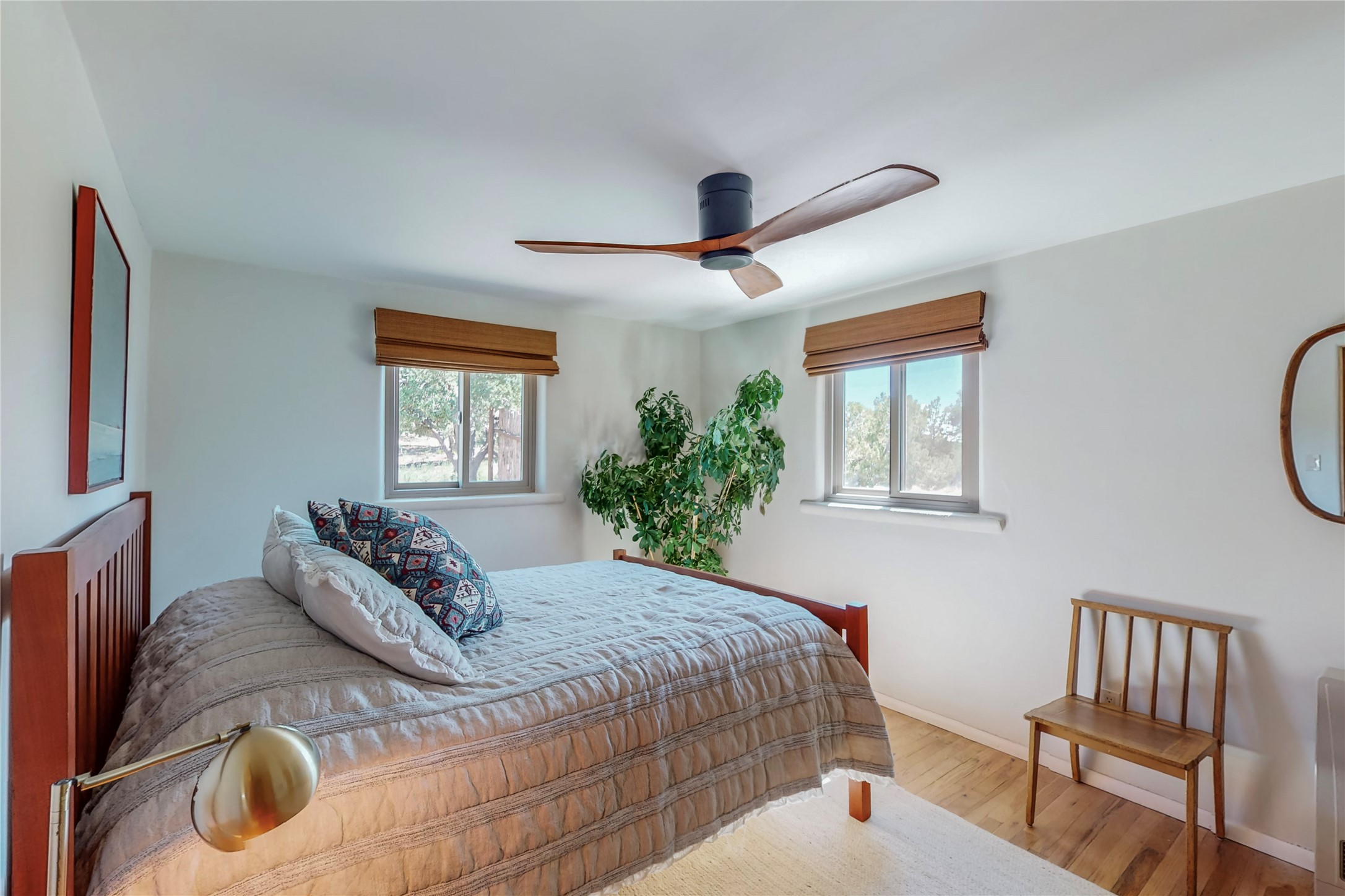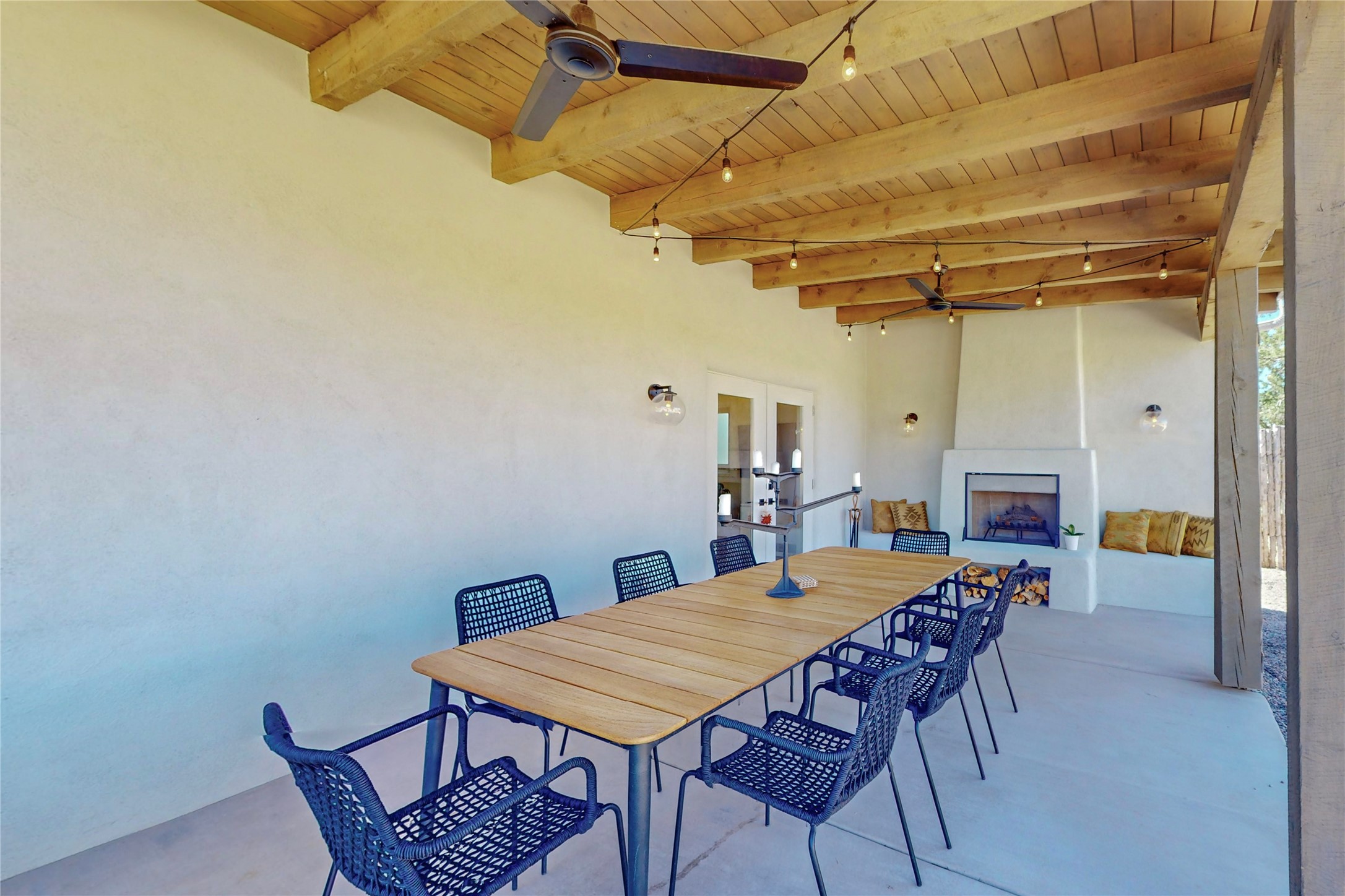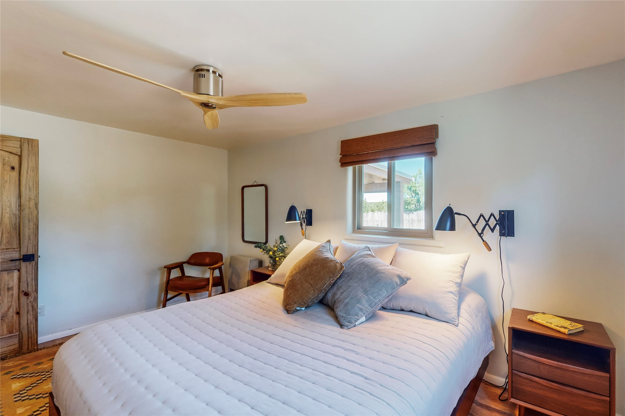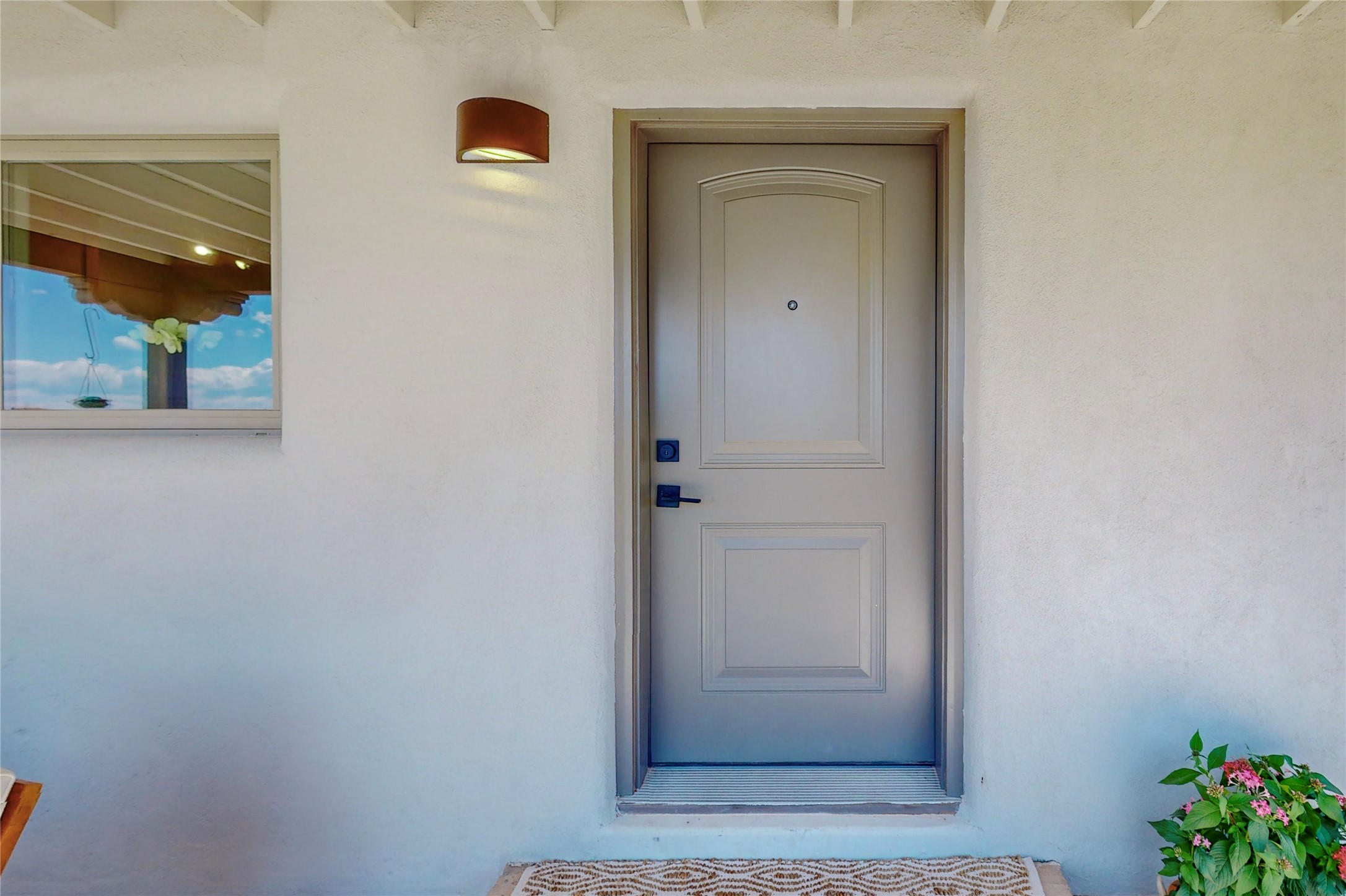Charming Adobe home on 1.4 acres, just 2.5 miles to the Plaza. Some mountain views. Only a 3-minute drive to Frank Ortiz Dog Park and walk/ride out the back of the property and through the tunnel and you are on the La Tierra Trails. This authentic Adobe construction stays warm in the winter and cool in the summer. Upon entering this lovely home, you will be greeted by a completely remodeled kitchen (2022) with all-new stainless appliances, maple cabinets, and white quartz countertops. In 2021, Seller added a wood-burning Kiva that is currently using gas logs with a remote start. Also added in 2021 is a 300 sf Portal with another wood-burning fireplace. Enjoy a fire while relaxing in the 5-person Tuff Spas hot tub. No HOA. The seller will share architectural plans for an ensuite bath approved by the City in 2021. Add a roof-top deck, and you will have 360-degree mountain views. You could even add a Casita or shop (with City approval.) This home is convenient to everything, including grocery stores, restaurants, DeVargas Mall and 599 for those commuting to Los Alamos. 50 mil membrane Roof installed in 2018. Transferrable warranty with 10 years remaining.
