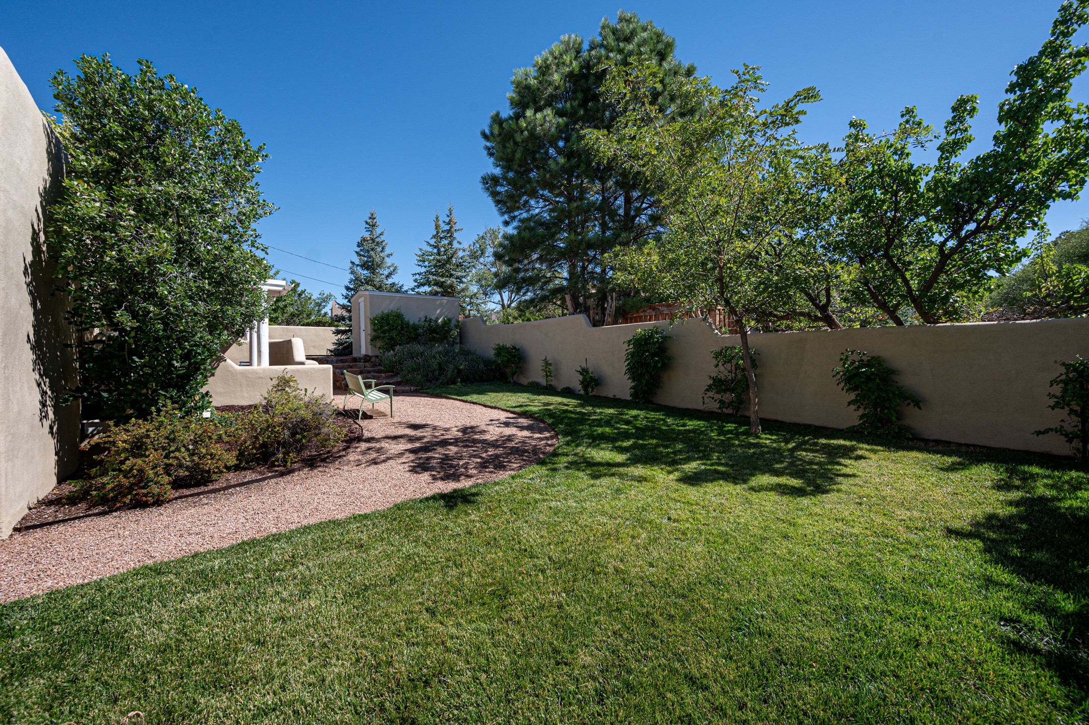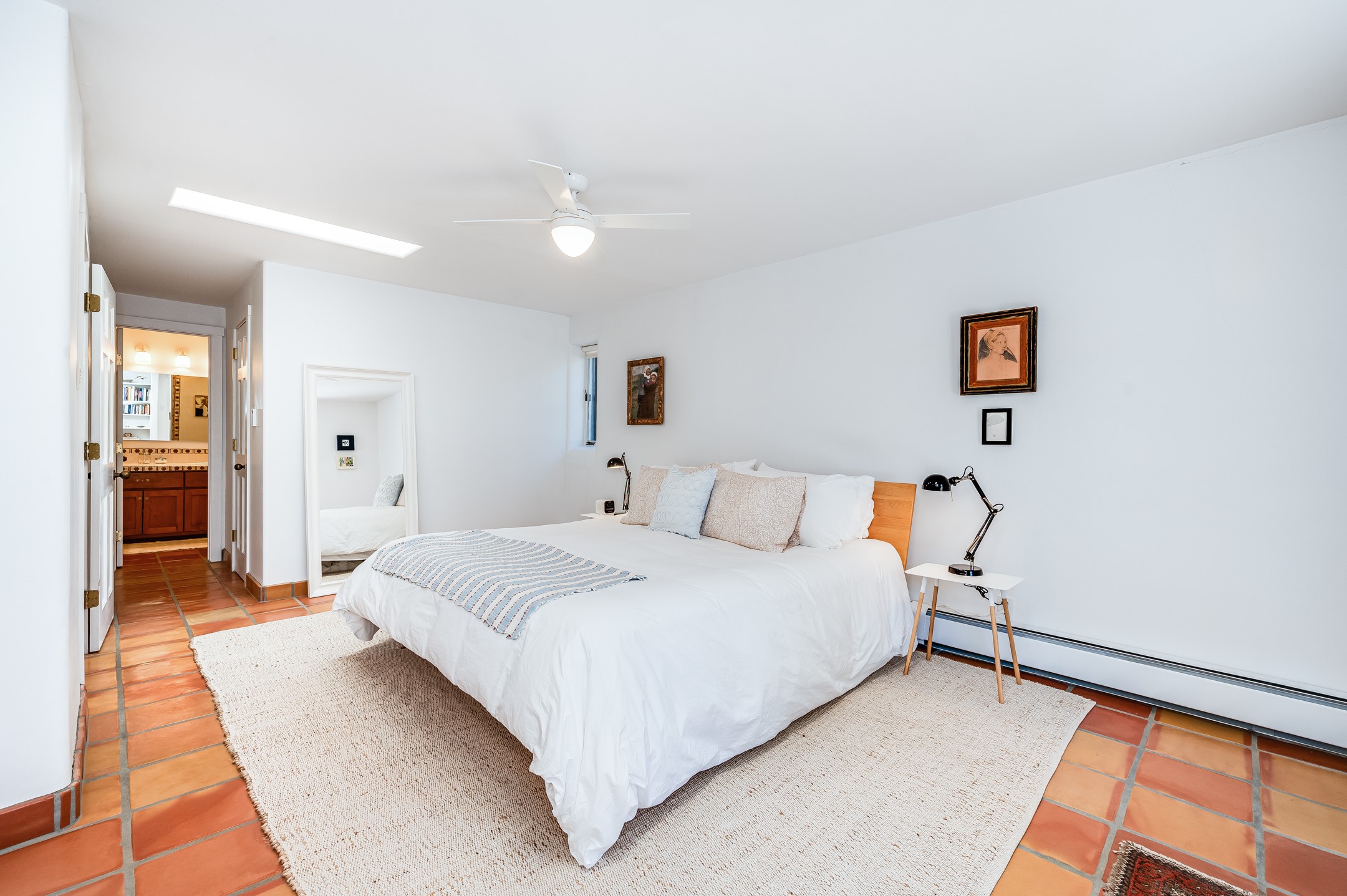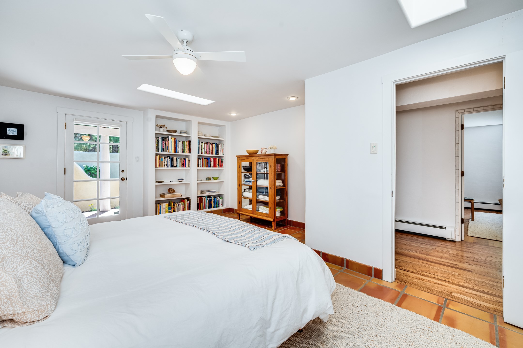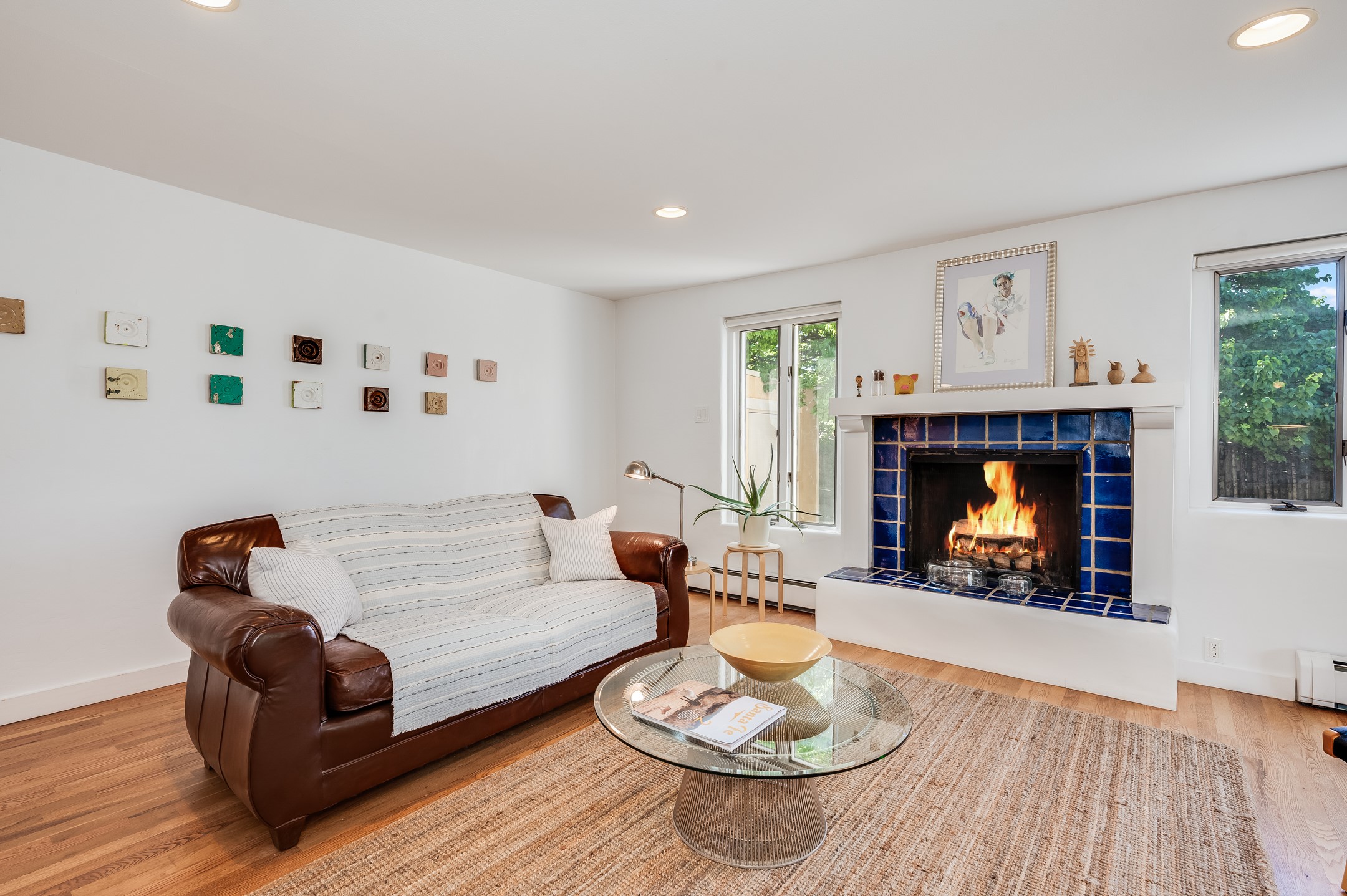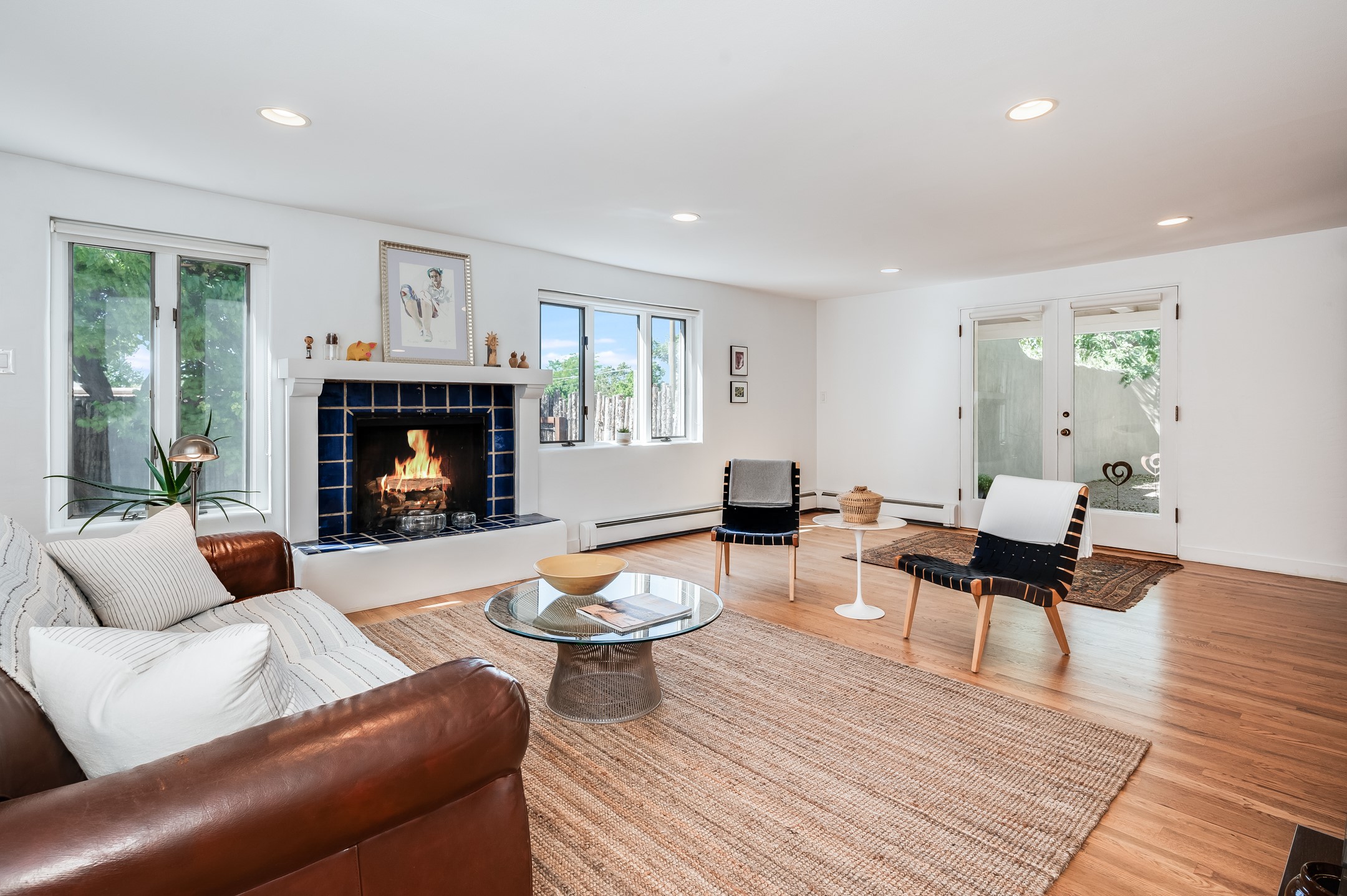 Serene and tranquil Historic Eastside hideaway. This mostly adobe dwelling, tucked among meandering gardens with views of Picacho Peak, sits unassumingly behind high walls and vintage wood doors. Unwind, entertain, work or create in intimate interior and exterior spaces. An eat-in kitchen--with great storage and Kitchenaid appliances--opens to the front west portal and courtyard. The primary bedroom opens to a cozy east portal. Bask in the natural and formerly pastoral surrounds while being close to town. Enclosed property. No indoor steps. Mature trees: aspens, pion, apple, apricot, cherry, ornamental pear and a spectacular blue spruce. Irrigation system. Four off-street parking spaces. Two free-standing exterior stucco buildings on slab foundations can be used for workshops or storage. Walk to Canyon Road, downtown, quiet river trails and Patrick Smith, Cerro Gordo and the Water History parks. Nearby hiking, walking, wildlife watching and birding: The Nature Conservancy's 525-acre Santa Fe Canyon Preserve and trails, The Randall Davey Audubon Center and Dale Ball trails.