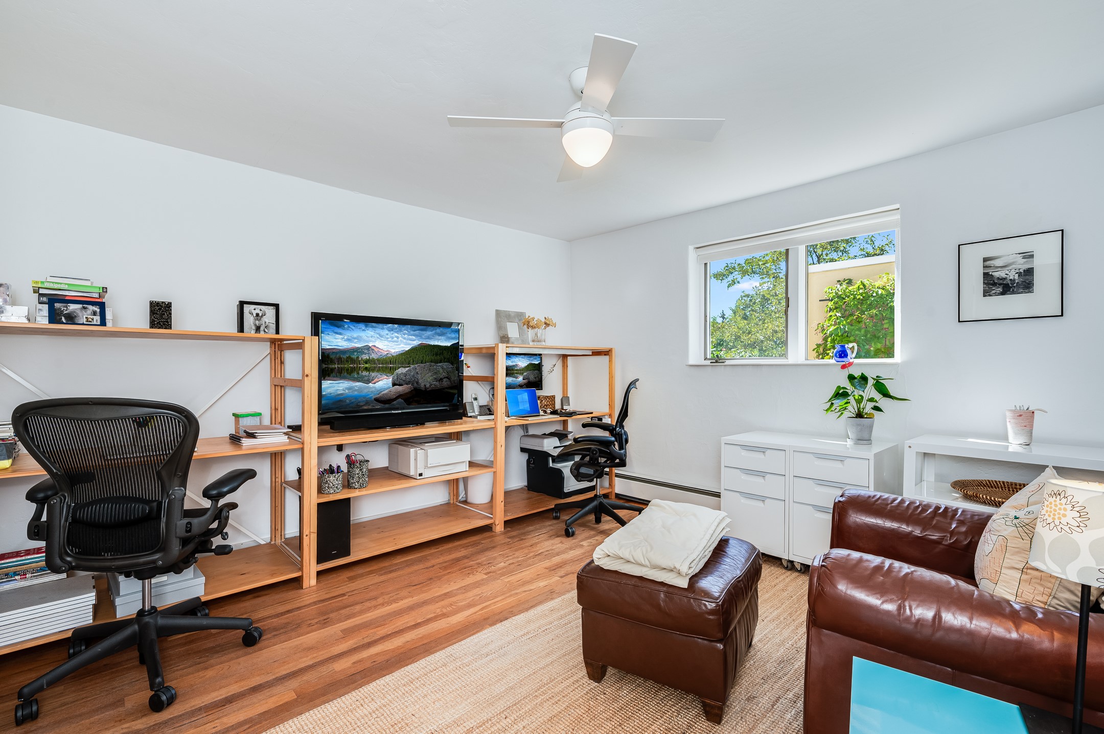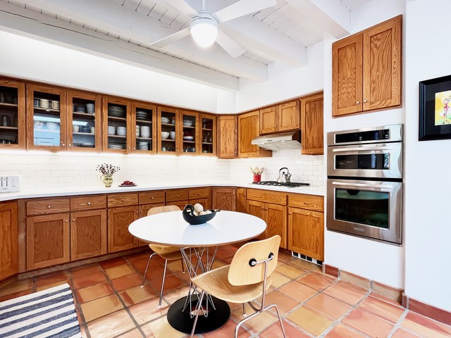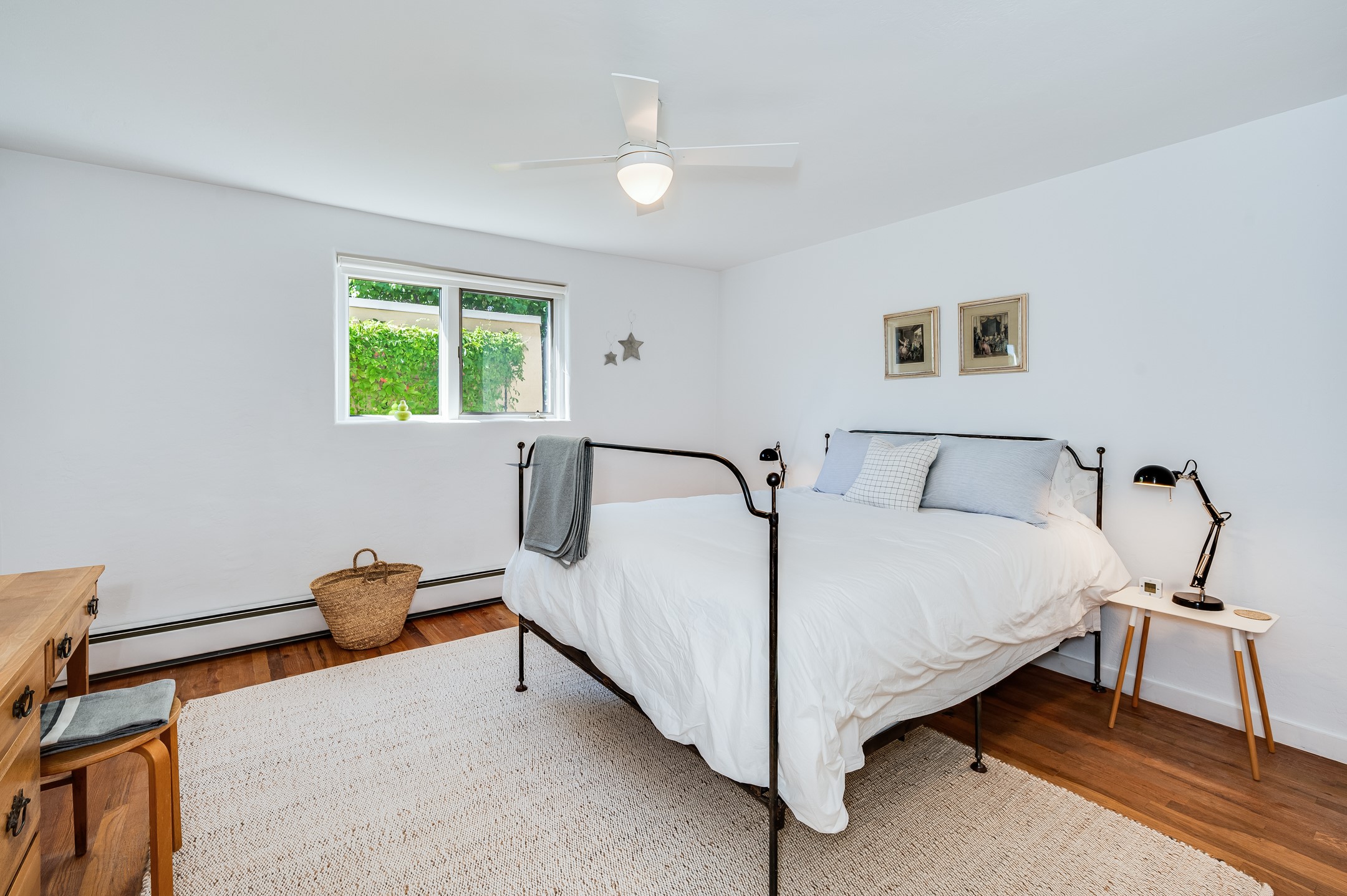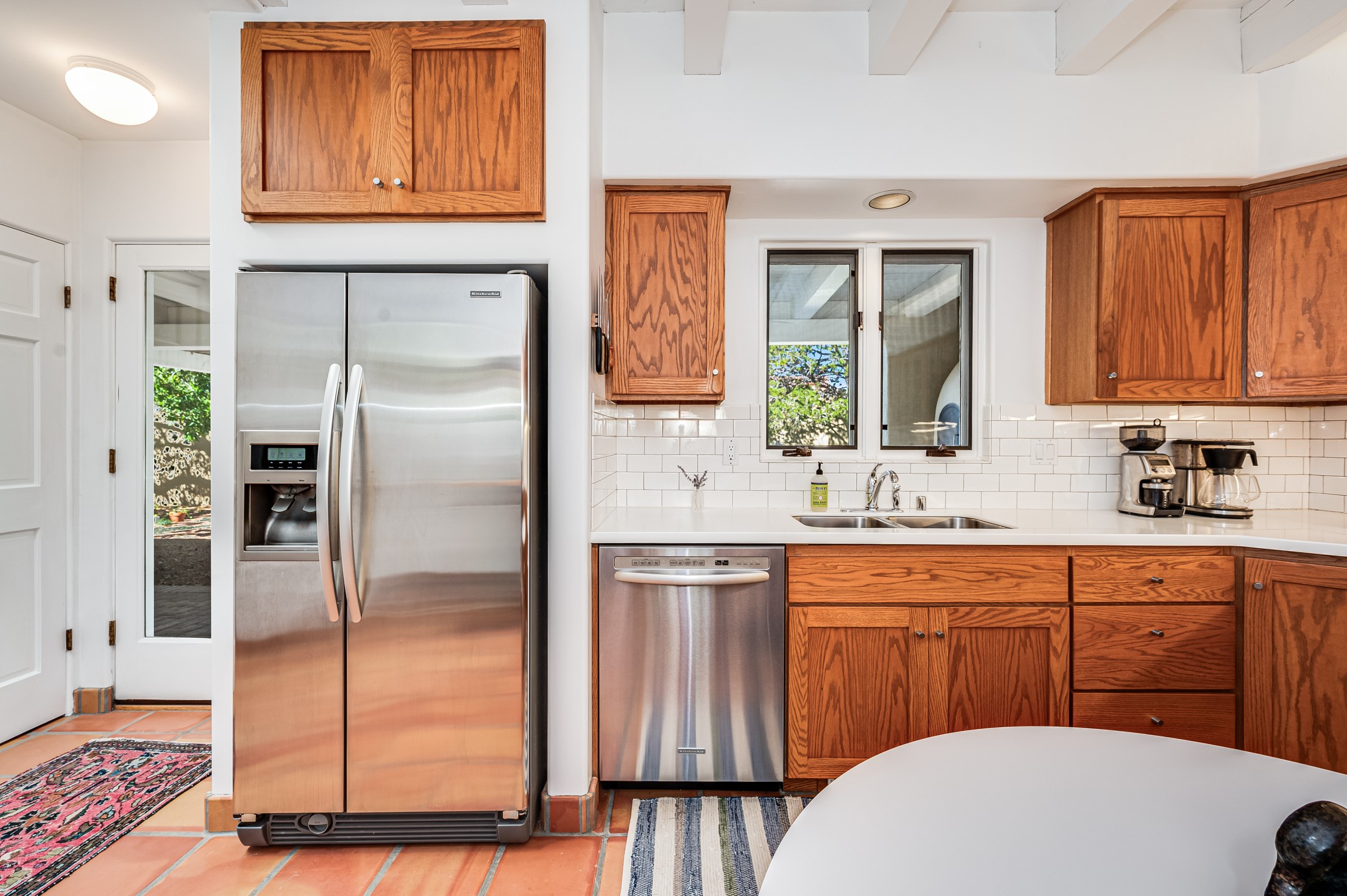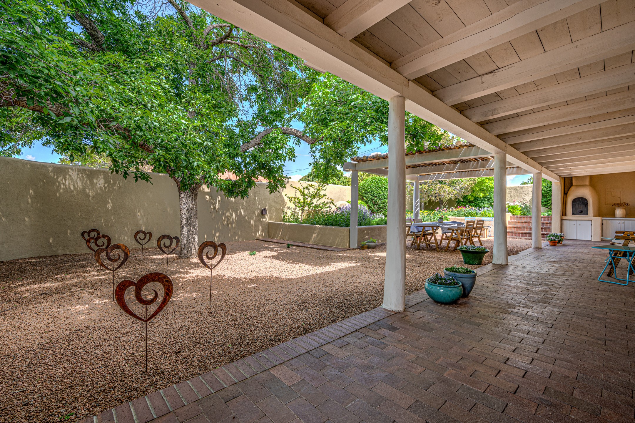 Serene and tranquil Historic Eastside hideaway. This mostly adobe dwelling, tucked among meandering gardens with views of Picacho Peak, sits unassumingly behind high walls and vintage wood doors. Unwind, entertain, work or create in intimate interior and exterior spaces. An eat-in kitchen--with great storage and Kitchenaid appliances--opens to the front west portal and courtyard. The primary bedroom opens to a cozy east portal. Bask in the natural and formerly pastoral surrounds while being close to town. Enclosed property. No indoor steps. Mature trees: aspens, pion, apple, apricot, cherry, ornamental pear and a spectacular blue spruce. Irrigation system. Four off-street parking spaces. Two free-standing exterior stucco buildings on slab foundations can be used for workshops or storage. Walk to Canyon Road, downtown, quiet river trails and Patrick Smith, Cerro Gordo and the Water History parks. Nearby hiking, walking, wildlife watching and birding: The Nature Conservancy's 525-acre Santa Fe Canyon Preserve and trails, The Randall Davey Audubon Center and Dale Ball trails.