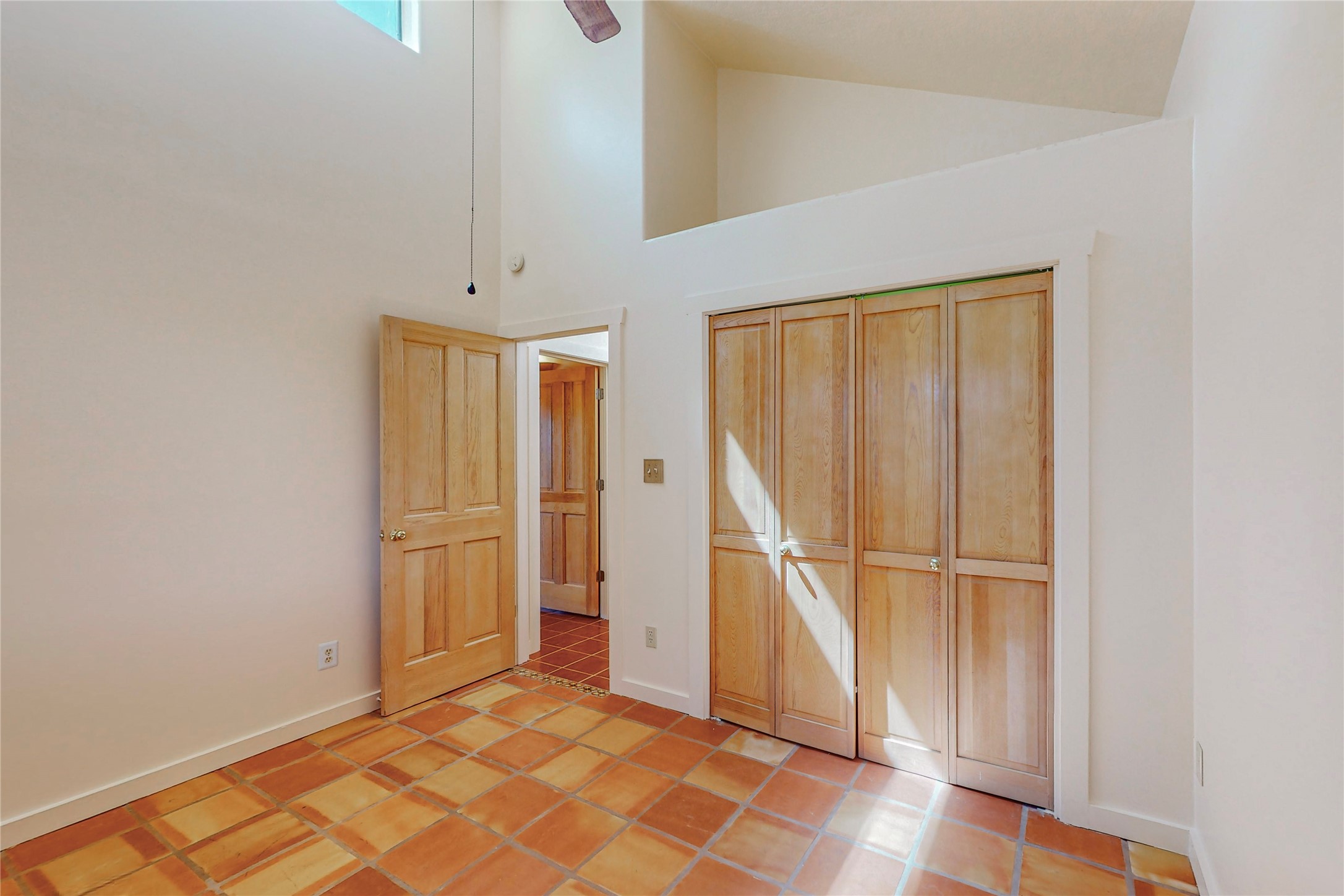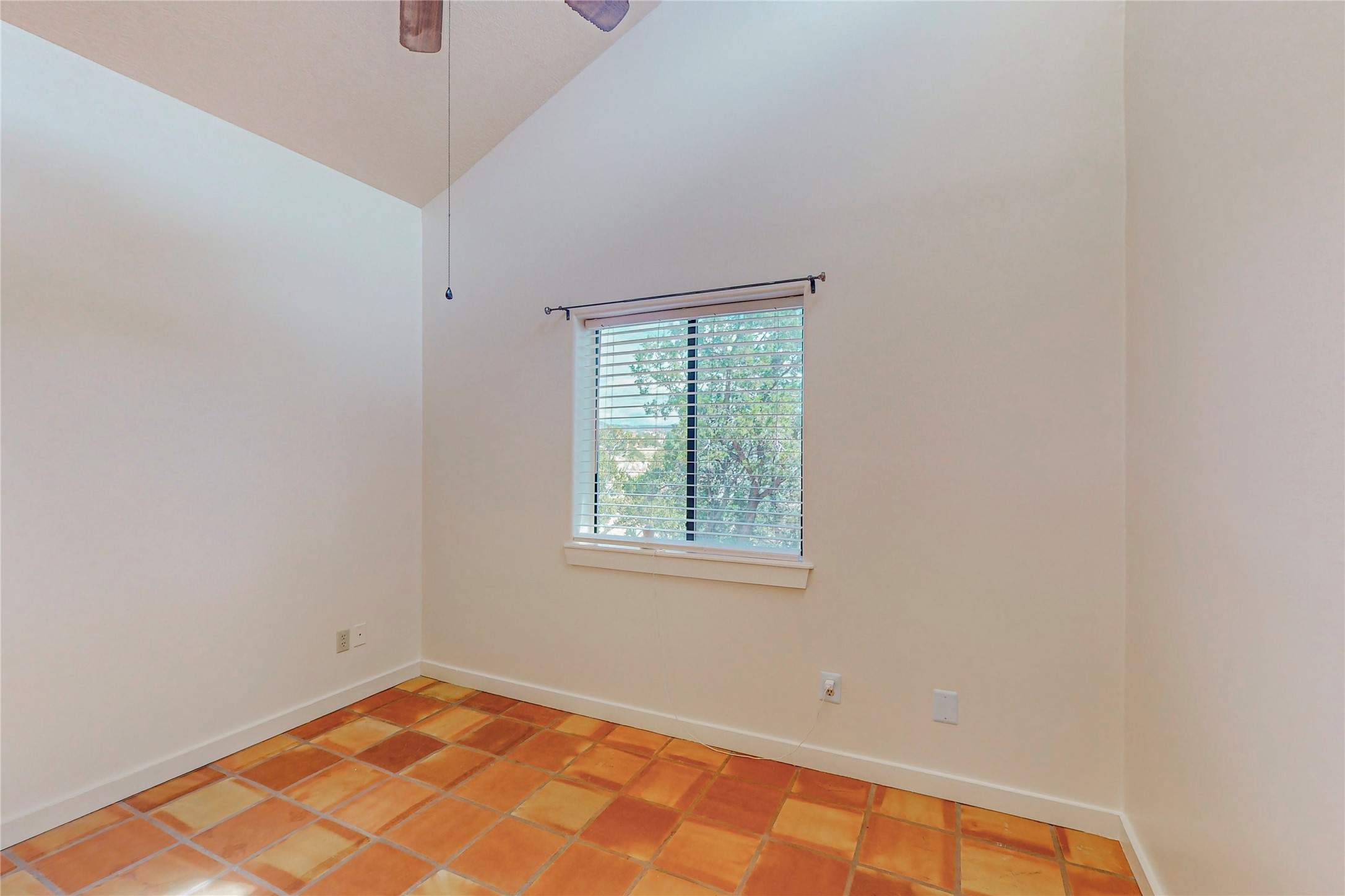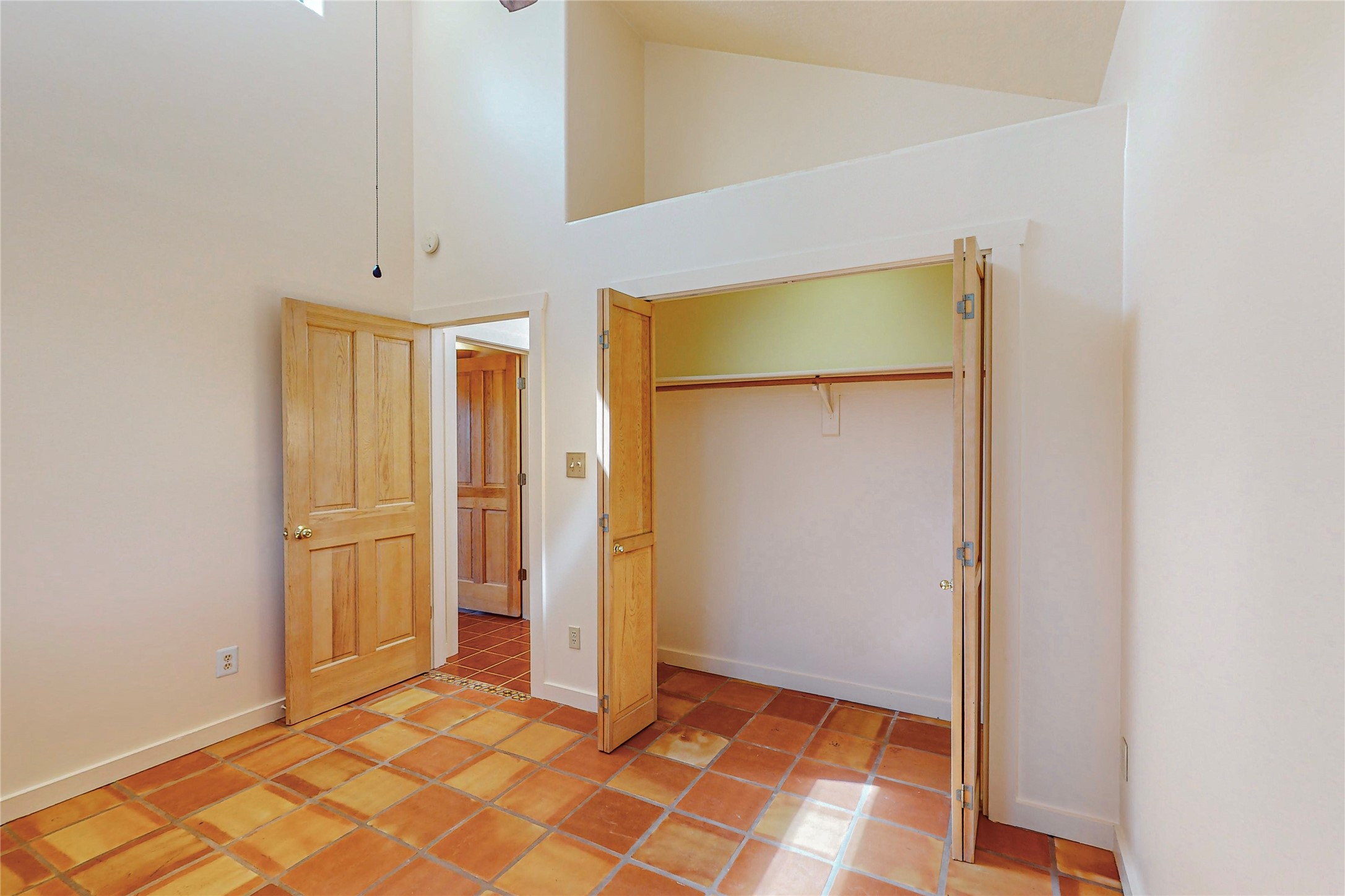 A rare exceptionally semi-private location with no thru streets and minimal ambient noise. Lot backs to a large greenbelt with direct access to social paths and the rail trail. East side of lot borders a retired historic railroad spur that runs between the Santa Fe Railyard and Lamy. The spur and subsequent train cars are occasionally used for slow-roll excursions and Hollywood movie sets (Oppenheimer). The east side of the home also features a flagstone patio with lovely views. The quaint home offers a super bright and light open flow passive solar design with high ceilings adding to spacious feel. Flexible floor plan. Great separation between owner's suite and the 2 guest bedrooms. Livingroom with corner kiva fireplace can be converted back to gas. Freshly painted throughout the interior; the canales, stucco and overhangs newly maintained. All appliances are newer, along with chef sink. New lighting in kitchen, foyer, & bathrooms.Three mini-splits were installed in 2021 for extra heating and cooling. There is a 2-car garage with circular driveway and guest parking. A large wood deck spans the length of the home. All this plus Eldorado amenities, Senior Center, Library, local shopping and only minutes into Santa Fe.