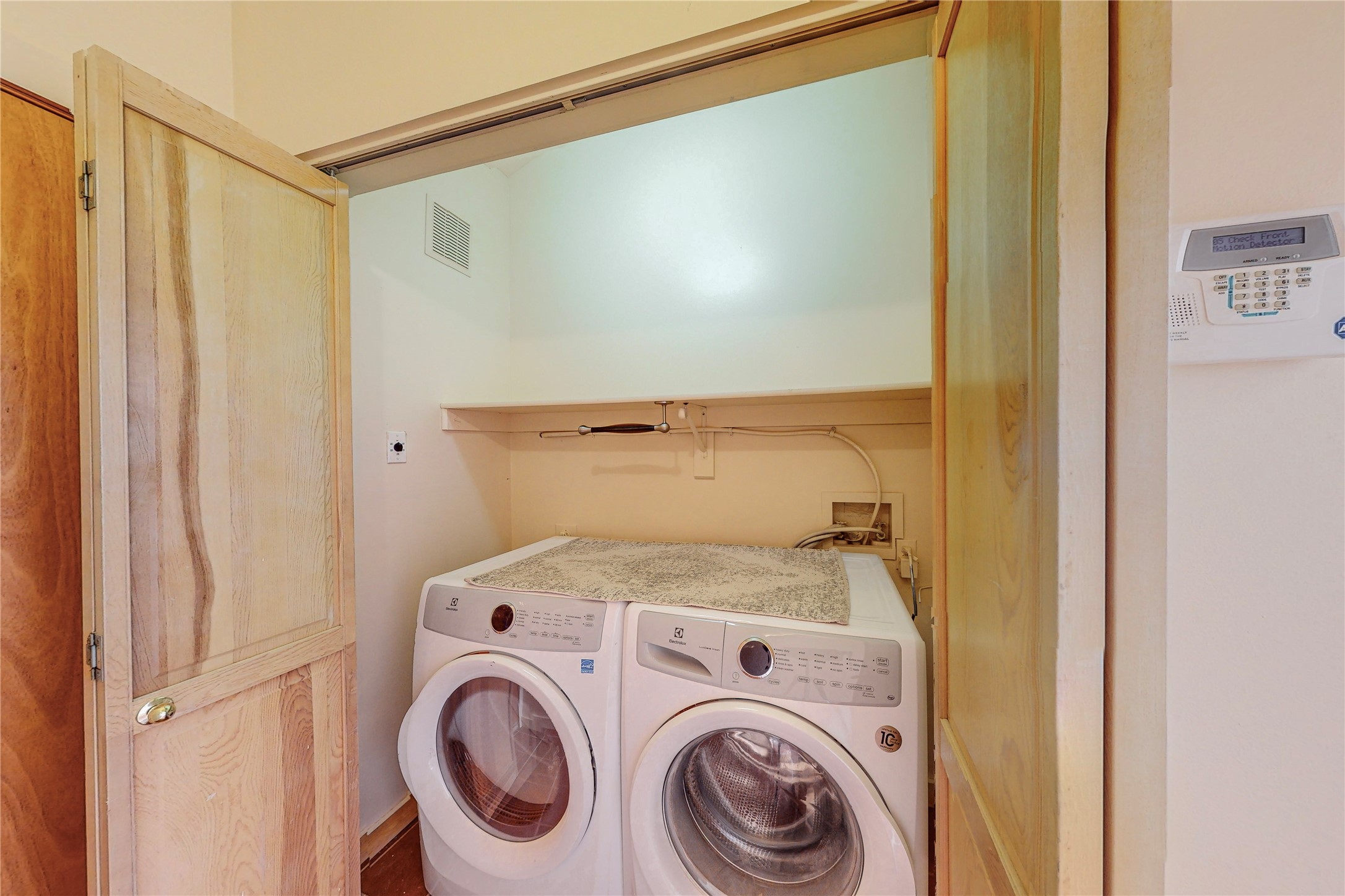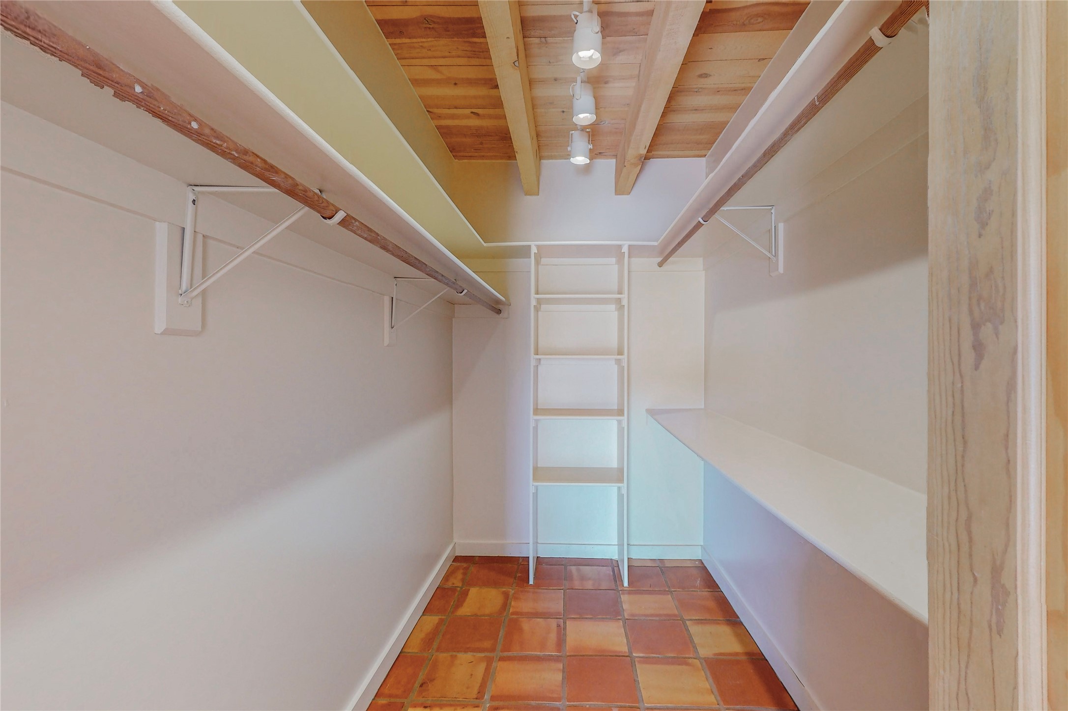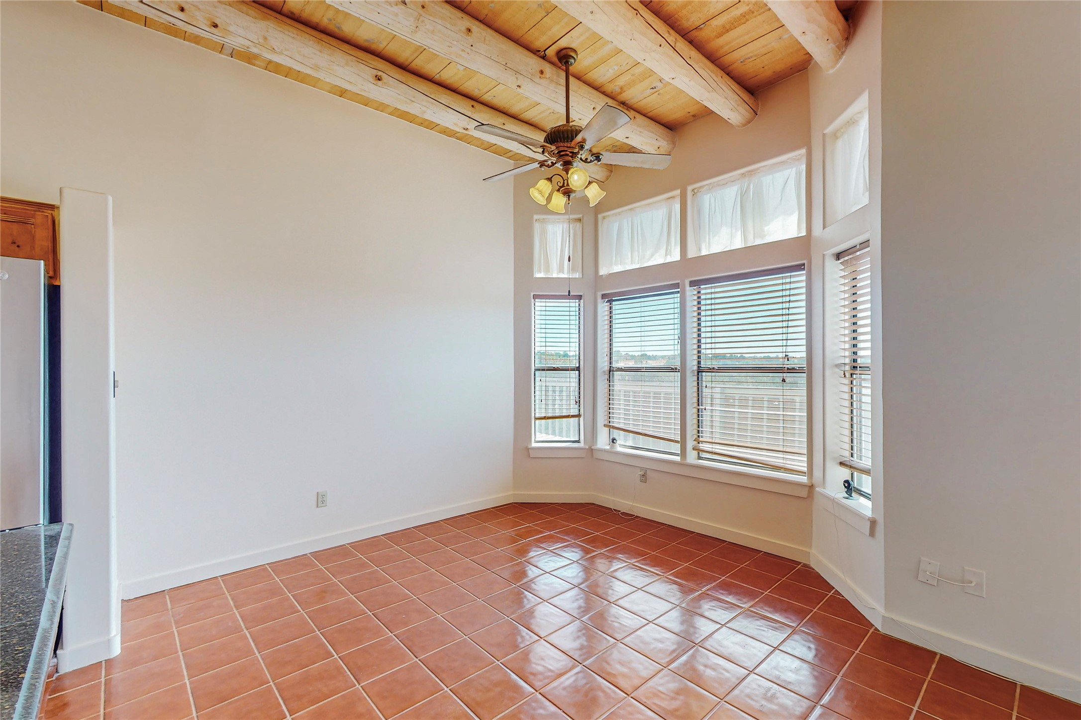 A rare exceptionally semi-private location with no thru streets and minimal ambient noise. Lot backs to a large greenbelt with direct access to social paths and the rail trail. East side of lot borders a retired historic railroad spur that runs between the Santa Fe Railyard and Lamy. The spur and subsequent train cars are occasionally used for slow-roll excursions and Hollywood movie sets (Oppenheimer). The east side of the home also features a flagstone patio with lovely views. The quaint home offers a super bright and light open flow passive solar design with high ceilings adding to spacious feel. Flexible floor plan. Great separation between owner's suite and the 2 guest bedrooms. Livingroom with corner kiva fireplace can be converted back to gas. Freshly painted throughout the interior; the canales, stucco and overhangs newly maintained. All appliances are newer, along with chef sink. New lighting in kitchen, foyer, & bathrooms.Three mini-splits were installed in 2021 for extra heating and cooling. There is a 2-car garage with circular driveway and guest parking. A large wood deck spans the length of the home. All this plus Eldorado amenities, Senior Center, Library, local shopping and only minutes into Santa Fe.