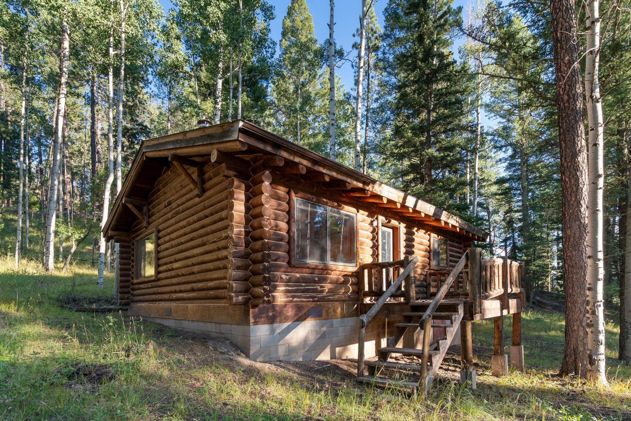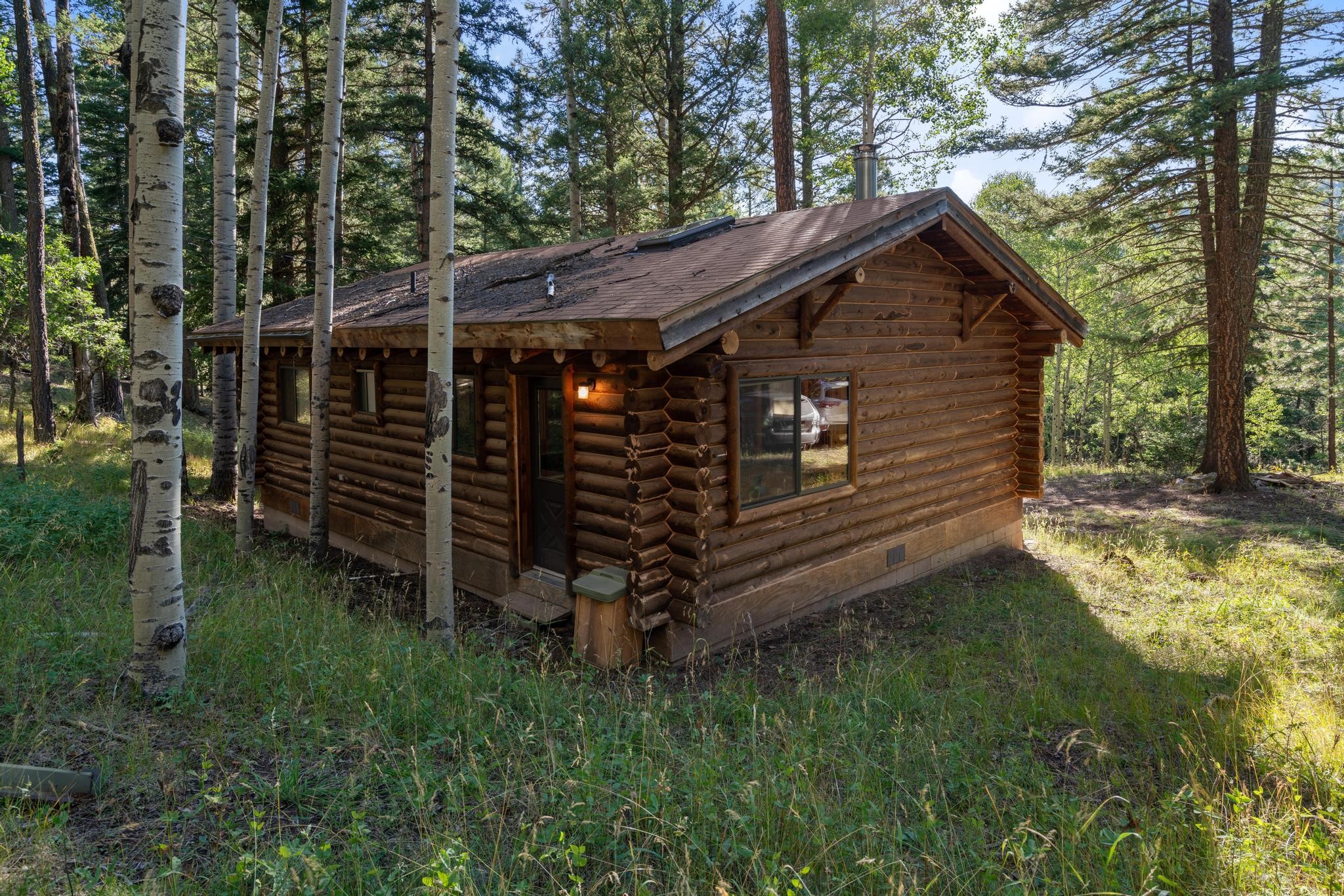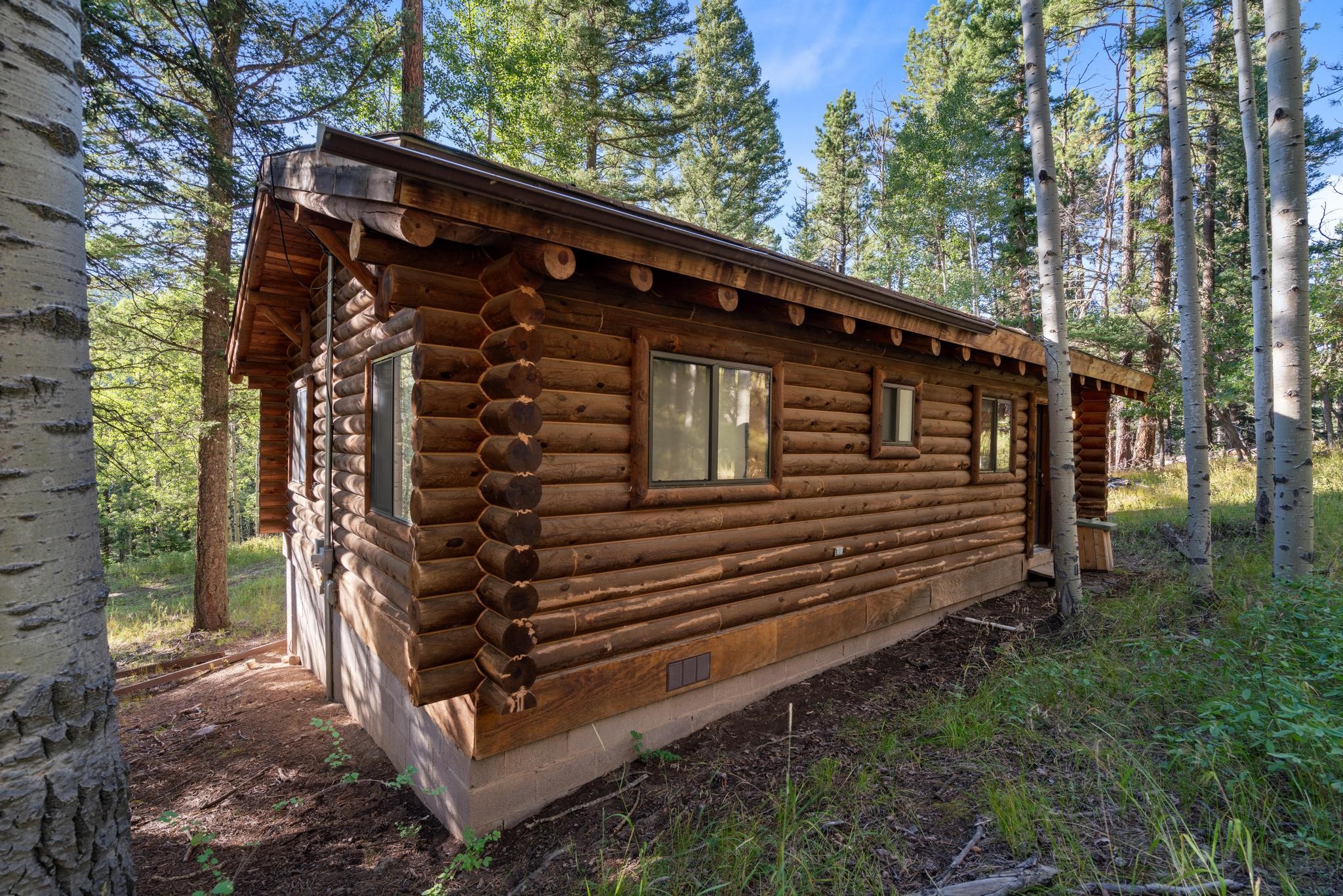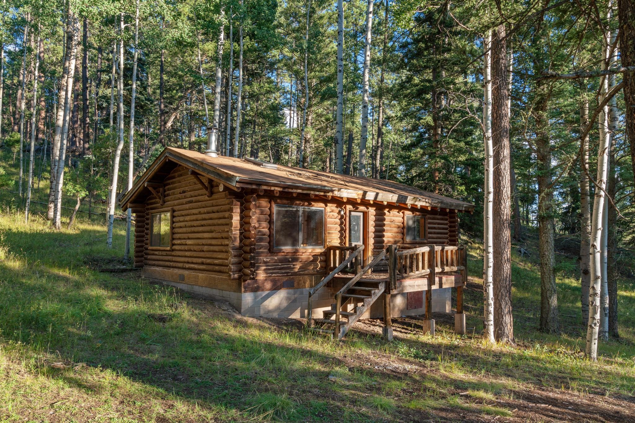 This custom-built log cabin nestled on 3.5 private and tree covered acres in the gorgeous Pecos Wilderness is the perfect getaway that you have been waiting for! The land is populated with towering Aspen and Pine Trees and is surrounded by The Santa Fe National Forest! The cozy cabin features two bedrooms, one bath, a nice wood stove, approximately 777 sq.ft., public electric, phone, septic and water is periodically trucked in to service the home. Pecos Canyon Estates is a gated area and homes rarely come up for sale here. So, come and take advantage of this opportunity to own this amazing and extraordinary mountain retreat today!