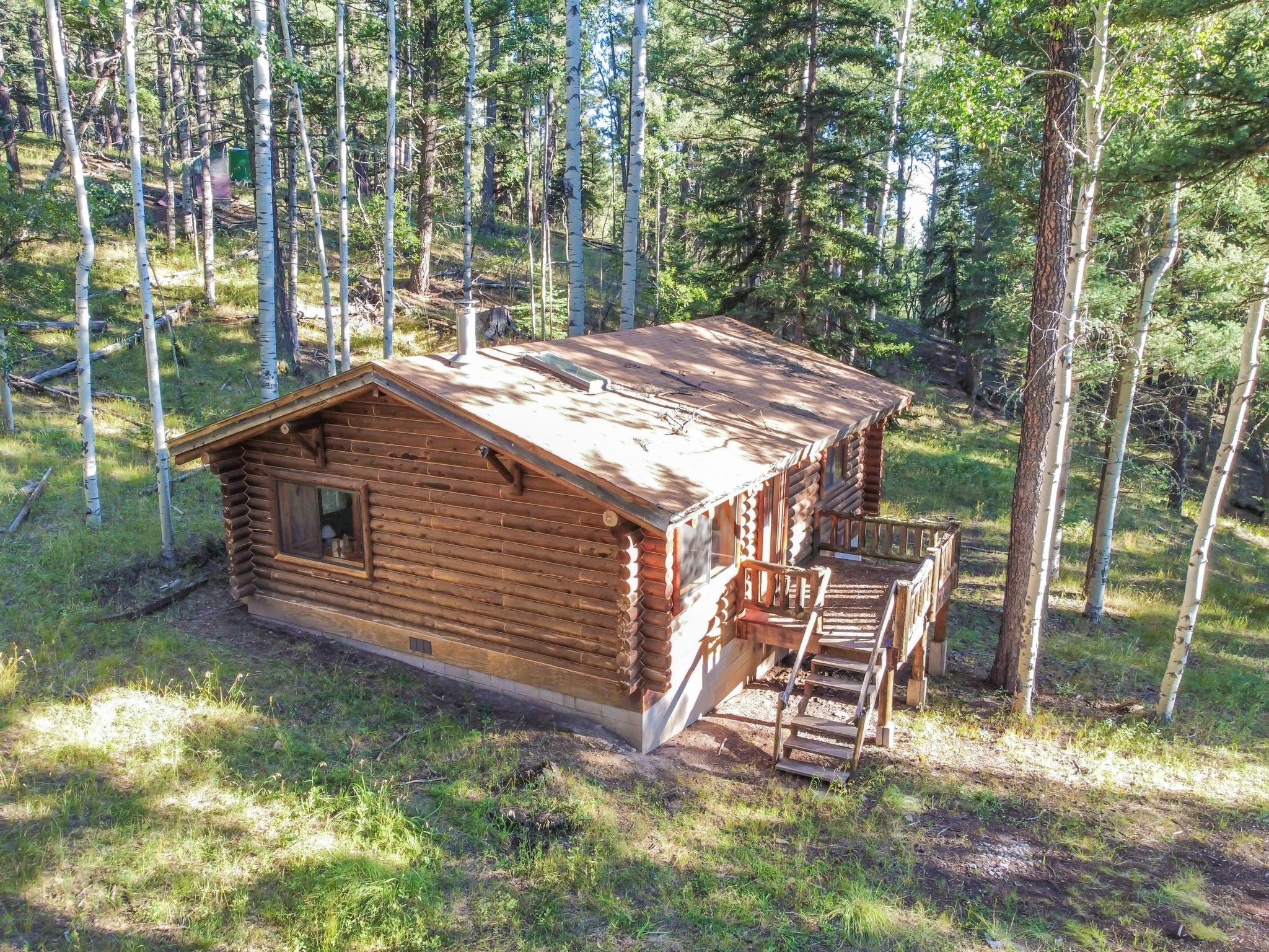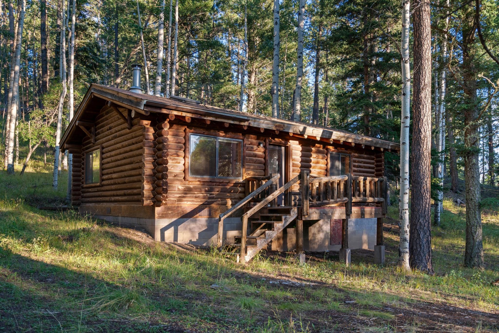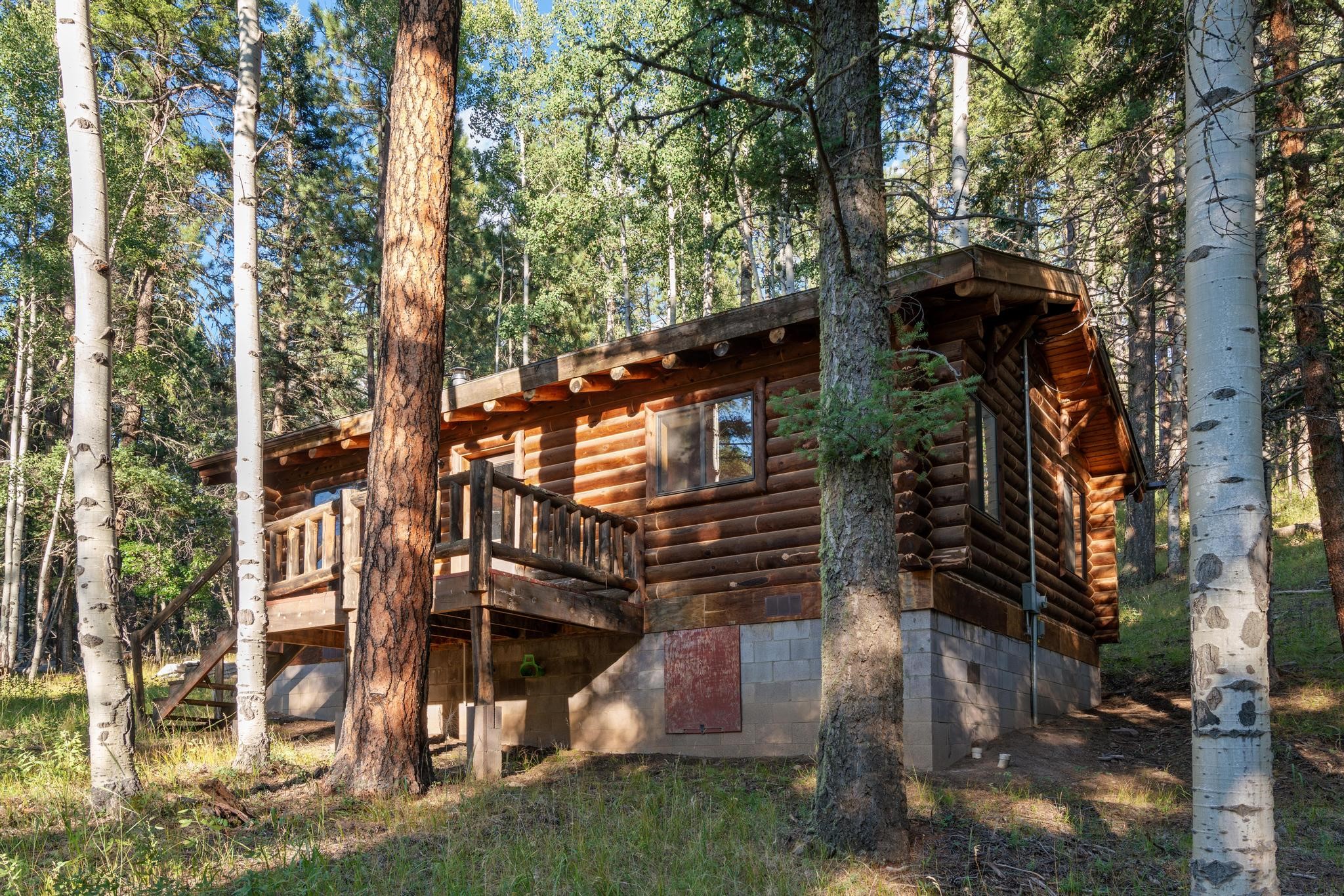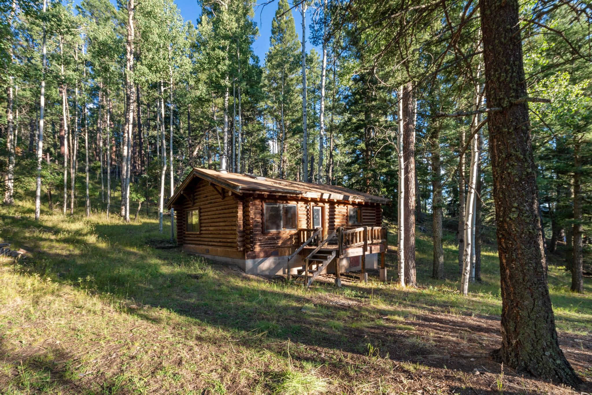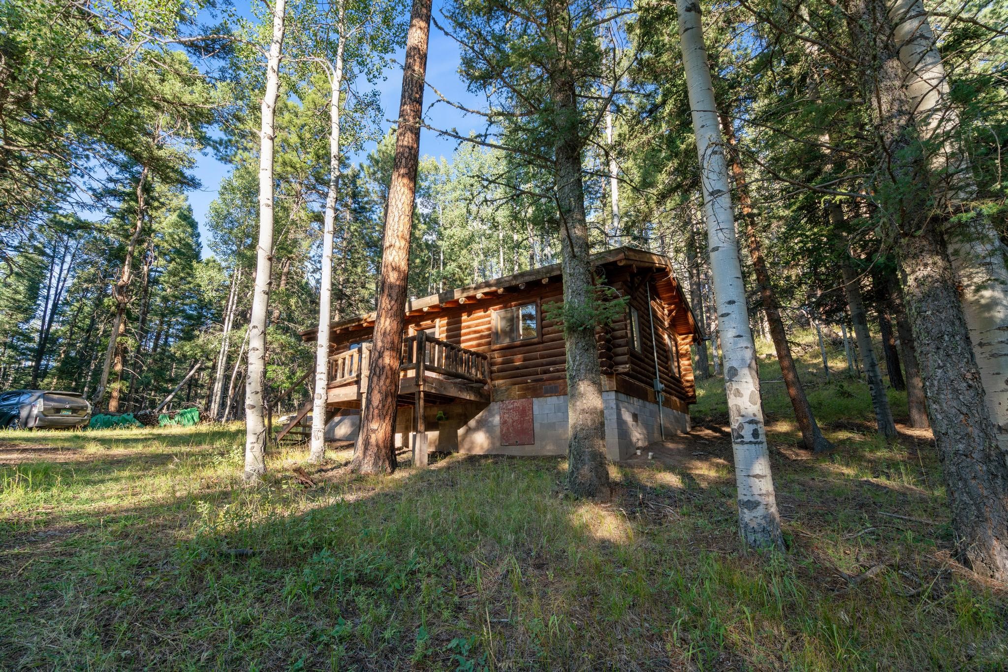 This custom-built log cabin nestled on 3.5 private and tree covered acres in the gorgeous Pecos Wilderness is the perfect getaway that you have been waiting for! The land is populated with towering Aspen and Pine Trees and is surrounded by The Santa Fe National Forest! The cozy cabin features two bedrooms, one bath, a nice wood stove, approximately 777 sq.ft., public electric, phone, septic and water is periodically trucked in to service the home. Pecos Canyon Estates is a gated area and homes rarely come up for sale here. So, come and take advantage of this opportunity to own this amazing and extraordinary mountain retreat today!