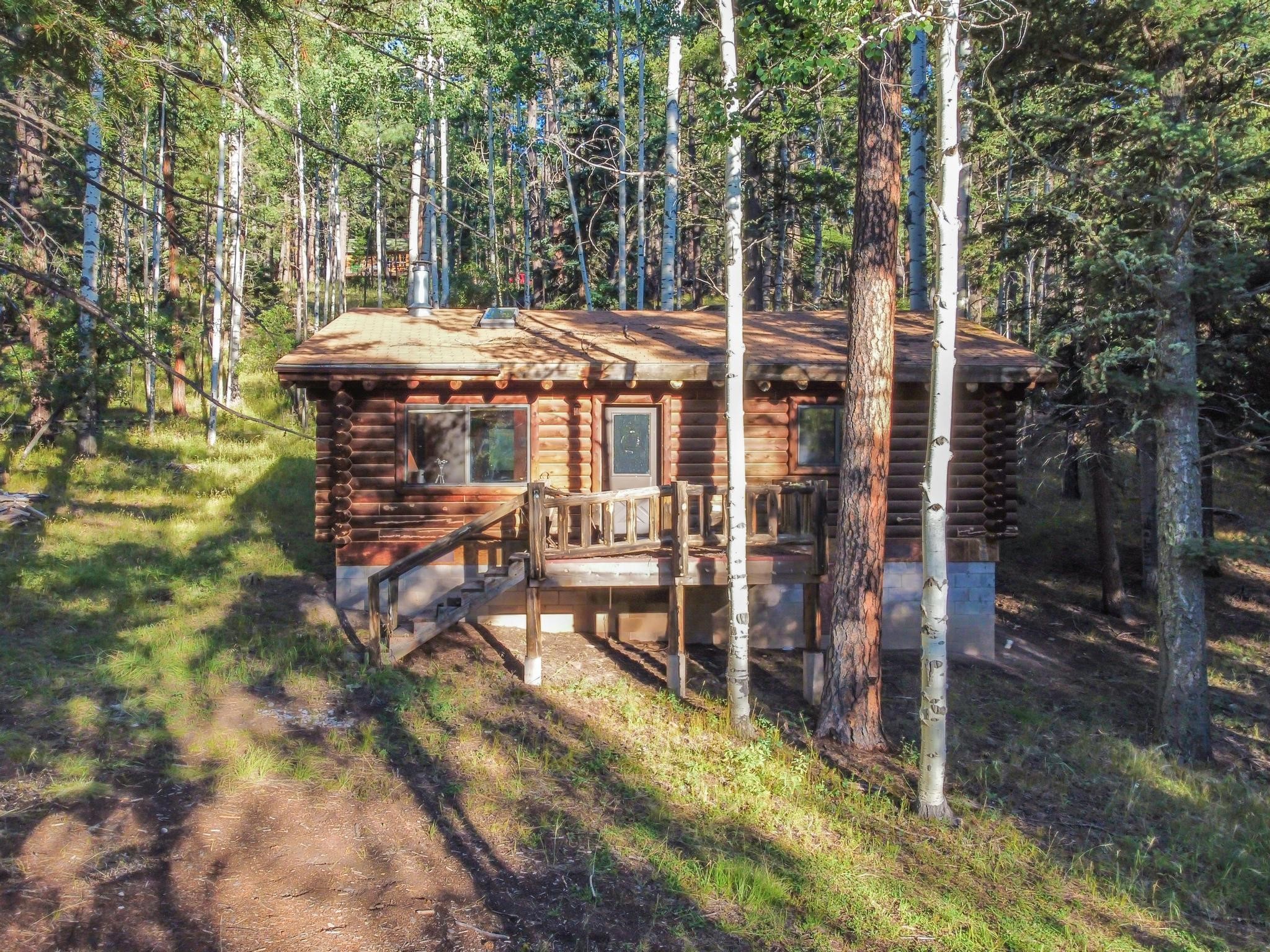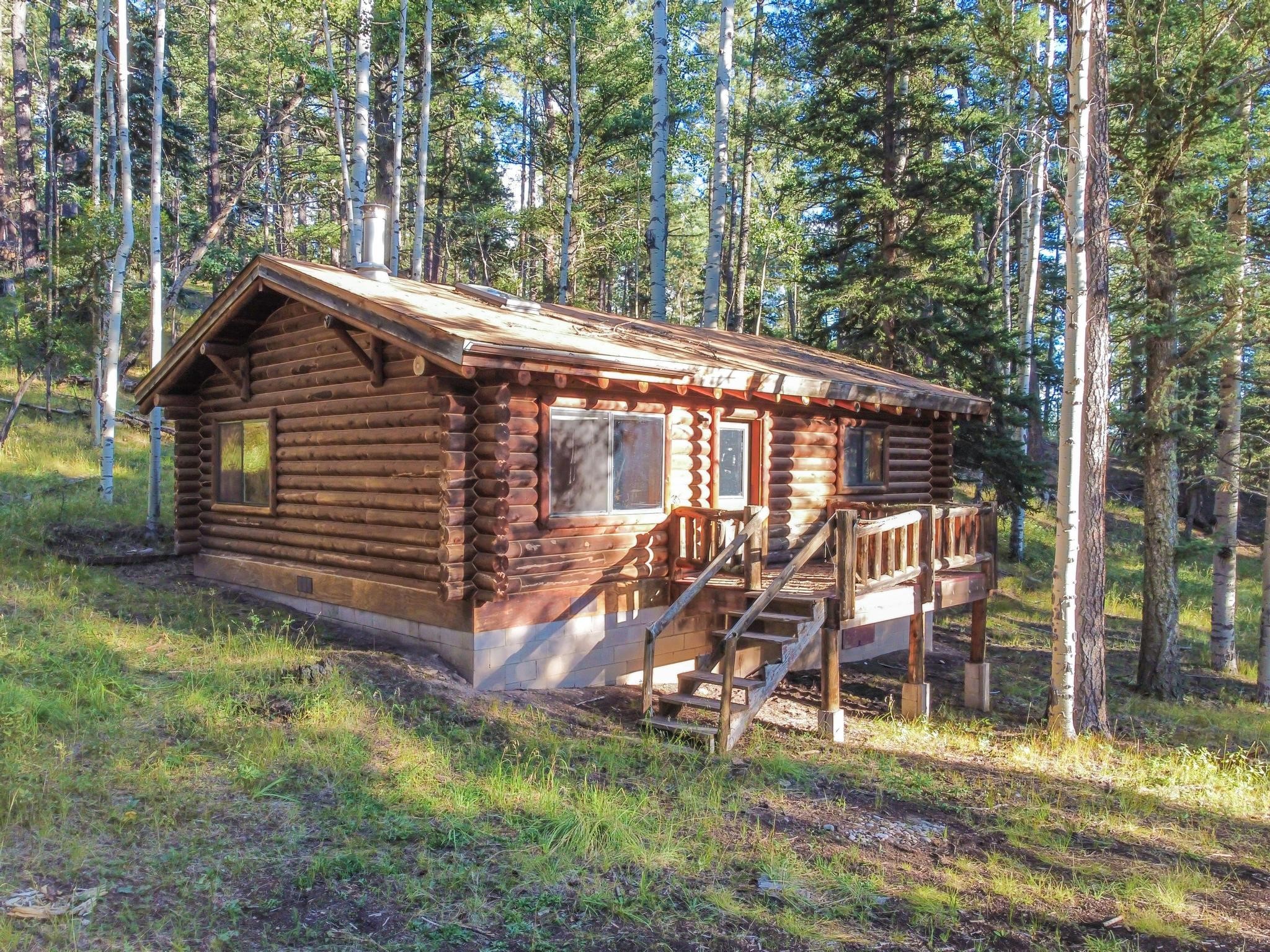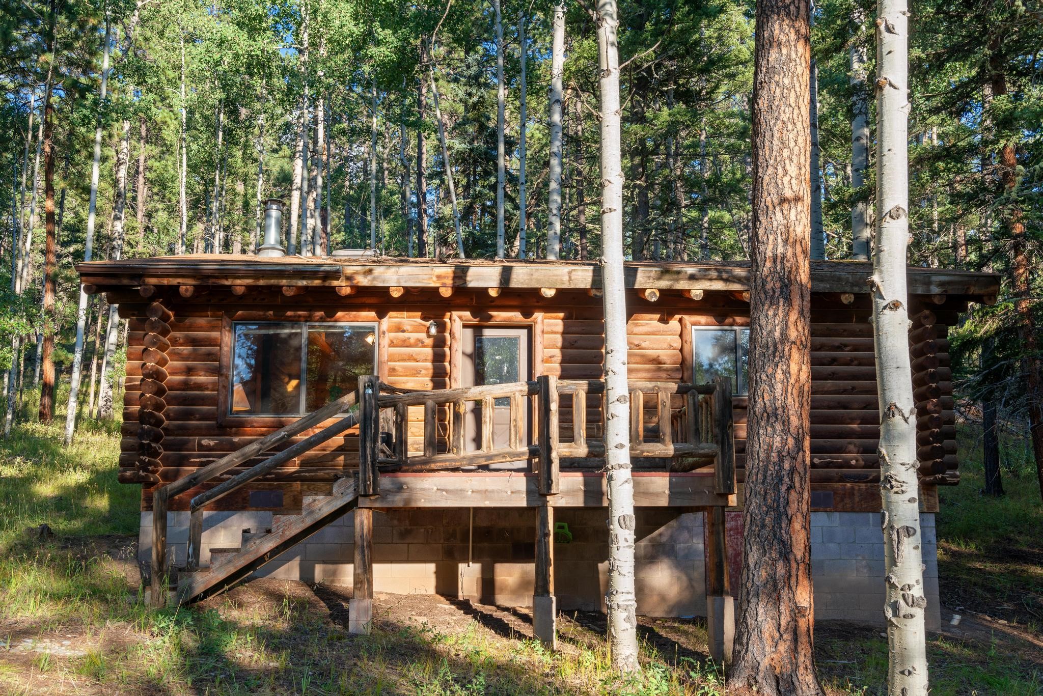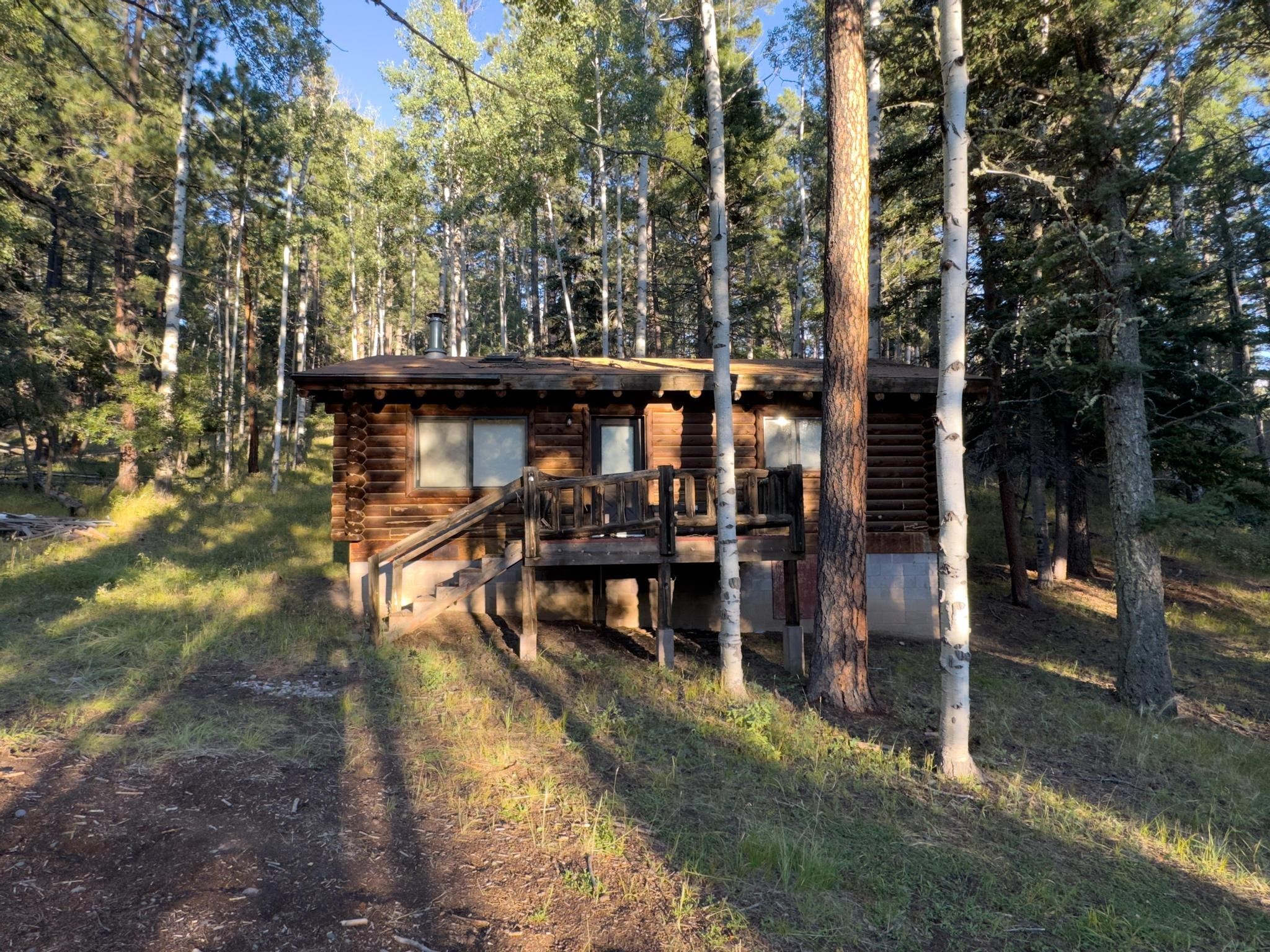 This custom-built log cabin nestled on 3.5 private and tree covered acres in the gorgeous Pecos Wilderness is the perfect getaway that you have been waiting for! The land is populated with towering Aspen and Pine Trees and is surrounded by The Santa Fe National Forest! The cozy cabin features two bedrooms, one bath, a nice wood stove, approximately 777 sq.ft., public electric, phone, septic and water is periodically trucked in to service the home. Pecos Canyon Estates is a gated area and homes rarely come up for sale here. So, come and take advantage of this opportunity to own this amazing and extraordinary mountain retreat today!