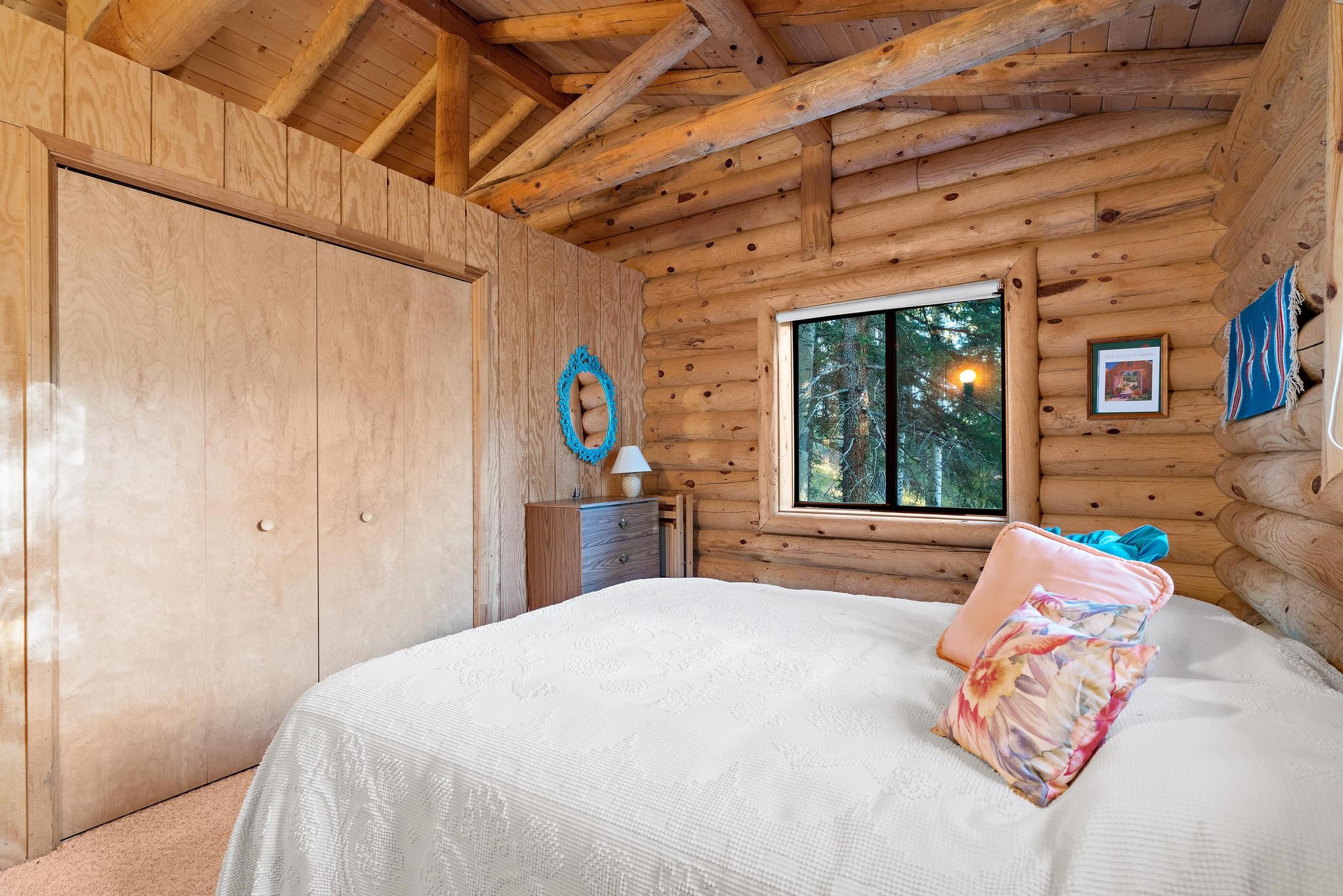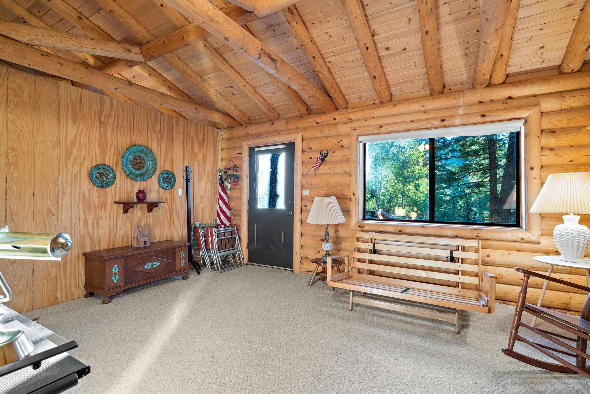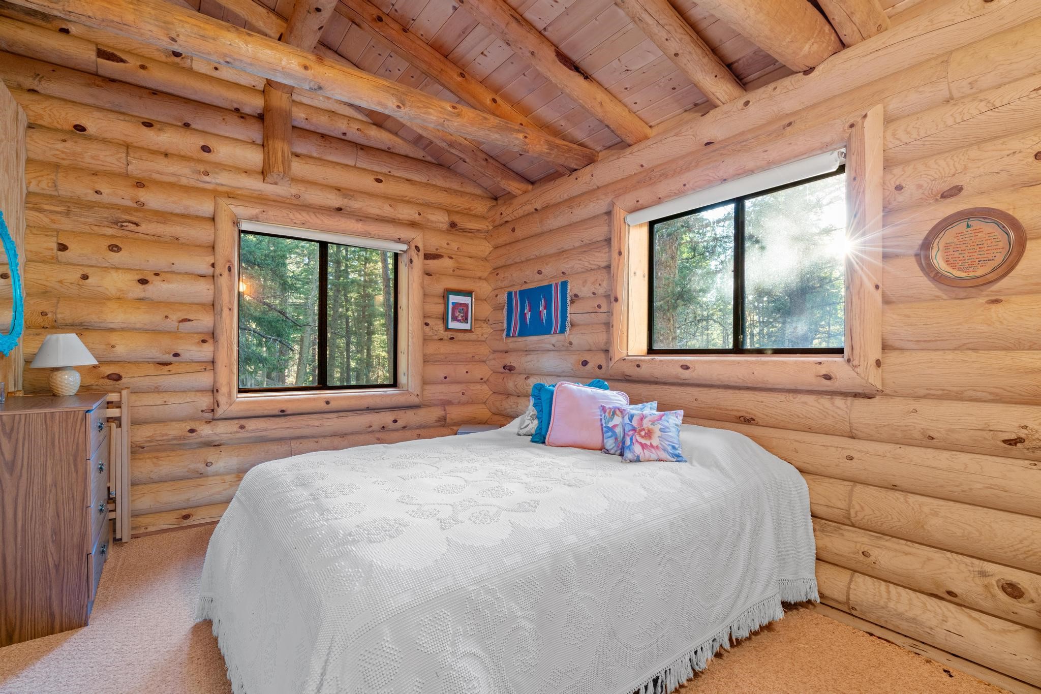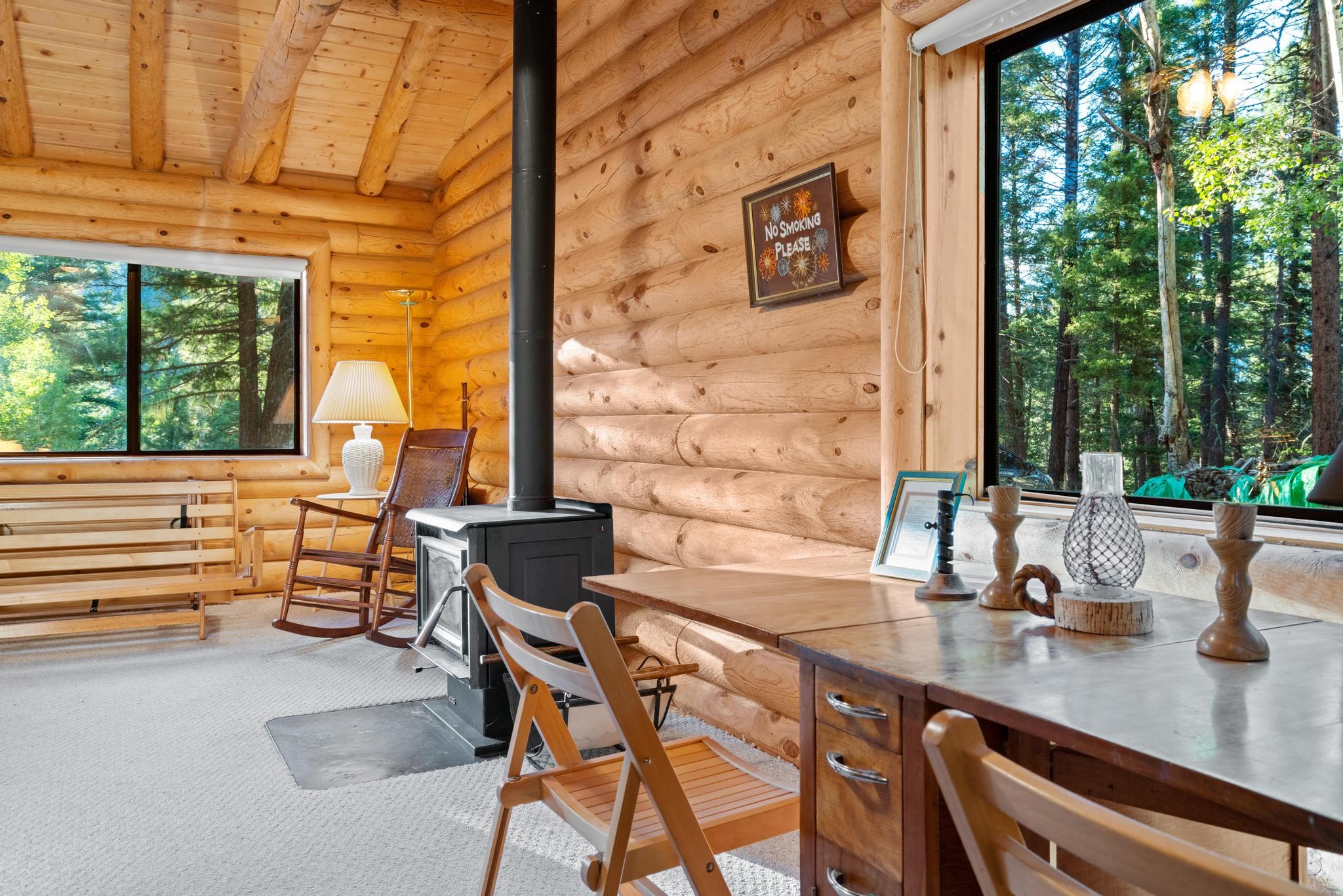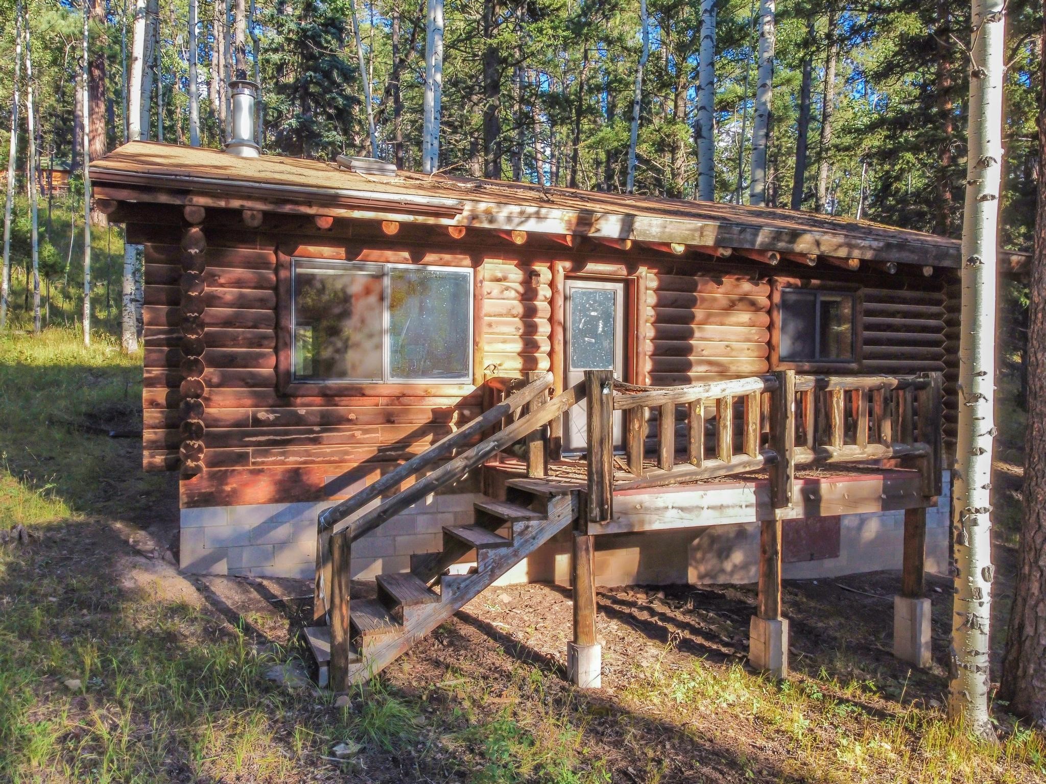 This custom-built log cabin nestled on 3.5 private and tree covered acres in the gorgeous Pecos Wilderness is the perfect getaway that you have been waiting for! The land is populated with towering Aspen and Pine Trees and is surrounded by The Santa Fe National Forest! The cozy cabin features two bedrooms, one bath, a nice wood stove, approximately 777 sq.ft., public electric, phone, septic and water is periodically trucked in to service the home. Pecos Canyon Estates is a gated area and homes rarely come up for sale here. So, come and take advantage of this opportunity to own this amazing and extraordinary mountain retreat today!