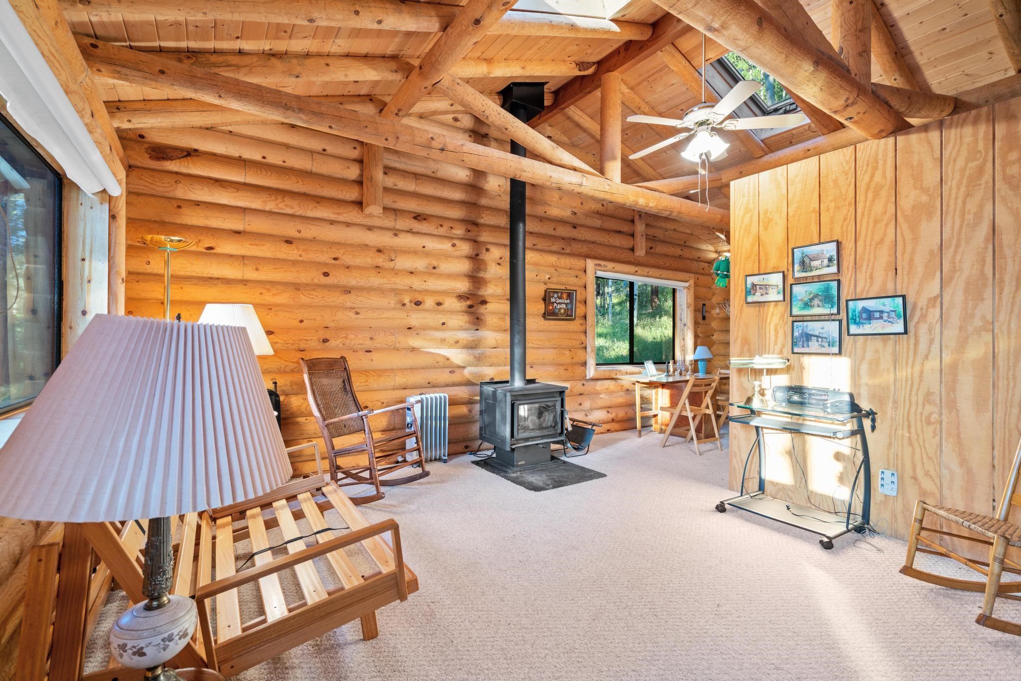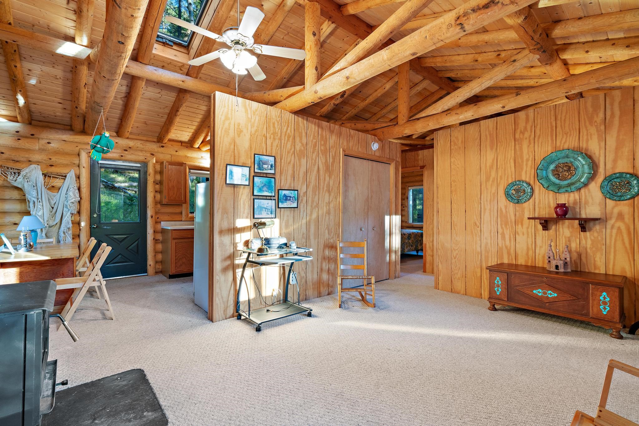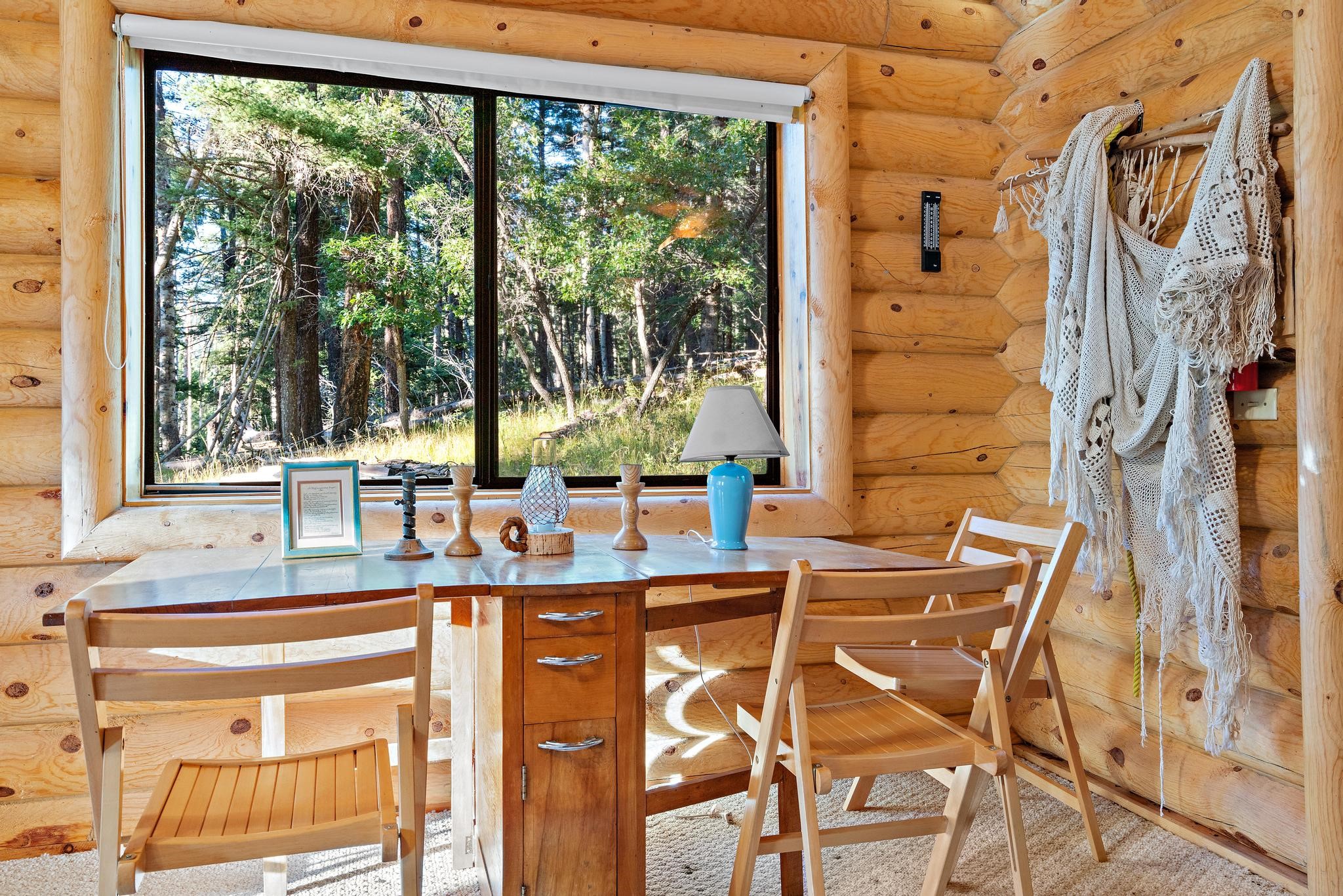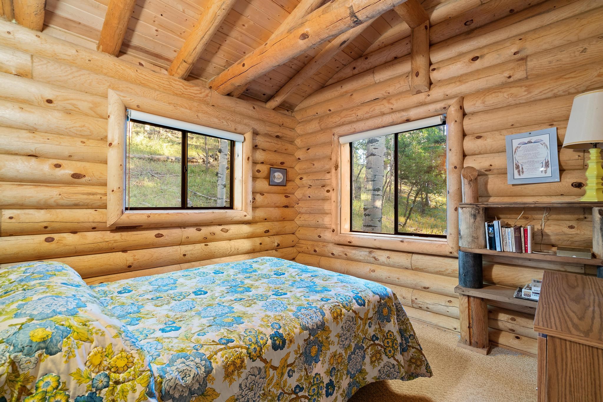 This custom-built log cabin nestled on 3.5 private and tree covered acres in the gorgeous Pecos Wilderness is the perfect getaway that you have been waiting for! The land is populated with towering Aspen and Pine Trees and is surrounded by The Santa Fe National Forest! The cozy cabin features two bedrooms, one bath, a nice wood stove, approximately 777 sq.ft., public electric, phone, septic and water is periodically trucked in to service the home. Pecos Canyon Estates is a gated area and homes rarely come up for sale here. So, come and take advantage of this opportunity to own this amazing and extraordinary mountain retreat today!