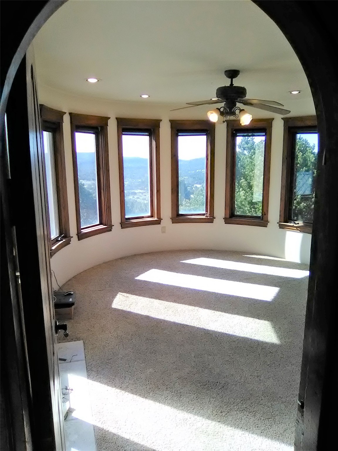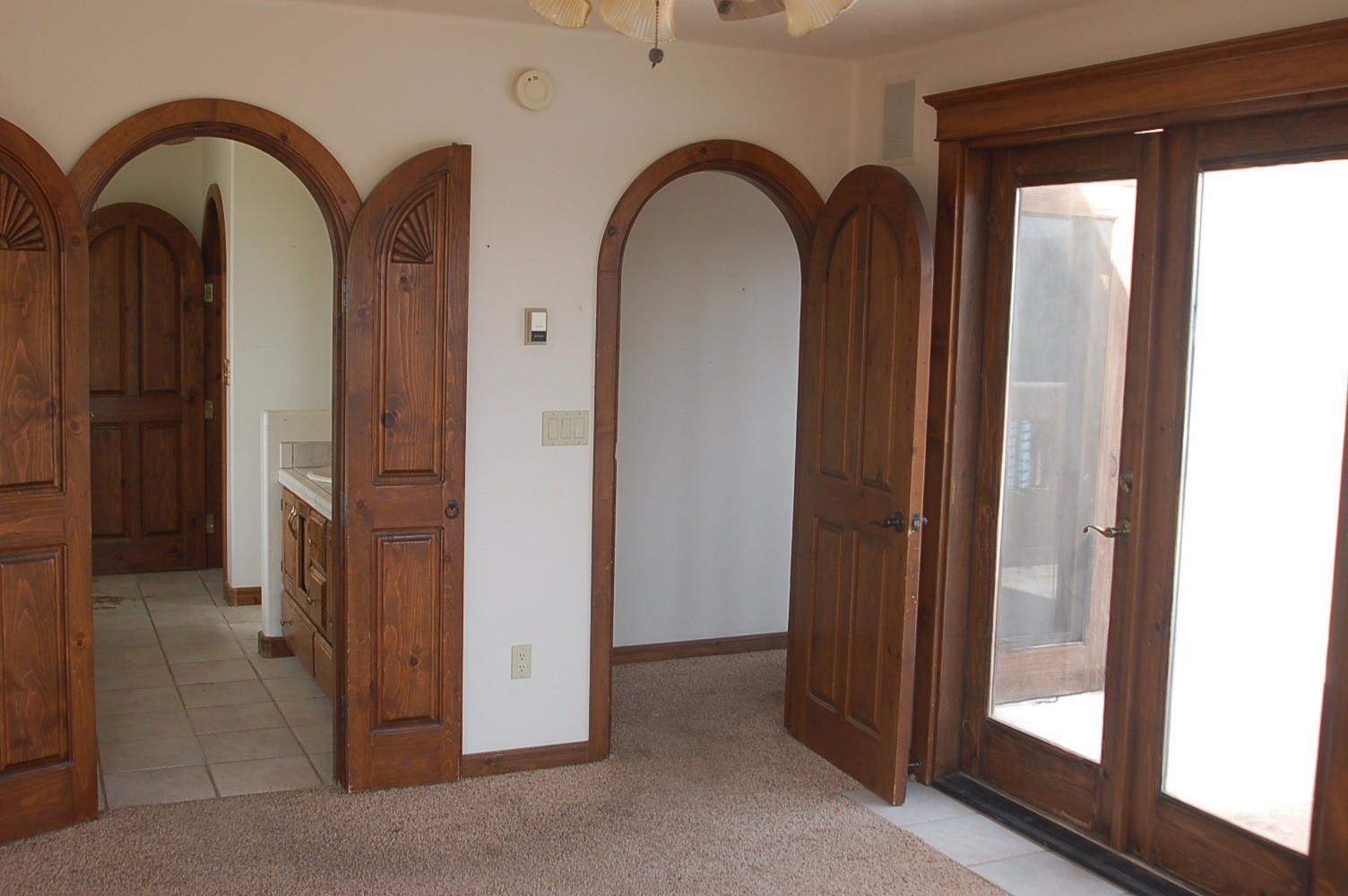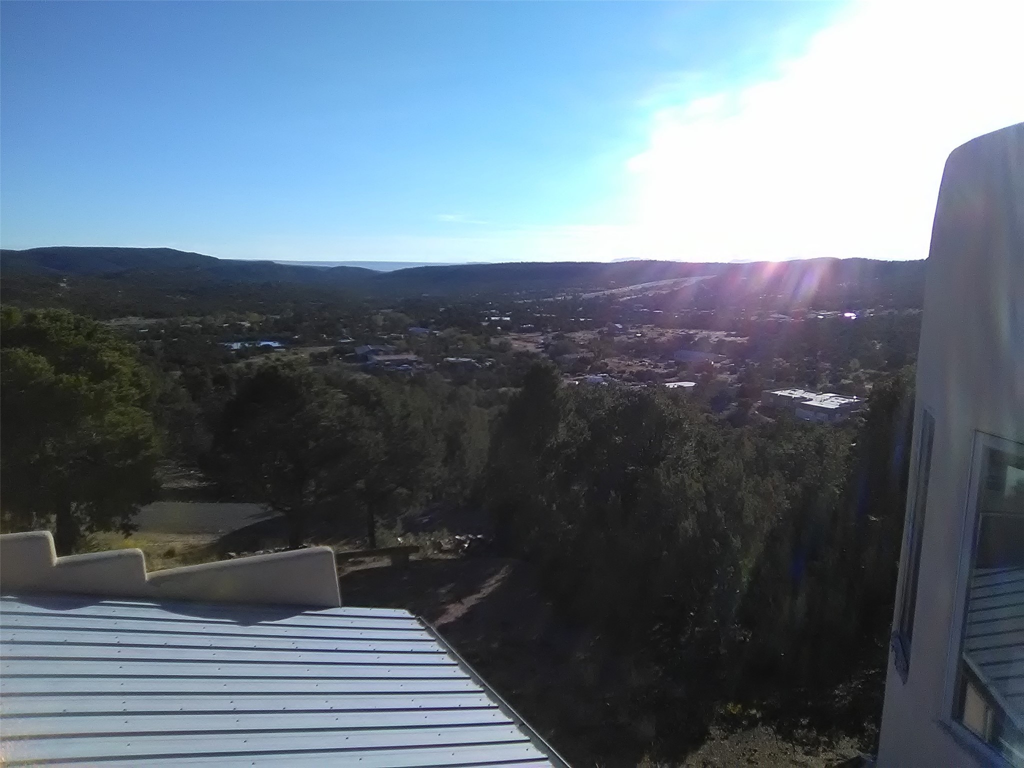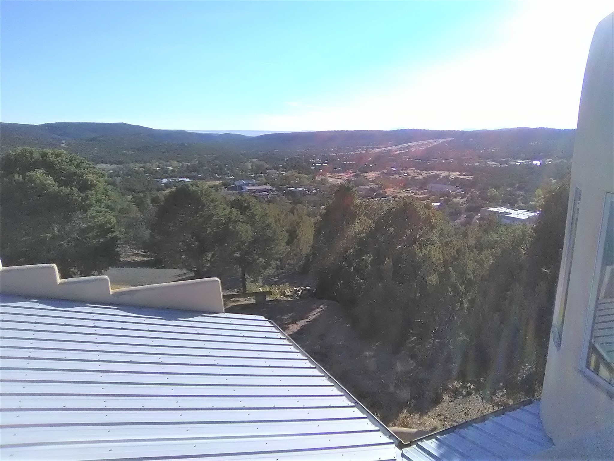 Needs TLC! Drop Dead gorgeous views from just about every window and with three separate living areas!! This well thought out home, perfect for entertaining, is nestled at the base of the Sangre de Cristo Mountains on a little over 3 acres in Canoncito At Apache Canyon. Ten miles from the heart of historic Santa Fe, NM. This 3 bedroom, 3 bathroom, main home, has tiled and carpeted floors and an open living space on the main level, with a living room with a cozy gas fireplace, family room, and dining room right off of the kitchen with custom-built cabinets. All doors throughout are custom-built. In-floor heating through-out, including the garage! Includes the largest LG front-loading washer and gas dryer combo to fit the largest comforter. Tons of natural light and fresh, clean mountain air! On the second level, the master suite, complete with a Jacuzzi tub and separate shower and a huge walk in closet, is separate from the 2 secondary bedrooms with their separate full bathroom. Attached two car garage is big enough to fit a 4WD full-sized crew cab pickup with an 8 foot bed. Attached to the main house is a 1215 square foot addition with its own separate entrance, kitchen, and large carpeted bedroom suite with a large bathroom with tub and separate shower, along with its own LG front-loading washer and dryer setup. (Bedroom is non-conforming.) In the rear of the main house is a detached studio with a 768 square foot living quarters on the upper level, consisting of a large bedroom, kitchen and living room area, full bathroom with shower/tub, and washer and dryer setup. (Bedroom is non-conforming.) In the lower level of the studio is a 34 foot wide by 40 foot deep studio/shop, with 10 foot ceiling and its own 200 amp, 240/120VAC electrical service, and 40 feet of cabinets and counter space. All with in-floor heating. Needs stucco work.