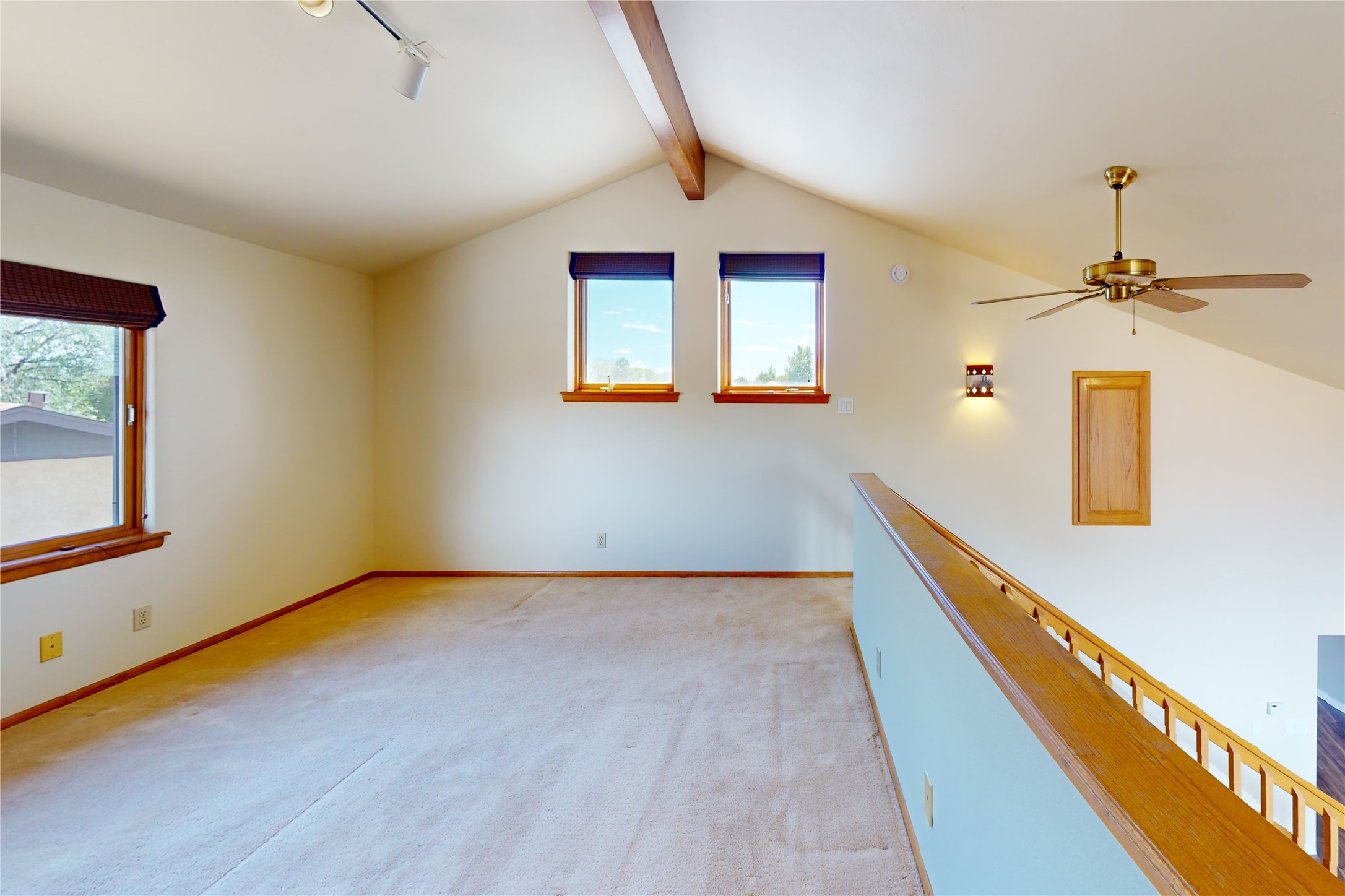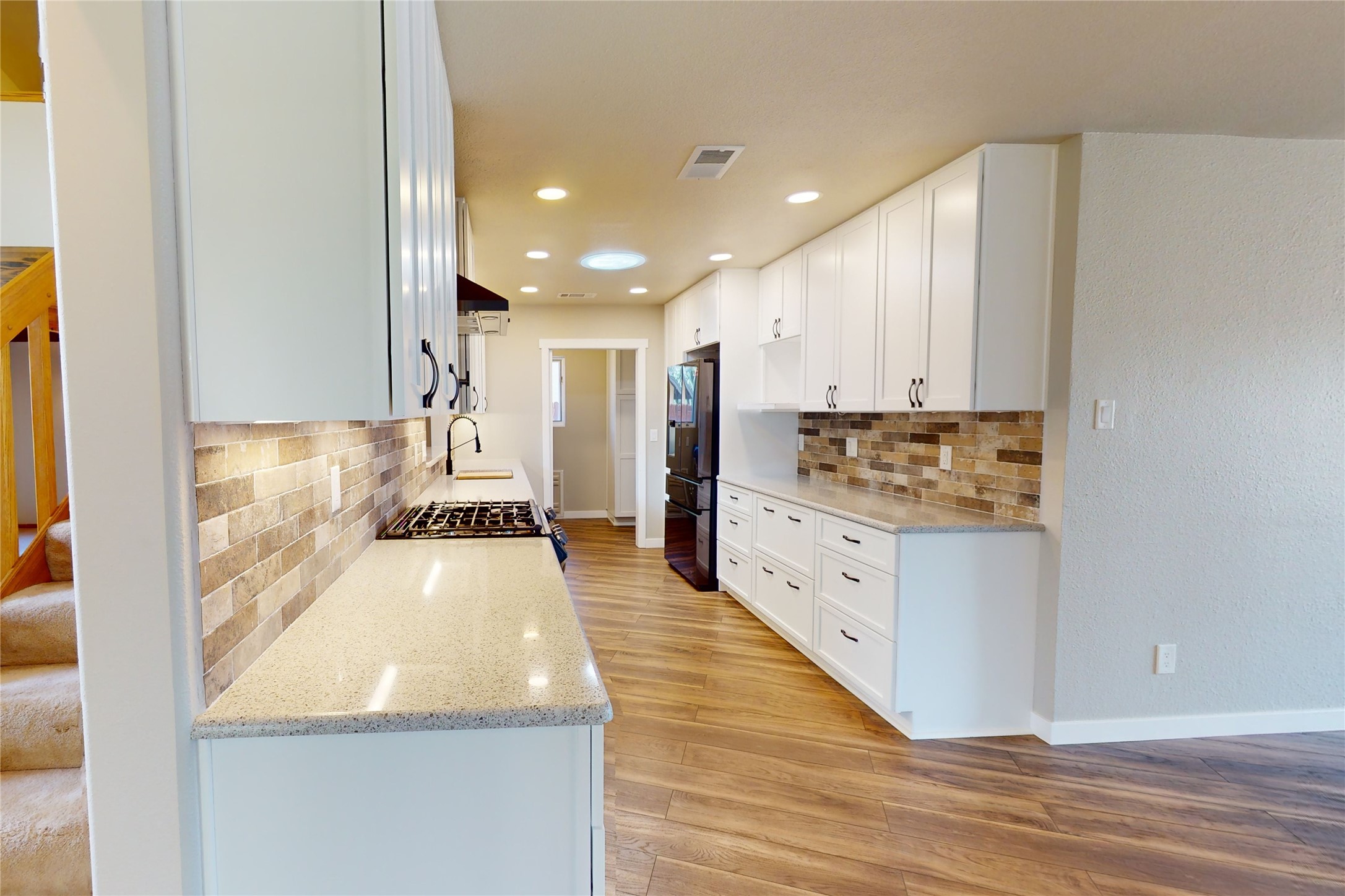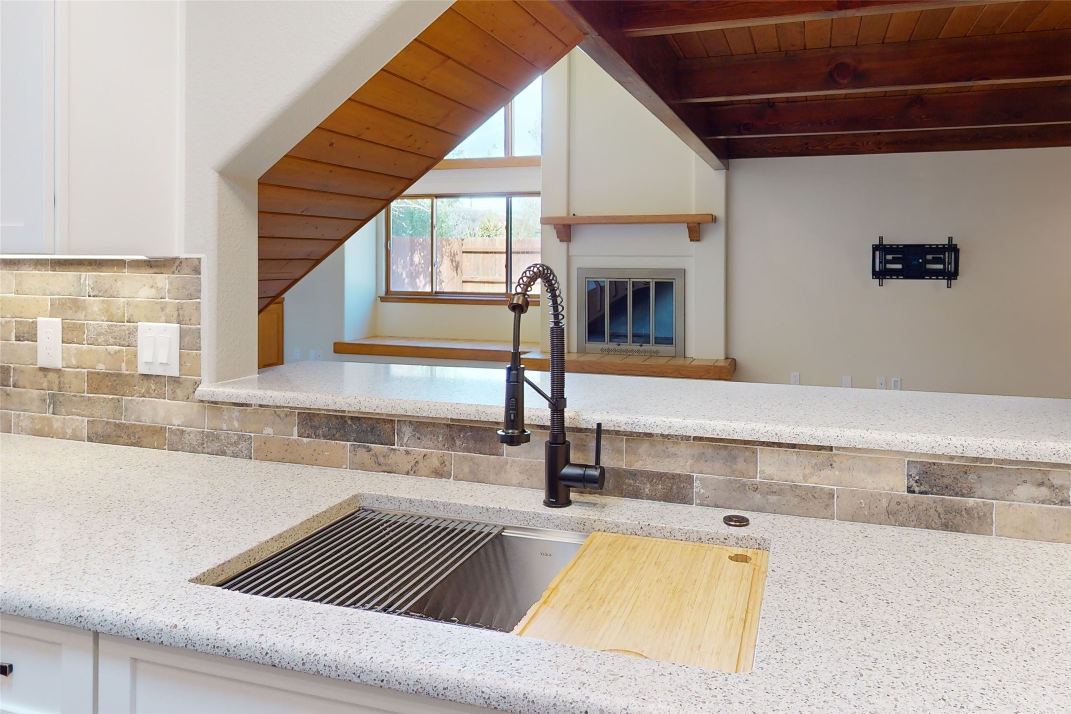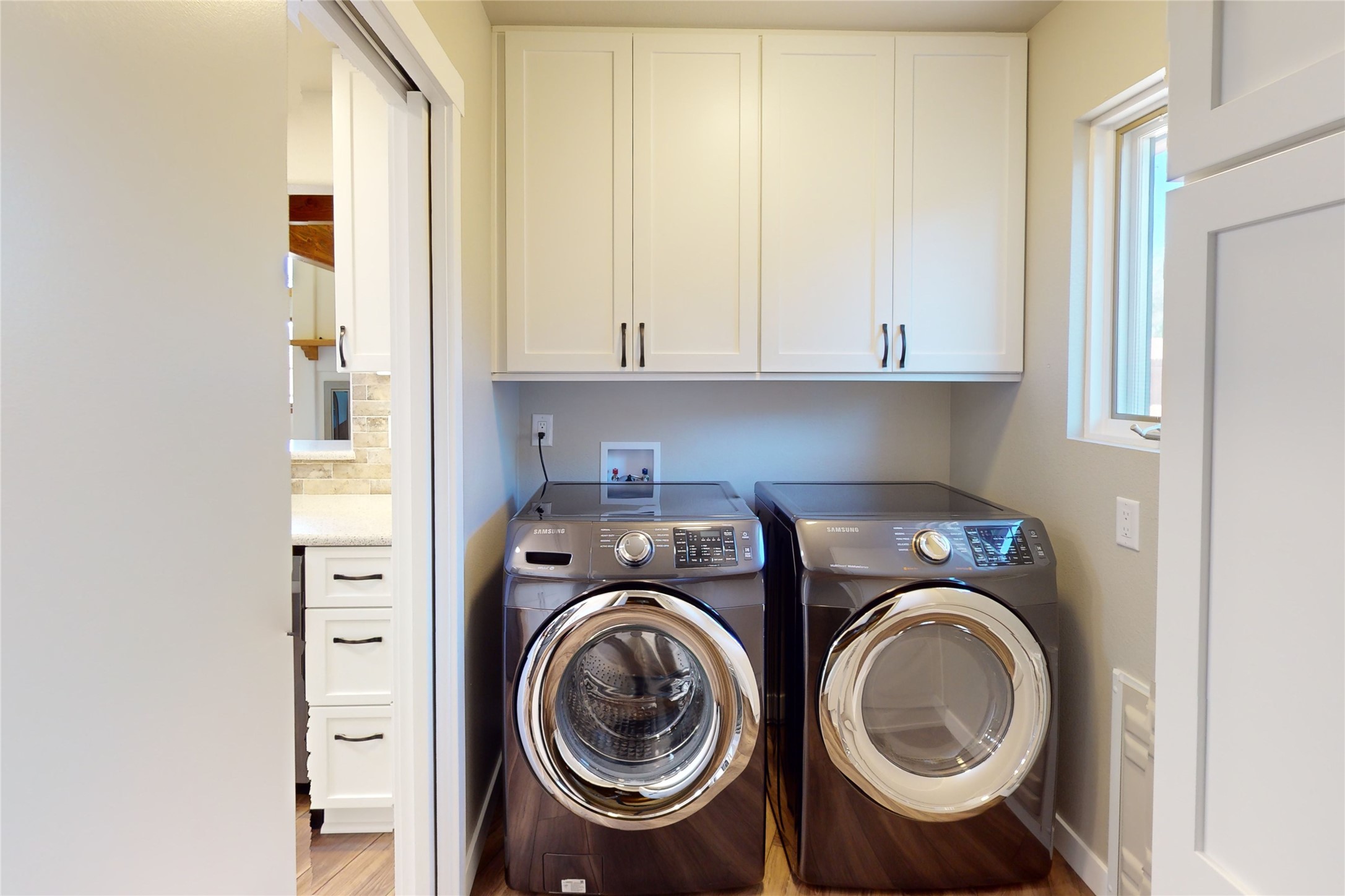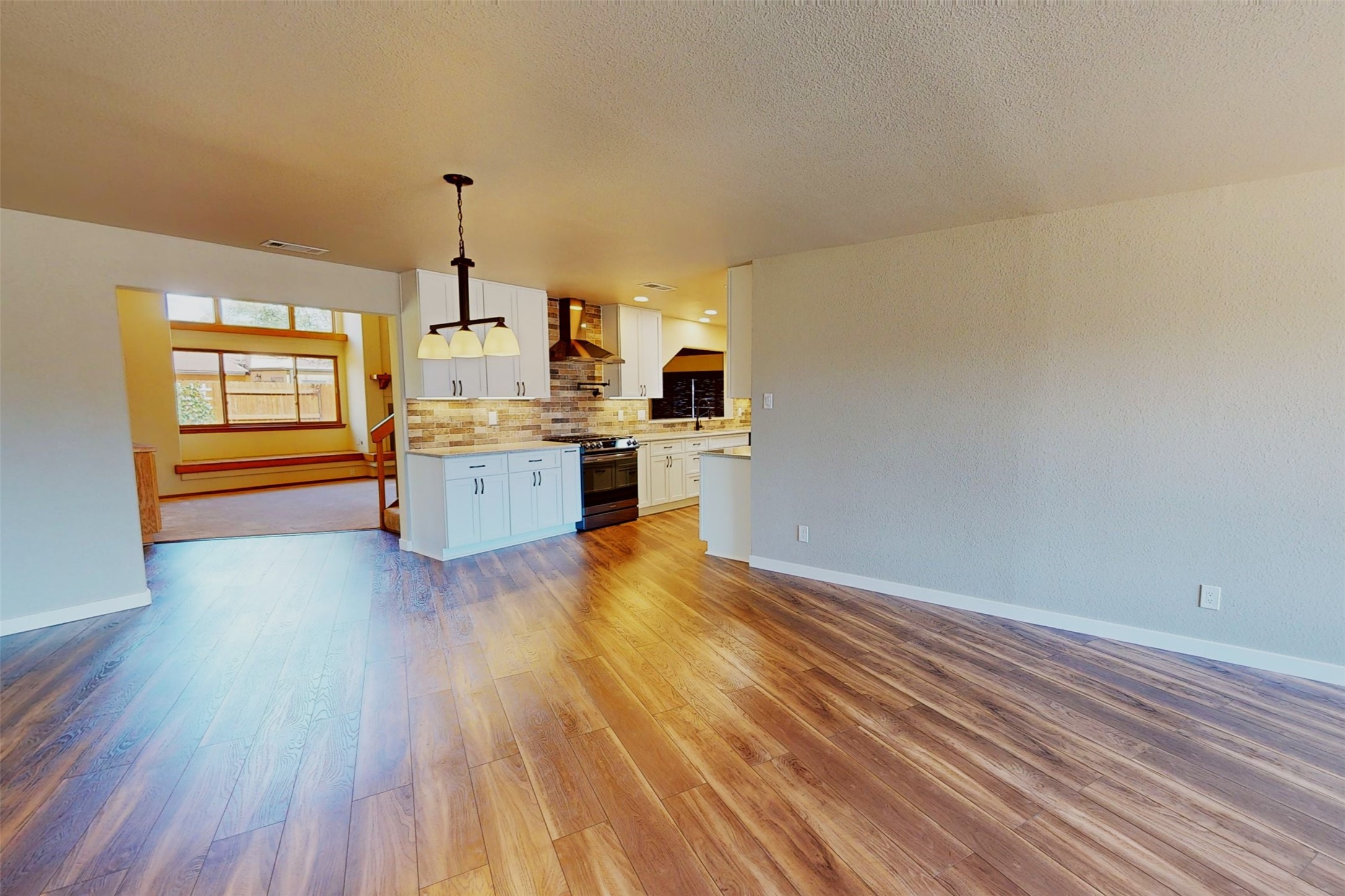 Beautifully updated home on a quiet street! This move-in ready home has three bedrooms plus a loft that could be a fourth bedroom, an office, a craft room or whatever will meet your needs. The home has two living spaces so there is ample space for everyone. The kitchen was remodeled in 2023 with new appliances, elegant 42-inch white shaker cabinets, quartz countertops, a convenient pot filler, undercabinet lighting and lots of space for work or storage. The kitchen, bedrooms, dining area and primary living room have been updated with new wood-look vinyl flooring installed at an angle for style and charm. Throughout the home there are bright skylights and large windows to add natural lighting. The first-floor primary bedroom features a stylishly updated bath with a curbless shower and a walk-in closet. The two guest bedrooms have nice sized closets with automated lighting and share a charming hall bathroom that has lovely tile work. The generously sized second living area has a cozy fireplace and built in bookshelves. There is lots of storage in the laundry with cabinets that match the kitchen and a new washer and dryer. The laundry room can be used as a mudroom when entering from the 2-car garage. Outside, the fenced yard provides a private retreat, complete with an apple tree and grapevines. Whether you prefer to barbecue on the patio or unwind in the hot tub, the outdoor space is designed for your enjoyment. This outstanding home provides comfort, convenience and style with updated features, lots of storage and splendid finishes.