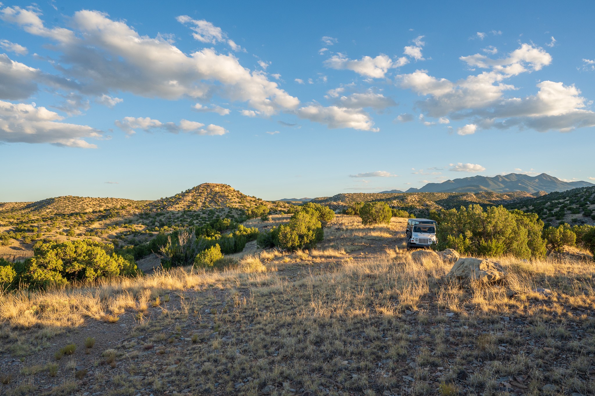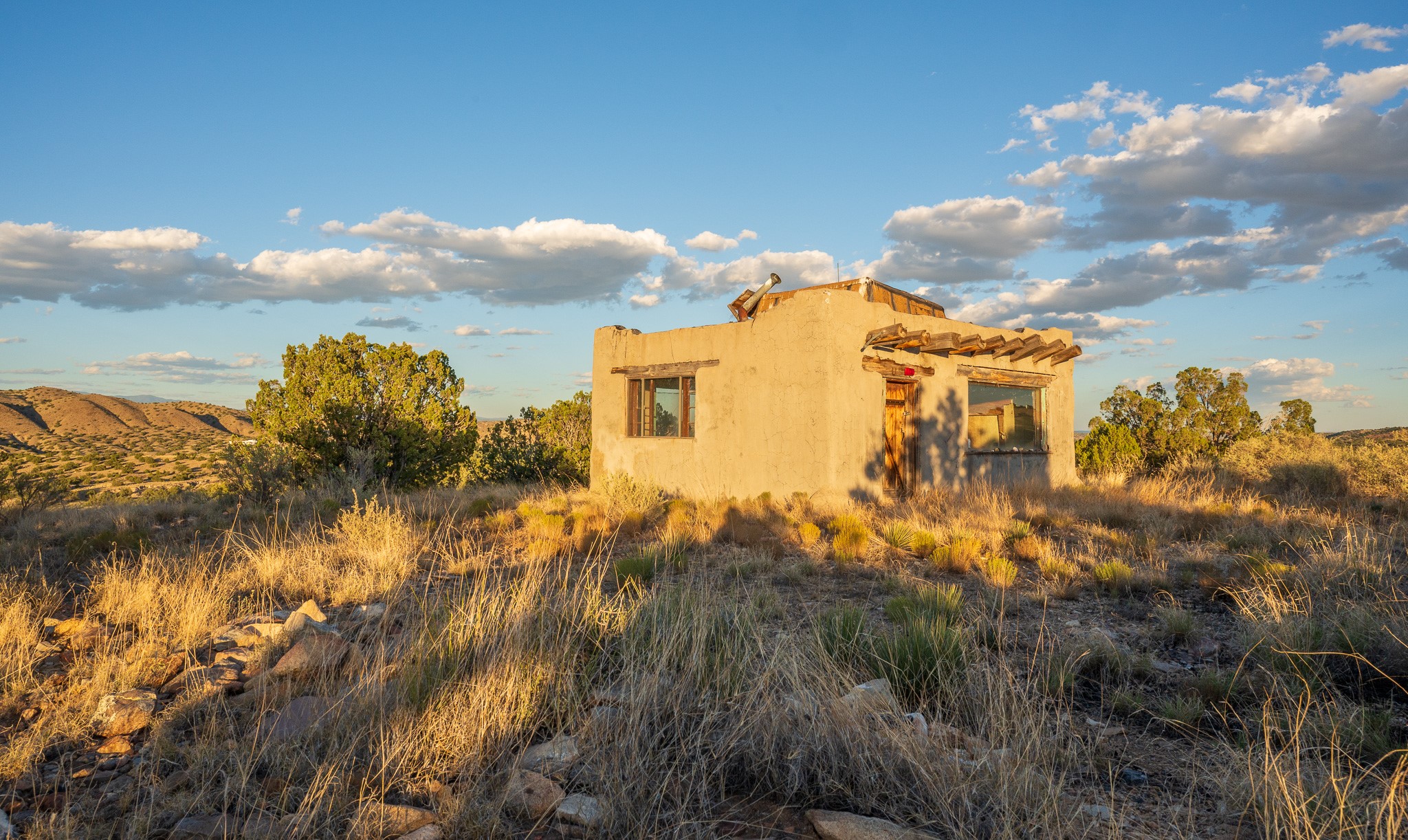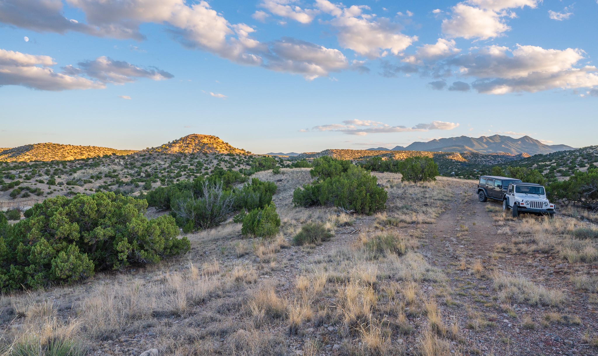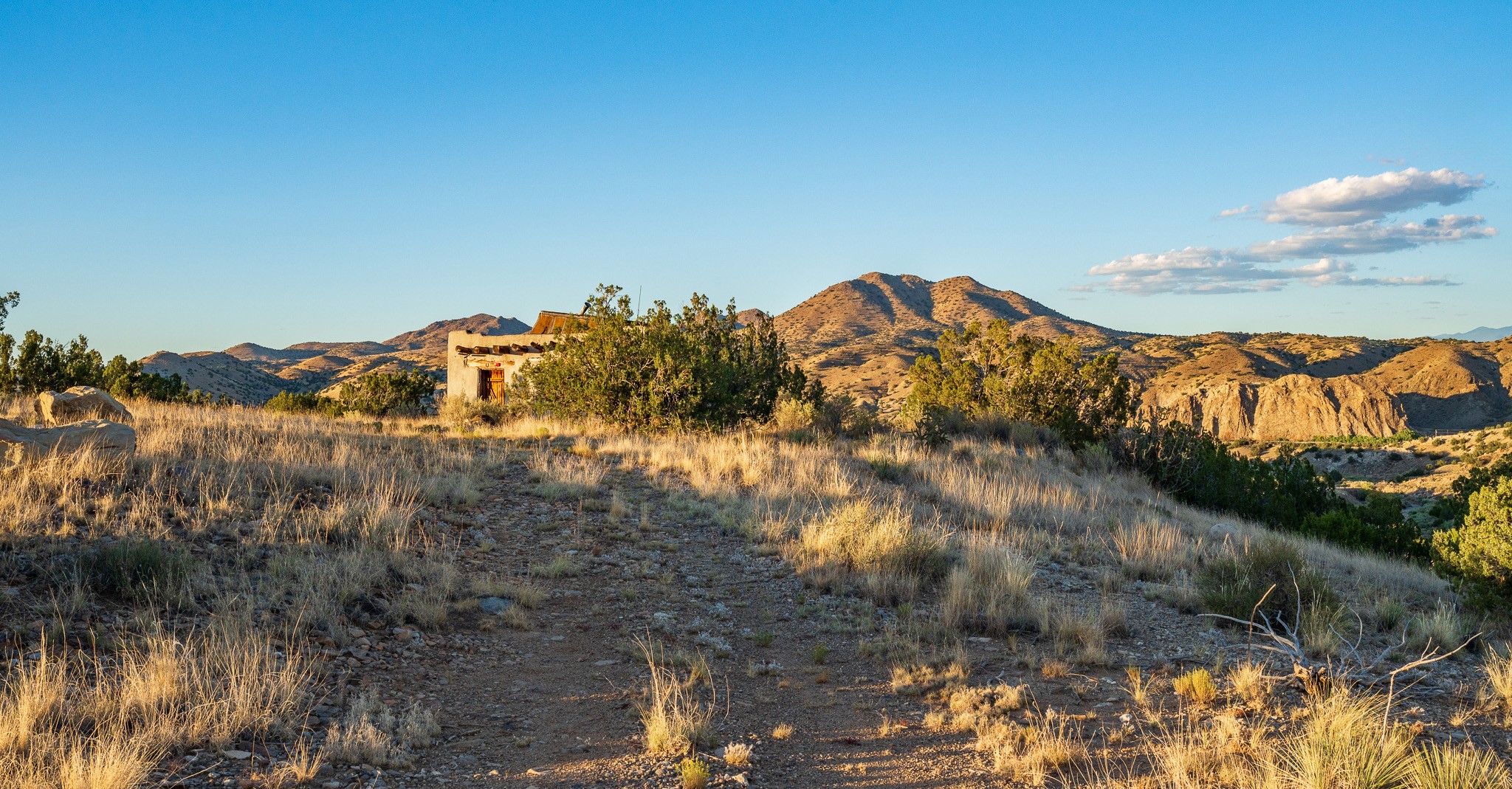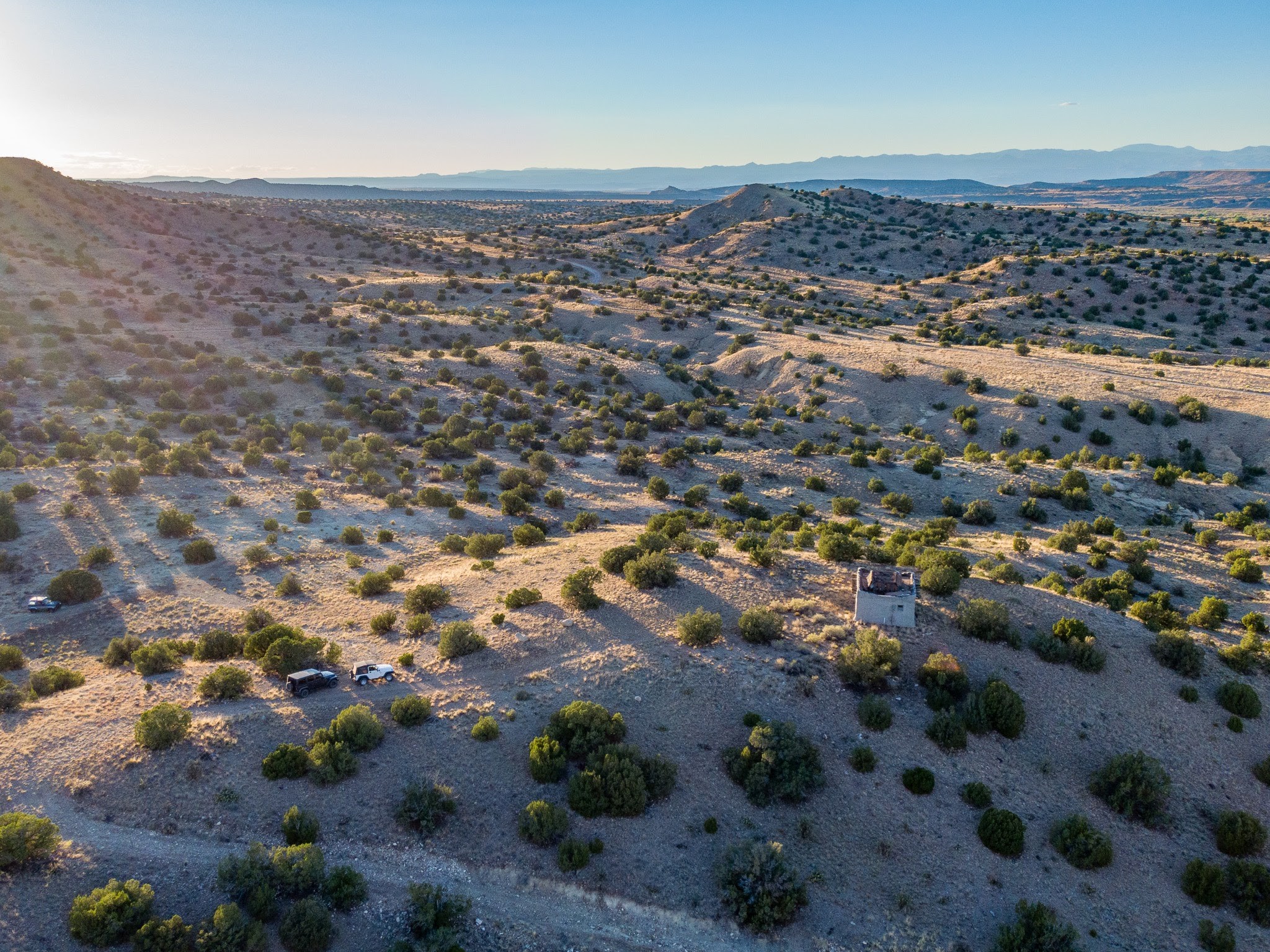 Views for miles from this off-grid 20 acres. Just 1.2 miles from the Highway 14, this property is minutes from pavement, near Cerrillos and Madrid for dining and entertainment, and about 25 minutes south of Santa Fe. A roughed-in driveway leads from White Wolf to a hilltop with an old adobe building in disrepair. Multiple elevated flat areas provide ideal building sites. Quiet and private, and ready for you to start your off-grid homestead. No restrictive covenants have been found. DO NOT ENTER THE BUILDING.