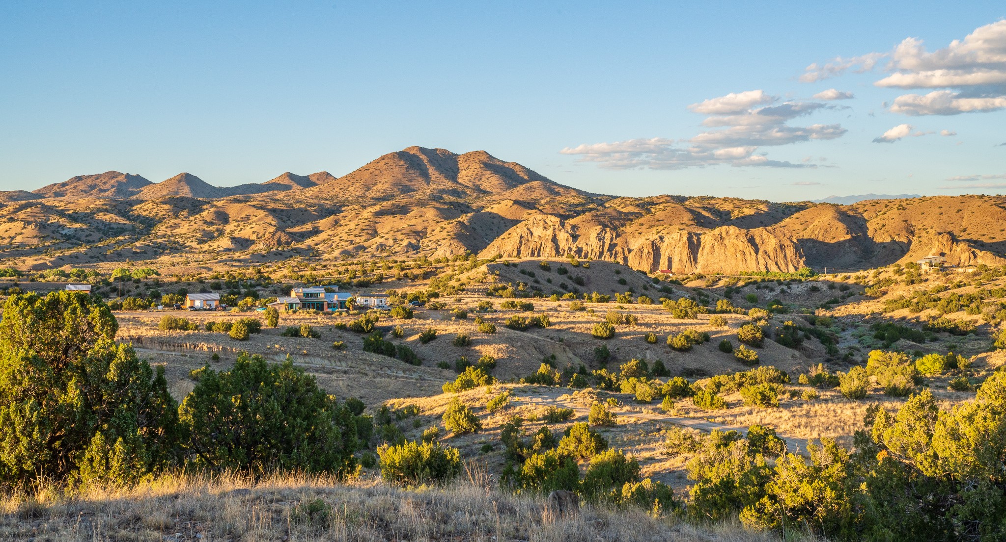 Explore and then live on the Turquoise Trail, aka South Highway 14. This is the “back way” from Santa Fe to Albuquerque, and is a beautiful way to travel the less beaten path. Most lots come with acreage of at least an acre, and many with more. The wide open spaces have less building restrictions than you’ll find in the City of Santa Fe, and horses are generally welcome.