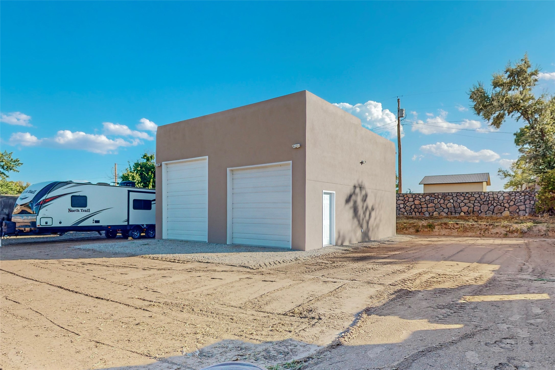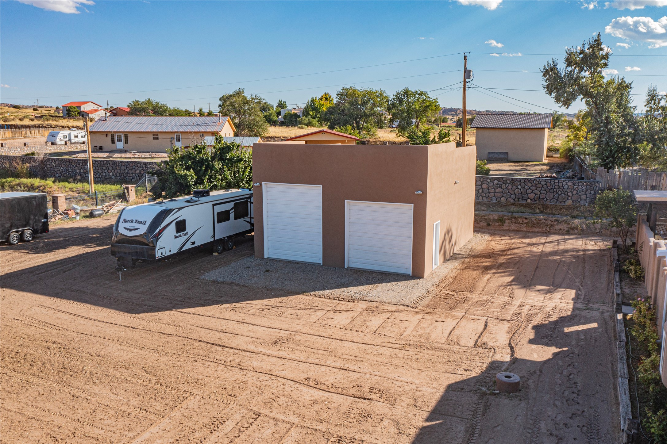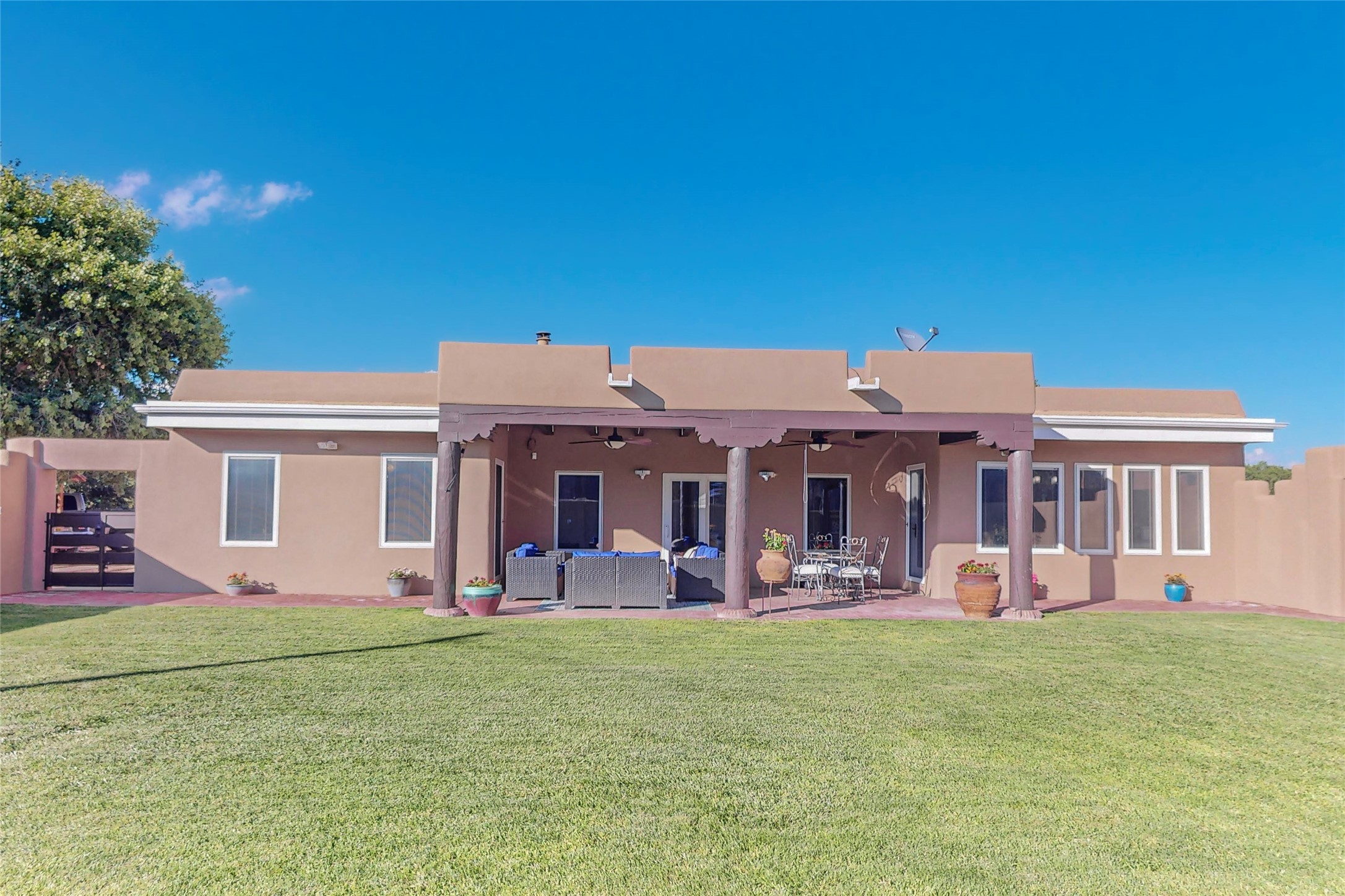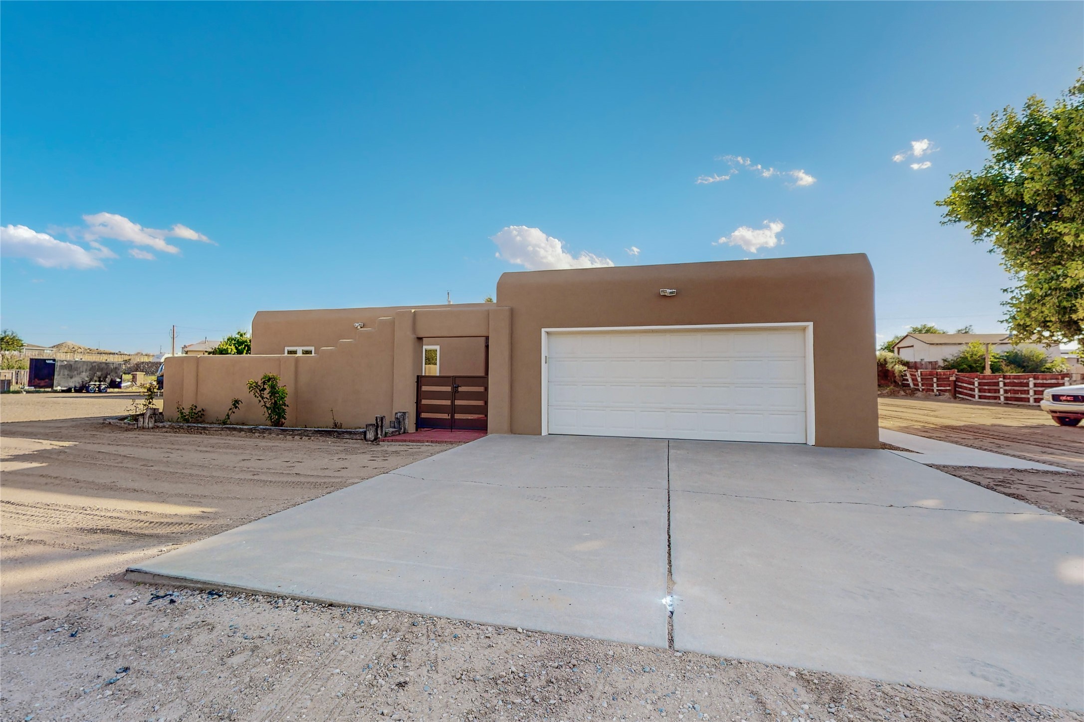 A Pueblo style home, in La Mesilla, is a home you do not want to miss. Located down a private drive, with limited road use. The road does have enough space for two cars to drive through. There are two gates to access the Property. One electronic gate opens to the two car attached garage. The other gate opens to the detached, large RV garage/shop. The home comes with irrigation water rights for one's organic garden or whatever the new homeowner decides to plant. There is plenty of space around the house to put in a pool or other possibilities one could think of, maybe a hoop house for year round organic vegetables. There is an underground irrigation system to water the east side of the property. A concrete lined irrigation ditch borders the entire backyard. The home has recently been stuccoed/sto. The Polyurethane foam roof was entirely evaluated and maintained in 2017.A walk into this house will instantly show the love this house has had. The home is immaculately clean and well maintained. Nice to find a home you can just move into. It has vigas and tongue and groove ceilings in the common areas along with tiled flooring, to include the wet areas. The bedrooms have wood flooring. The kiva fireplace located in the living room, is also a focal point from parts of the kitchen and dining room. The three pane "Pella Windows" has in glass blinds. There is central forced heating and a refrigerated air conditioning system, as well as in floor radiant heating. The Large RV garage/ shop, comes with electric lighting, electric outlets, shelving and a pellet stove. One can work in comfort, on those creative projects/hobbies, all year round. So much to see and feast those eyes on. The outside living space is amazing. There is a wonderful sprinkler system for the lawn. This is the home you do not want to miss. It has so much to offer an individual or a family. Certainly a home one can enjoy for a lifetime. Minutes away from Espanola, Santa Fe, Los Alamos, and Taos.