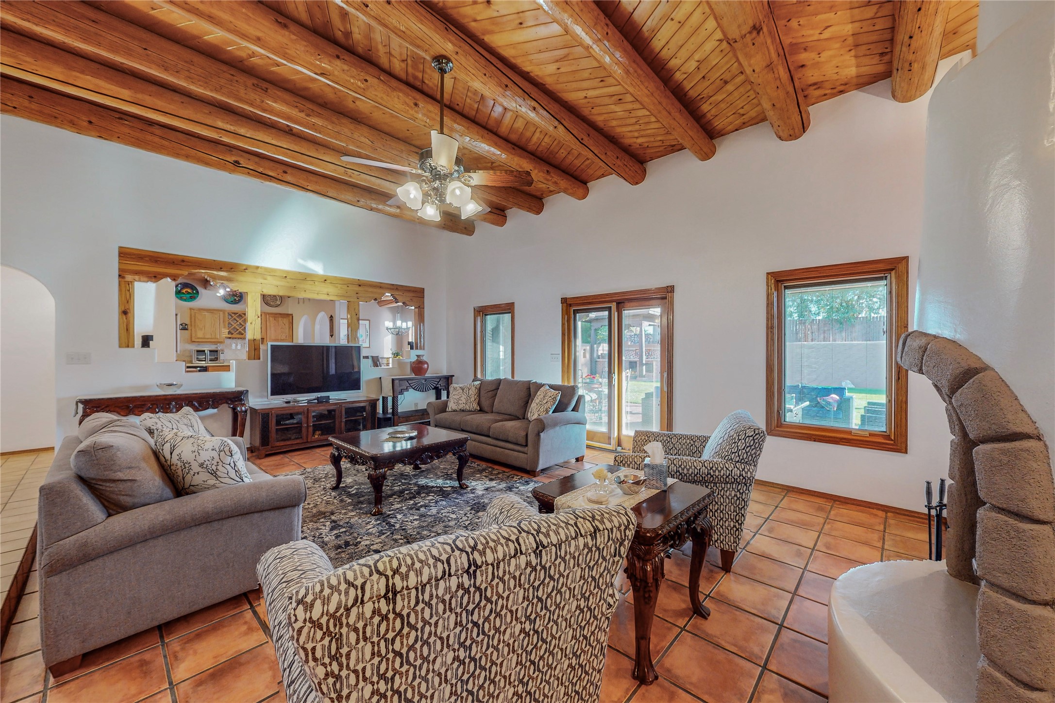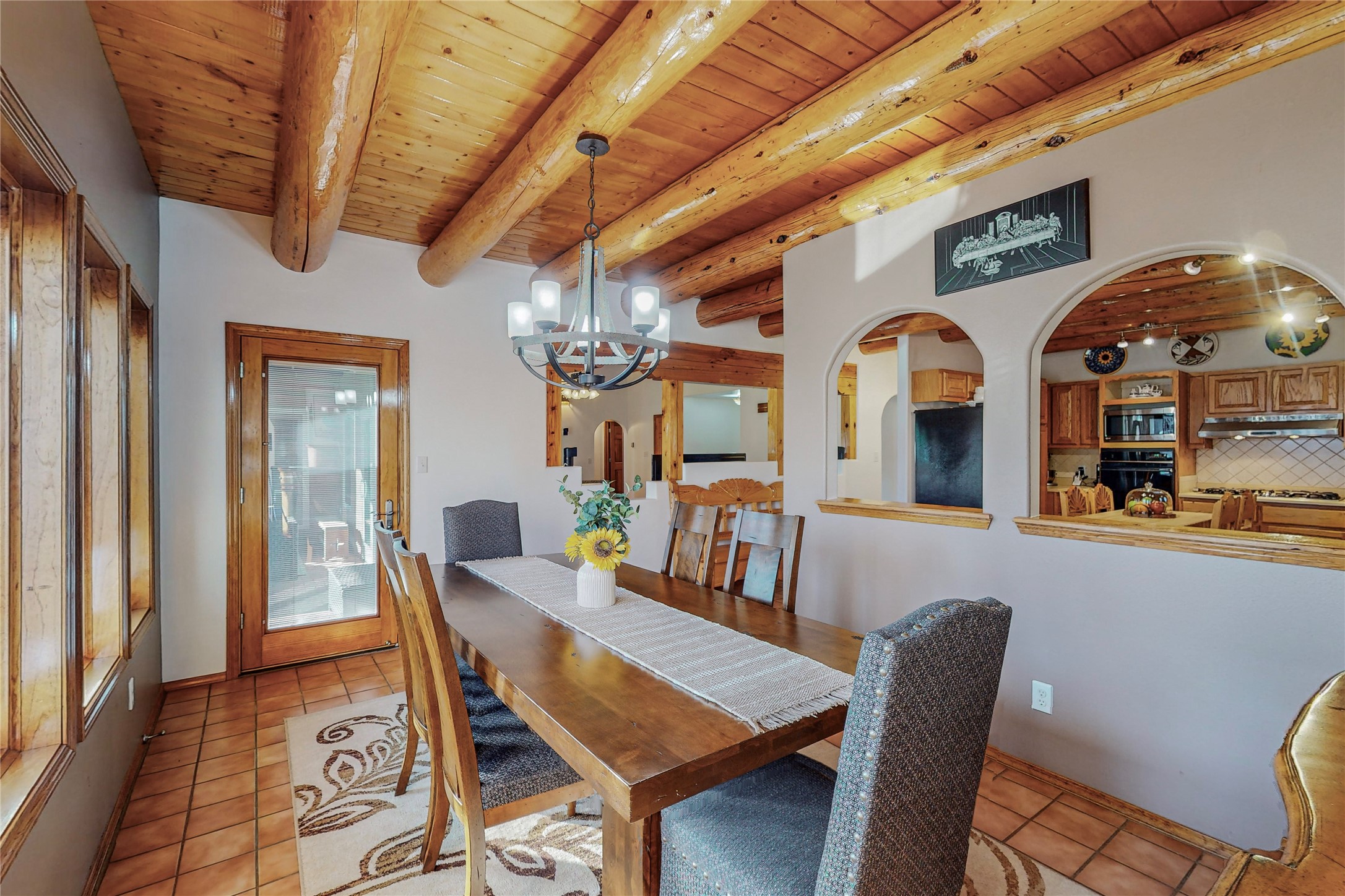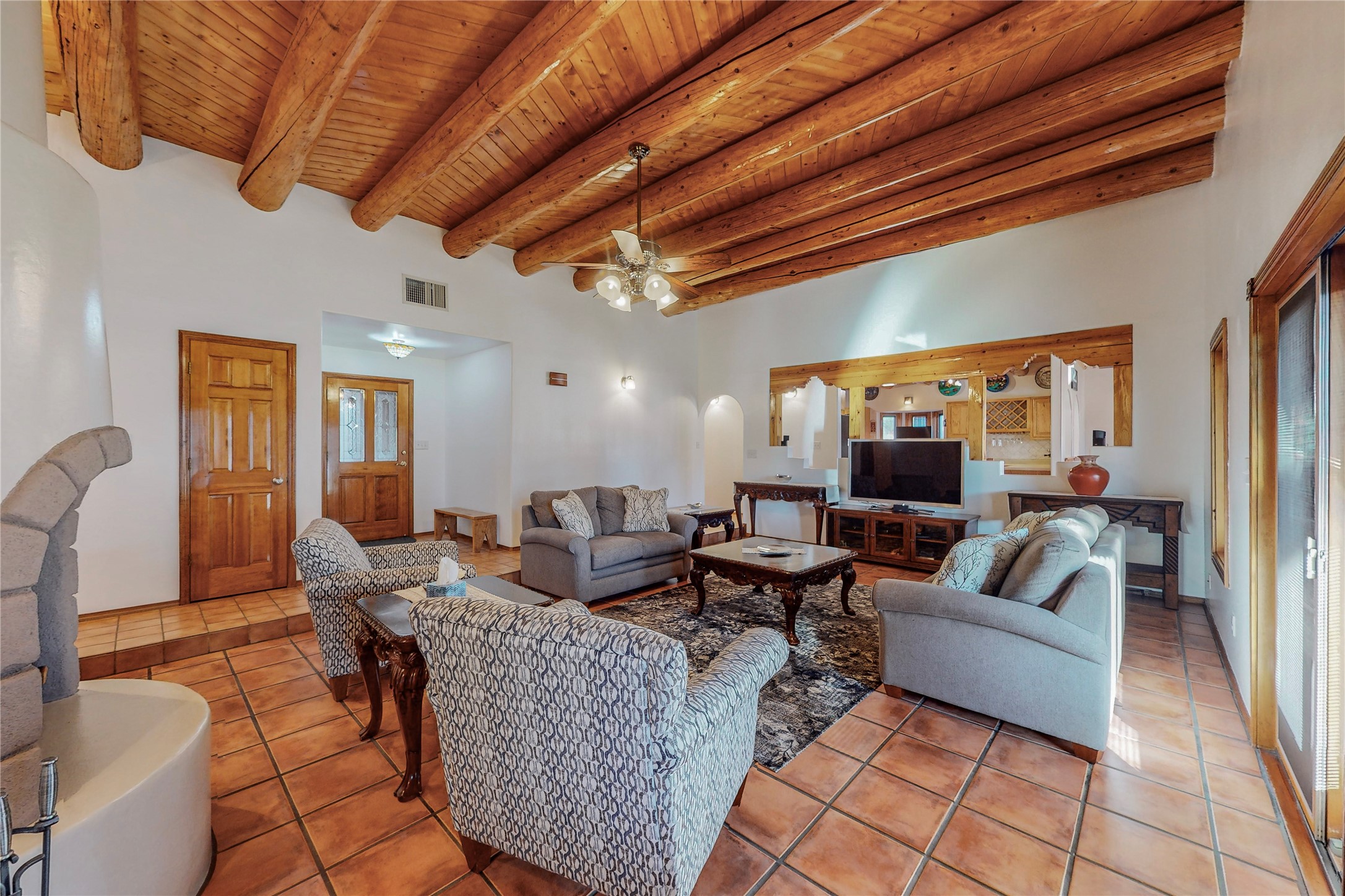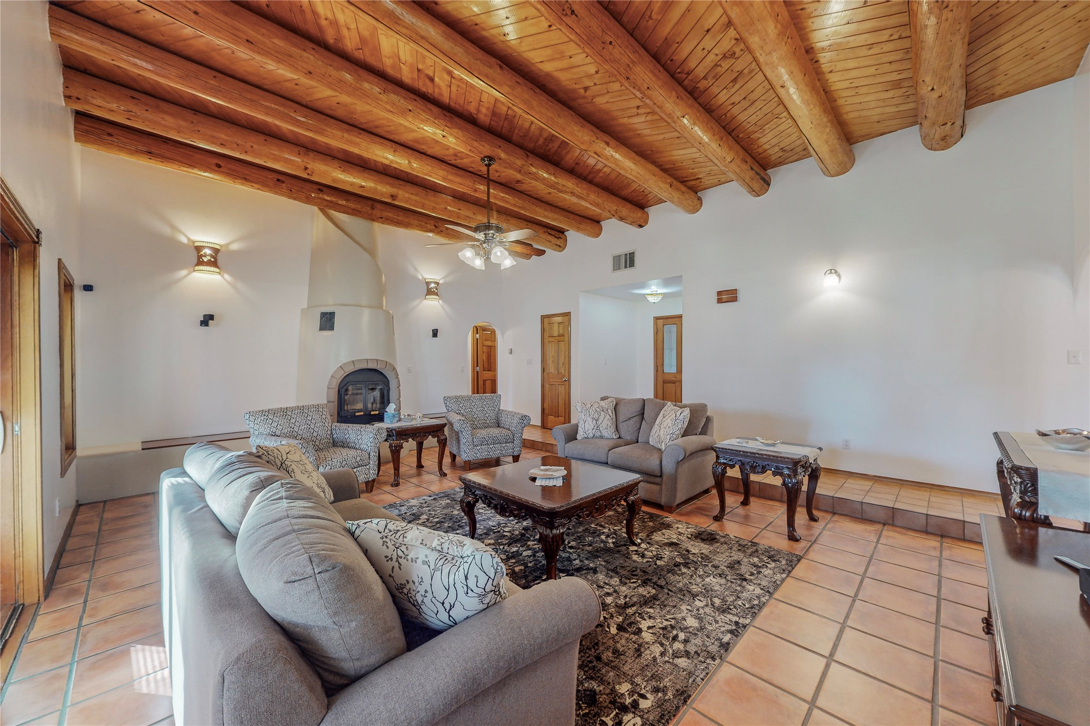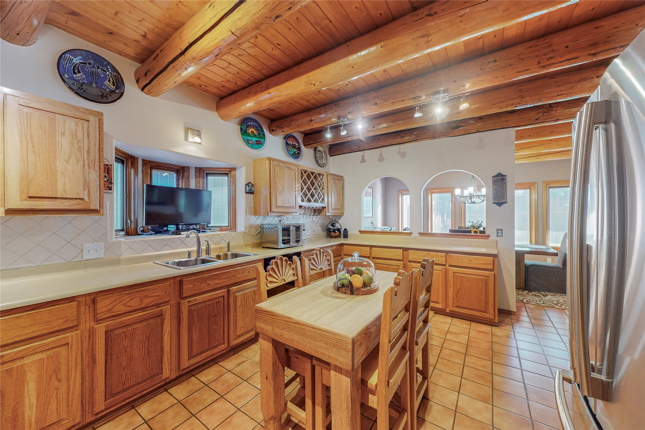 A Pueblo style home, in La Mesilla, is a home you do not want to miss. Located down a private drive, with limited road use. The road does have enough space for two cars to drive through. There are two gates to access the Property. One electronic gate opens to the two car attached garage. The other gate opens to the detached, large RV garage/shop. The home comes with irrigation water rights for one's organic garden or whatever the new homeowner decides to plant. There is plenty of space around the house to put in a pool or other possibilities one could think of, maybe a hoop house for year round organic vegetables. There is an underground irrigation system to water the east side of the property. A concrete lined irrigation ditch borders the entire backyard. The home has recently been stuccoed/sto. The Polyurethane foam roof was entirely evaluated and maintained in 2017.A walk into this house will instantly show the love this house has had. The home is immaculately clean and well maintained. Nice to find a home you can just move into. It has vigas and tongue and groove ceilings in the common areas along with tiled flooring, to include the wet areas. The bedrooms have wood flooring. The kiva fireplace located in the living room, is also a focal point from parts of the kitchen and dining room. The three pane "Pella Windows" has in glass blinds. There is central forced heating and a refrigerated air conditioning system, as well as in floor radiant heating. The Large RV garage/ shop, comes with electric lighting, electric outlets, shelving and a pellet stove. One can work in comfort, on those creative projects/hobbies, all year round. So much to see and feast those eyes on. The outside living space is amazing. There is a wonderful sprinkler system for the lawn. This is the home you do not want to miss. It has so much to offer an individual or a family. Certainly a home one can enjoy for a lifetime. Minutes away from Espanola, Santa Fe, Los Alamos, and Taos.