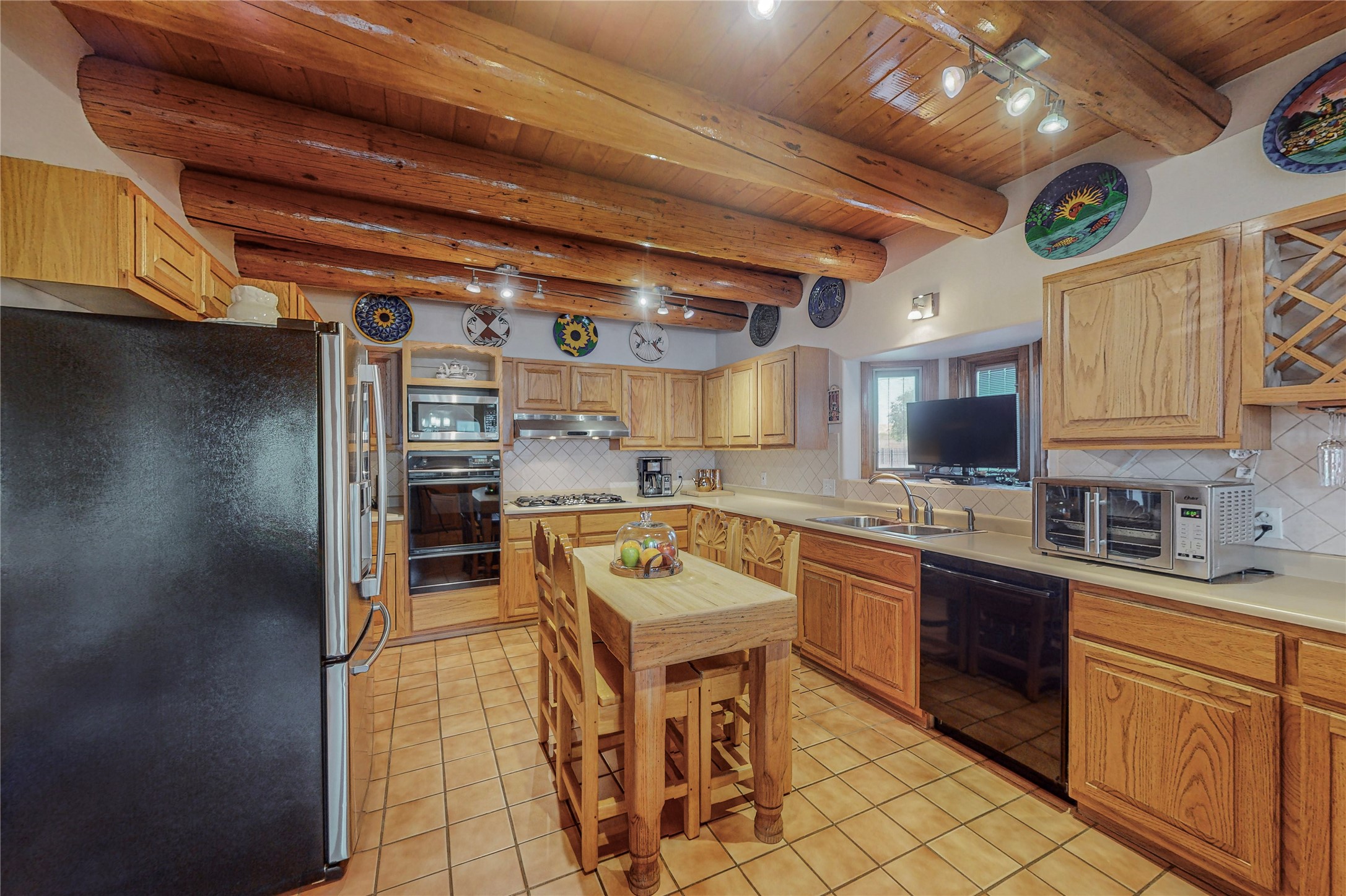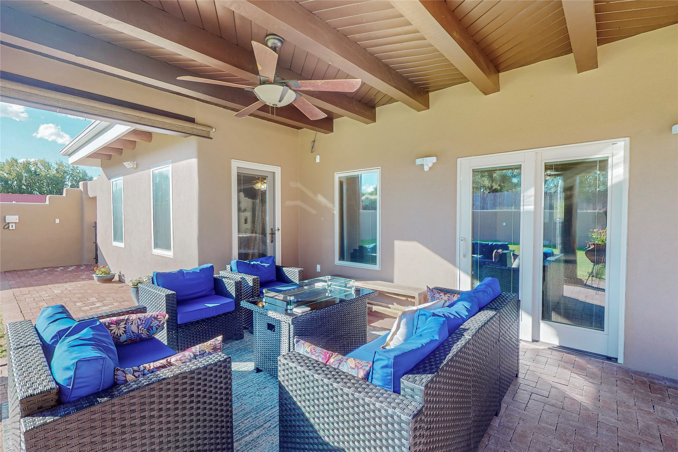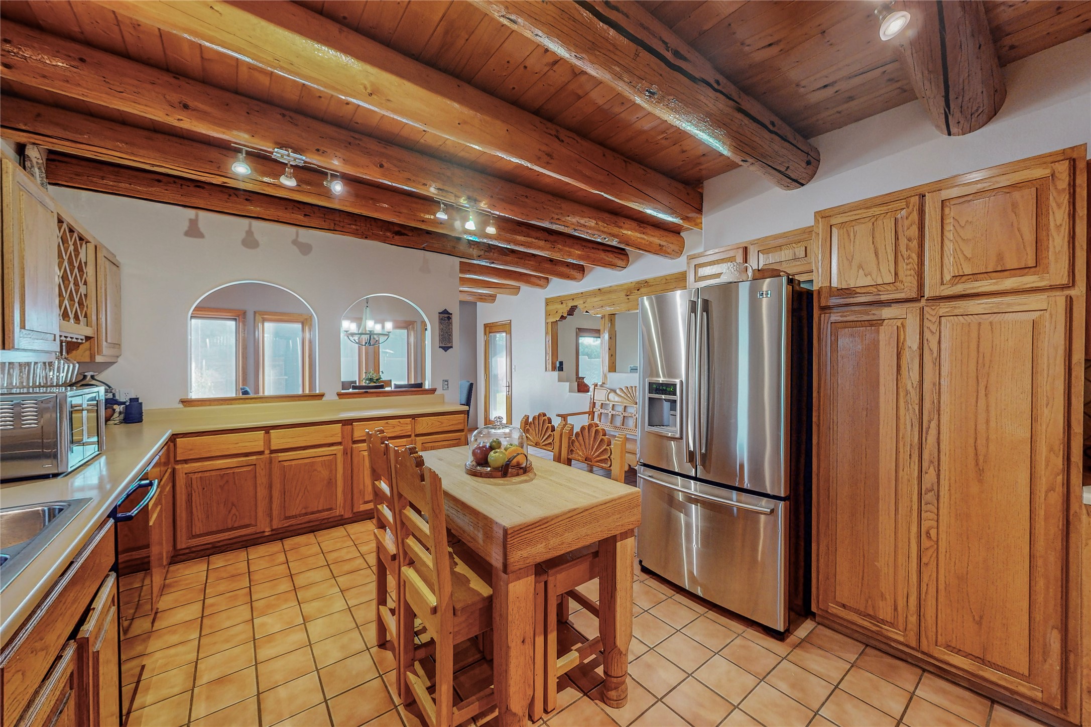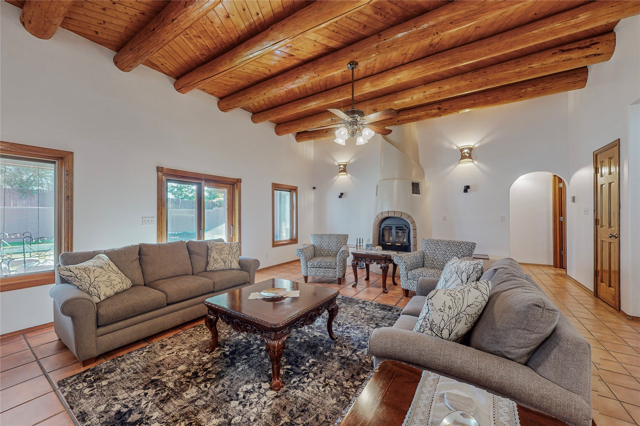 A Pueblo style home, in La Mesilla, is a home you do not want to miss. Located down a private drive, with limited road use. The road does have enough space for two cars to drive through. There are two gates to access the Property. One electronic gate opens to the two car attached garage. The other gate opens to the detached, large RV garage/shop. The home comes with irrigation water rights for one's organic garden or whatever the new homeowner decides to plant. There is plenty of space around the house to put in a pool or other possibilities one could think of, maybe a hoop house for year round organic vegetables. There is an underground irrigation system to water the east side of the property. A concrete lined irrigation ditch borders the entire backyard. The home has recently been stuccoed/sto. The Polyurethane foam roof was entirely evaluated and maintained in 2017.A walk into this house will instantly show the love this house has had. The home is immaculately clean and well maintained. Nice to find a home you can just move into. It has vigas and tongue and groove ceilings in the common areas along with tiled flooring, to include the wet areas. The bedrooms have wood flooring. The kiva fireplace located in the living room, is also a focal point from parts of the kitchen and dining room. The three pane "Pella Windows" has in glass blinds. There is central forced heating and a refrigerated air conditioning system, as well as in floor radiant heating. The Large RV garage/ shop, comes with electric lighting, electric outlets, shelving and a pellet stove. One can work in comfort, on those creative projects/hobbies, all year round. So much to see and feast those eyes on. The outside living space is amazing. There is a wonderful sprinkler system for the lawn. This is the home you do not want to miss. It has so much to offer an individual or a family. Certainly a home one can enjoy for a lifetime. Minutes away from Espanola, Santa Fe, Los Alamos, and Taos.