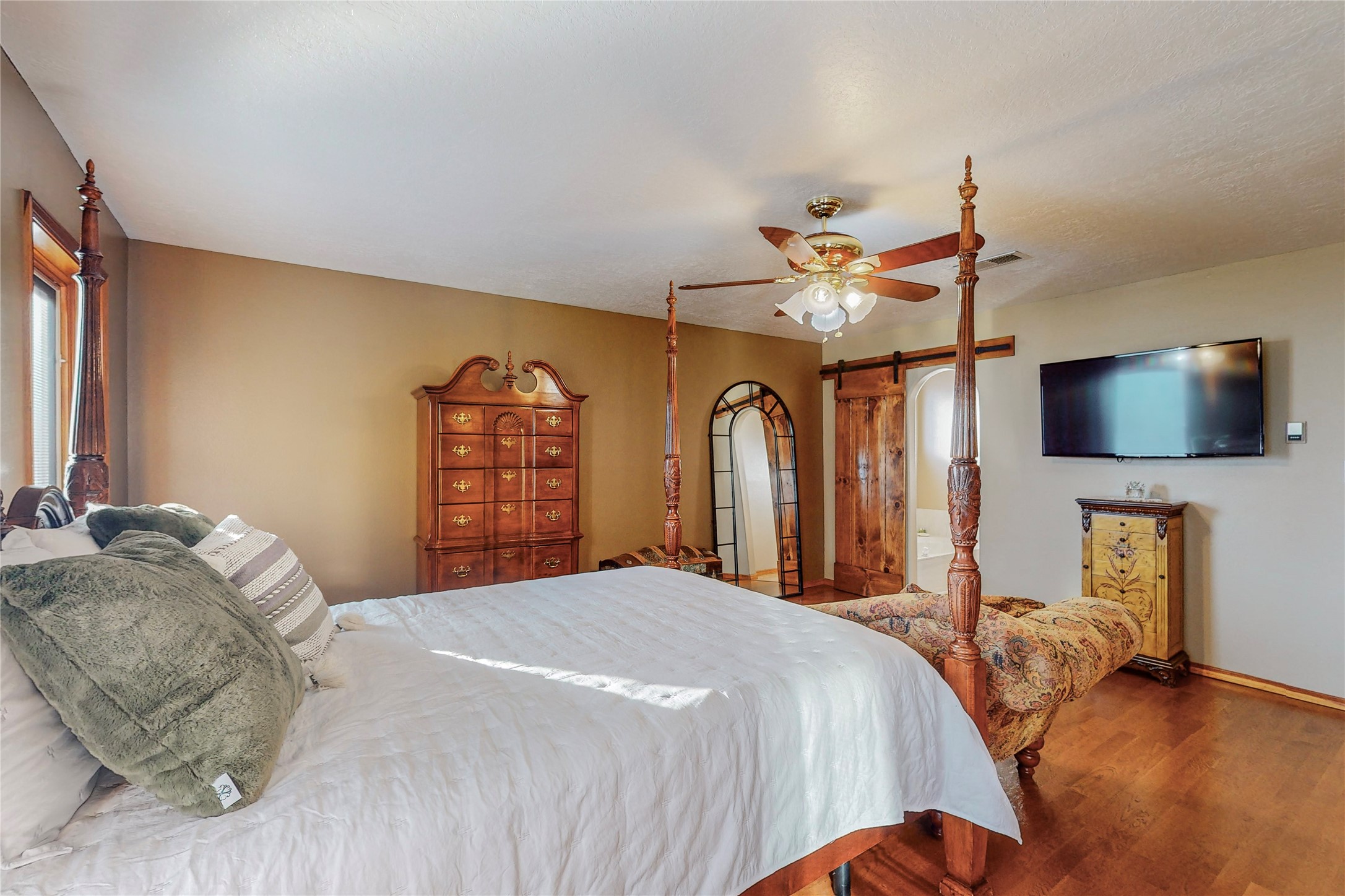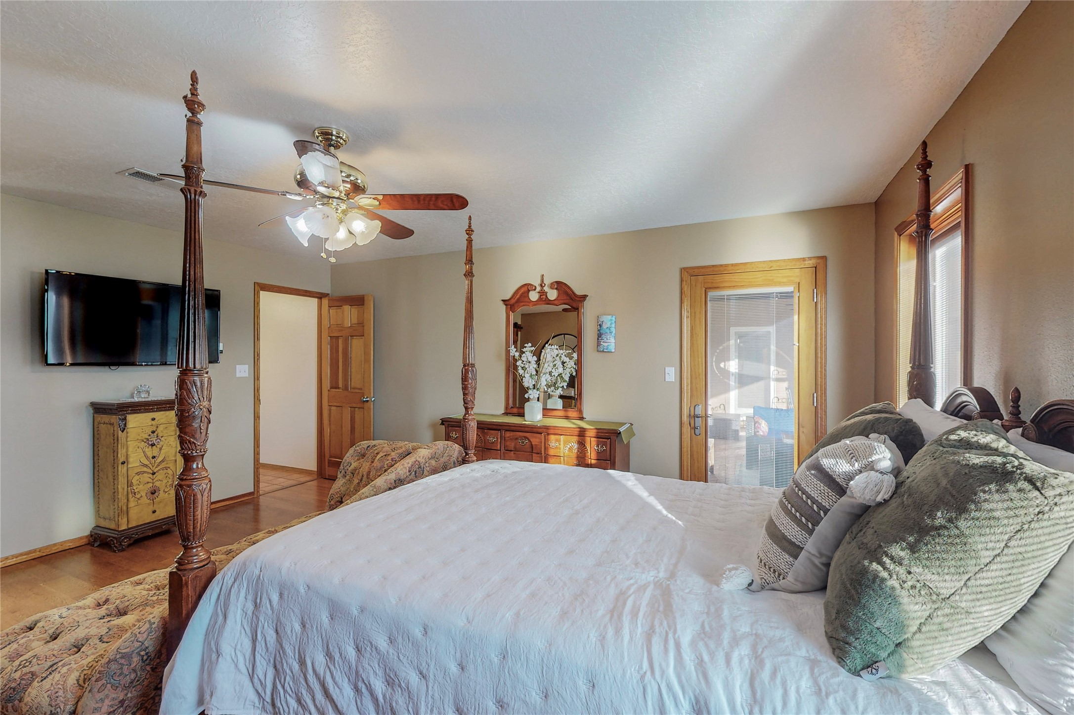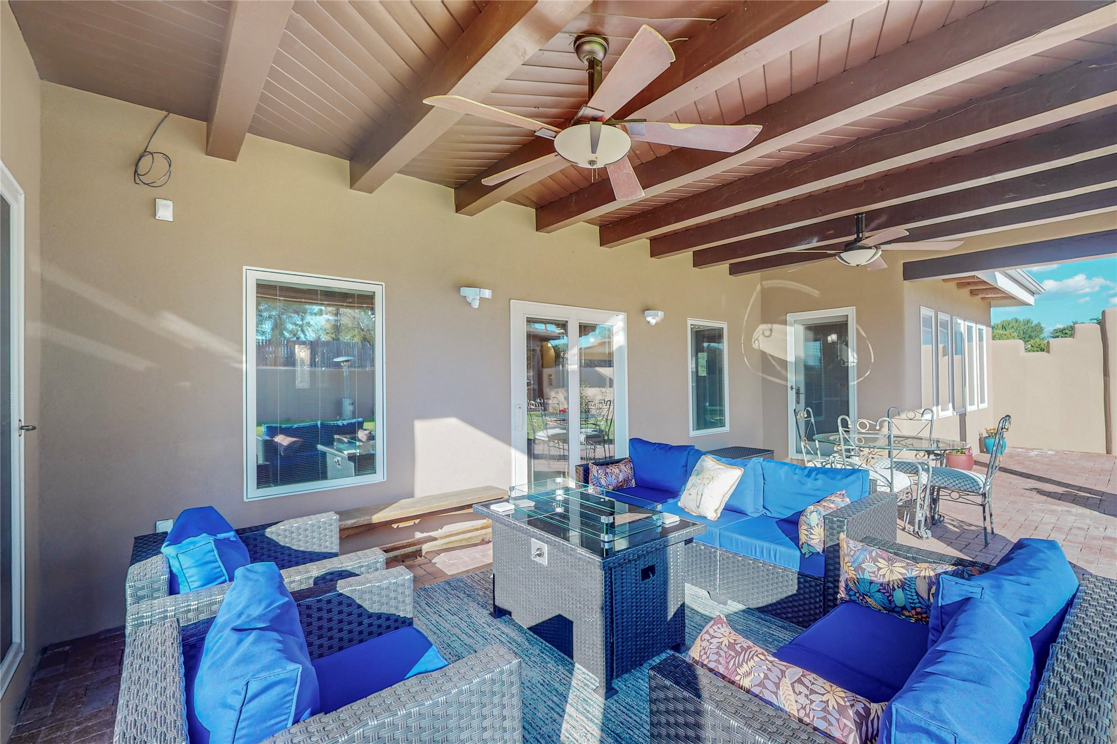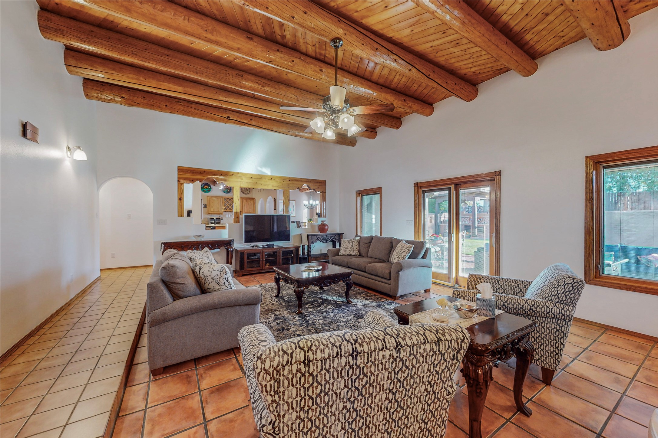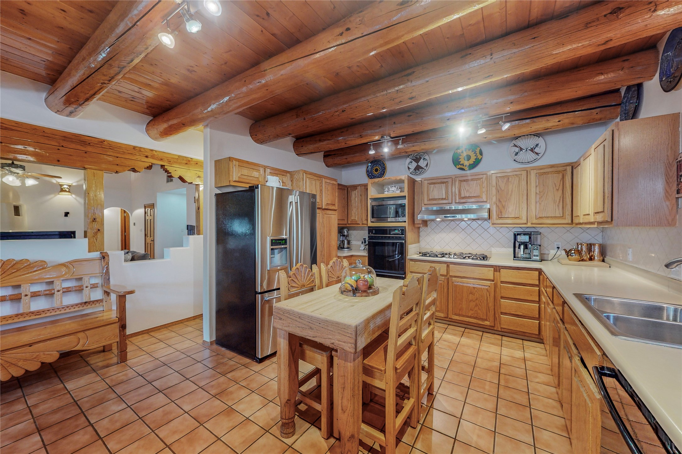 A Pueblo style home, in La Mesilla, is a home you do not want to miss. Located down a private drive, with limited road use. The road does have enough space for two cars to drive through. There are two gates to access the Property. One electronic gate opens to the two car attached garage. The other gate opens to the detached, large RV garage/shop. The home comes with irrigation water rights for one's organic garden or whatever the new homeowner decides to plant. There is plenty of space around the house to put in a pool or other possibilities one could think of, maybe a hoop house for year round organic vegetables. There is an underground irrigation system to water the east side of the property. A concrete lined irrigation ditch borders the entire backyard. The home has recently been stuccoed/sto. The Polyurethane foam roof was entirely evaluated and maintained in 2017.A walk into this house will instantly show the love this house has had. The home is immaculately clean and well maintained. Nice to find a home you can just move into. It has vigas and tongue and groove ceilings in the common areas along with tiled flooring, to include the wet areas. The bedrooms have wood flooring. The kiva fireplace located in the living room, is also a focal point from parts of the kitchen and dining room. The three pane "Pella Windows" has in glass blinds. There is central forced heating and a refrigerated air conditioning system, as well as in floor radiant heating. The Large RV garage/ shop, comes with electric lighting, electric outlets, shelving and a pellet stove. One can work in comfort, on those creative projects/hobbies, all year round. So much to see and feast those eyes on. The outside living space is amazing. There is a wonderful sprinkler system for the lawn. This is the home you do not want to miss. It has so much to offer an individual or a family. Certainly a home one can enjoy for a lifetime. Minutes away from Espanola, Santa Fe, Los Alamos, and Taos.