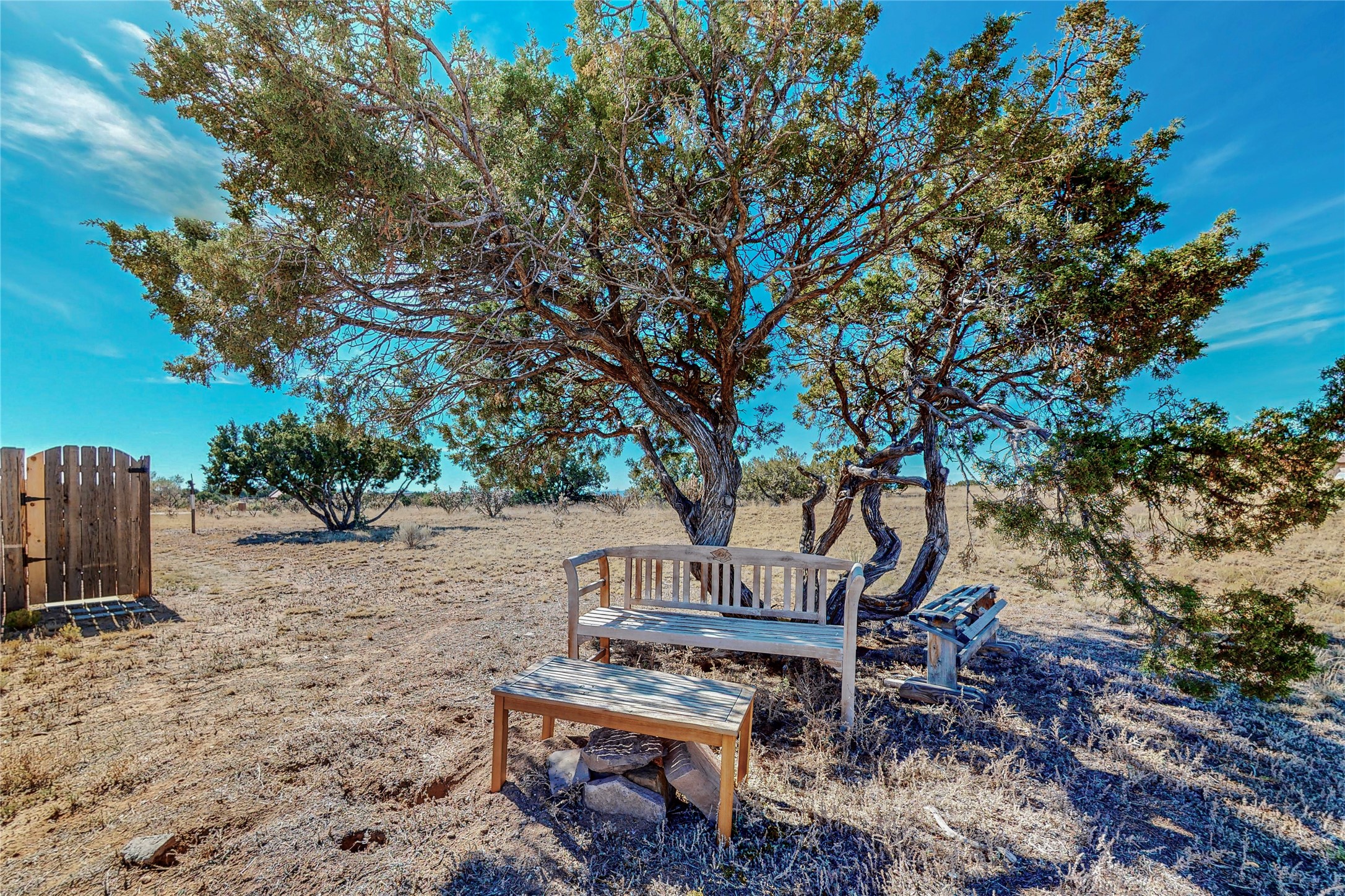 COME TO OUR OPEN HOUSE TODAY,SUNDAY NOVEMBER 12TH BETWEEN 1-4 P.M.Embrace the Santa Fe lifestyle in this beautiful two-bedroom, two-bathroom home designed in the classic pueblo style, situated on a 1.59-acre lot. At the heart of this home, a wood-burning fireplace has played a central role in countless family game nights and festive Christmases. The interior has a New Mexican ambiance, with features such as Saltillo tile, viga ceilings, and tasteful turquoise accents. Additionally, the family room is graced with elegant wooden pillars that pay homage to the rich traditions of Southwestern design. The kitchen has newer stove and refrigerator, offering ample pantry space and a window overlooking a charming enclosed front yard. From the kitchen next area is the house dining area, and through a sliding glass door, you'll find another enclosed yard space. The house has a sunroom with full glass windows that welcome natural light into every corner of this home. Nestled within the community of Eldorado, you'll have access to the exclusive amenities offered by this neighborhood including swimming pool, basketball & tennis courts, community center, dog park, and more. Eldorado has well-maintained paved walking trails that provide a picturesque environment for residents. Be sure to explore the El Dorado Farmer's market, where you can discover fresh, locally sourced produce. This property is just minutes away from restaurants, shopping center, pet store, Library and bank in the Algora Shopping center. Join the vibrant community of Eldorado, which was recognized as the #1 Best Place to Live in Santa Fe County by Niche in 2022.