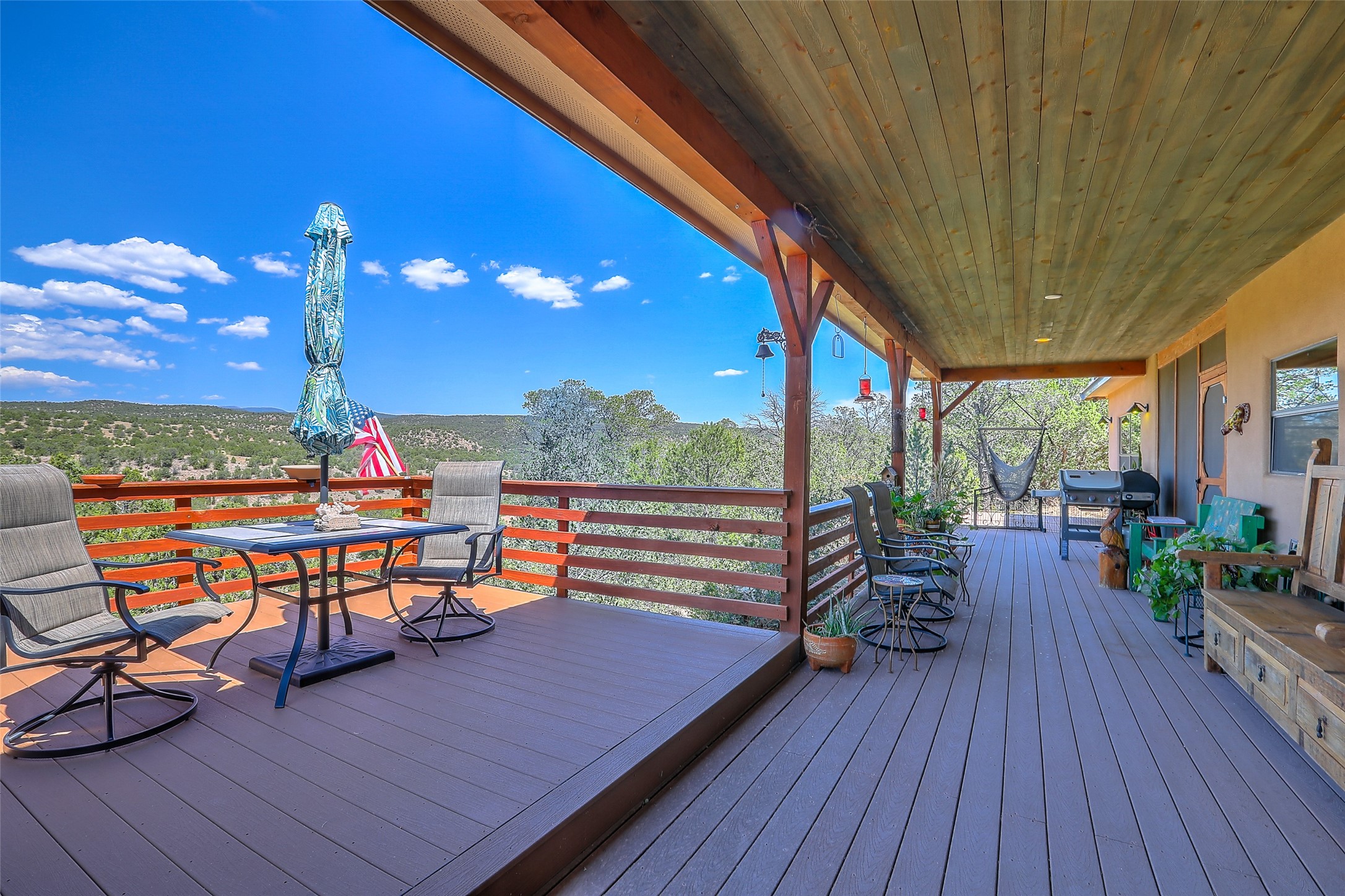Namely apt as Casa Rio, with a beautiful meandering walk to the cliff of the Pecos River, this country home is also a short drive into Pecos local sites. Enjoy the night-sky! Enclosed Atrium. 7.5 acreage of this property with a new 280' studio/garage for your sheer talent--20x14 building constructed in 2022,concrete slab, underground electric, LED lighting, insulated, & 8/12 pitch metal roof with attic storage. Casa Rio has an added 10X10 Deck Extension & Railings to match existing deck. Hike by Foot & Equestrian Trails to the cliff along the Pecos River. The trail runs along the riverbank on BLM property 1/2 mile to a meadow on river front. Approximately 5 miles of adjoining public foot & equestrian trails around the property. The RV Site, a 30-Amp RV outlet installed at corner of house near water spicket & septic cleanout to allow for full hook-up RV Site. And there is a Dog Yard!!! Directly outside the primary bedroom. The water well is 100' deep and taps into 280' deep aquifer. An added surge protector, Sub Drive Circuit board was replaced 12.09.21. Roof includes all metal vent flashings reworked & sealed with "NP1" (high grade) caulk. Added "Dektite" neoprene plumbing vent flashings to all PVC pipes. All vents were painted to match. An added metal chimney cap. The fireplace was remodeled with a "Blaze King" wood-burning insert installed by Dreamstyle Remodeling on 03.18.20. 300-gallon propane tank usually filled twice a year, approximately $870.00+ each time. 2-3 cords of local wood a year. Internet service is Plateau or Hughsnet. New Fiberoptic install. Mora-San Miguel Electric Cooperative. The kitchen is a dream with all the amenities for cooking & storage. The gas range was replaced with an electric range, existing gas line is capped off. Primary bedroom suite is on the opposite end of the home from Jack&Jill bathroom w/2 bedrooms. Driveway, parking areas, & ground area around house & studio is sand/rock & does not get muddy. Enjoy the majesty!!