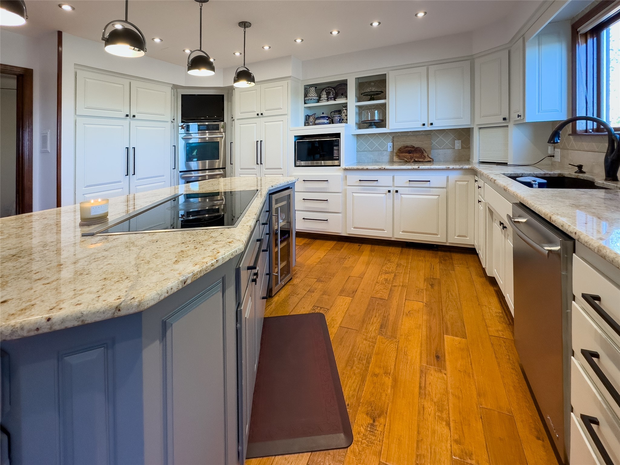 Expansive views of the Sangre De Cristos mountains and morning sunrises is just the beginning of the story about this beautiful custom home. An elegantly warm designed home with cathedral beamed ceilings in the large family room with built in bookshelves and a sitting area that feels as if you are sitting right on the canyon. Large beams accent the living space with rich wood floors and separate entertaining spaces. The large kitchen features, painted cabinets, center island with eat at bar, granite countertops, eat in breakfast nook, double ovens, tons of cabinets and counter space. It is definitely the heart of the home. Off the kitchen you have french doors out to the deck where barbecuing and dinner entertaining are a must while watching the sunset on the canyon. A main level bedroom with its own bathroom is a nice features of this home and upstairs lends itself to a loft area and office area with another outdoor sitting area, two large additional bedrooms with walk in closets and a beautifully designed full bathroom that feeds both bedrooms. The owners suite is nicely situated with an additional deck, two large closets, an amazing bathroom suite with a soaking tub and a large separate shower, it feels like you are at a spa. Don't forget the downstairs walk out basement with tons of room, extra 5th bedroom and a designer bathroom. Every detail of this home was thoughtfully designed and the 3 car garage lends to extra workshop space and there is room for RV parking on the driveway with an additional circular driveway for easy access to the entry. This is a special home and is really a must see for those that desire views, location and wildlife with plenty of room for all.