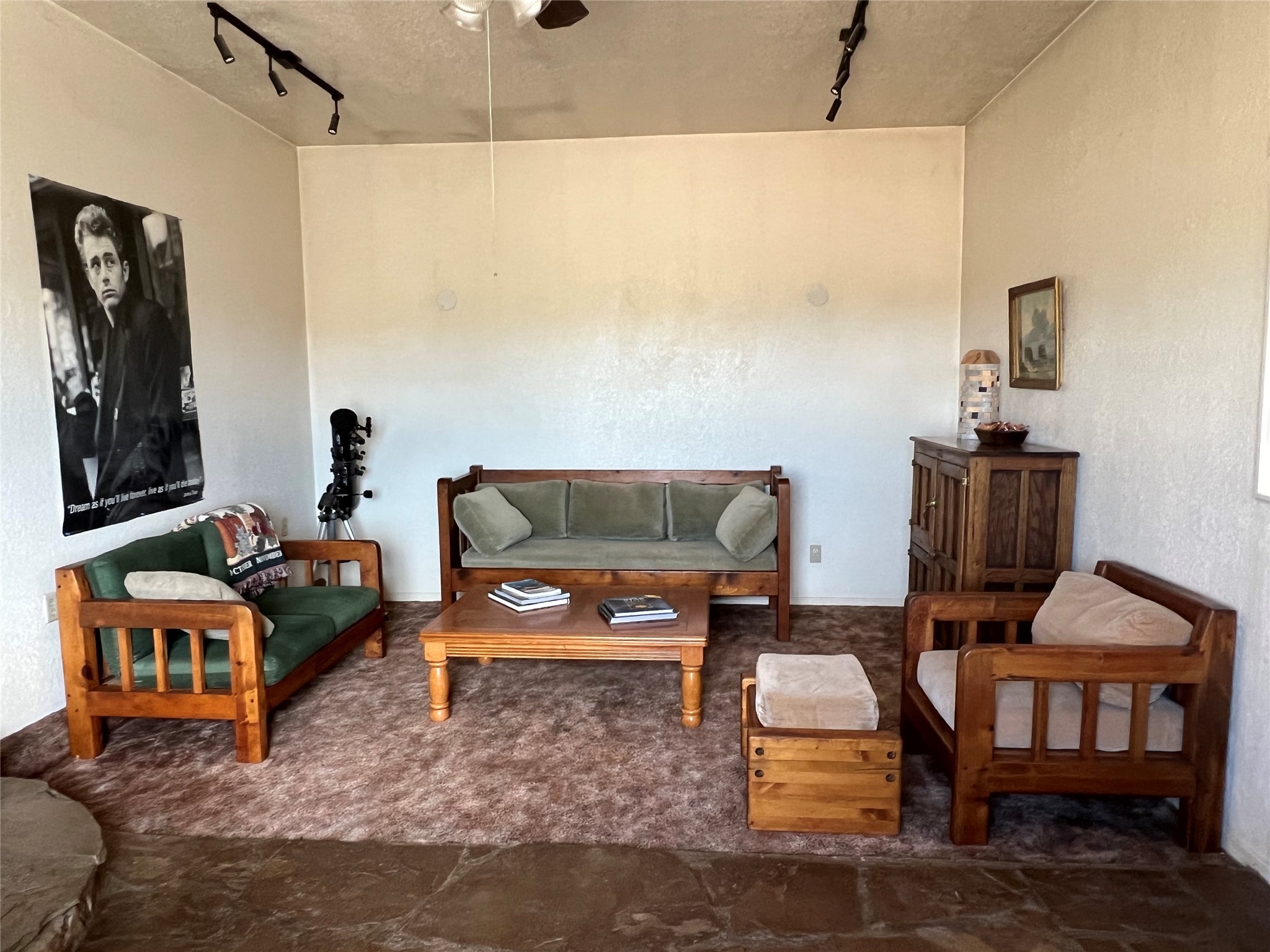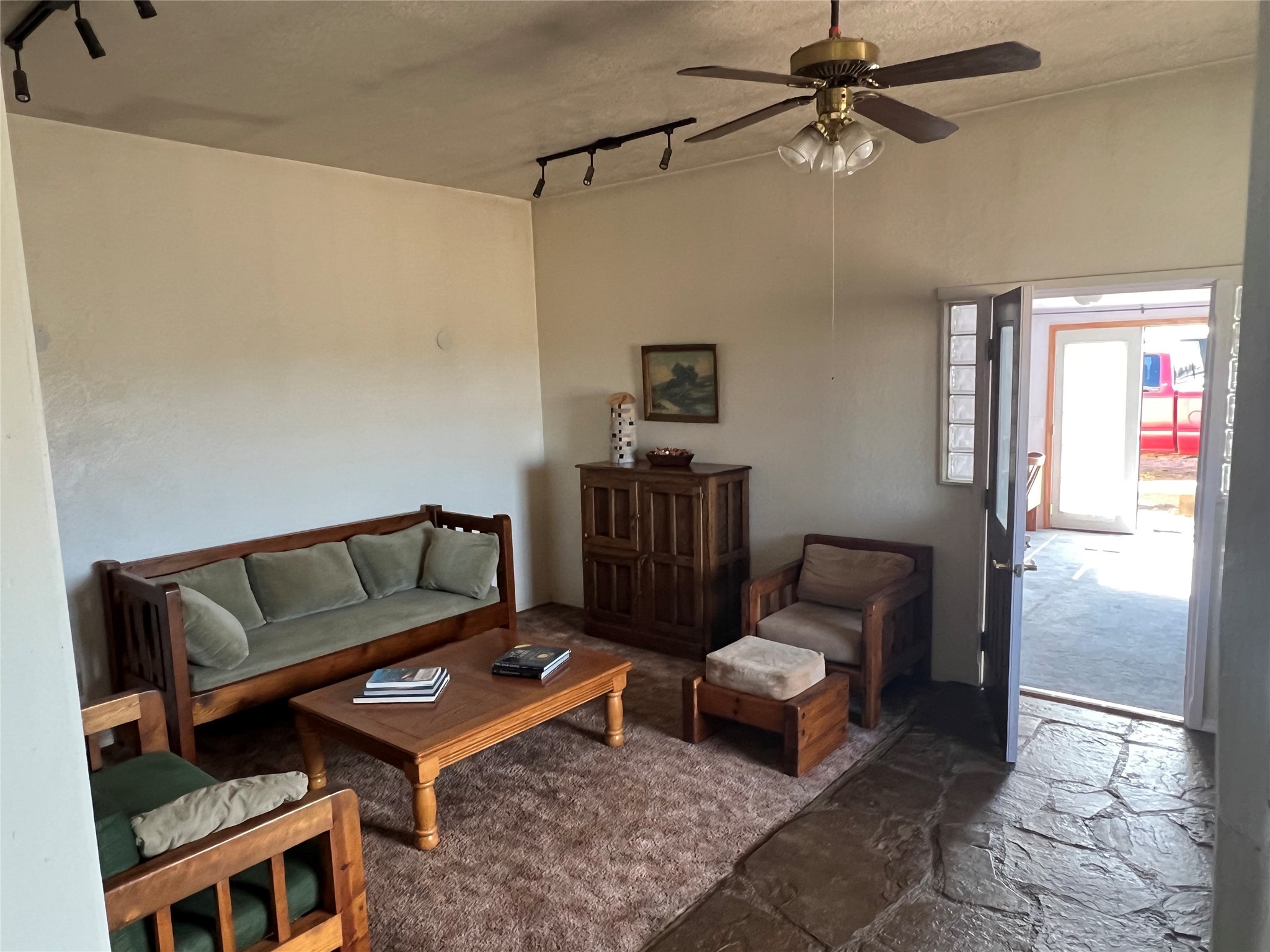 Peaceful and lovely area off highway 14, with amazing views and a dream workshop. This charming home is situated on 2.5 acres with 360-degree views. Property features a private well and a very large workshop with high ceilings, overhead doors and is fully insulated. Easy access to the highway AND 599 for easy commutes.Home has 3 bedrooms, two full living areas and an office. House has a large kitchen with tile countertops, a pitched roof, and a tremendous amount of potential, just needs a little tender loving care.Buyers must exercise their own due diligence. Home will be sold "as is."Don't miss your chance to live in a desirable area and acquire your own piece of heaven in New Mexico.