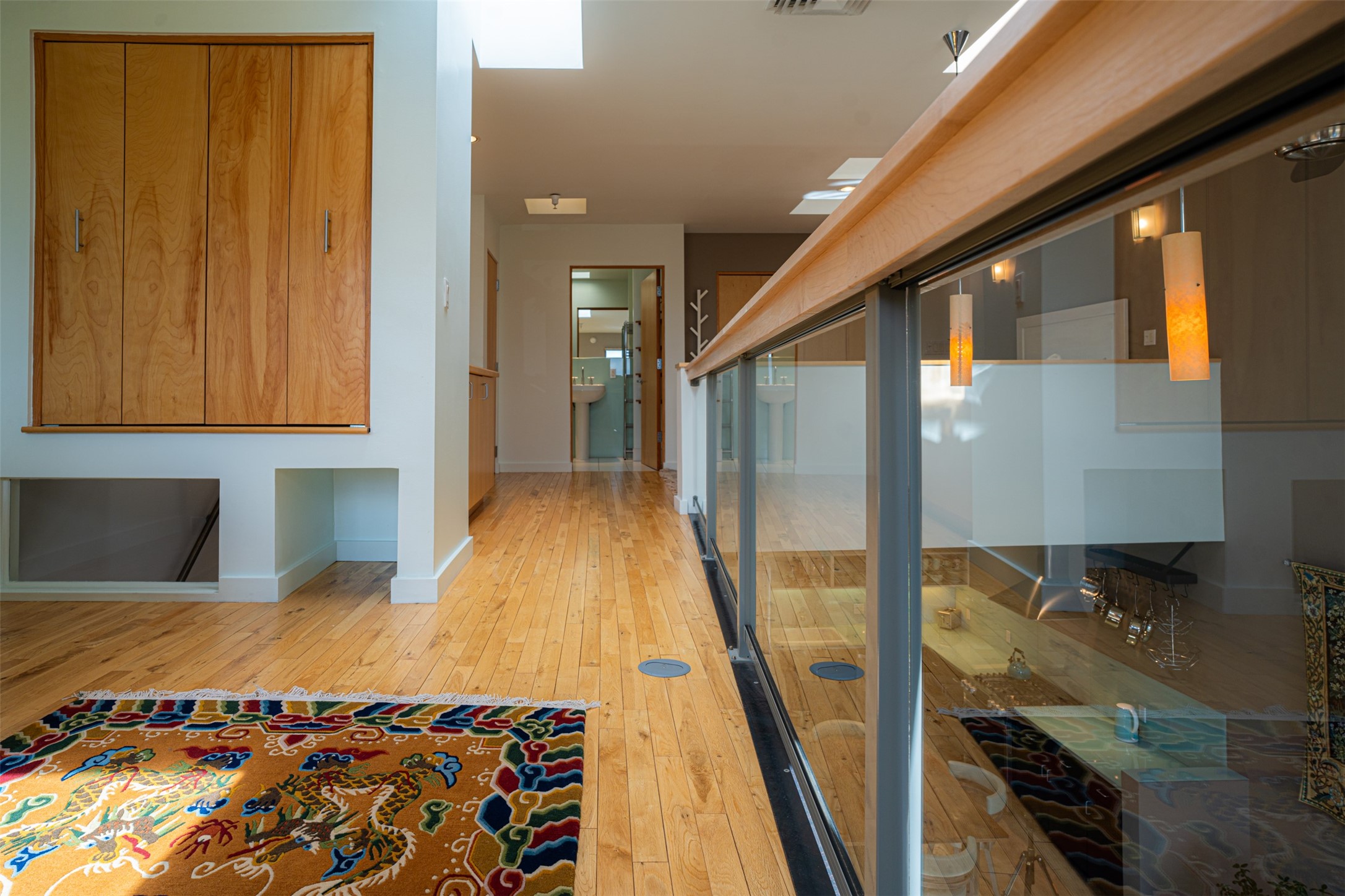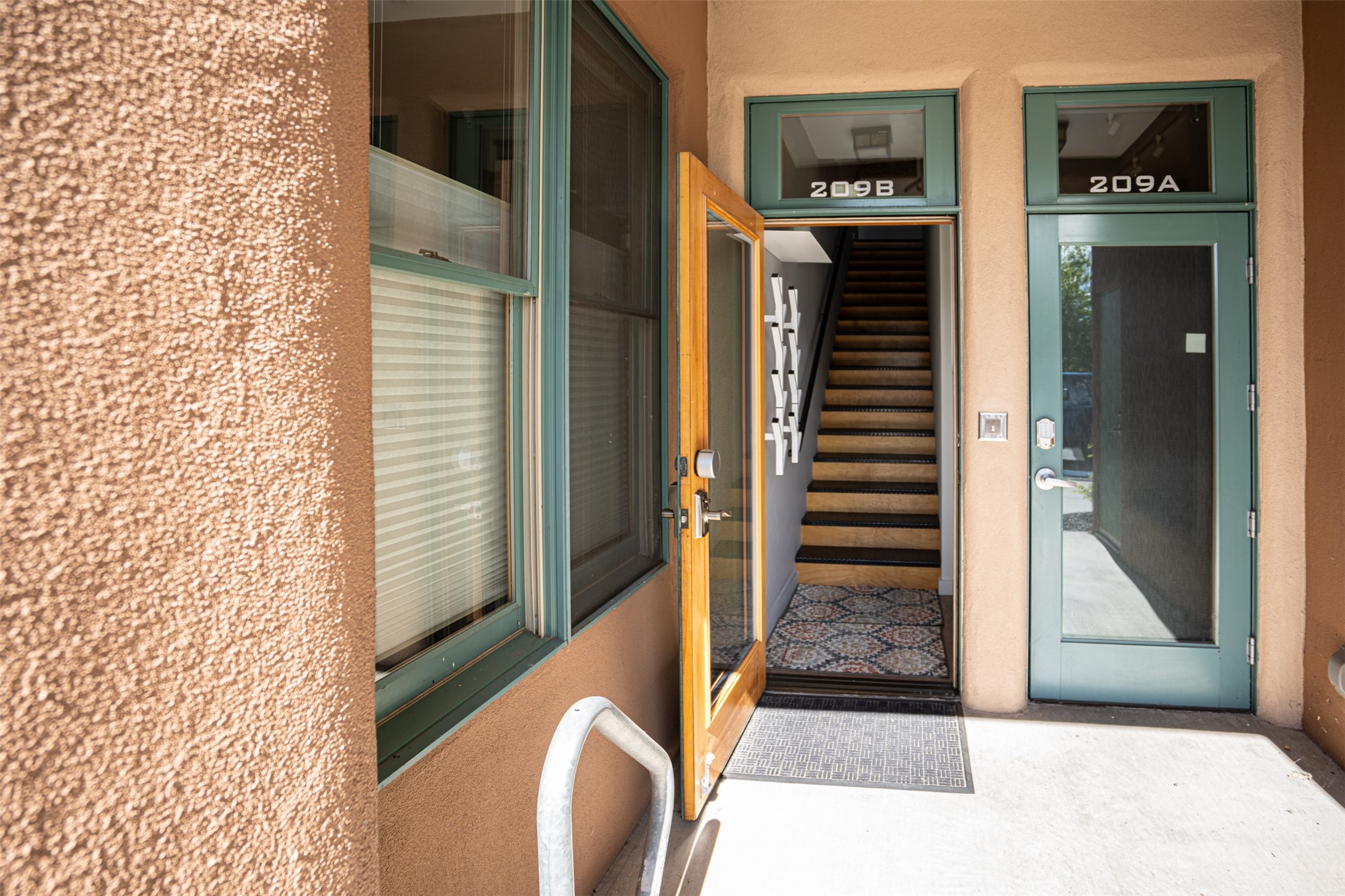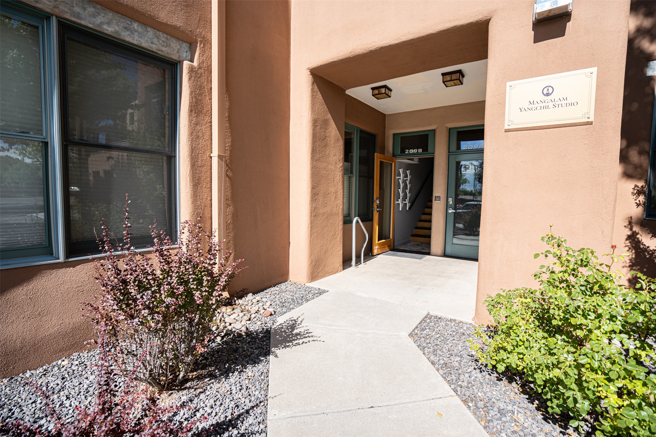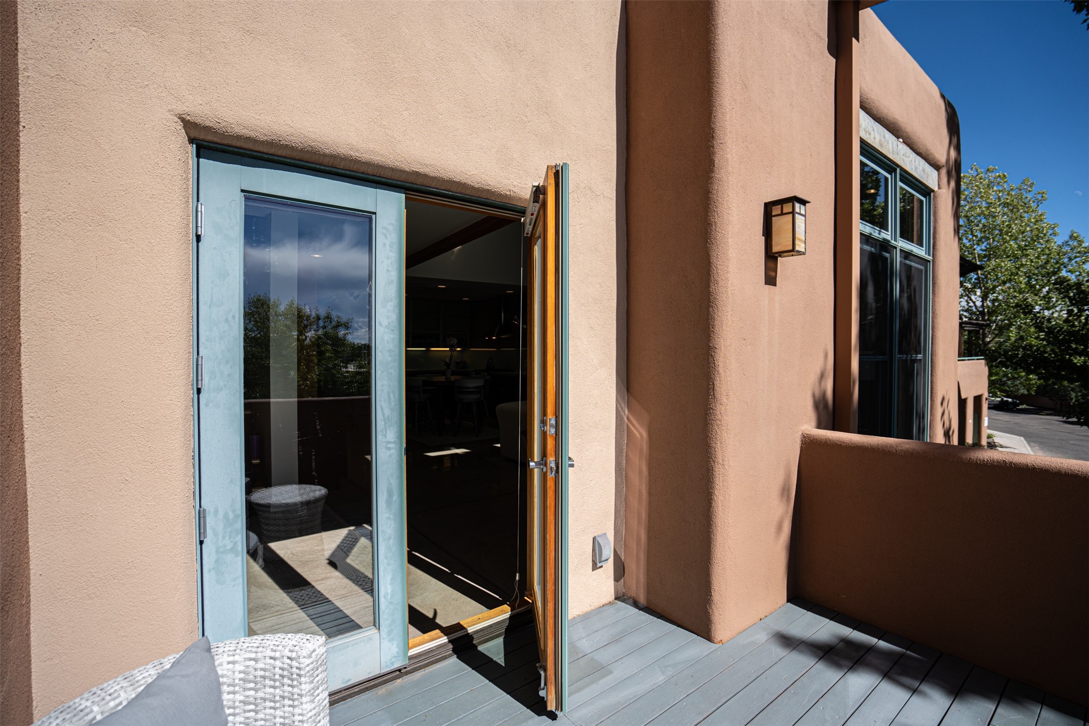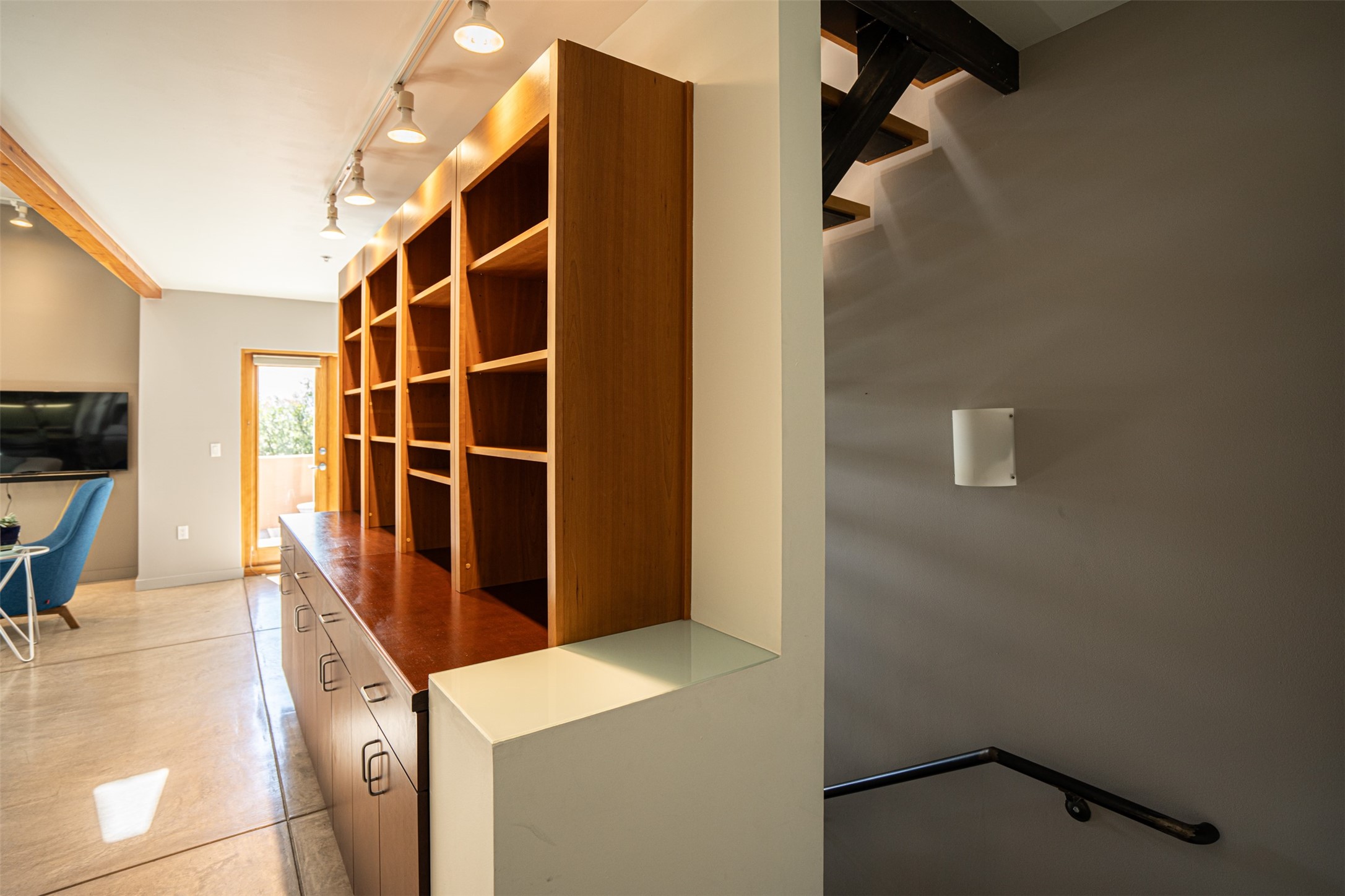 Stylish Marquez Place Loft with Abundant Sunshine! This south-facing loft have abundance of natural light. Its location is incredibly convenient, situated near the Cordova Road Corridor and the charming Guadalupe District. You'll find Trader Joe's, Clafoutis, and the Santa Fe Baking Company all within easy walking distance. The open floor plan offers versatility for both residential and mixed-use purposes. With two loft areas that can serve as bedrooms, offices, or a combination of both. This property is an excellent fit for live/work professionals or anyone seeking an exciting Santa Fe pied--terre or a second home. Sophisticated and comfortable. Nice-sized living area with contemporary kitchen cabinets and countertops. Roomy dining and living areas, with built-in shelving units for storage and display. Master suite is in the loft. Powder room downstairs; full bath upstairs. Wood floors, tons of light, and balcony provides outdoor living space. This unit is very sleek, modern and has that cool factor! Just minutes away from the historic downtown Plaza, museums, and world-class dining options!