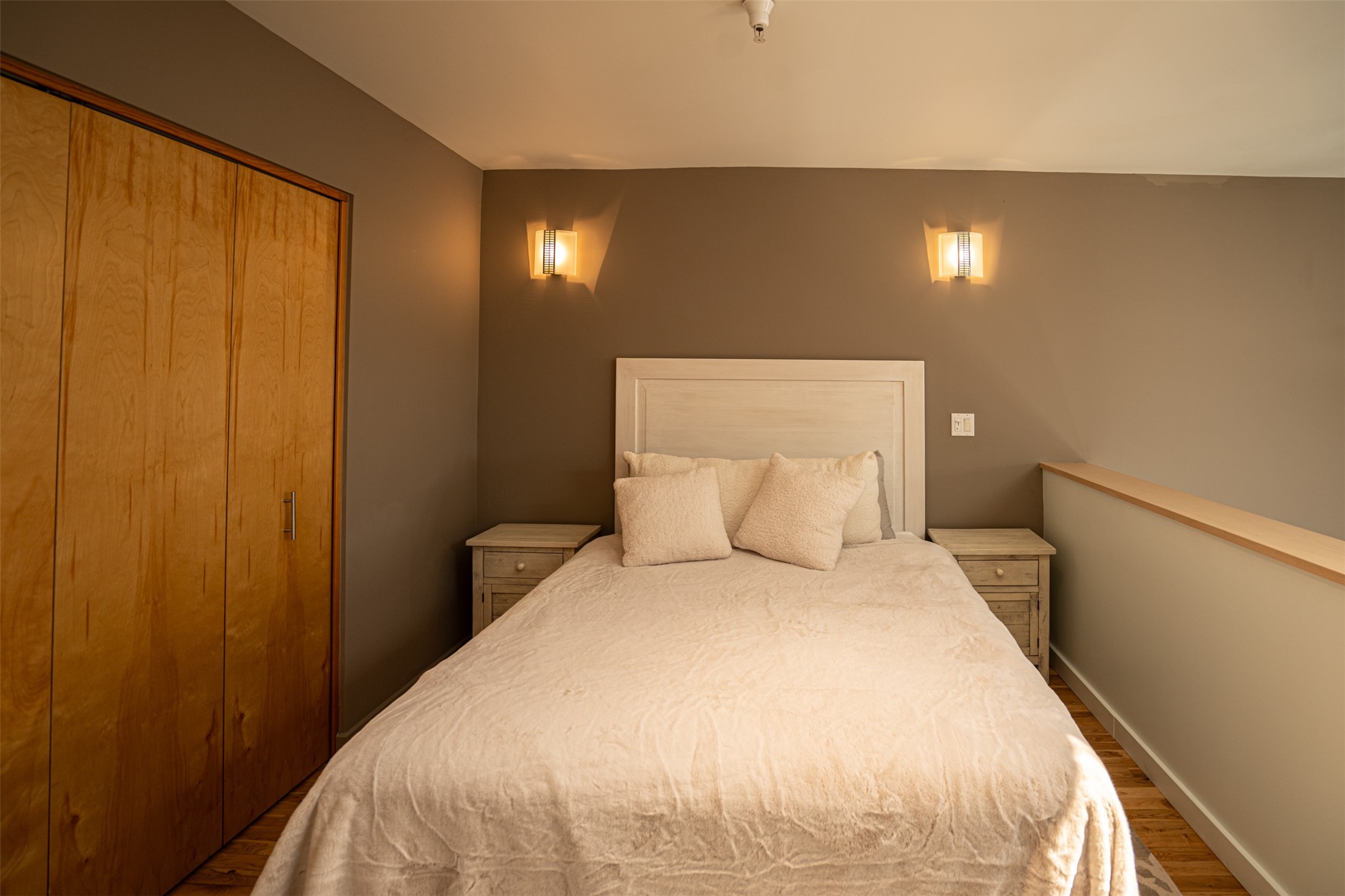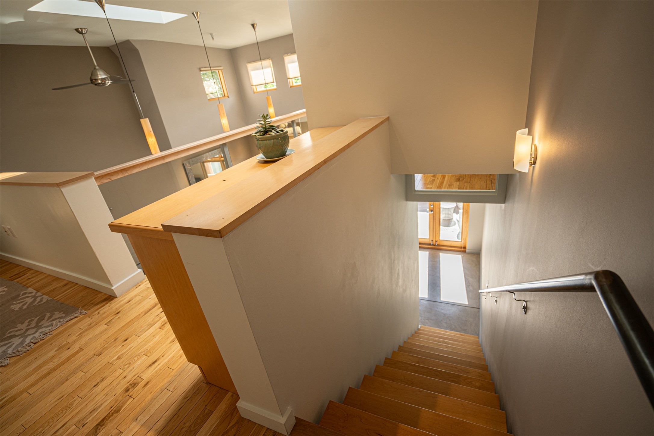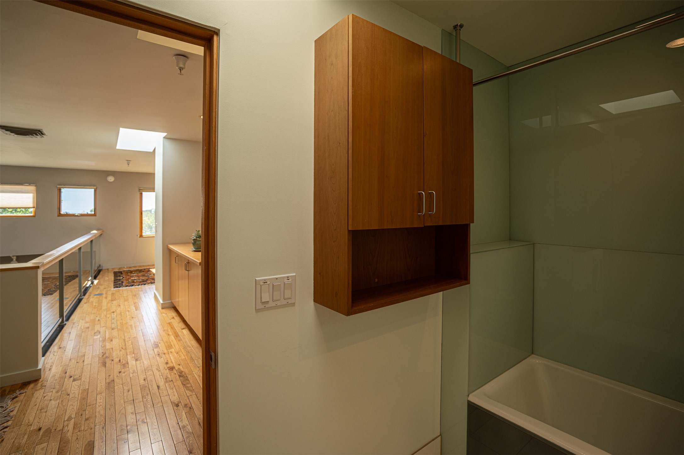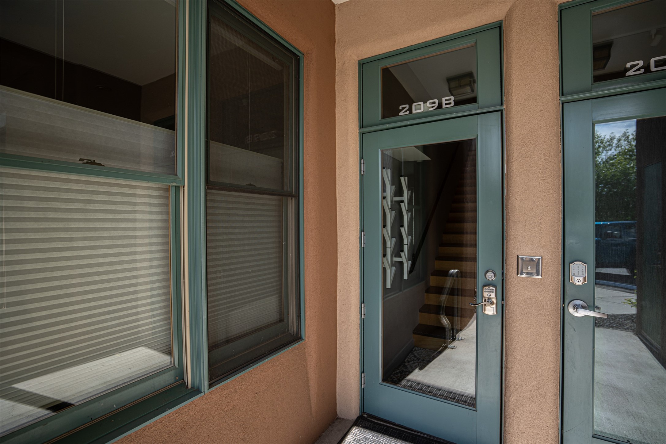 Stylish Marquez Place Loft with Abundant Sunshine! This south-facing loft have abundance of natural light. Its location is incredibly convenient, situated near the Cordova Road Corridor and the charming Guadalupe District. You'll find Trader Joe's, Clafoutis, and the Santa Fe Baking Company all within easy walking distance. The open floor plan offers versatility for both residential and mixed-use purposes. With two loft areas that can serve as bedrooms, offices, or a combination of both. This property is an excellent fit for live/work professionals or anyone seeking an exciting Santa Fe pied--terre or a second home. Sophisticated and comfortable. Nice-sized living area with contemporary kitchen cabinets and countertops. Roomy dining and living areas, with built-in shelving units for storage and display. Master suite is in the loft. Powder room downstairs; full bath upstairs. Wood floors, tons of light, and balcony provides outdoor living space. This unit is very sleek, modern and has that cool factor! Just minutes away from the historic downtown Plaza, museums, and world-class dining options!