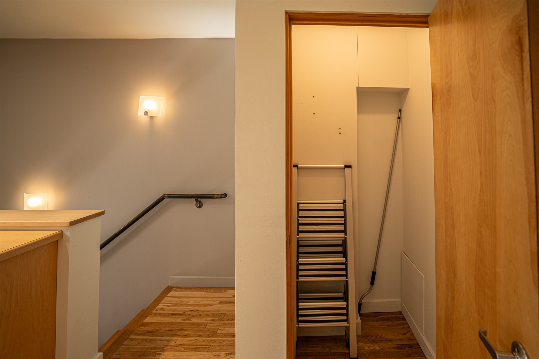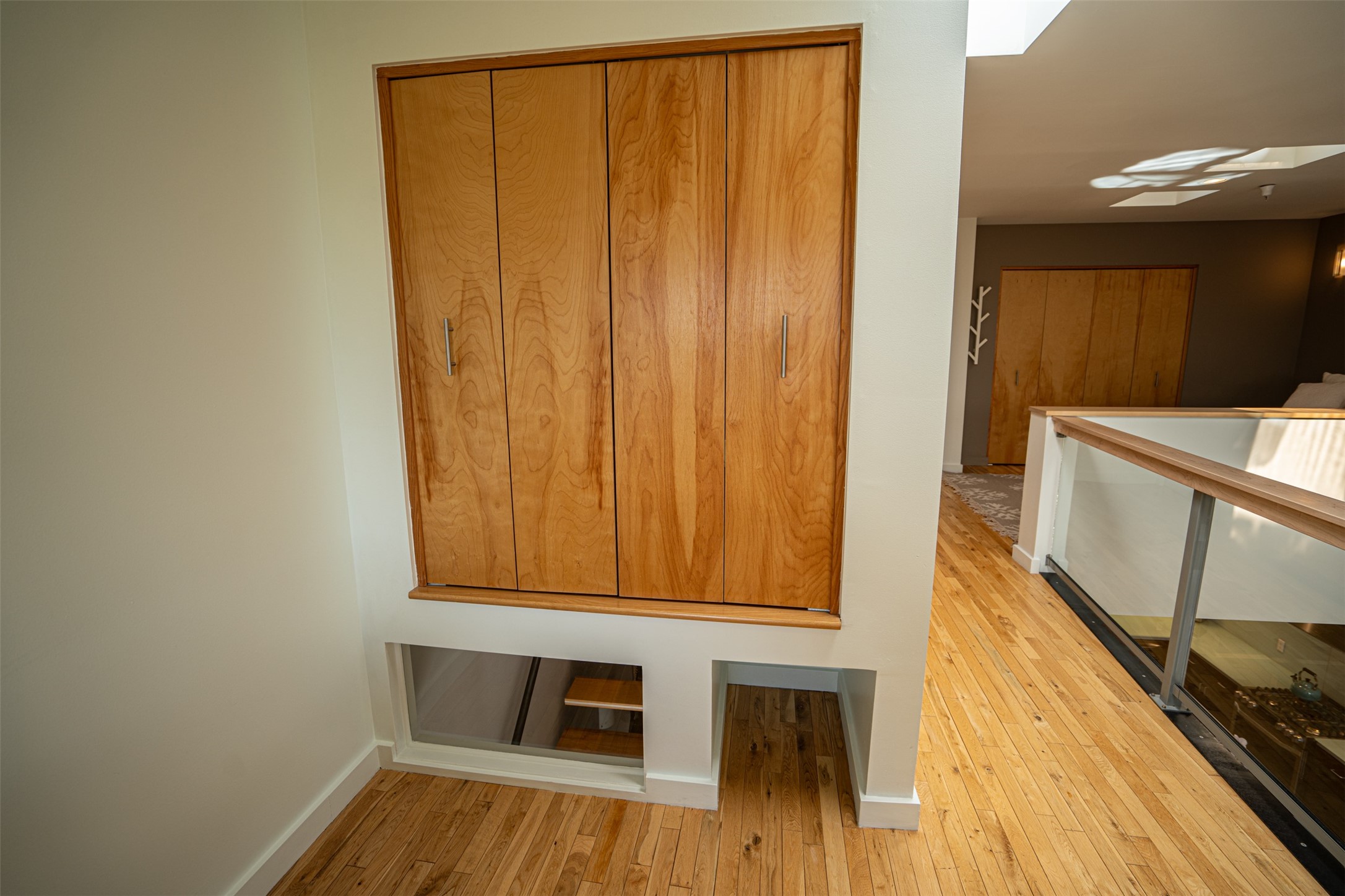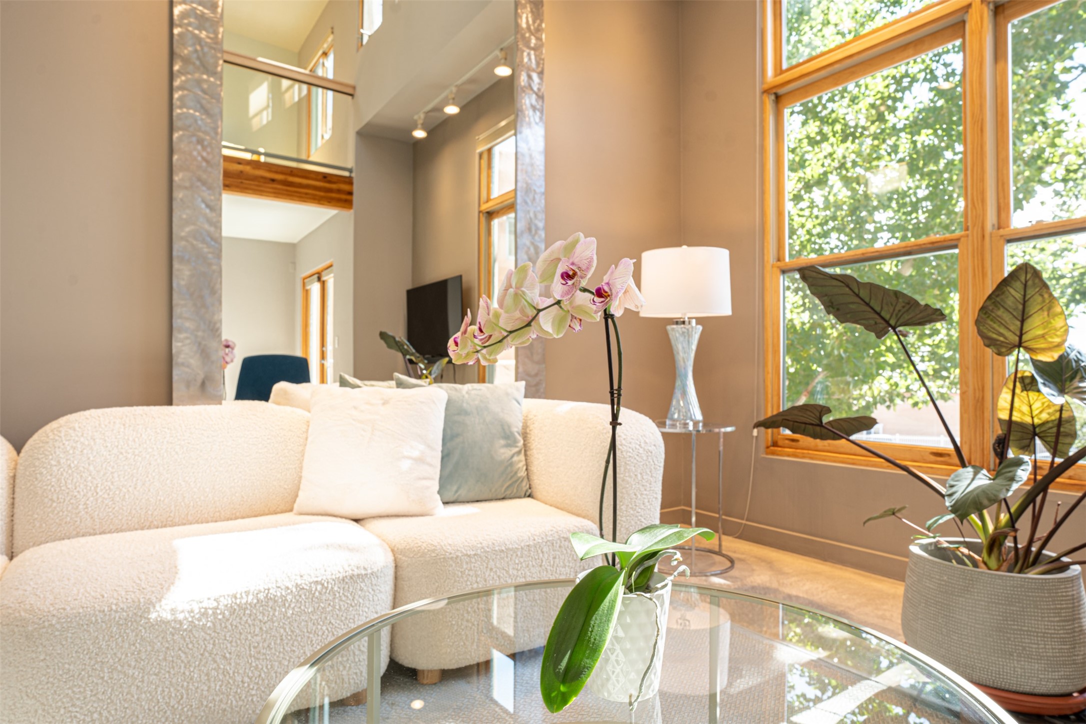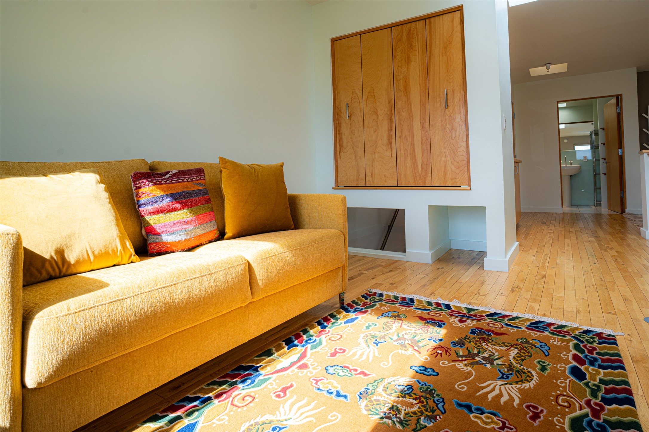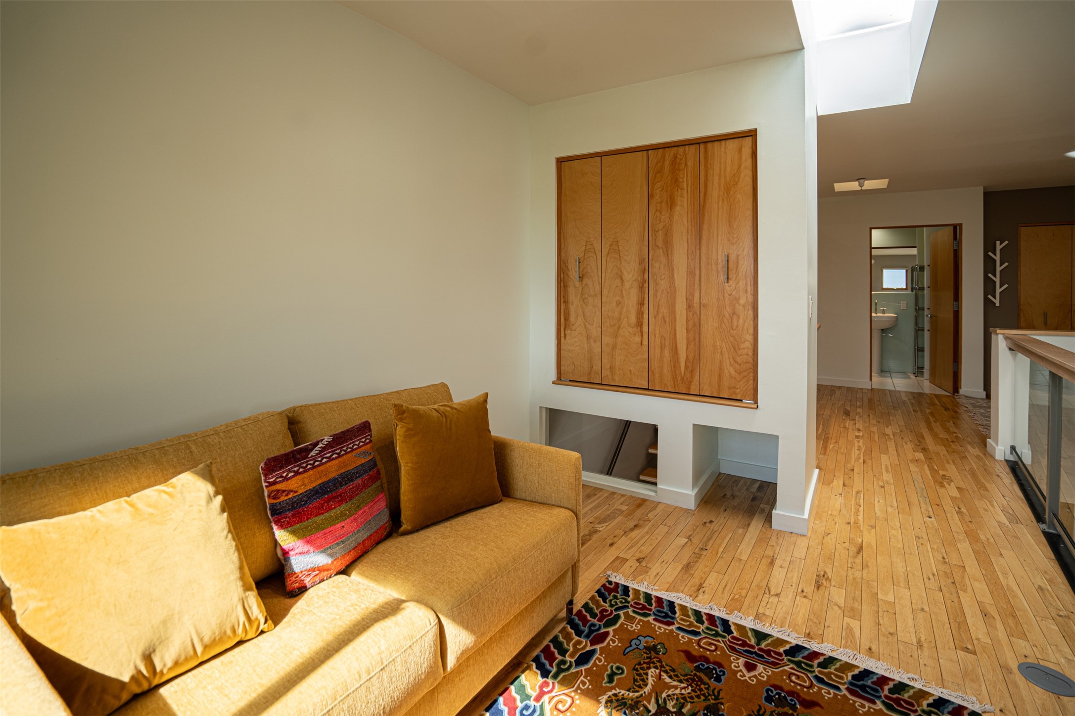 Stylish Marquez Place Loft with Abundant Sunshine! This south-facing loft have abundance of natural light. Its location is incredibly convenient, situated near the Cordova Road Corridor and the charming Guadalupe District. You'll find Trader Joe's, Clafoutis, and the Santa Fe Baking Company all within easy walking distance. The open floor plan offers versatility for both residential and mixed-use purposes. With two loft areas that can serve as bedrooms, offices, or a combination of both. This property is an excellent fit for live/work professionals or anyone seeking an exciting Santa Fe pied--terre or a second home. Sophisticated and comfortable. Nice-sized living area with contemporary kitchen cabinets and countertops. Roomy dining and living areas, with built-in shelving units for storage and display. Master suite is in the loft. Powder room downstairs; full bath upstairs. Wood floors, tons of light, and balcony provides outdoor living space. This unit is very sleek, modern and has that cool factor! Just minutes away from the historic downtown Plaza, museums, and world-class dining options!