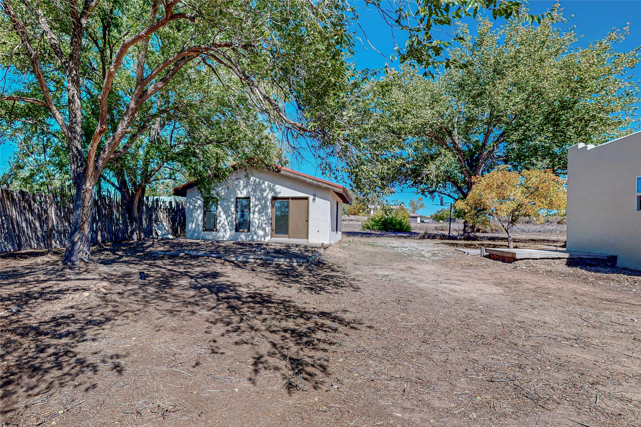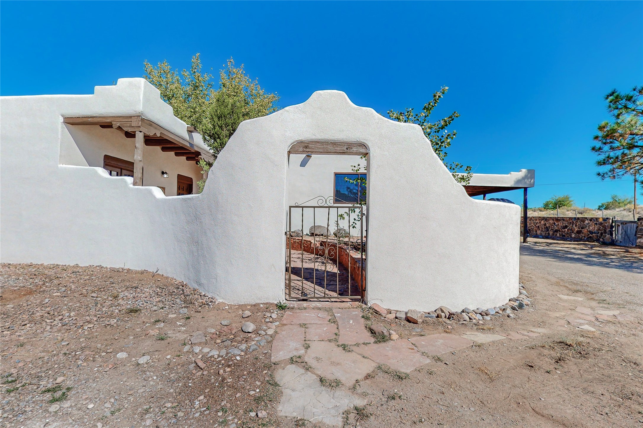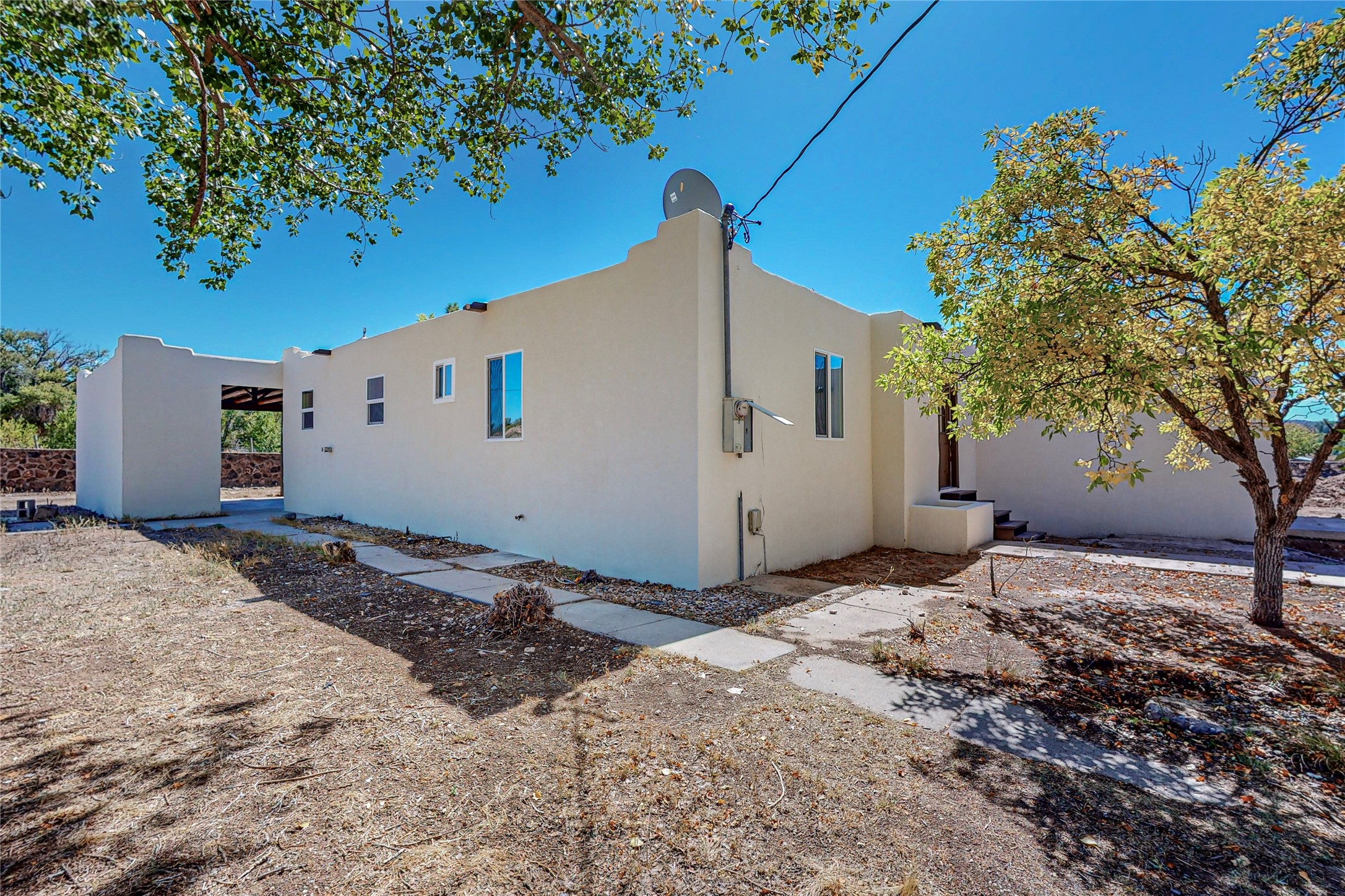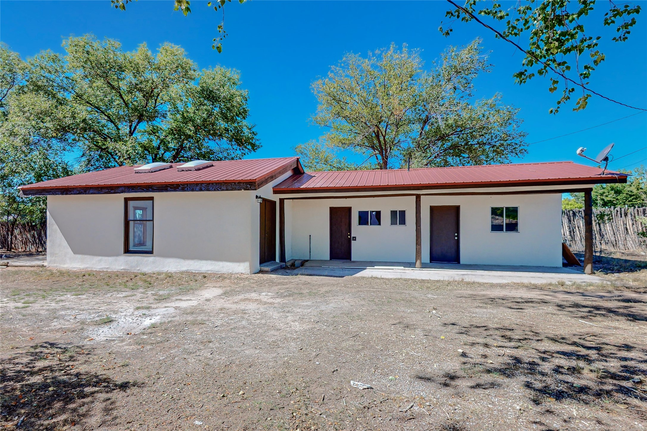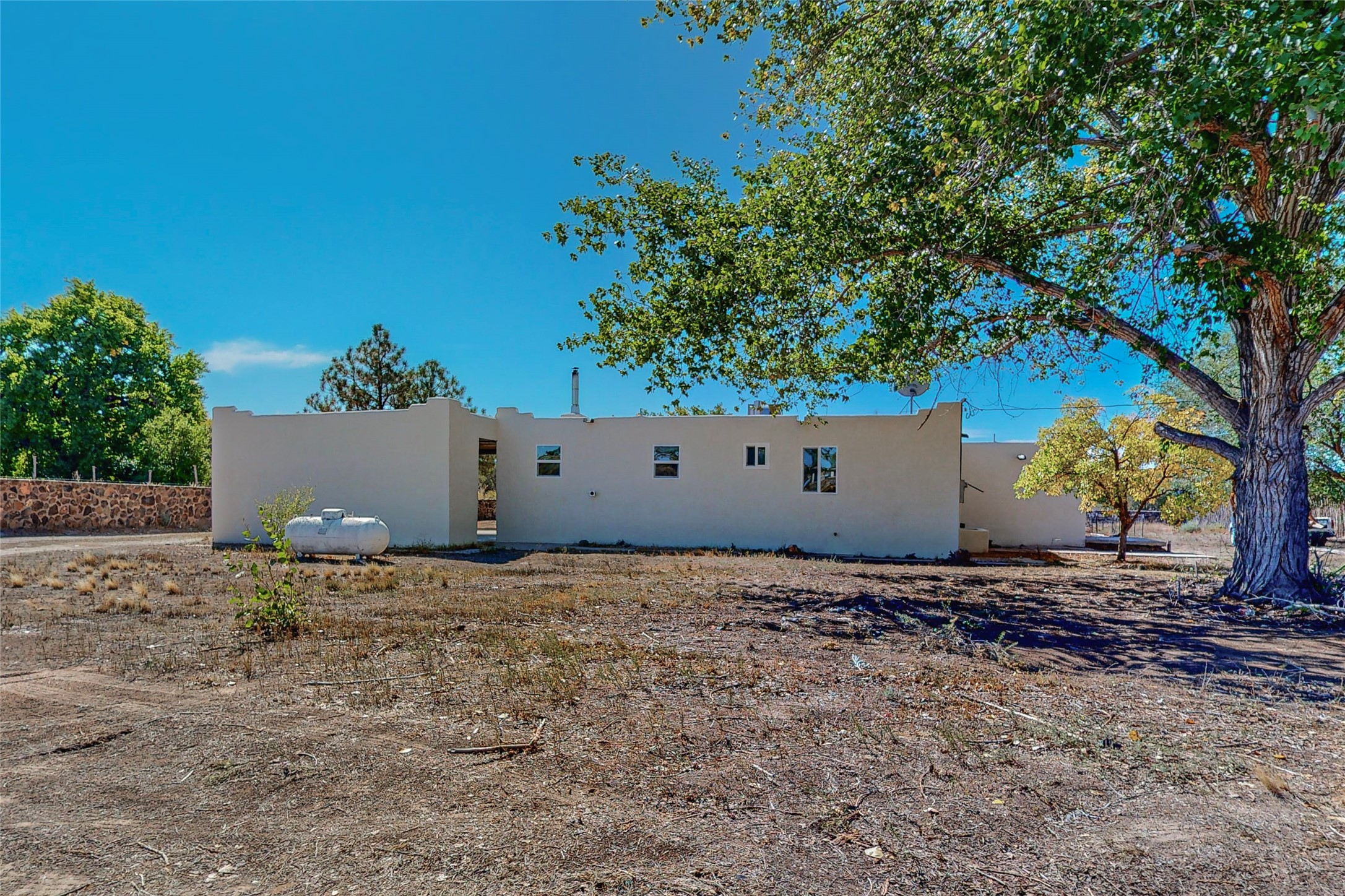 At the end of quiet country lane near stunning arroyos and vistas of mesas, mountains and mature trees sits this 3 bedroom 2 bathroom main house with detached studio and workshop on almost 2 acres. There is room for horses, gardening and all hobbies. Privacy, views and recreation trails abound. The home has a new roof, new stucco, new windows, new flooring, new paint, new appliances, new septic. There is a private well. El Rancho is 17 miles from Santa Fe and 18 miles from Los Alamos, making this an ideal location for commuters. El Rancho is an area steeped in history with rich culture.