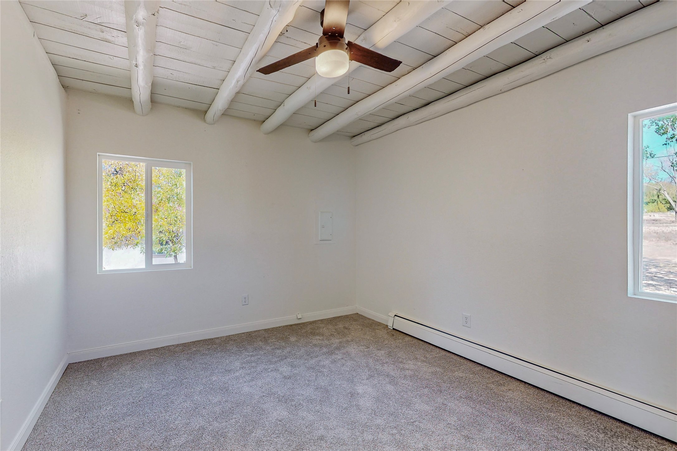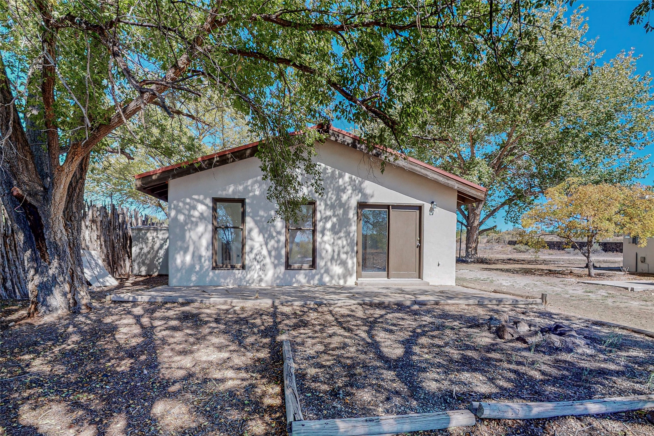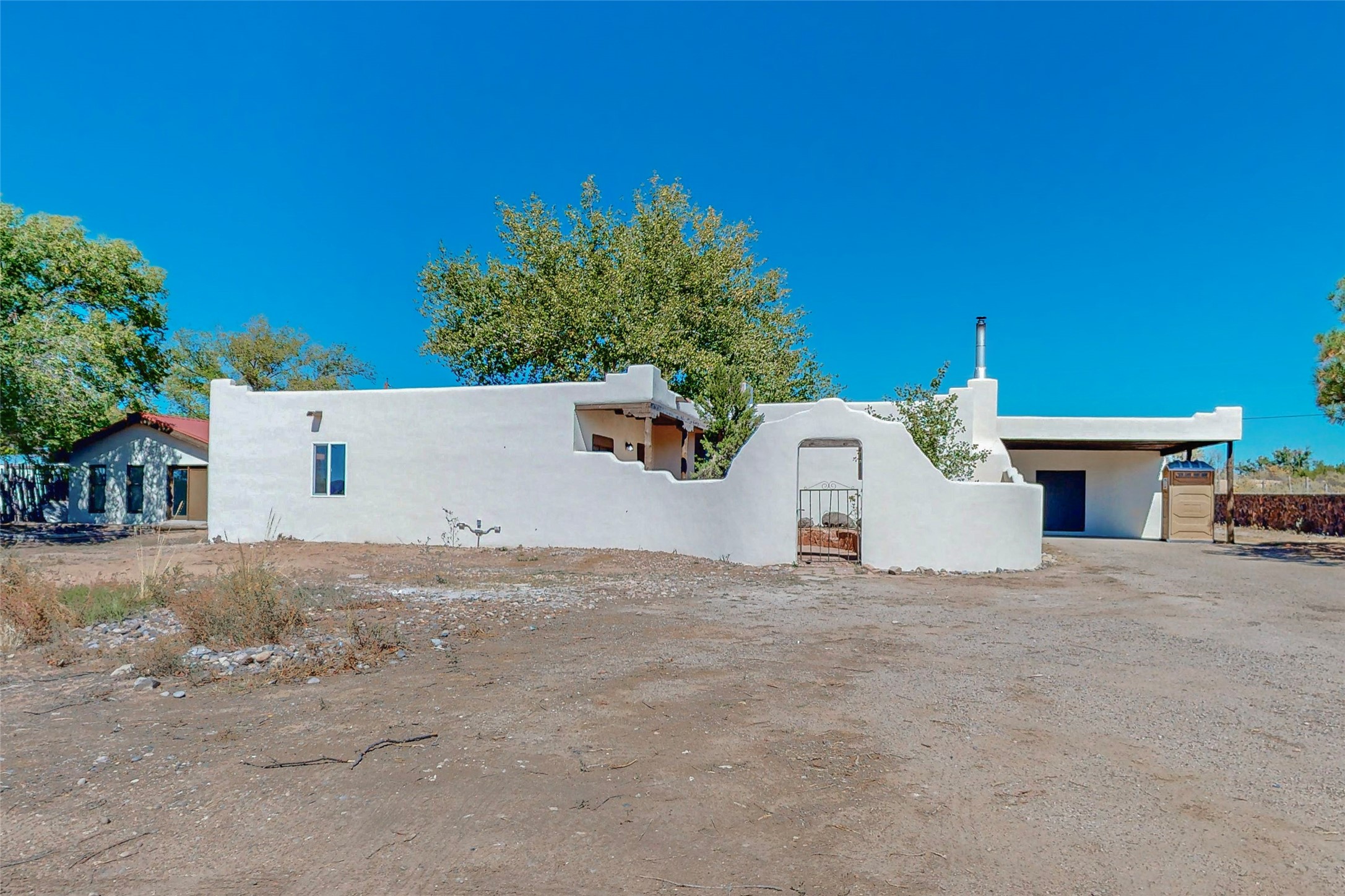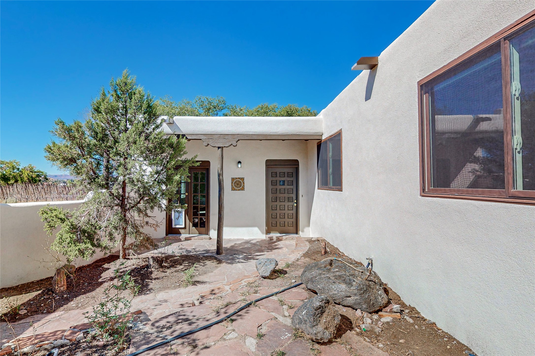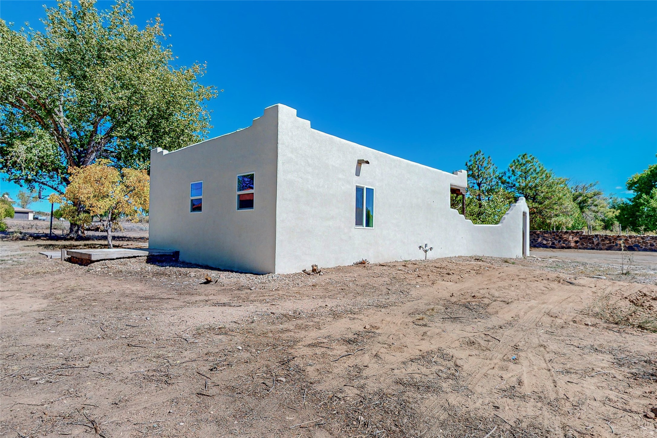 At the end of quiet country lane near stunning arroyos and vistas of mesas, mountains and mature trees sits this 3 bedroom 2 bathroom main house with detached studio and workshop on almost 2 acres. There is room for horses, gardening and all hobbies. Privacy, views and recreation trails abound. The home has a new roof, new stucco, new windows, new flooring, new paint, new appliances, new septic. There is a private well. El Rancho is 17 miles from Santa Fe and 18 miles from Los Alamos, making this an ideal location for commuters. El Rancho is an area steeped in history with rich culture.