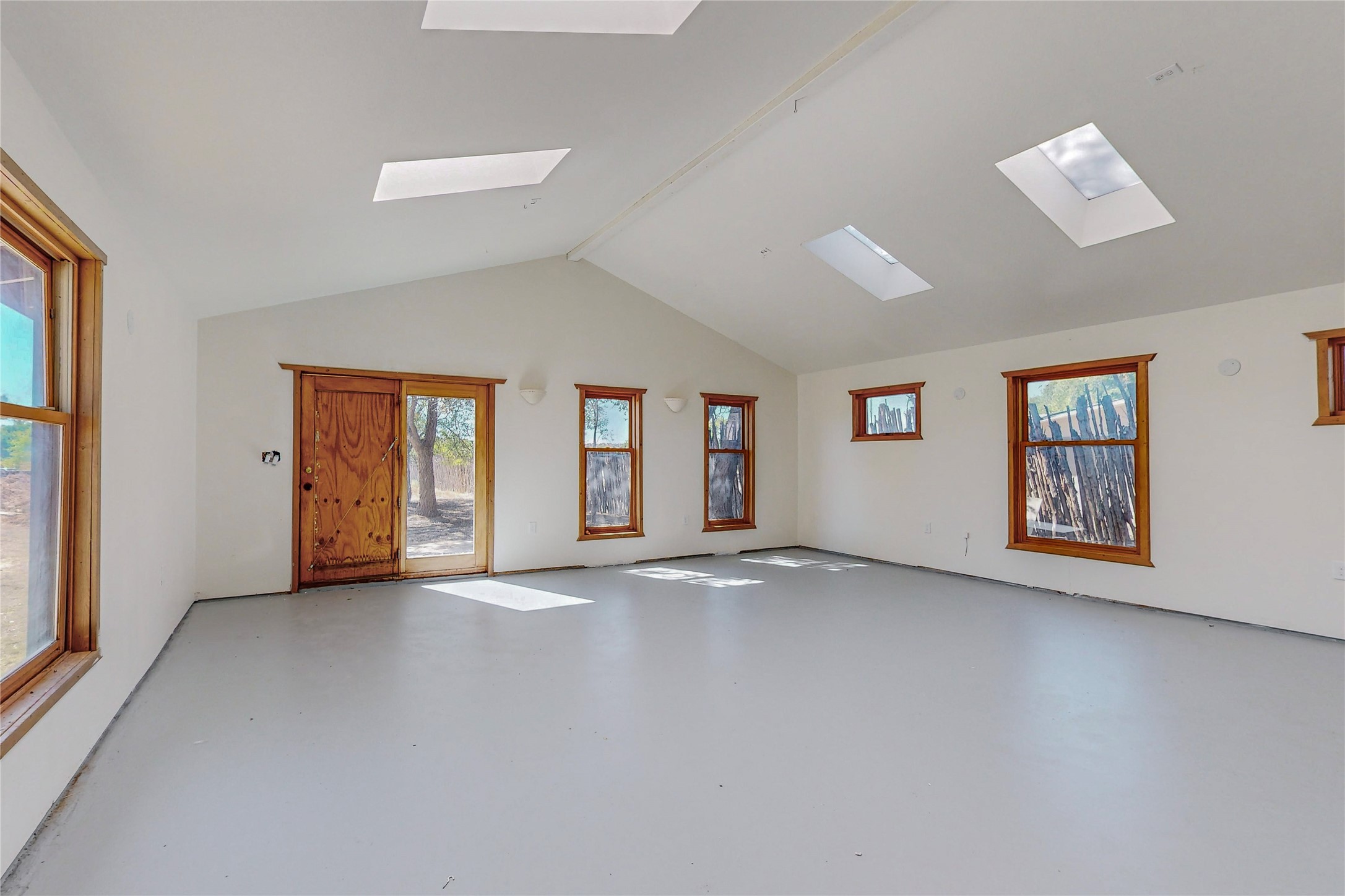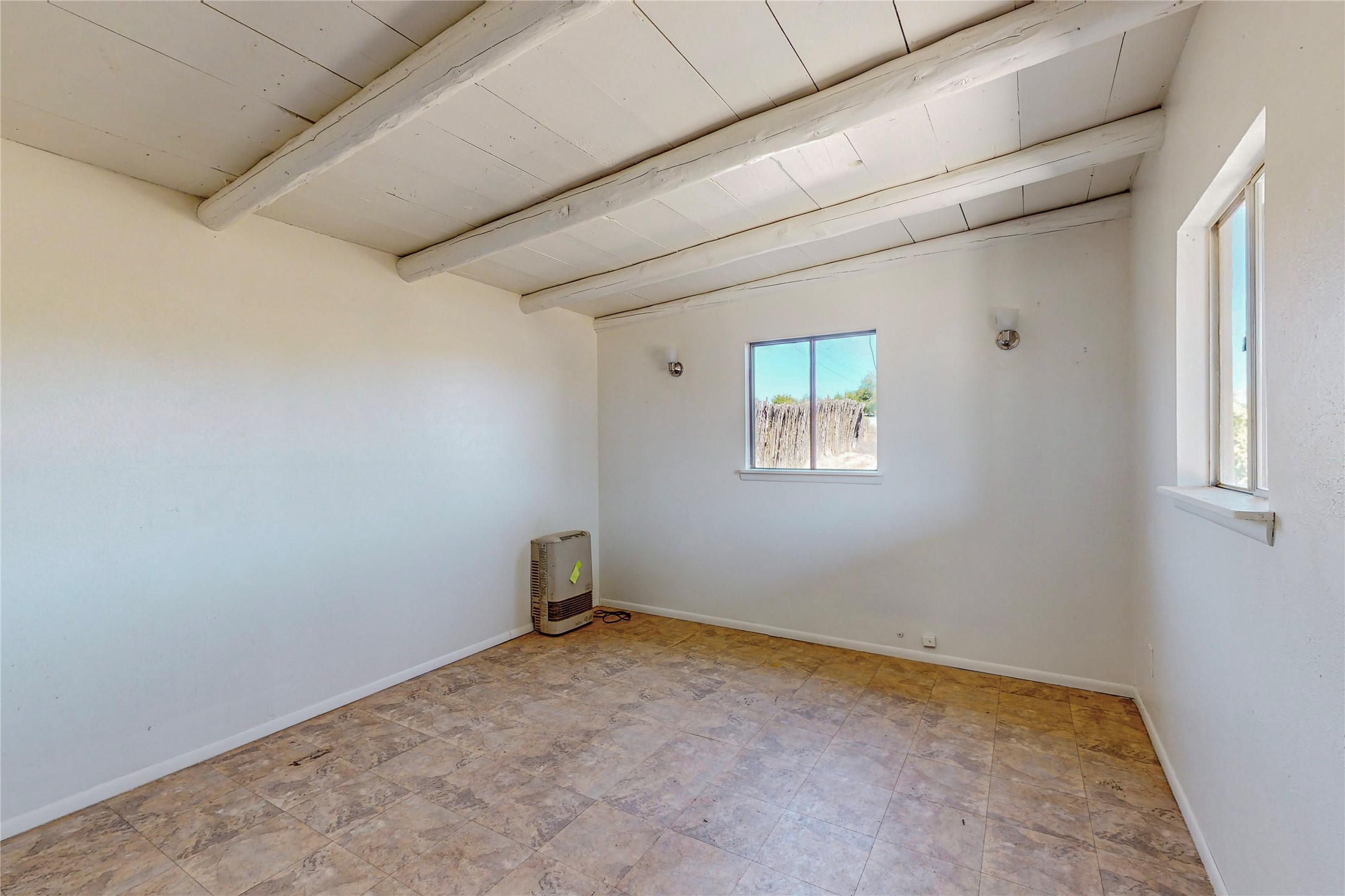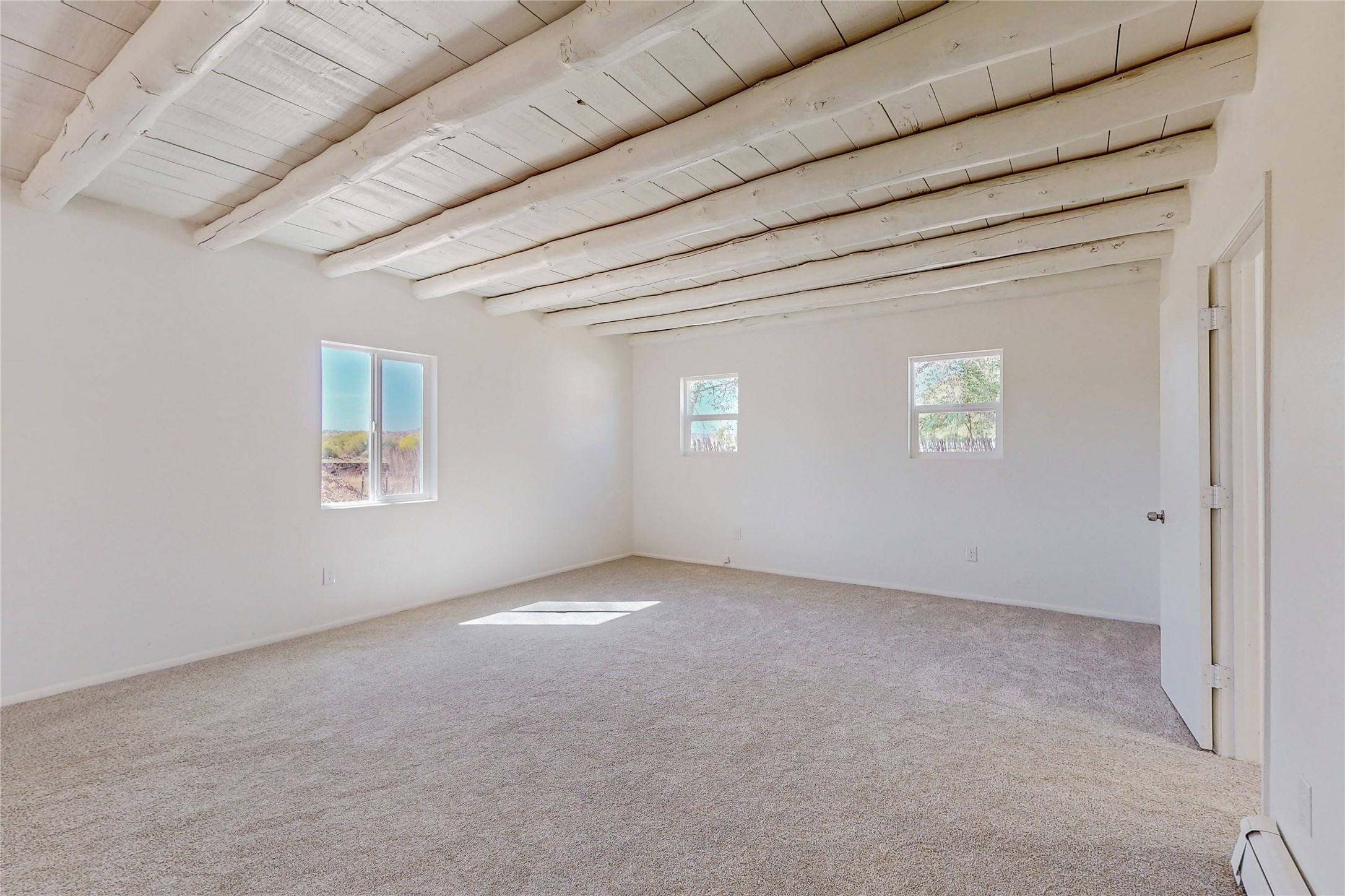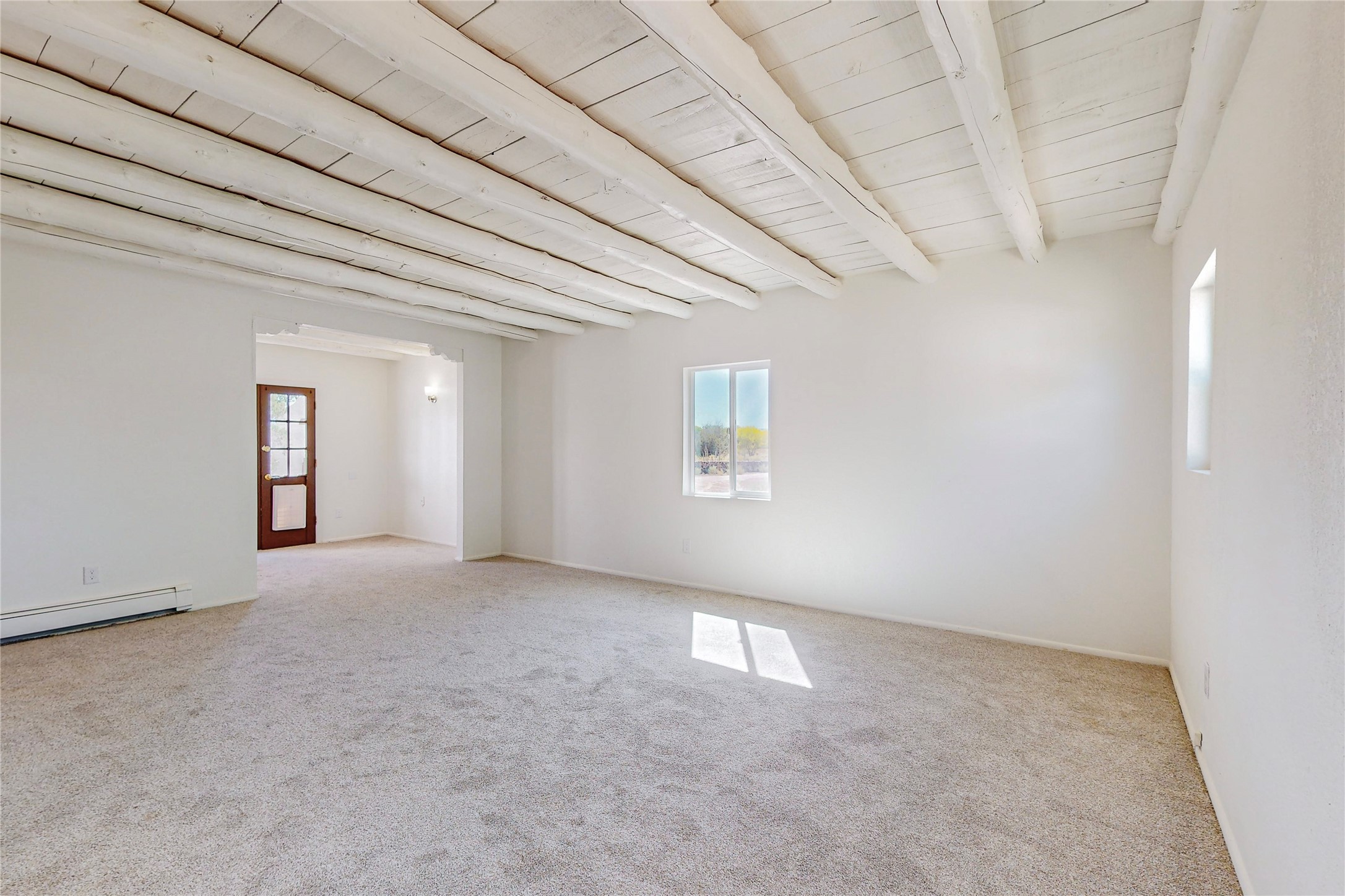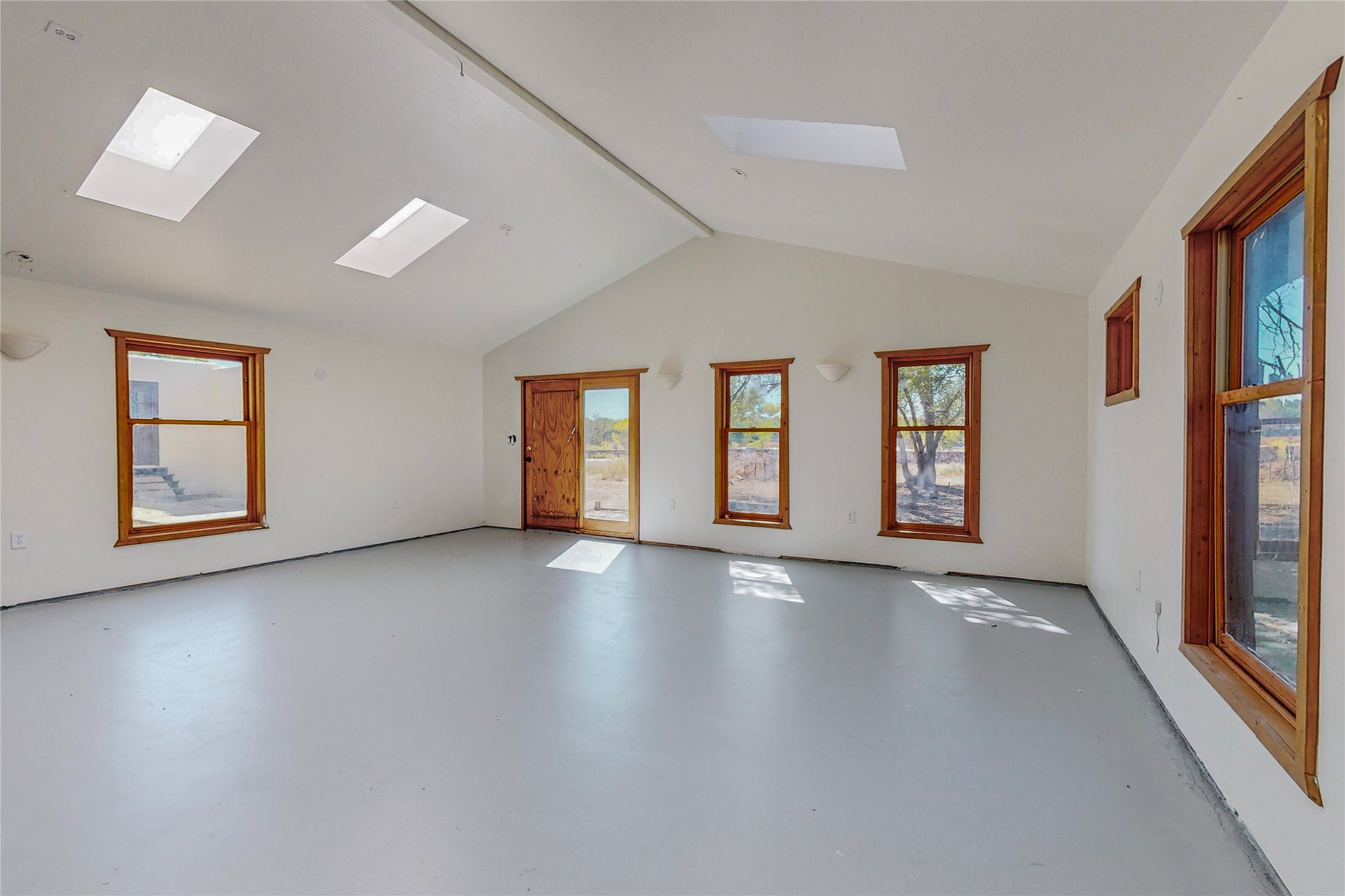At the end of quiet country lane near stunning arroyos and vistas of mesas, mountains and mature trees sits this 3 bedroom 2 bathroom main house with detached studio and workshop on almost 2 acres. There is room for horses, gardening and all hobbies. Privacy, views and recreation trails abound. The home has a new roof, new stucco, new windows, new flooring, new paint, new appliances, new septic. There is a private well. El Rancho is 17 miles from Santa Fe and 18 miles from Los Alamos, making this an ideal location for commuters. El Rancho is an area steeped in history with rich culture.
