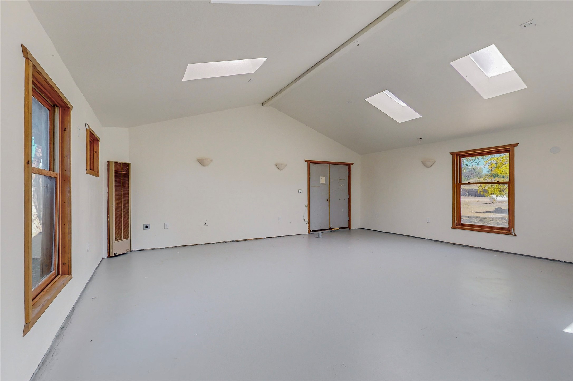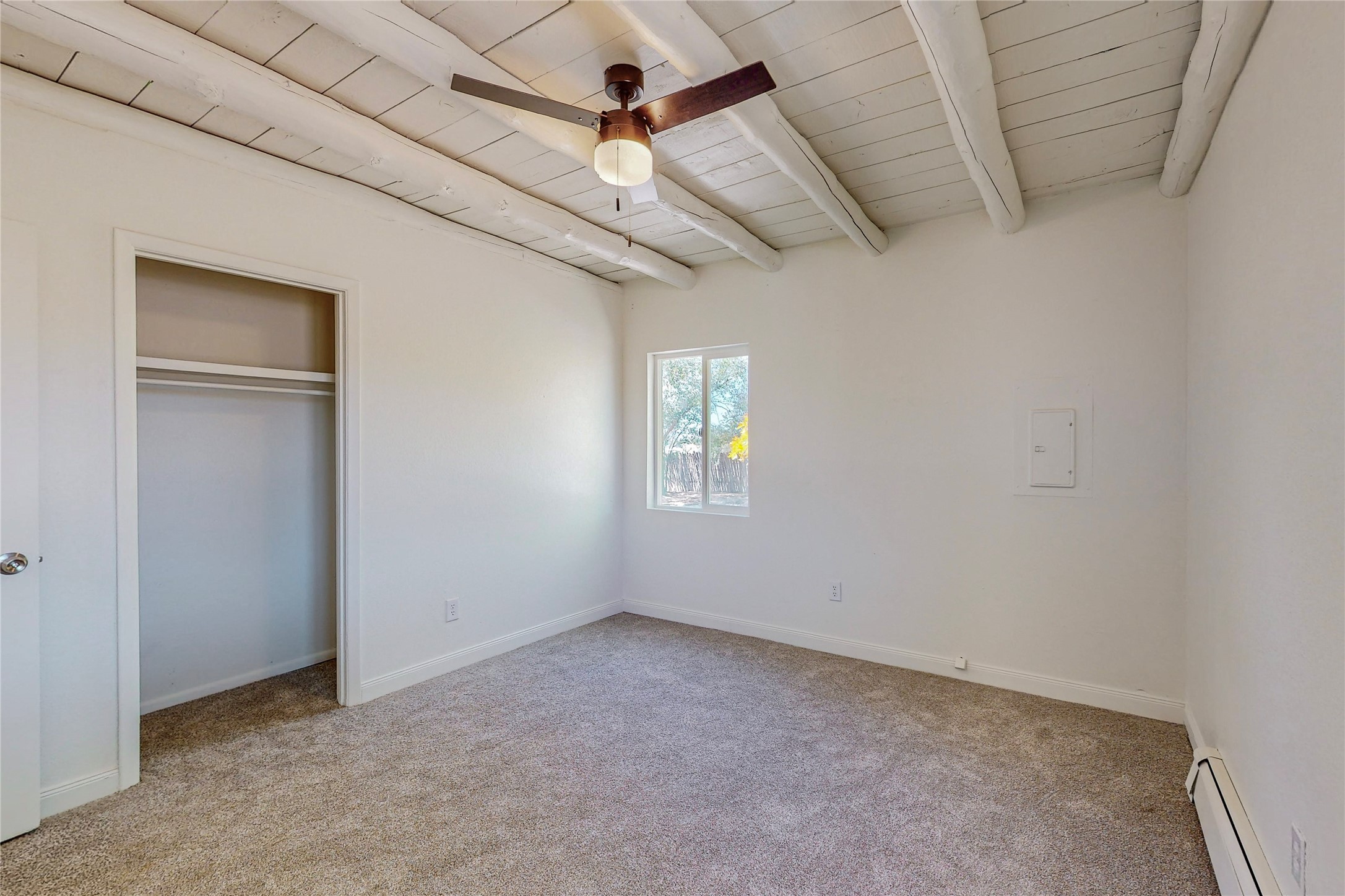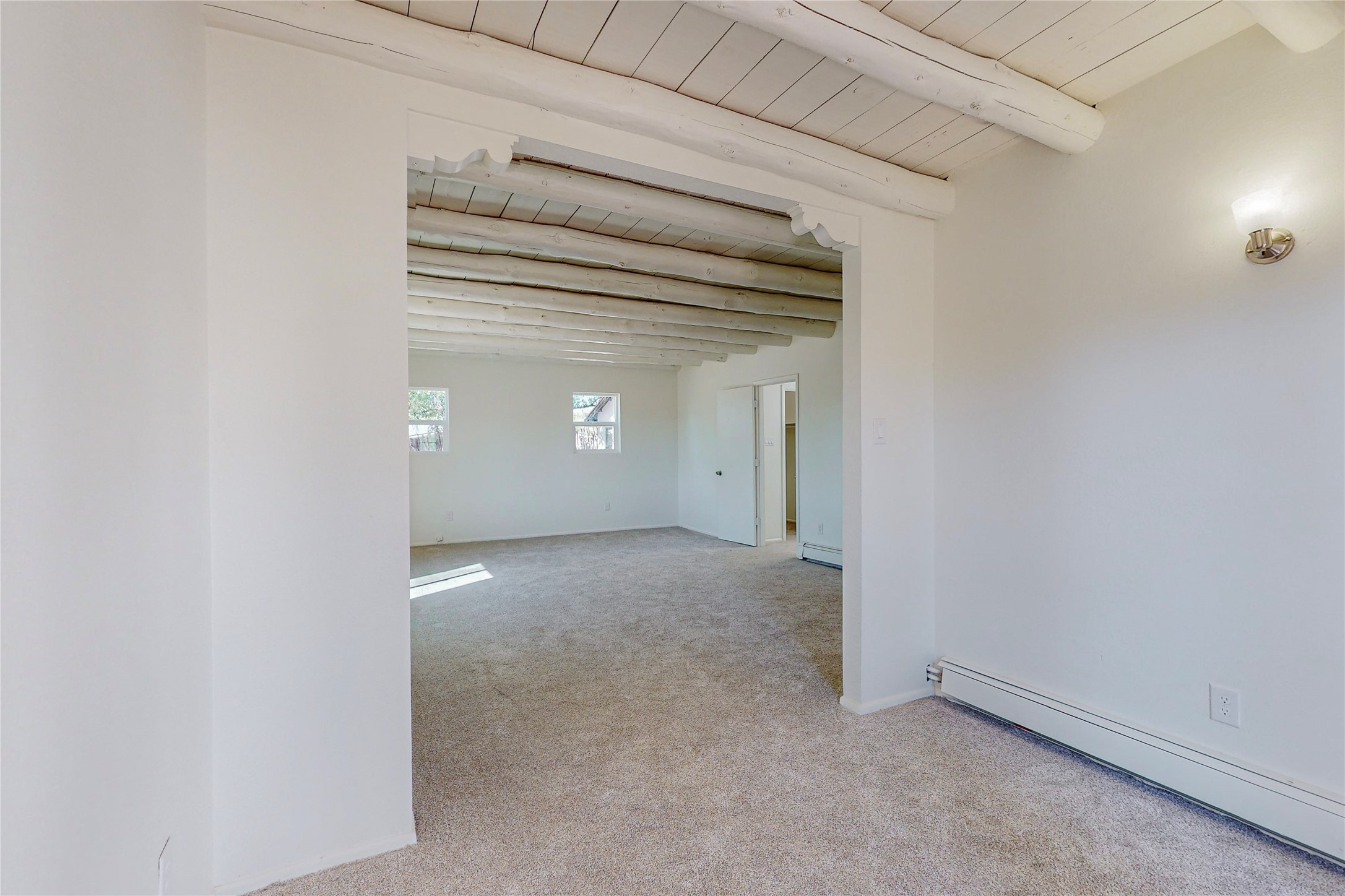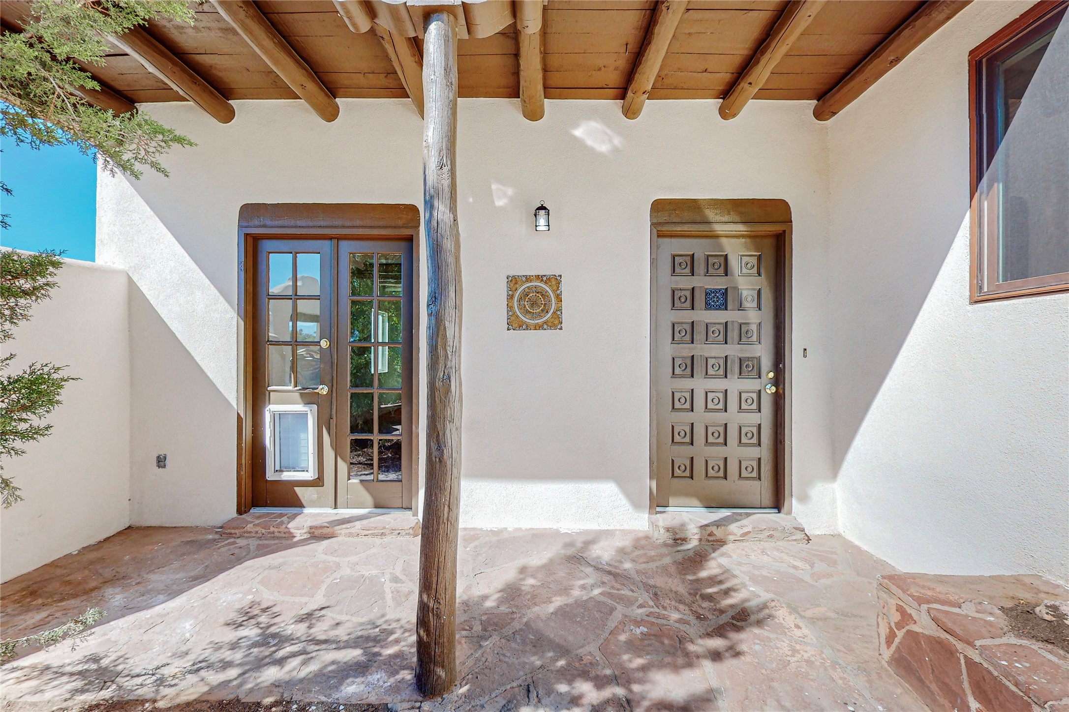 At the end of quiet country lane near stunning arroyos and vistas of mesas, mountains and mature trees sits this 3 bedroom 2 bathroom main house with detached studio and workshop on almost 2 acres. There is room for horses, gardening and all hobbies. Privacy, views and recreation trails abound. The home has a new roof, new stucco, new windows, new flooring, new paint, new appliances, new septic. There is a private well. El Rancho is 17 miles from Santa Fe and 18 miles from Los Alamos, making this an ideal location for commuters. El Rancho is an area steeped in history with rich culture.