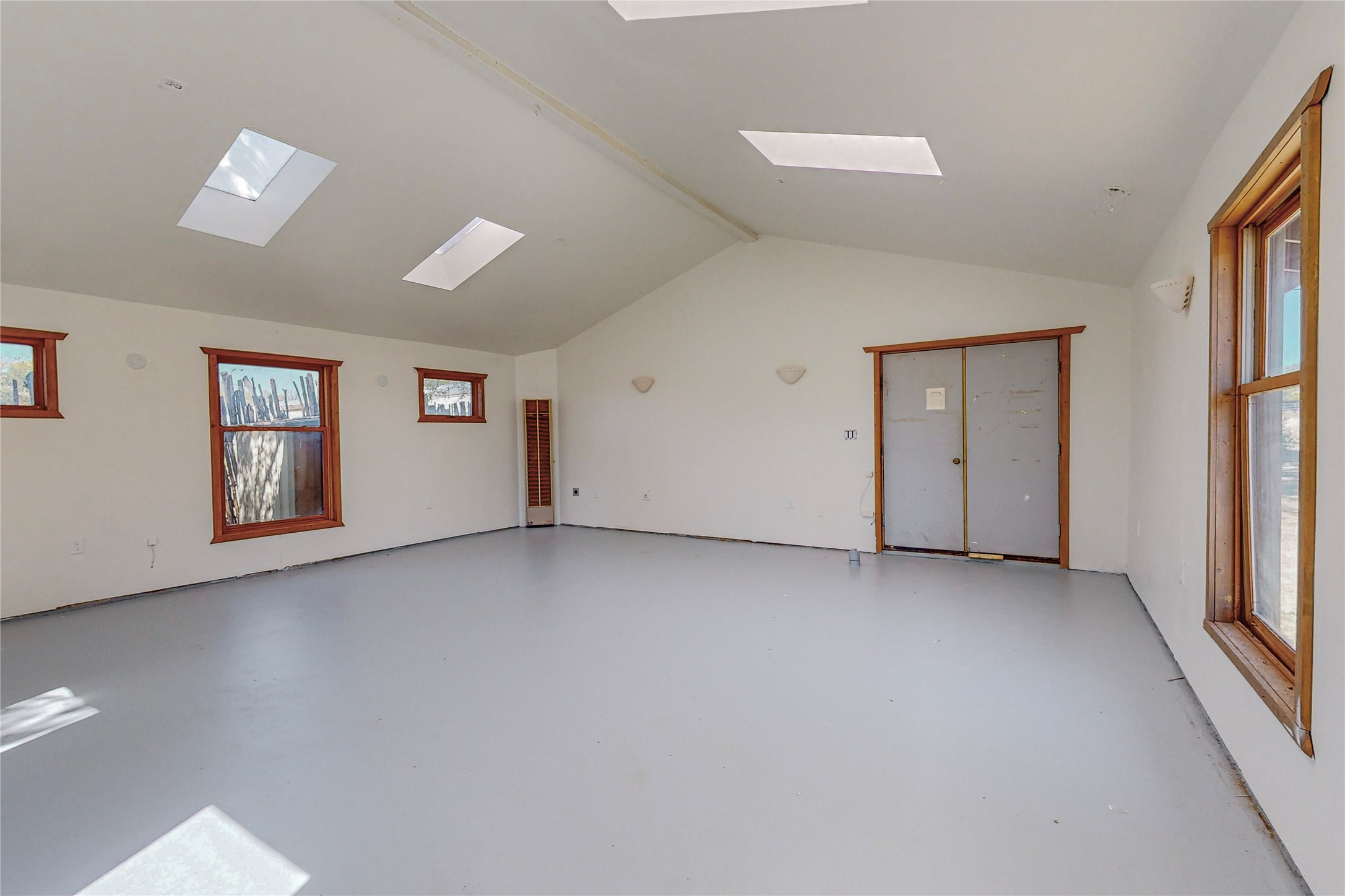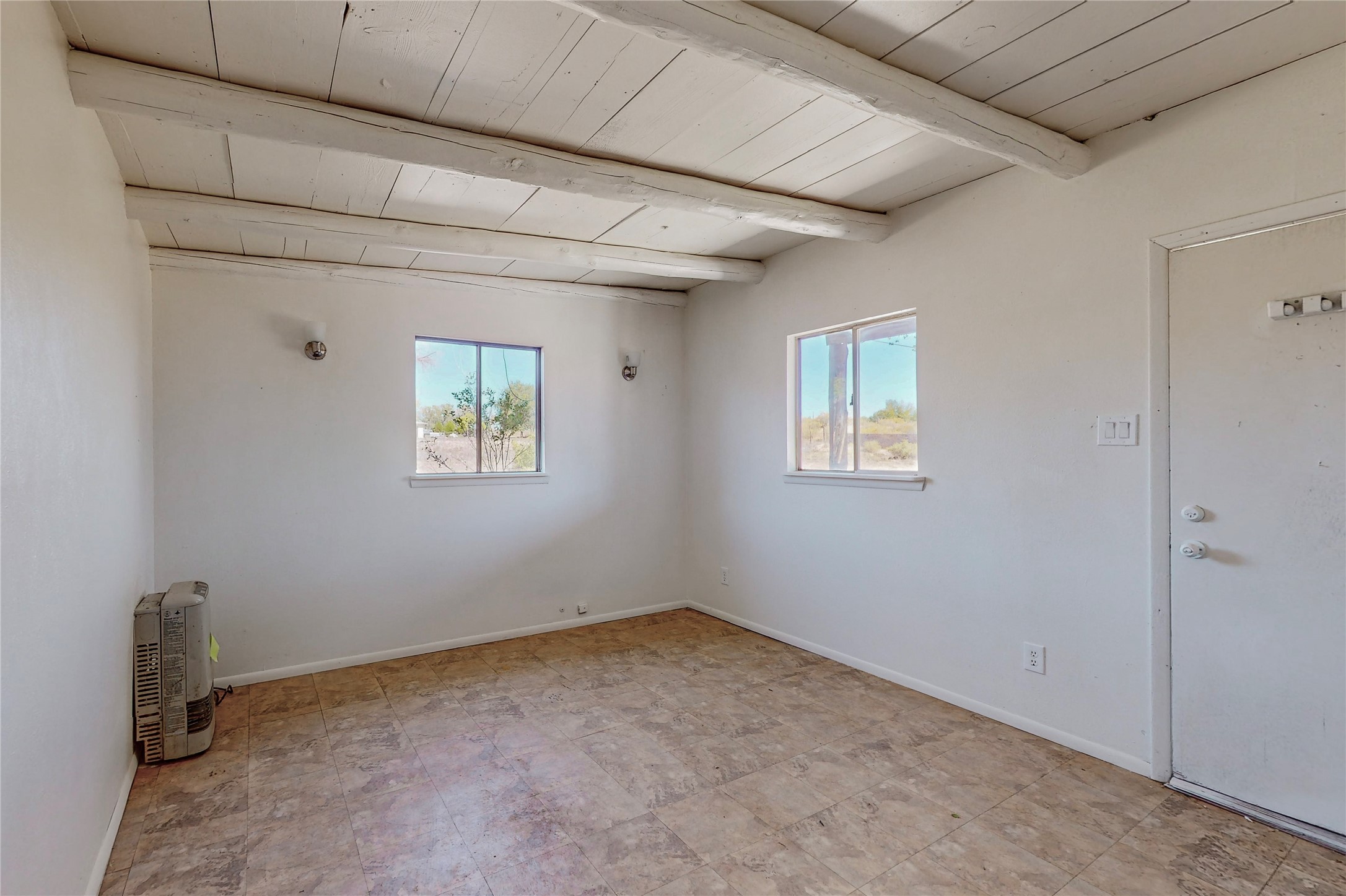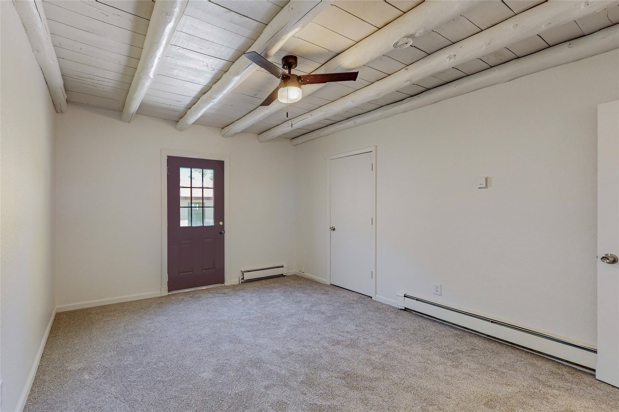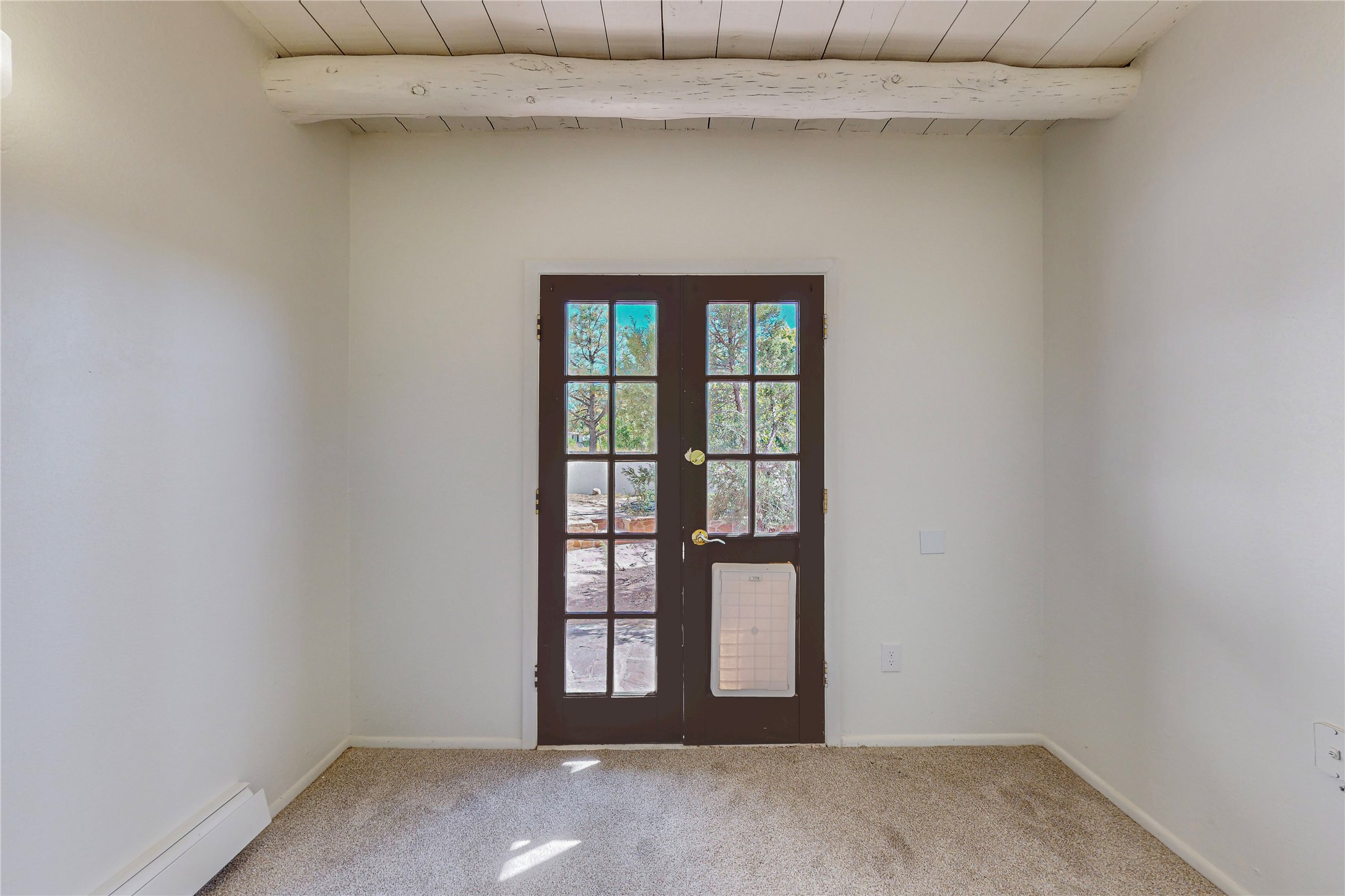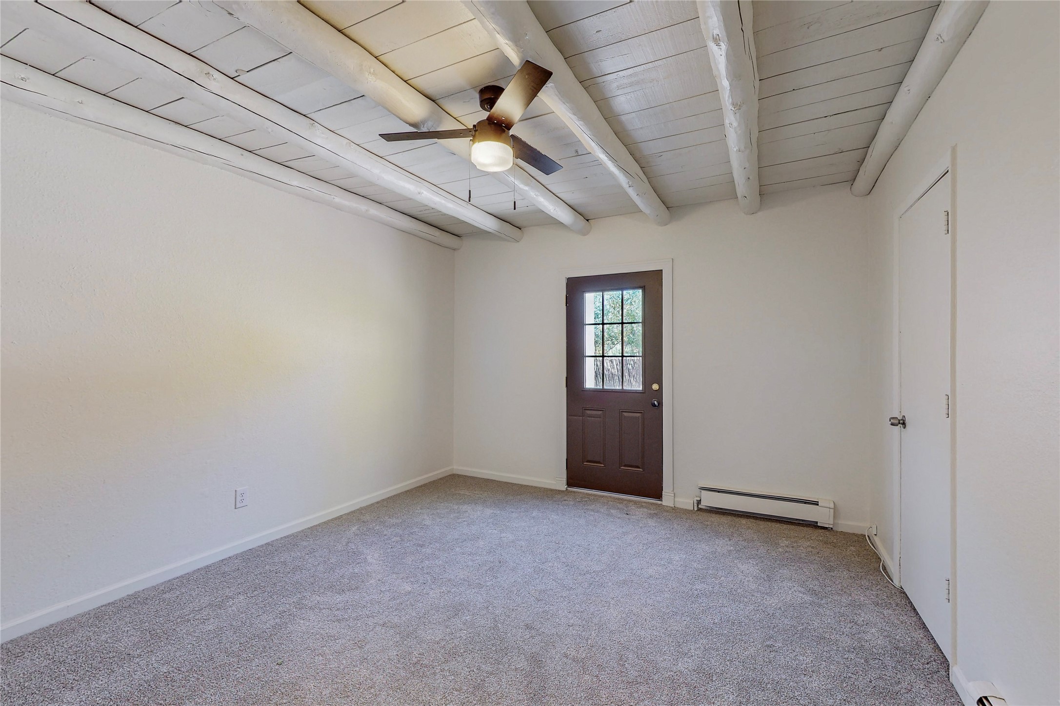 At the end of quiet country lane near stunning arroyos and vistas of mesas, mountains and mature trees sits this 3 bedroom 2 bathroom main house with detached studio and workshop on almost 2 acres. There is room for horses, gardening and all hobbies. Privacy, views and recreation trails abound. The home has a new roof, new stucco, new windows, new flooring, new paint, new appliances, new septic. There is a private well. El Rancho is 17 miles from Santa Fe and 18 miles from Los Alamos, making this an ideal location for commuters. El Rancho is an area steeped in history with rich culture.
