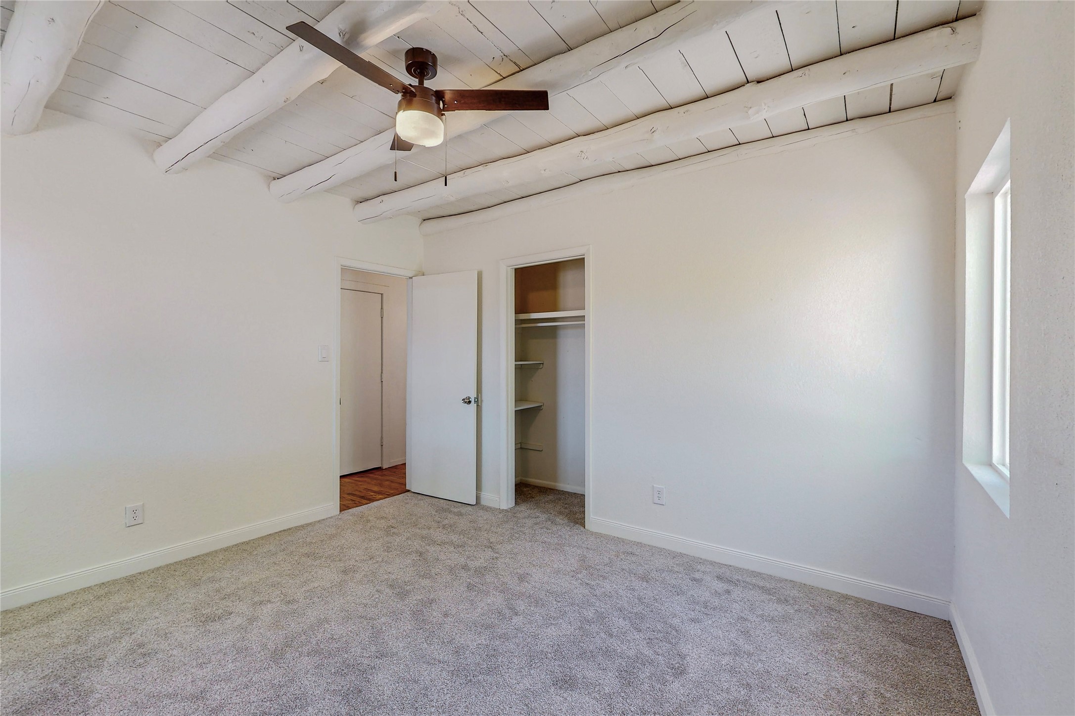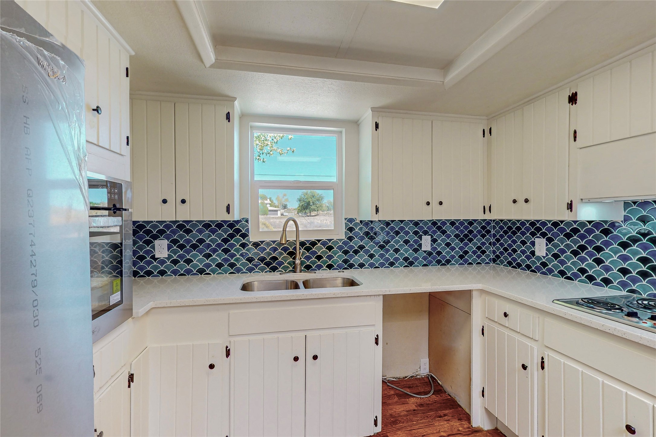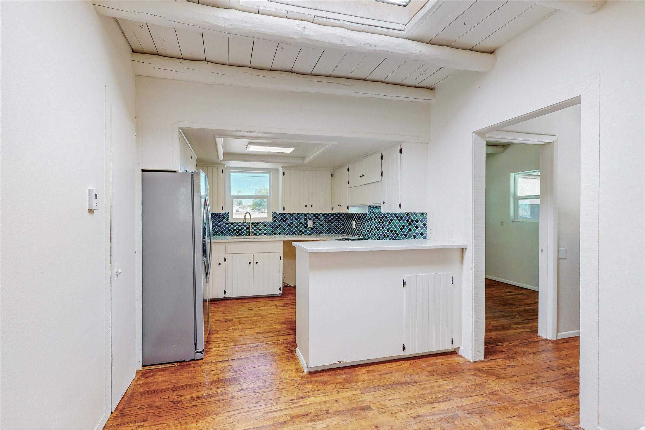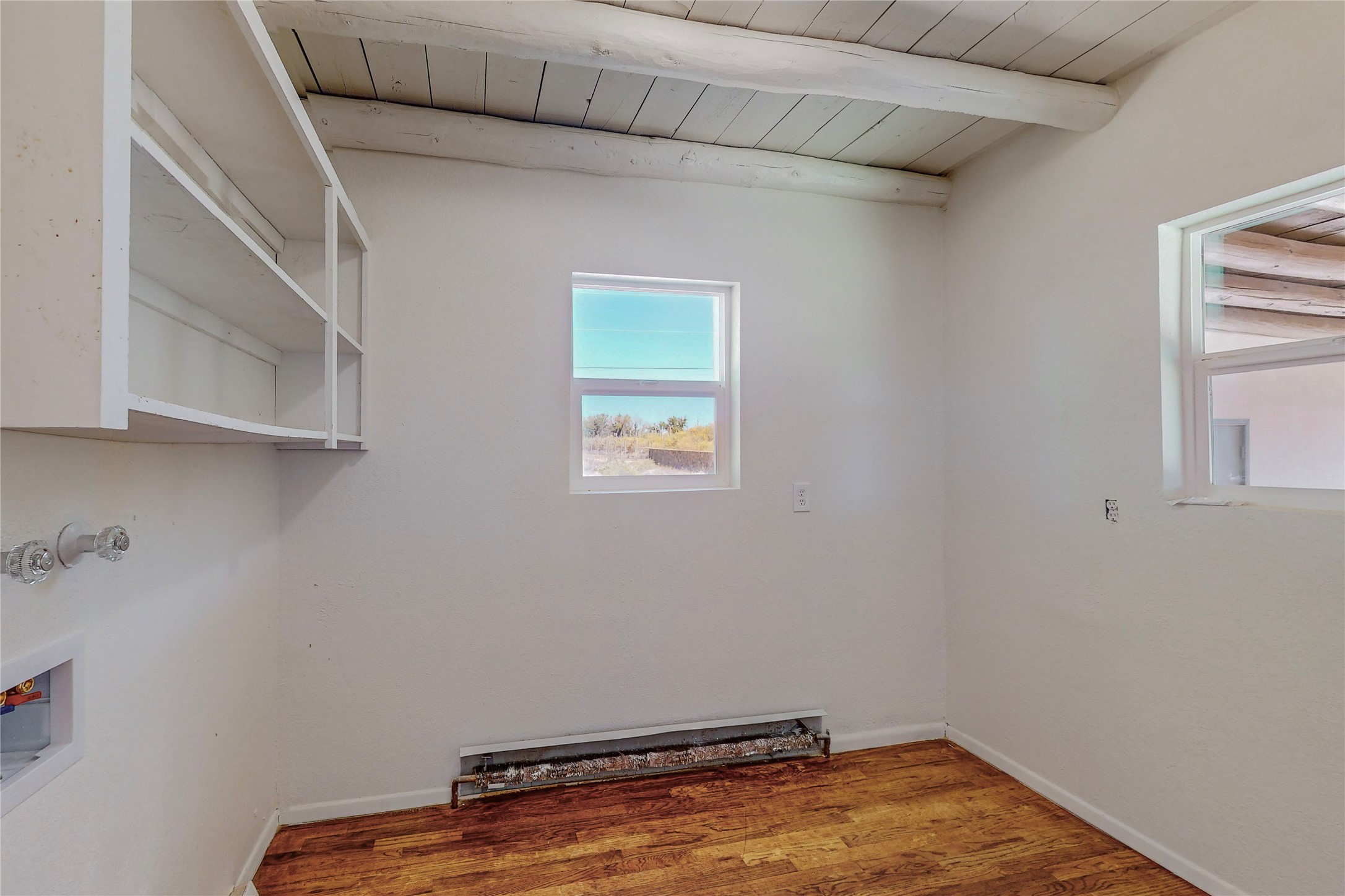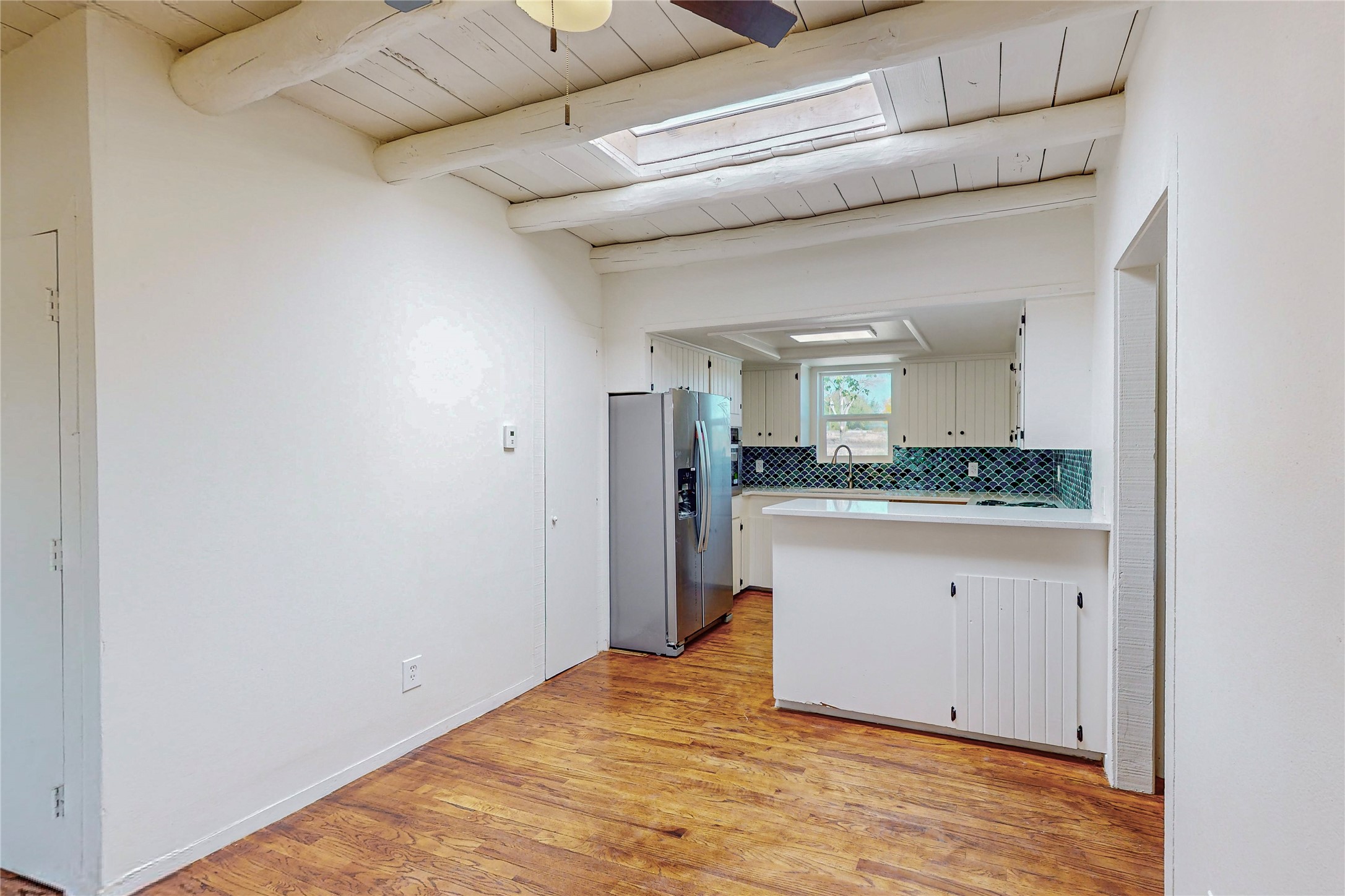 At the end of quiet country lane near stunning arroyos and vistas of mesas, mountains and mature trees sits this 3 bedroom 2 bathroom main house with detached studio and workshop on almost 2 acres. There is room for horses, gardening and all hobbies. Privacy, views and recreation trails abound. The home has a new roof, new stucco, new windows, new flooring, new paint, new appliances, new septic. There is a private well. El Rancho is 17 miles from Santa Fe and 18 miles from Los Alamos, making this an ideal location for commuters. El Rancho is an area steeped in history with rich culture.