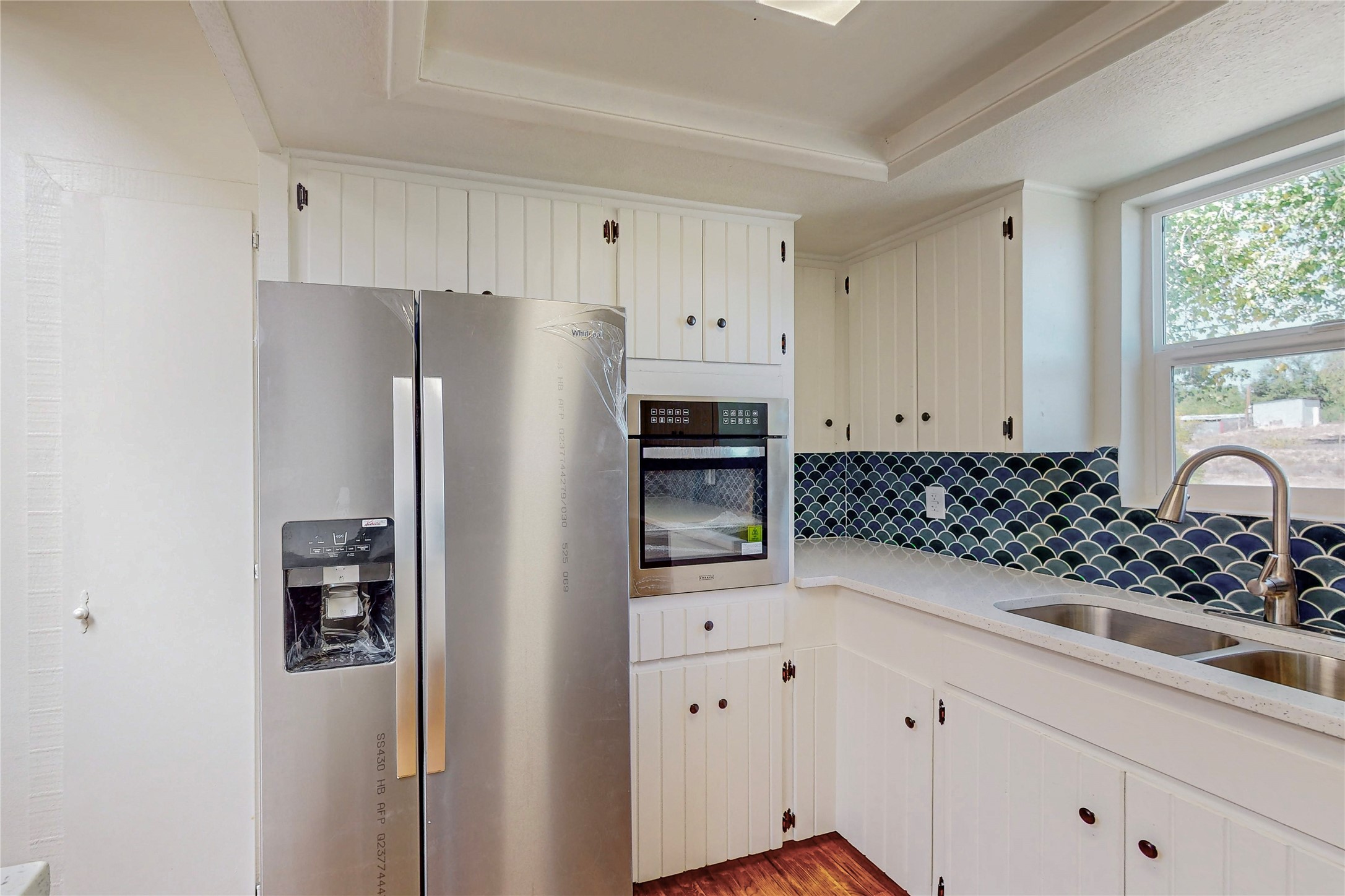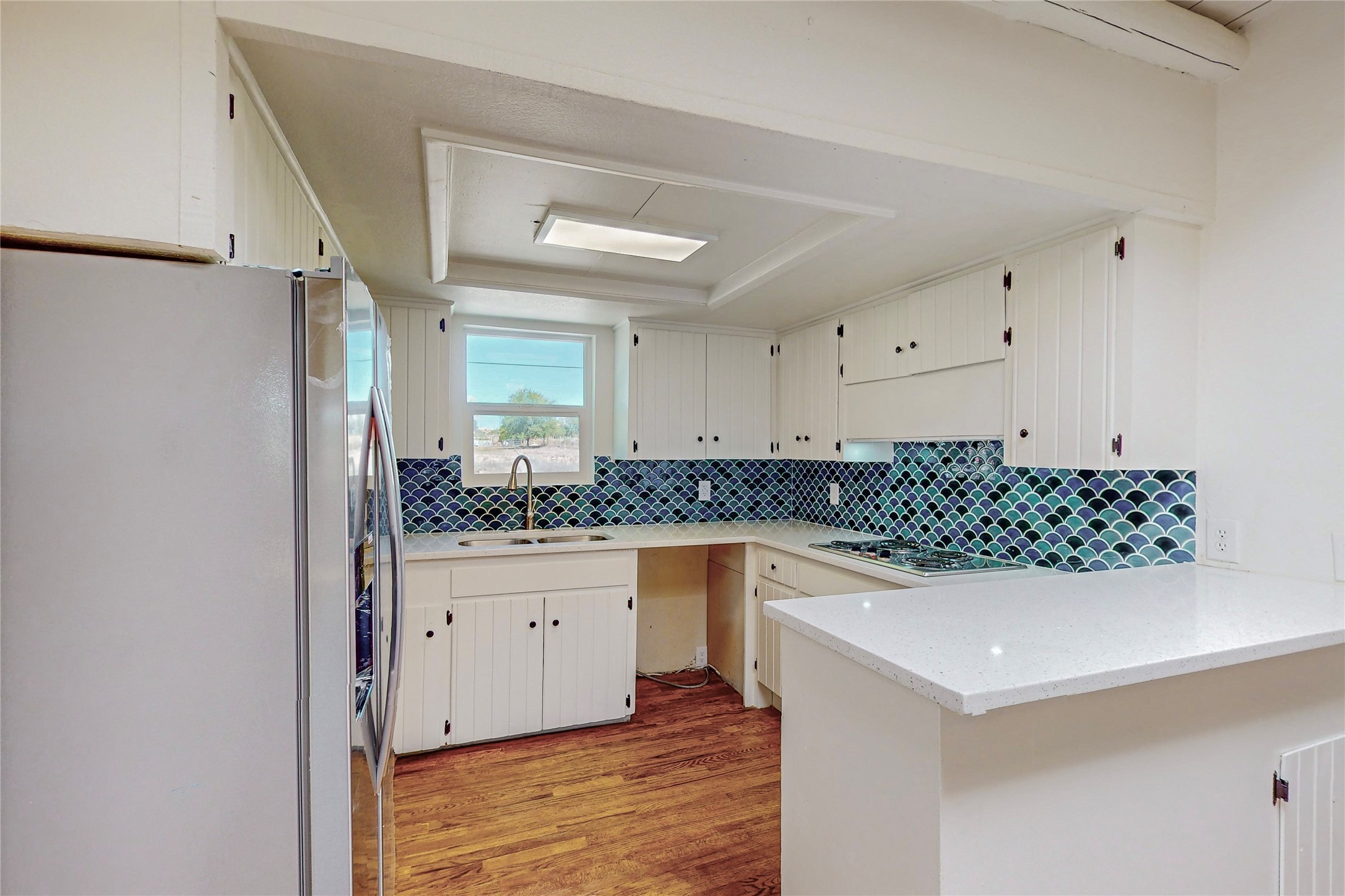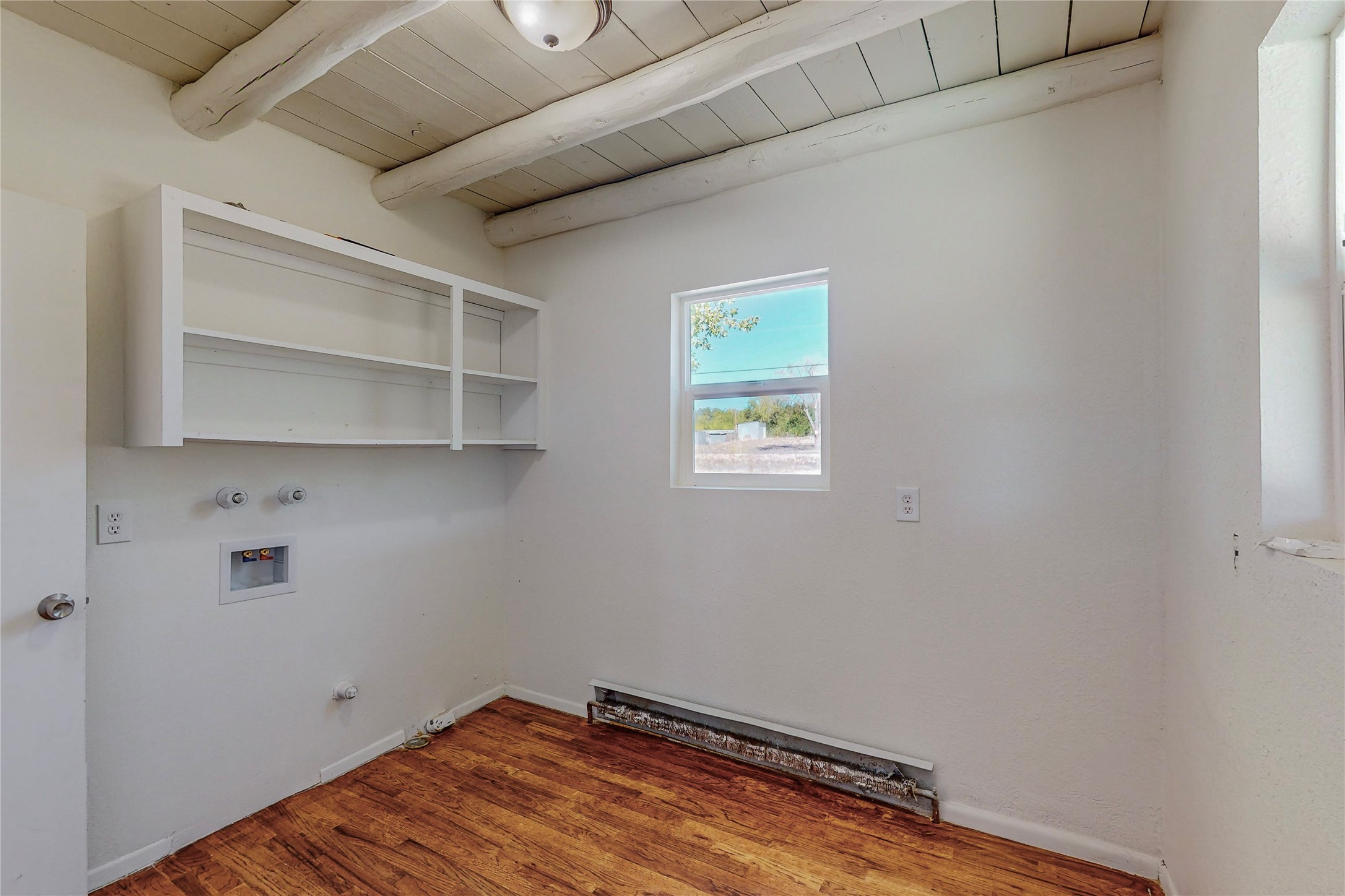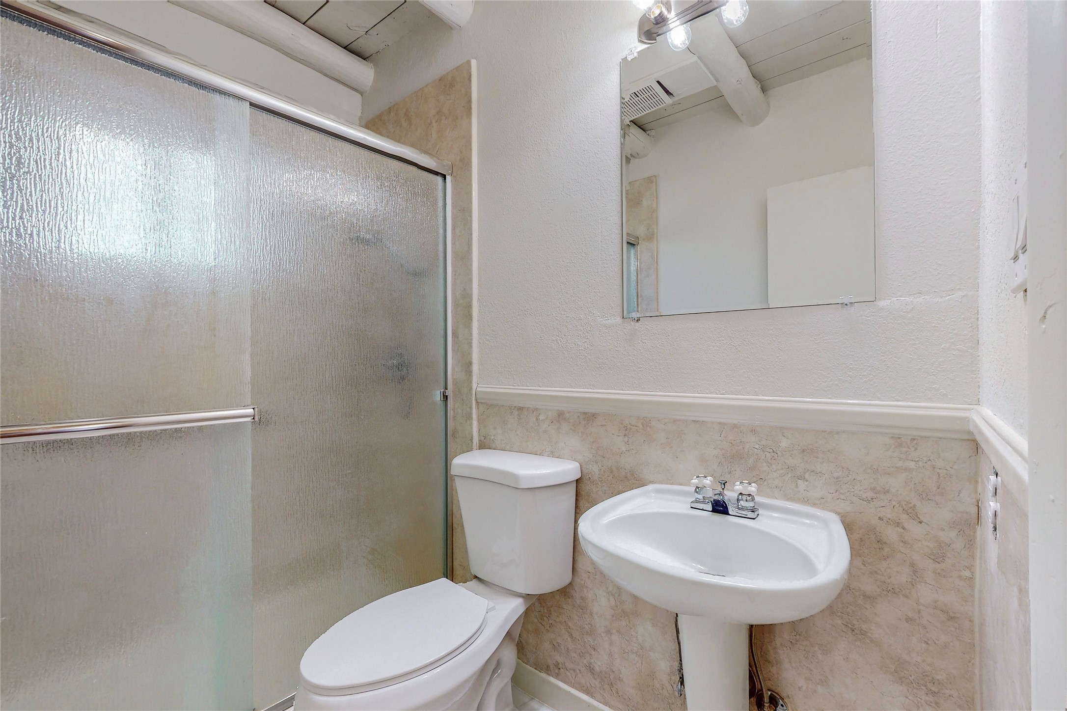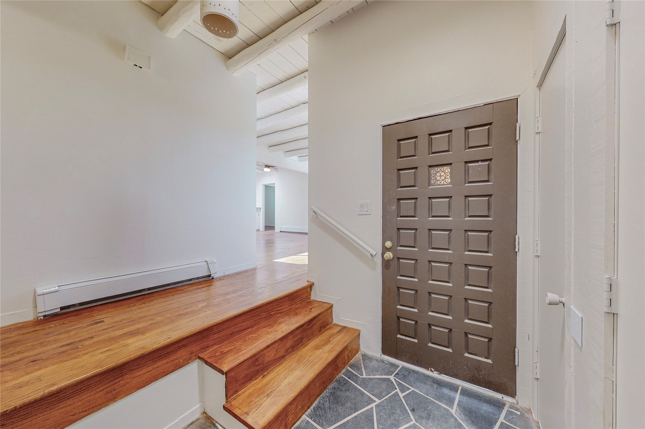 At the end of quiet country lane near stunning arroyos and vistas of mesas, mountains and mature trees sits this 3 bedroom 2 bathroom main house with detached studio and workshop on almost 2 acres. There is room for horses, gardening and all hobbies. Privacy, views and recreation trails abound. The home has a new roof, new stucco, new windows, new flooring, new paint, new appliances, new septic. There is a private well. El Rancho is 17 miles from Santa Fe and 18 miles from Los Alamos, making this an ideal location for commuters. El Rancho is an area steeped in history with rich culture.