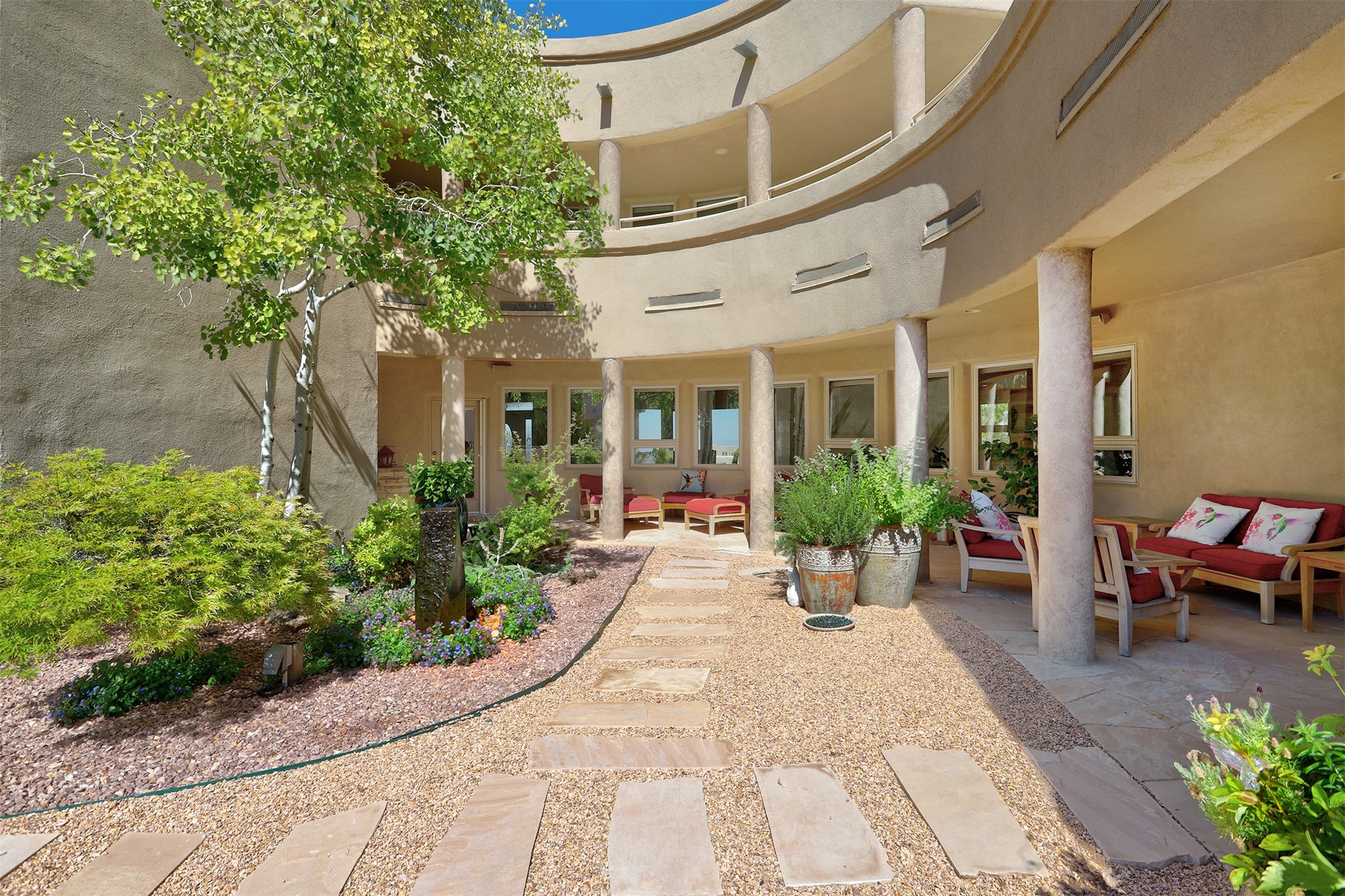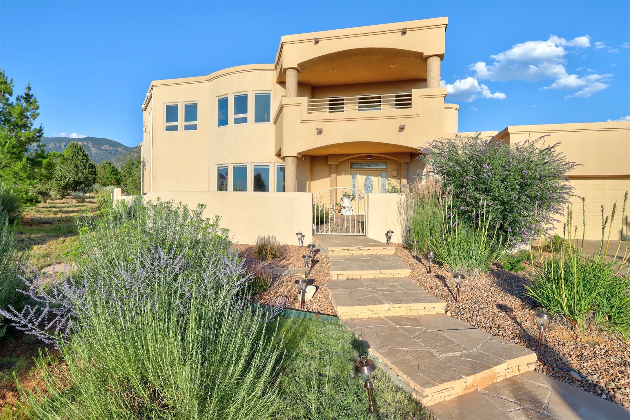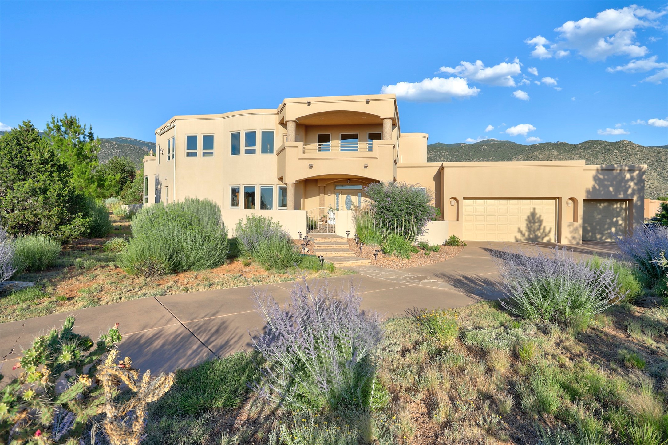 Nature-Lovers Custom-Built Dream-Home situated on .86 acre maximizing stellar Mountain & City views! From the grand foyer experience the incredible floor plan's soaring ceilings w/65 windows offering East & West views from every room. Gorgeous sunny kitchen opens onto airy breakfast nook & family room. Cook's kitchen includes custom-made SubZero refrigerator (w/filtration & ice maker), double ovens, gas cooktop & quartz countertops. The 4 spacious bedrooms feature En-Suites & walk-in closets - BOTH 1st & 2nd floor Primary Bedroom En-Suites feature couples-jetted-tubs. Indoor/Outdoor living w/approx 1500sqft of covered/open decks/patios & serene courtyard. Soft-lush landscaping is designed w/layering of trees & bushes to attract butterflies/hummingbirds & provide shade w/o obstructing view
