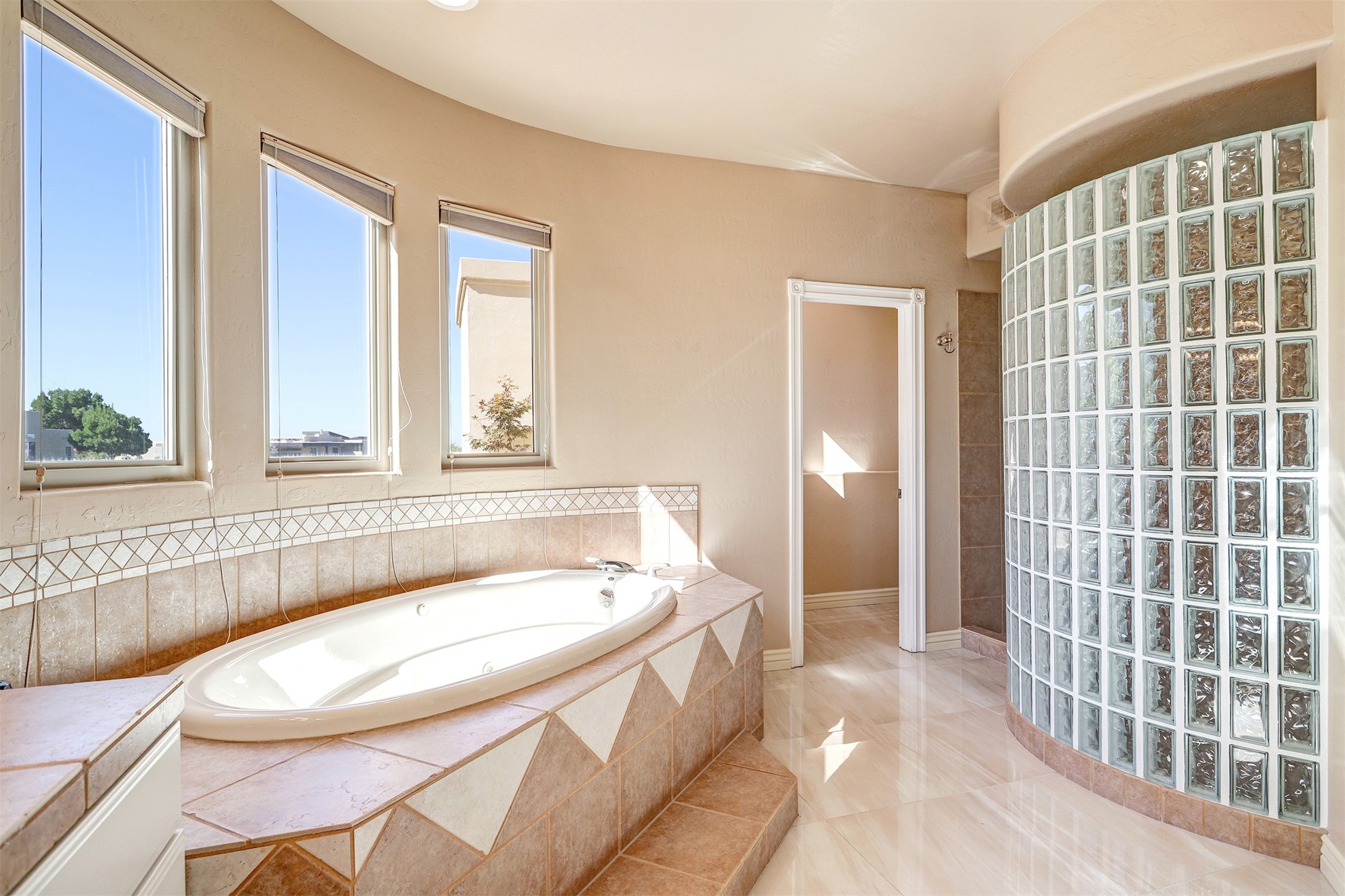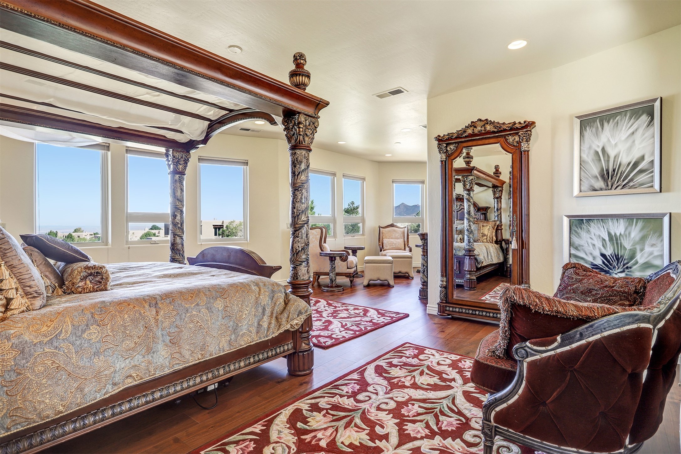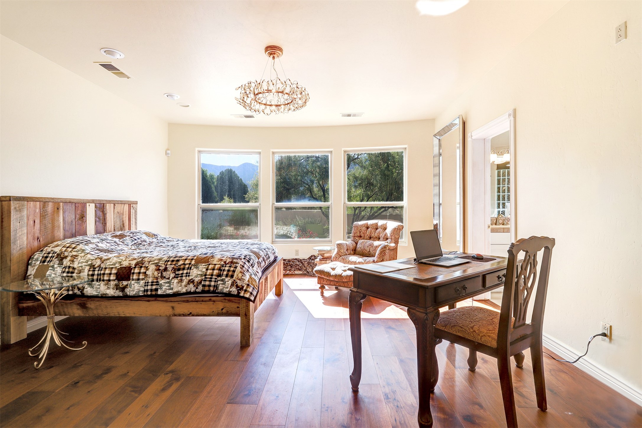 Nature-Lovers Custom-Built Dream-Home situated on .86 acre maximizing stellar Mountain & City views! From the grand foyer experience the incredible floor plan's soaring ceilings w/65 windows offering East & West views from every room. Gorgeous sunny kitchen opens onto airy breakfast nook & family room. Cook's kitchen includes custom-made SubZero refrigerator (w/filtration & ice maker), double ovens, gas cooktop & quartz countertops. The 4 spacious bedrooms feature En-Suites & walk-in closets - BOTH 1st & 2nd floor Primary Bedroom En-Suites feature couples-jetted-tubs. Indoor/Outdoor living w/approx 1500sqft of covered/open decks/patios & serene courtyard. Soft-lush landscaping is designed w/layering of trees & bushes to attract butterflies/hummingbirds & provide shade w/o obstructing view