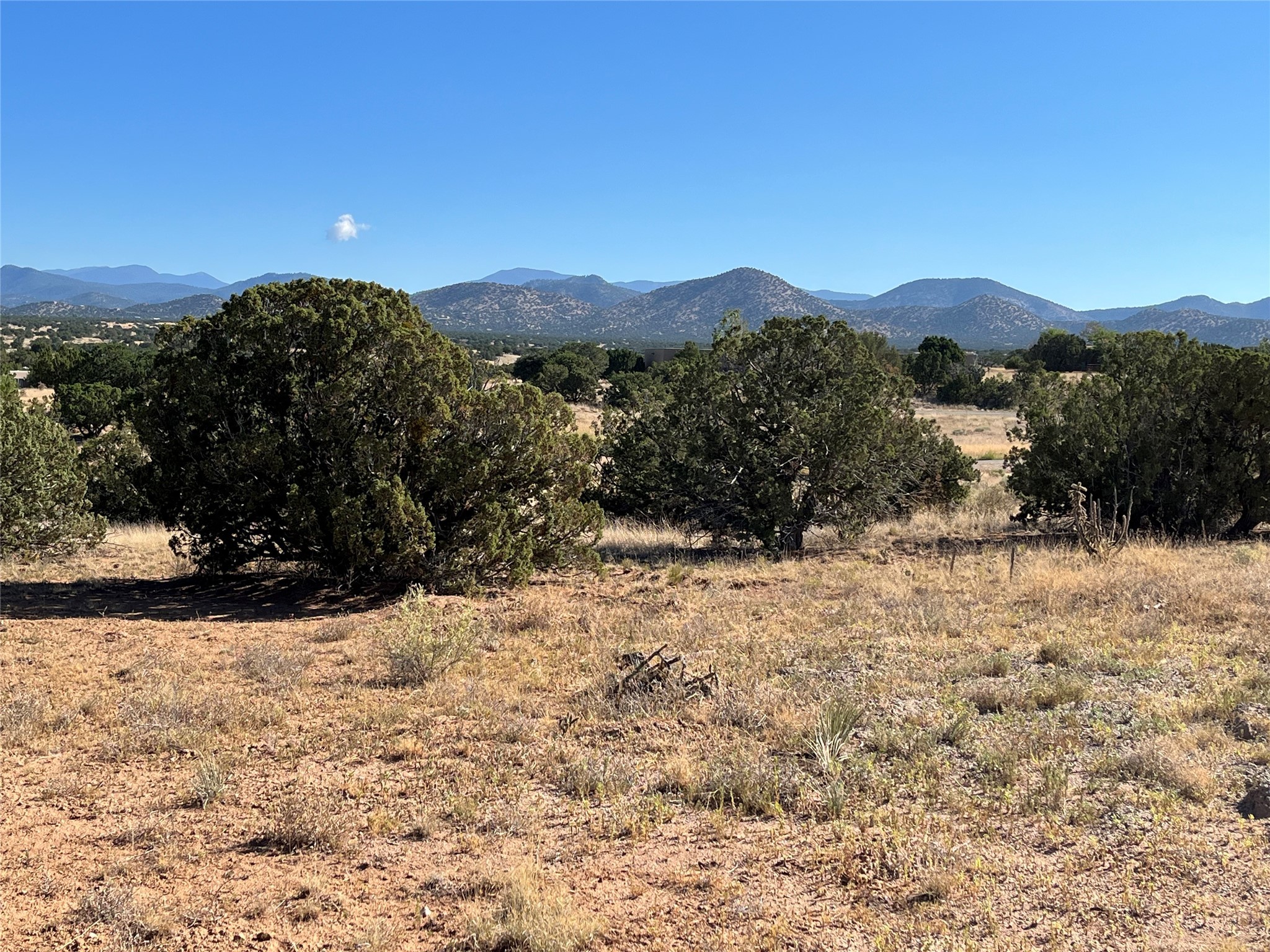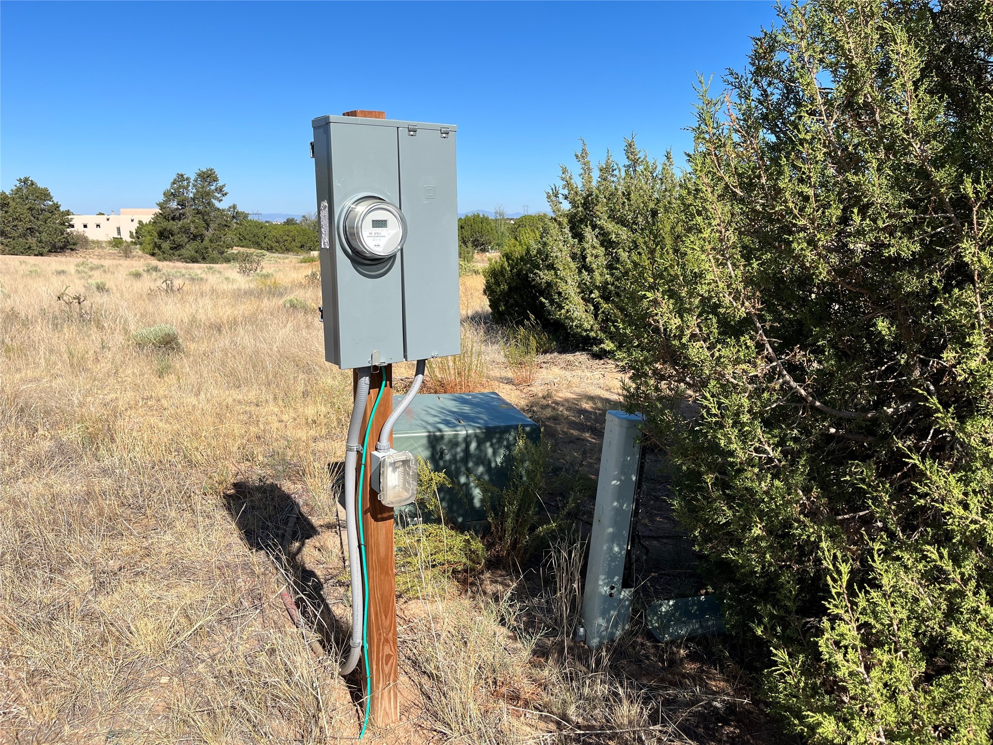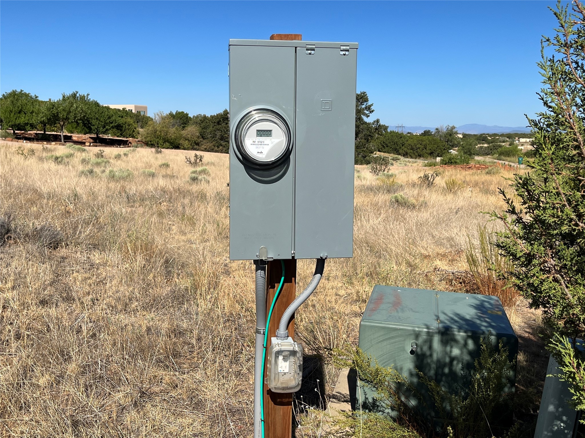 With direct views of the Sangre De Cristo Mountain Range, this gently elevated tree covered grassymeadow offers the best Eldorado and Santa Fe has to offer! With a recently drilled 400ft well whichproduced ~12 gallons per minute when drilled, the only thing missing is your dream home! There is also an electric meter on the property. Come and walk this land and call it your own!