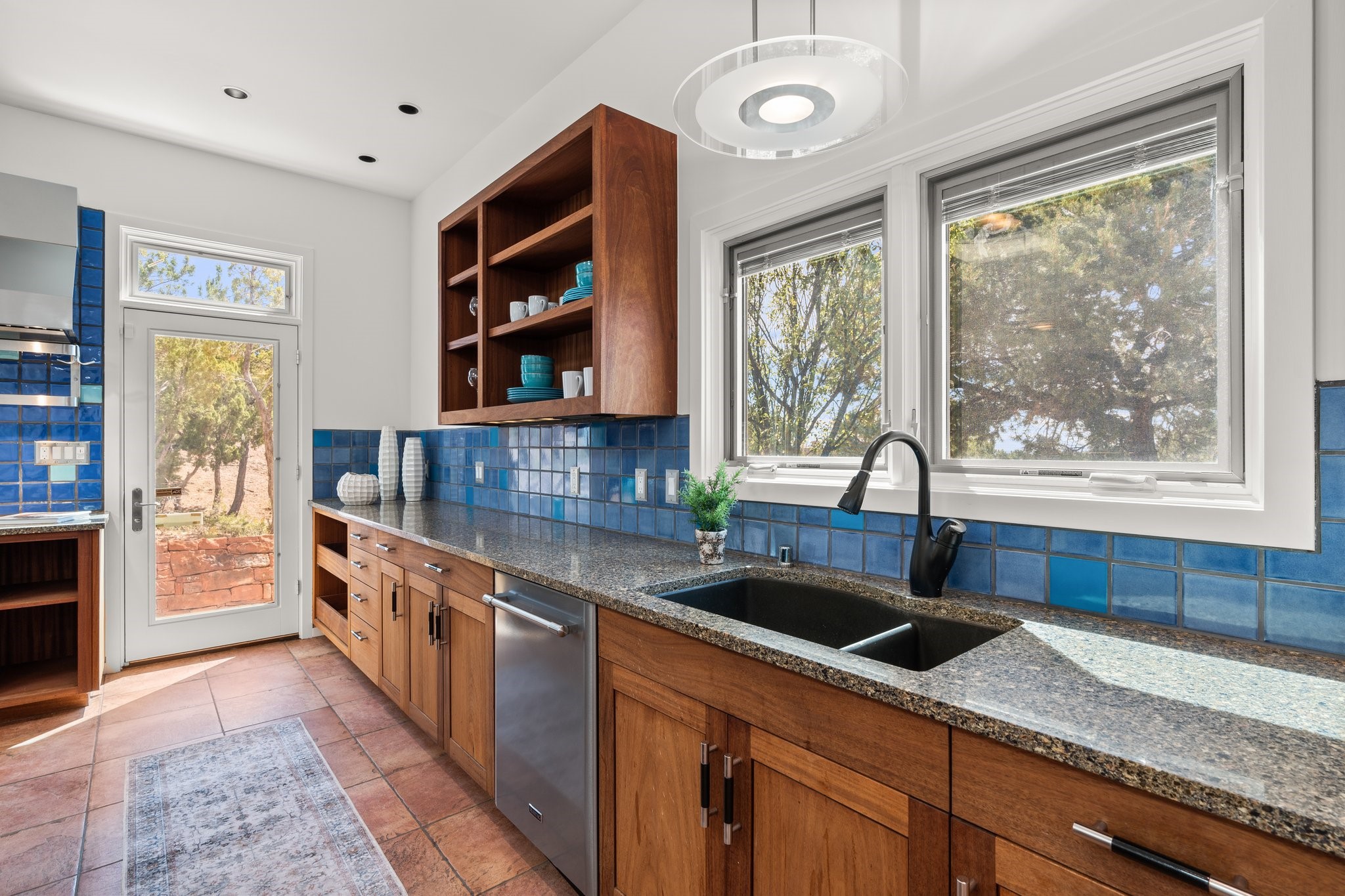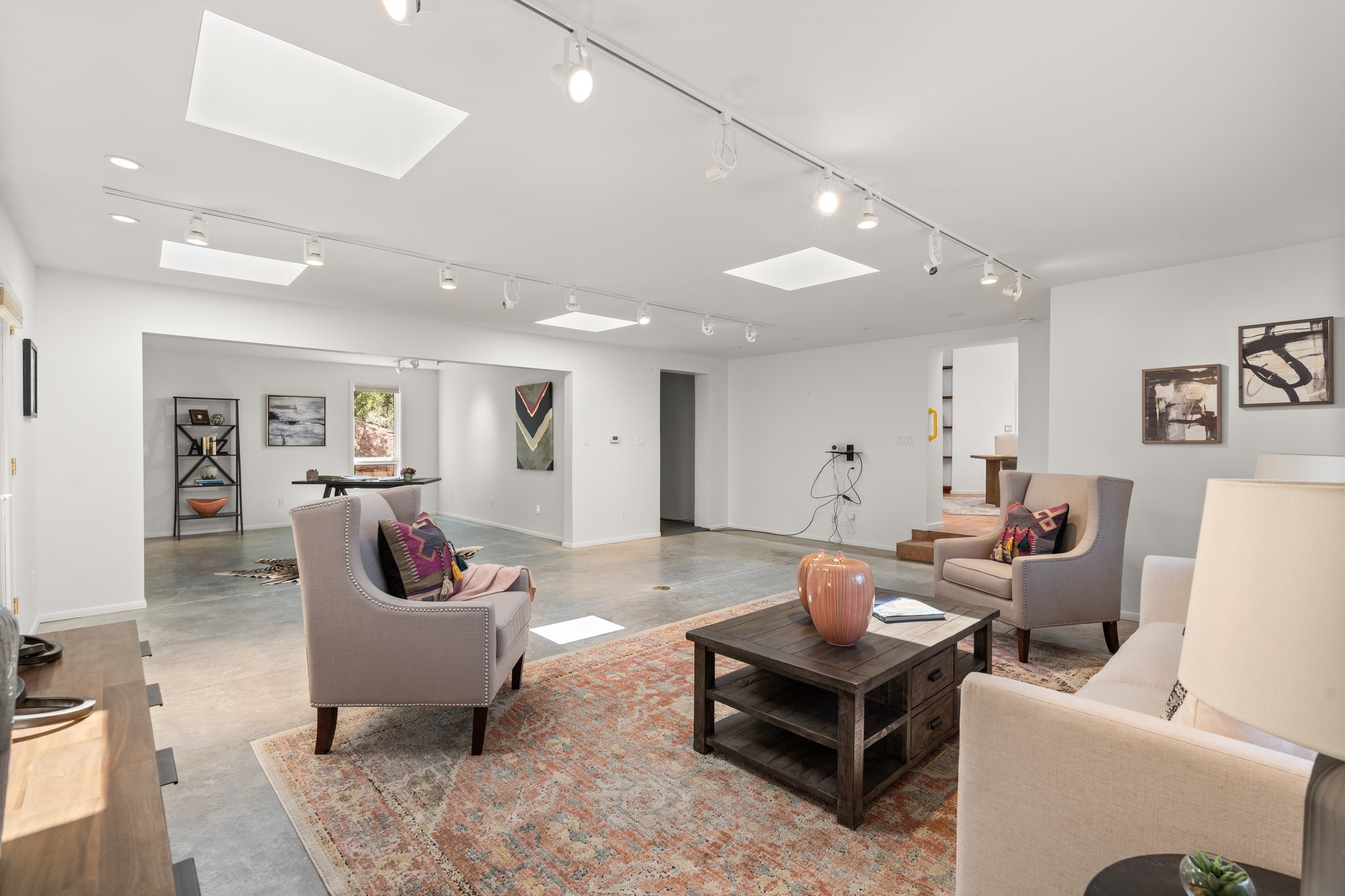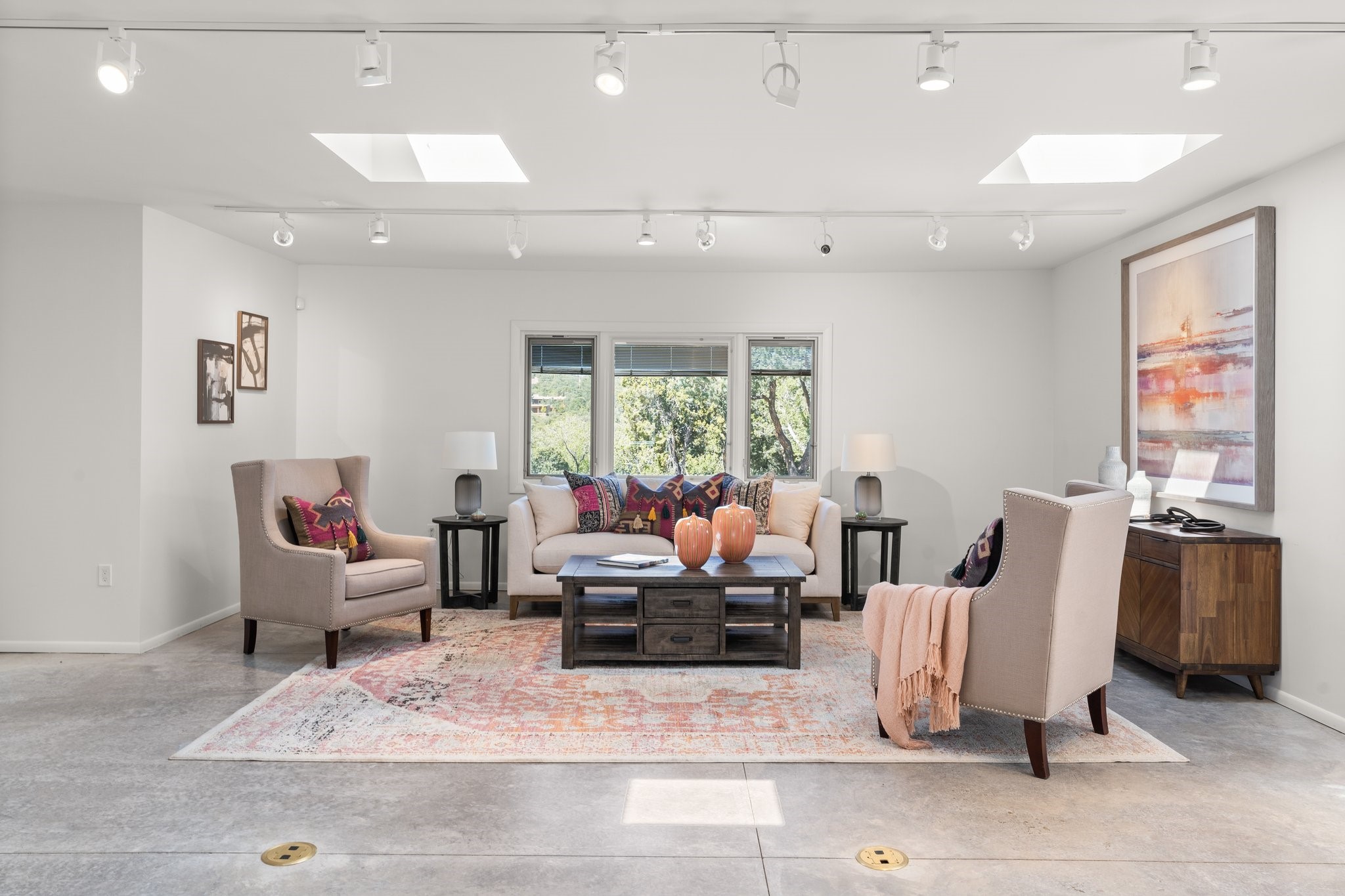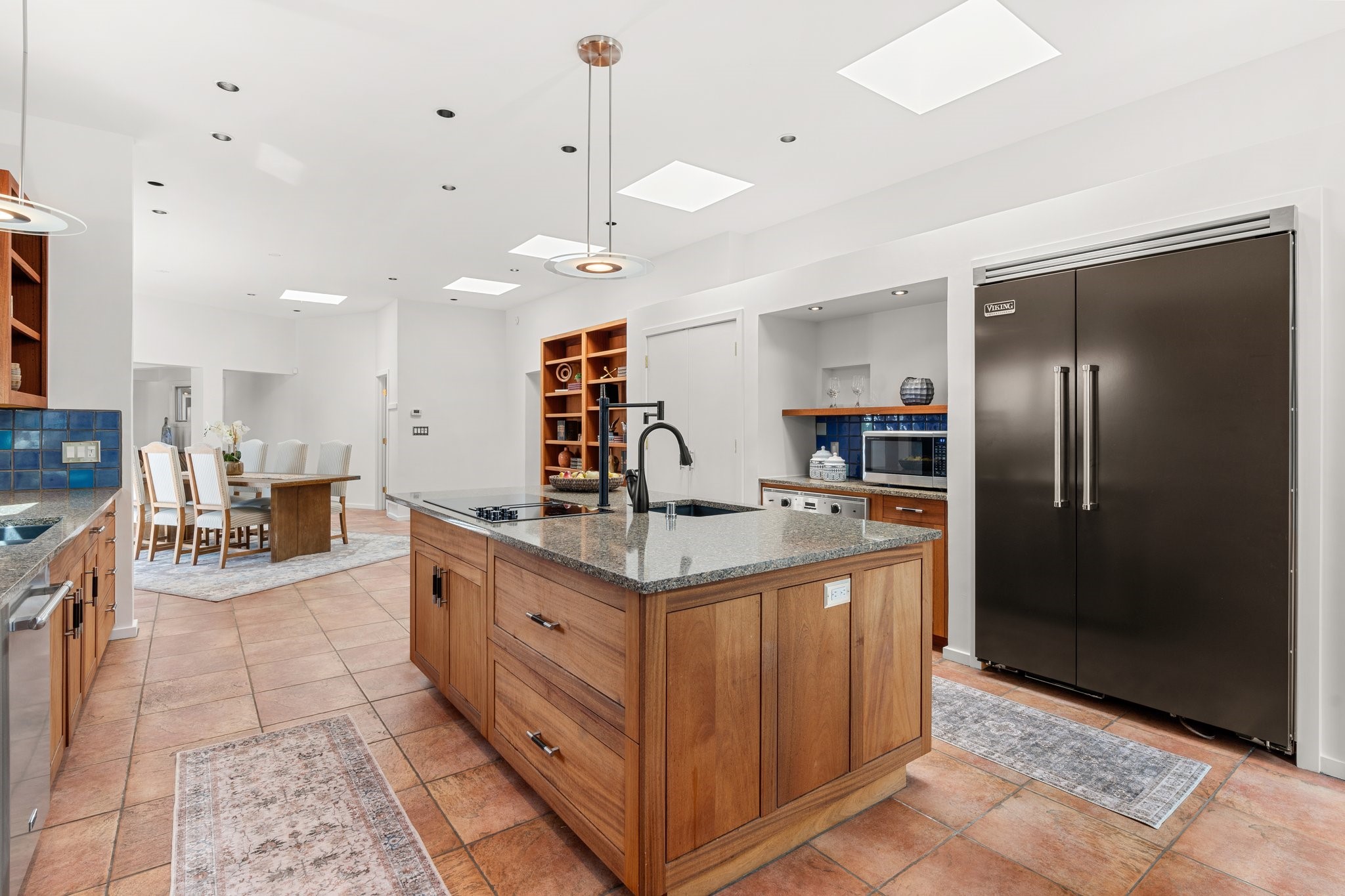 This stunning 4,000 +/- sq. ft home boasts 2 full bedroom suites, each with its own bathroom and sitting room. The upstairs suite additionally has an office while the downstairs bedroom suite with direct entry from the outside has a kitchenette. Nestled in the serene Santa Fe mountains and surrounded by magnificent views, this meticulously maintained home sitting on 1.9 acres is but minutes from downtown Santa Fe and its many amenities. Ideal for year-round entertaining, the generous great-room (living, dining, kitchen), offers easy access to the 900 sq. ft. Trex deck from which to enjoy amazing sunset views. The bespoke chef's-kitchen boasts a full range of top-of-the-line, Energy-Star, stainless steel appliances -- two stove tops, one electric with downdraft, and one gas; three ovens, one electric and two gas; two dishwashers, a wine cooler, microwave, a Viking fridge/freezer combo as well as a separate upright freezer, two sinks, and a very generous island. Quartz countertops and custom cabinetry complete the kitchen. The adjoining studio with storage for paintings can double as a family room or be built out into a stunning main bedroom suite. A 20 x 8 ft greenhouse and a garden shed allow you to give flight to all your gardening dreams. Paid off solar panels on the roof keep the electric bills to a minimum. A composite roof slopes gently to allow for drainage. The house is protected with lightning rods around the perimeter of the roof. This home offers so many more extras that it is impossible to list them all here. Please see additional info in document section of listing. All measurements are estimates and if of material interest, Buyer to independently verify. Neither Seller nor Listing Broker warrant house or lot size.