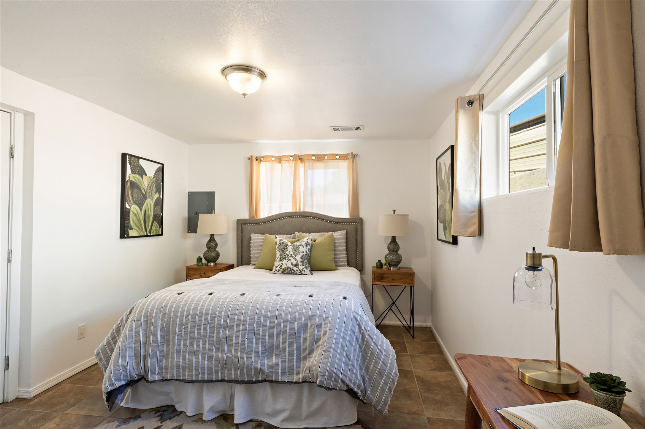 Two, enchanting and fully restored casitas with exceptional quality and located close to town! The casitas are single level, one-bedroom, one-bath homes, each enjoying private yards, storage, and two off-street parking spots. Both casitas have new kitchen and bathrooms and much more including refrigerated air-conditioning, forced-air heat, washer, dryer, bathrooms with a tiled, walk-in shower and closets. The comprehensive remodel done is 2022 included a new sewer line, water line, electrical, insulation, paint, new cabinets, tiled, new windows, new stucco, and a new metal roof. You can rent them both or live in one and use the other as an office/studio or for guests. The efficient and well-designed casitas are 526 and 437 square feet, respectively. The property is located off West Alameda, near the Food Coop, a bus route, a bike trail, and the dog park. One unit is currently rented, rental history available. Unit A is easy to show, Unit B on second showings only, with notice required.