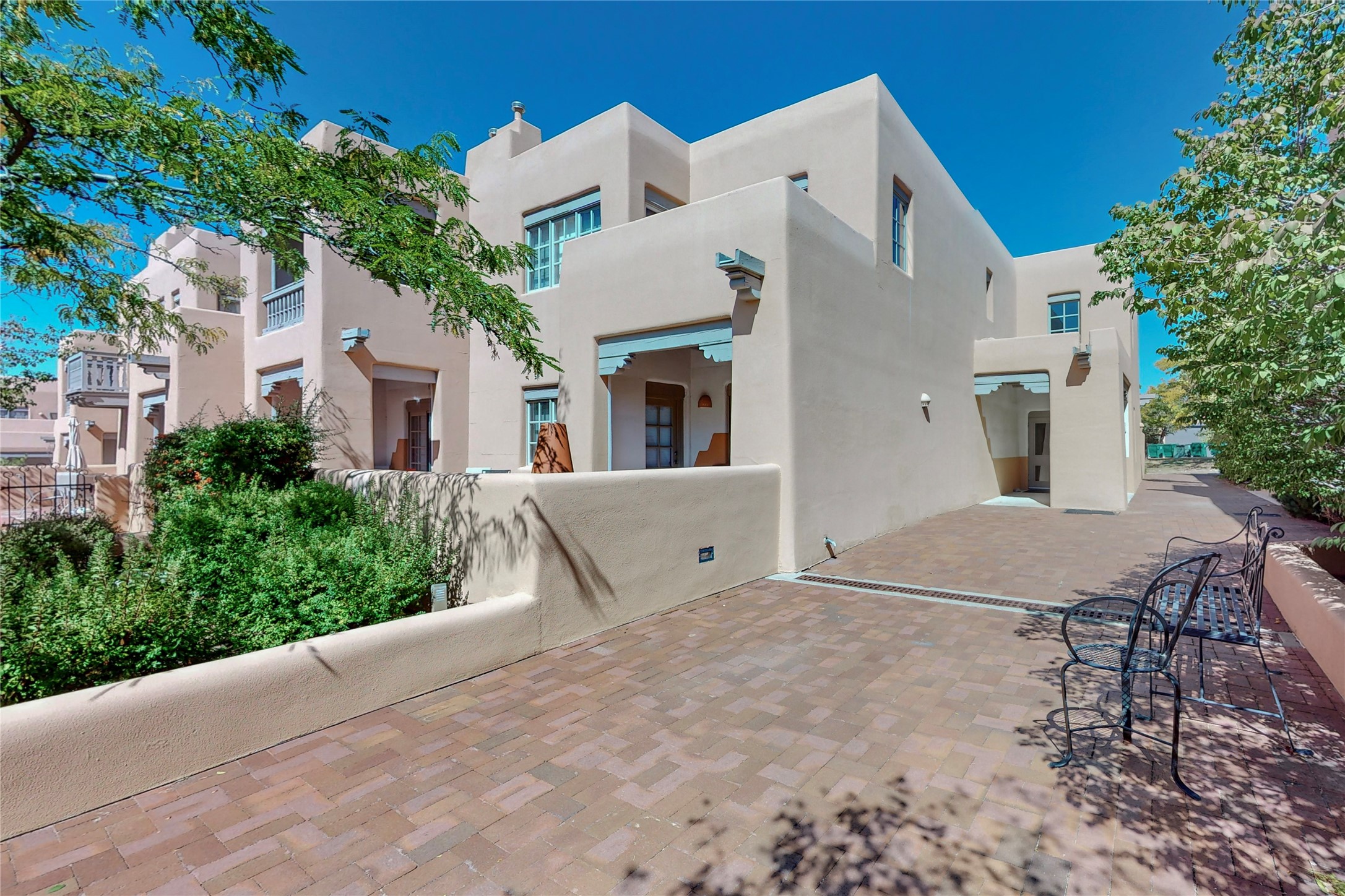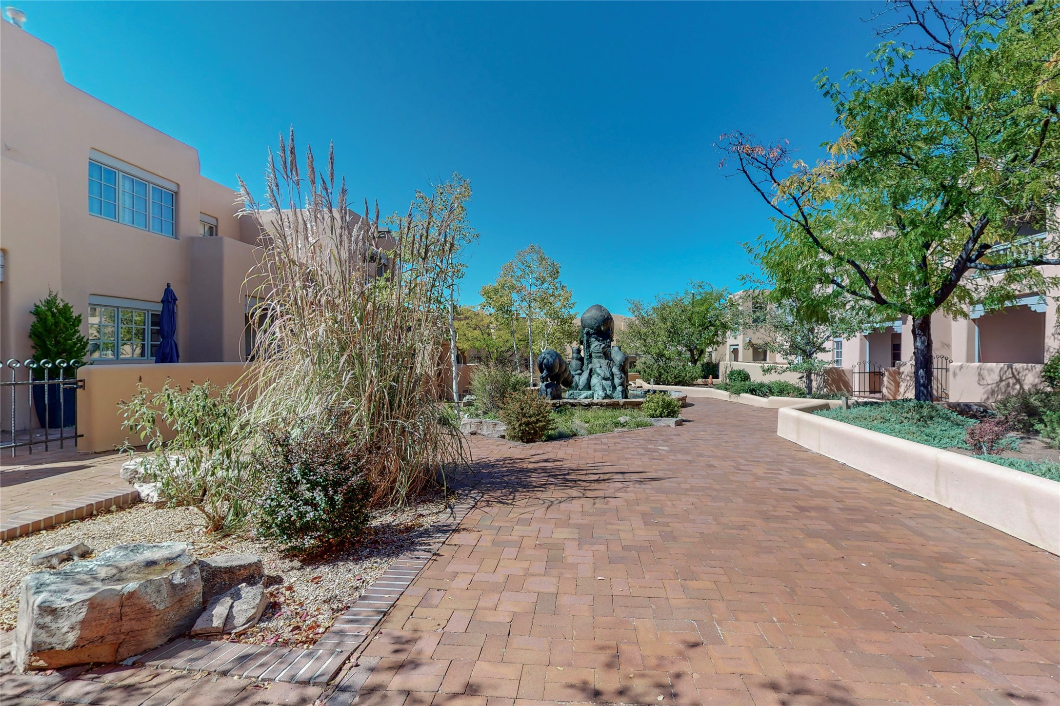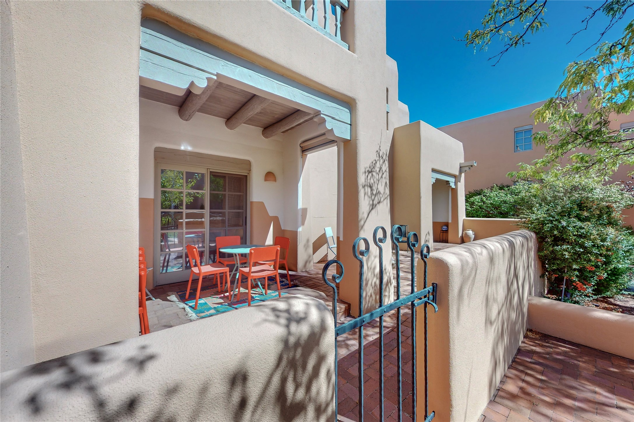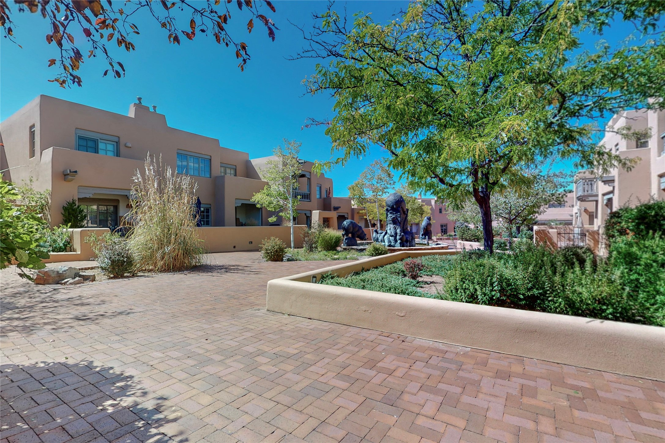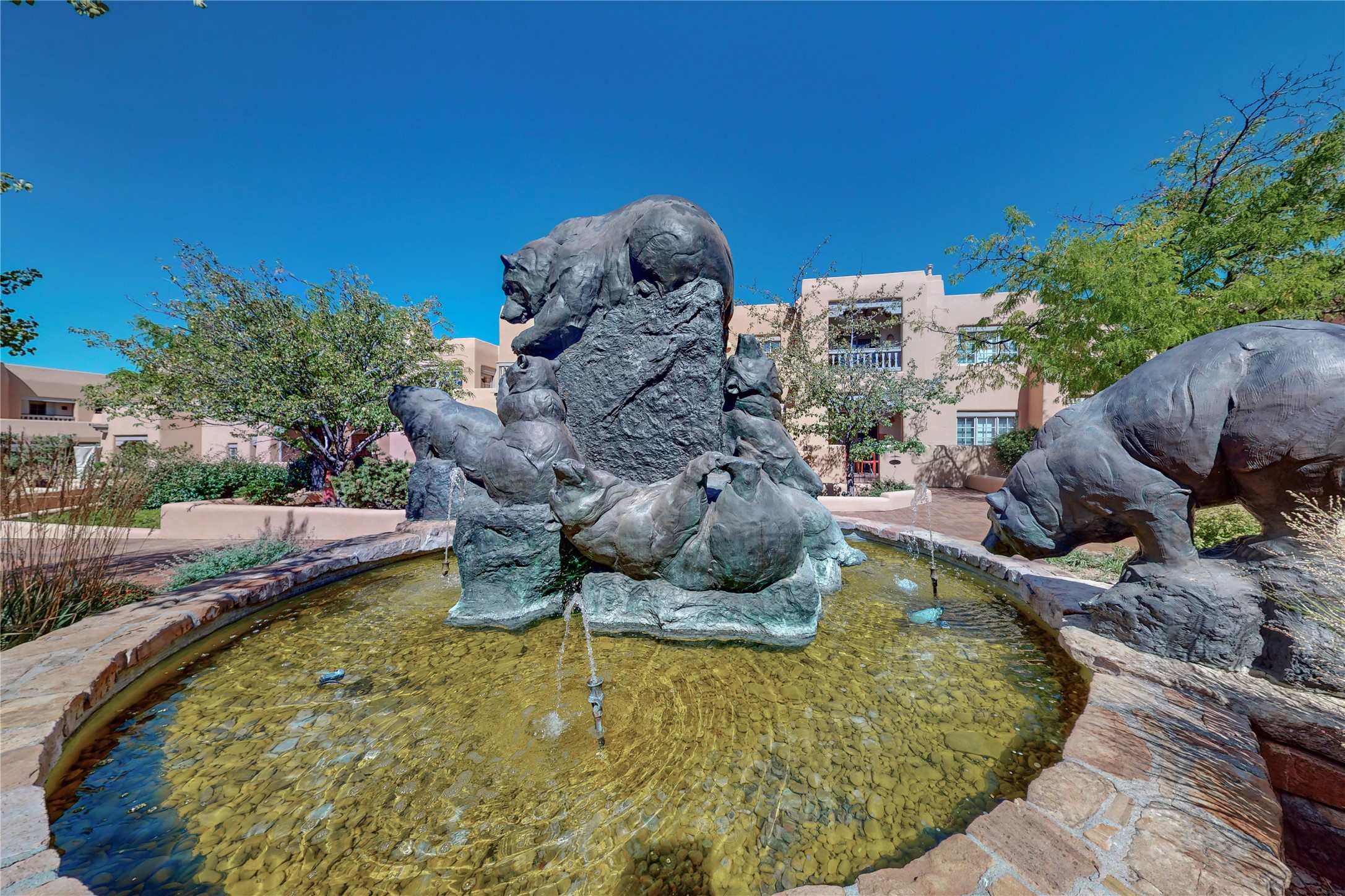 The premiere Plaza Condo location at Quail Run! Not only is it a ground unit but it is the end unit by theBear Sculpture Fountain and has the beautiful southern light orientation for the spacious patio andwindows. 2 bedrooms, 2 bath, approximately 1288 square feet and no steps. Freshly painted, newcarpet, new dishwasher, and being sold turn-key which means furniture and dishes are included. The secondbedroom is currently furnished as an office with bookshelves. Quail Run is a gated community that is setup for easy living. The HOA fee covers all amenities- golf, fitness classes, gym, indoor pool, tennis, pickleball, 24-hour hosted security, exterior maintenance, stucco, roof, windows, patio bricks, courtyard wall.This residence is perfect for full-time living or as a Lock and Leave. The proximity to the soothing soundof the Bear Sculpture Fountain is like having your own private park. Easy access to all that Santa Fe hasto offer- restaurants, galleries, The Santa Fe Opera, hiking, skiing, year- round festivals, music concerts,lectures, theater and dance performances.